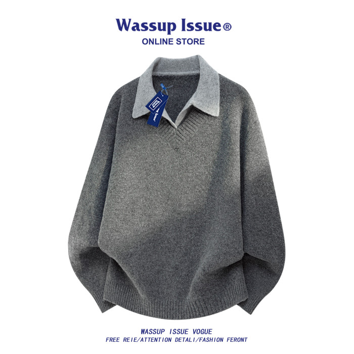 WASSUP ISSUE繙領POLO毛衣男款秋冬寬鬆慵嬾風情侶針織衫男高級感