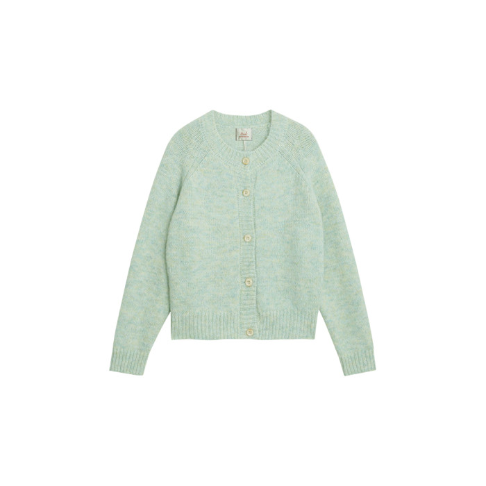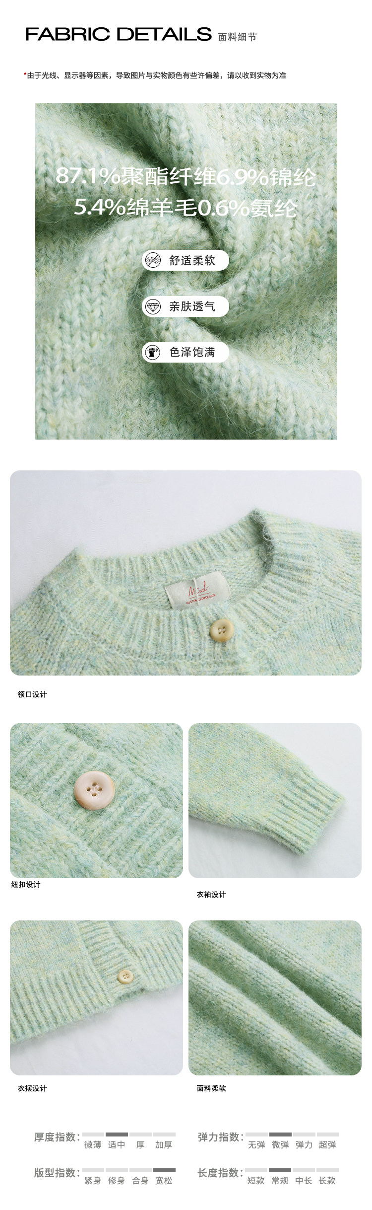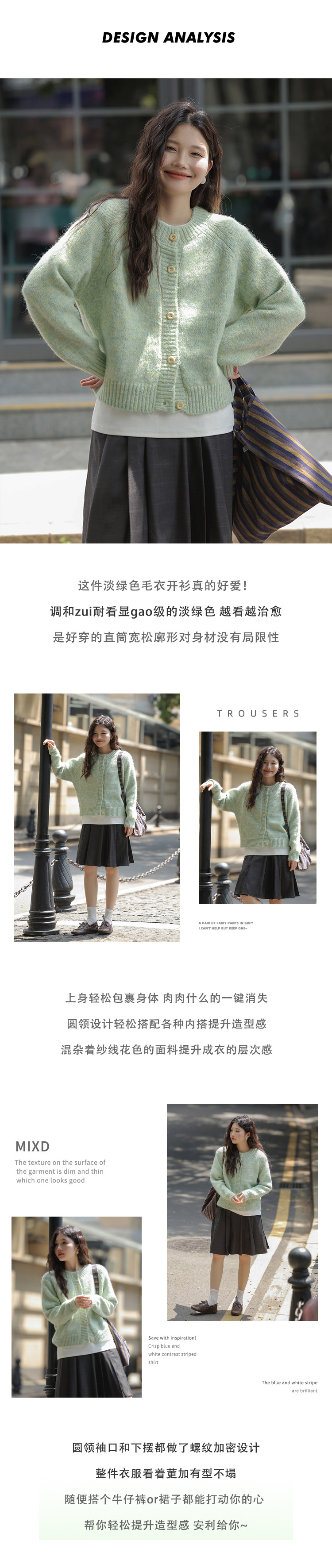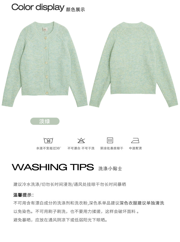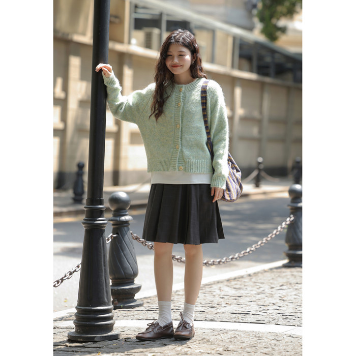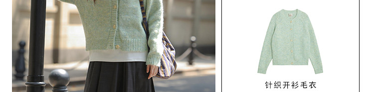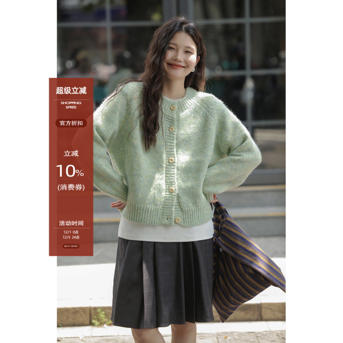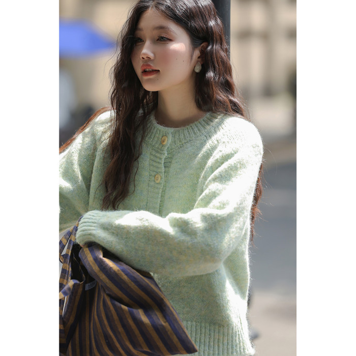 覔定 綠色針織毛衣開衫女秋冬慵嬾風小個子絕美韓系圓領軟糯上衣