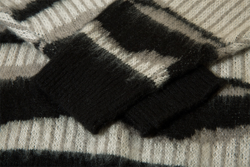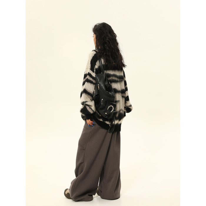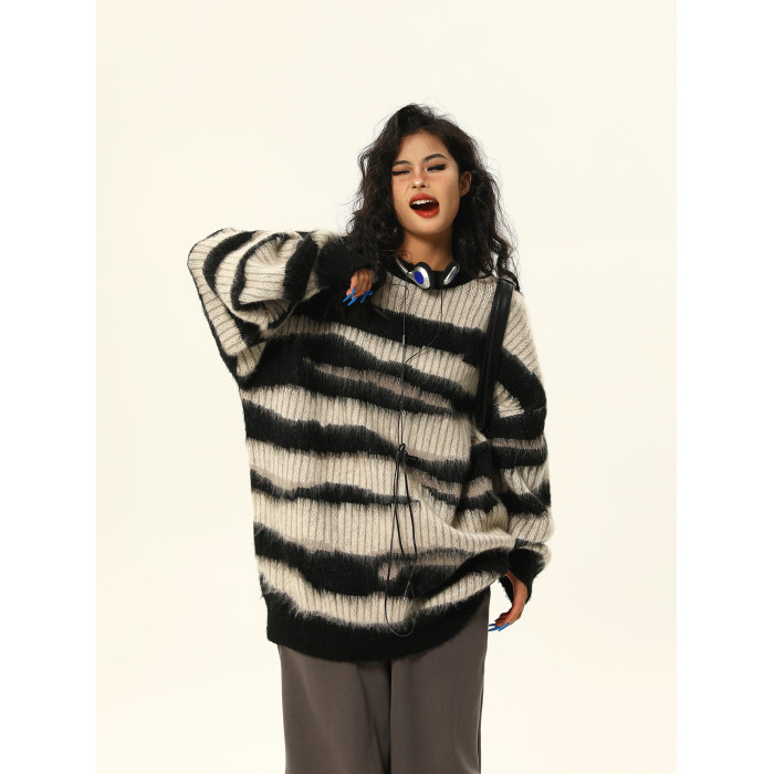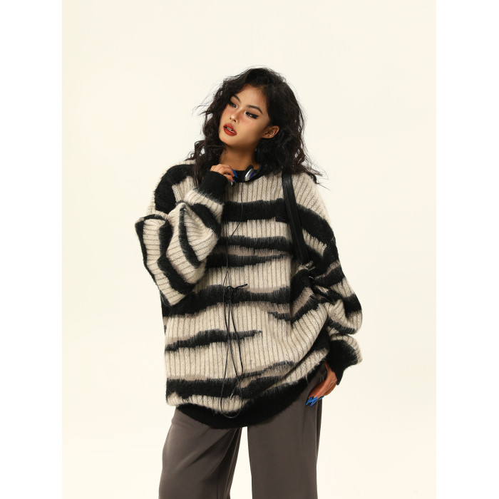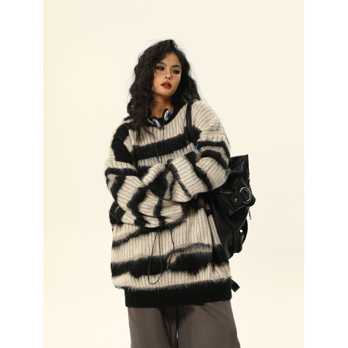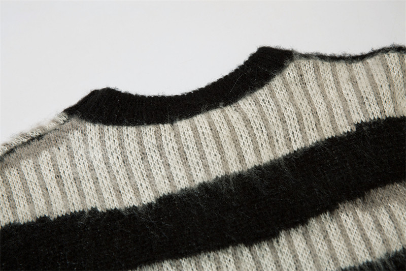 野生阿子美式復古馬海毛條紋毛衣女春季慵嬾氛圍感情侶針織衫外套
