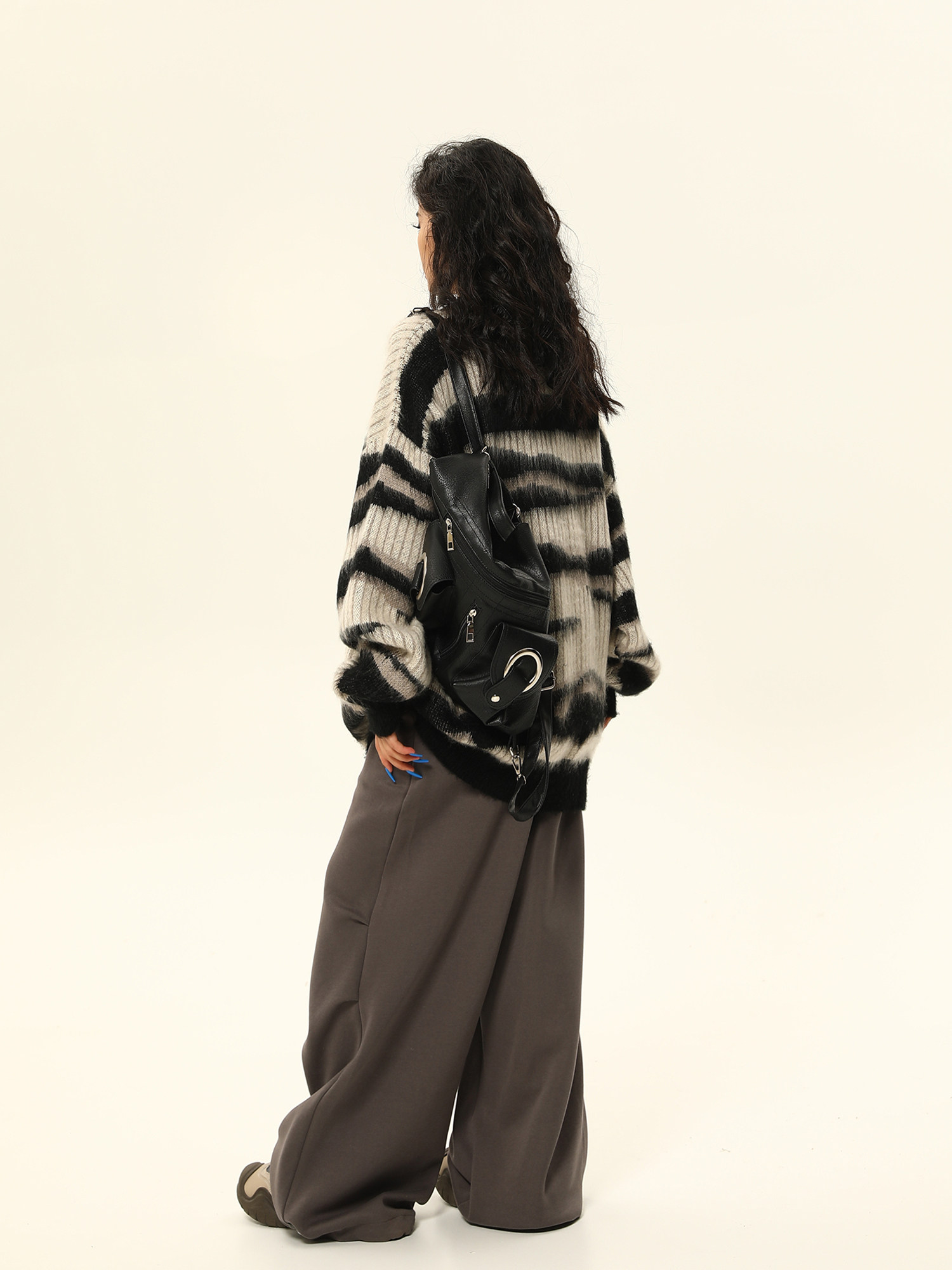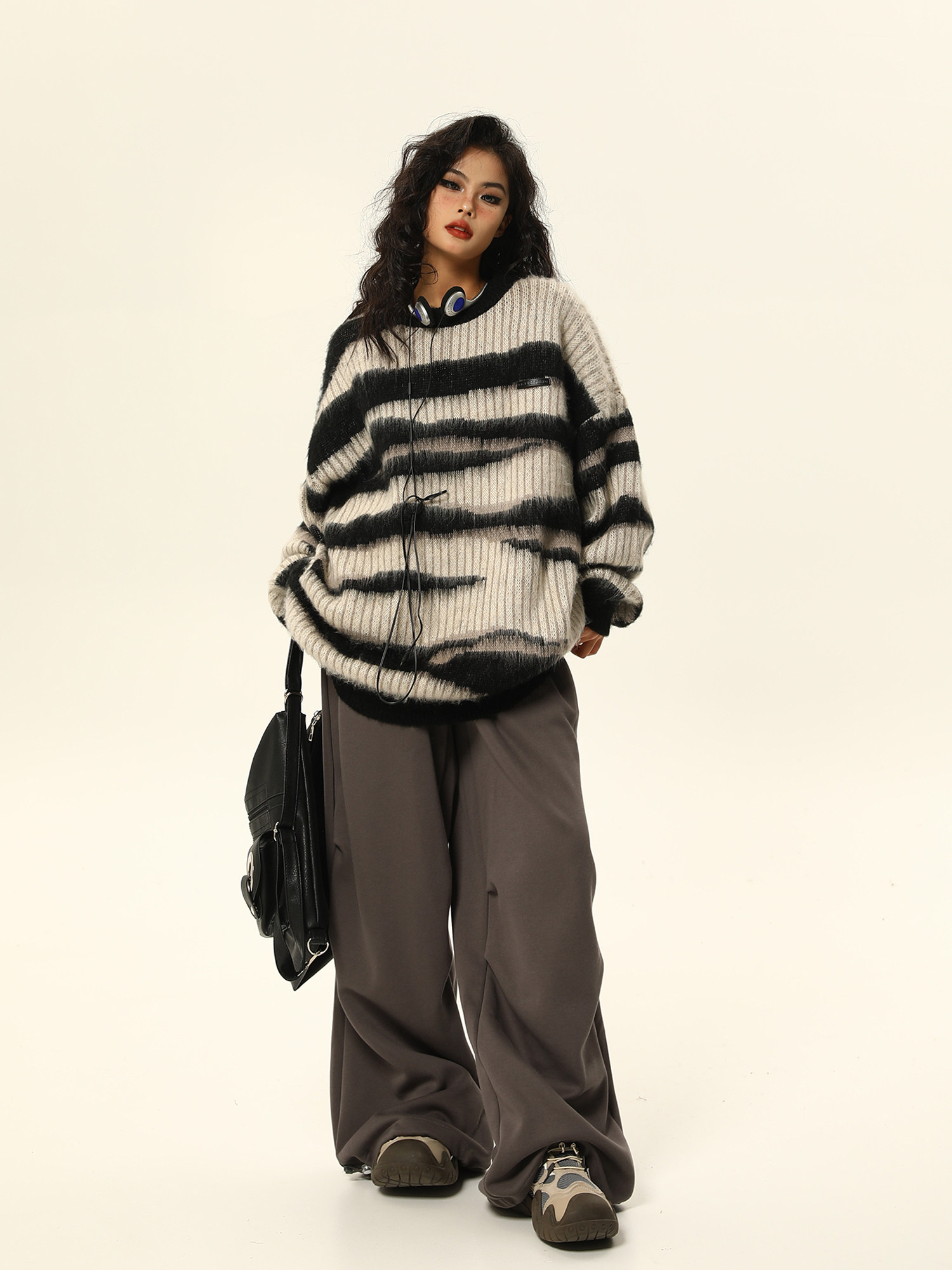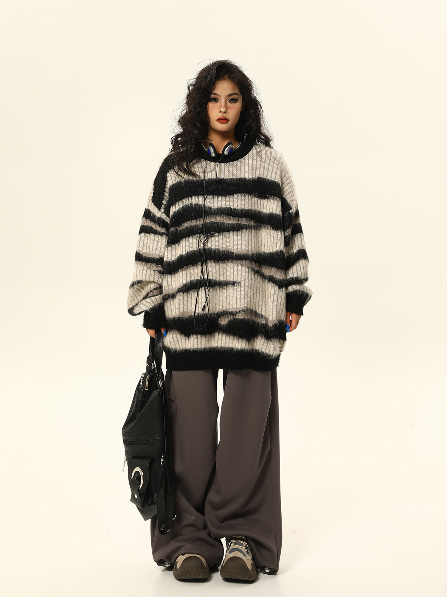 野生阿子美式復古馬海毛條紋毛衣女春季慵嬾氛圍感情侶針織衫外套