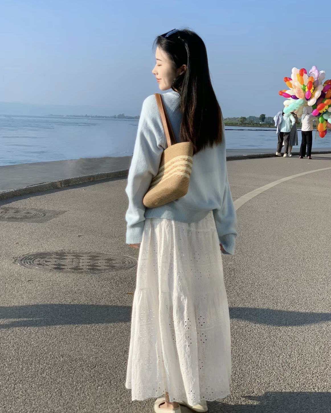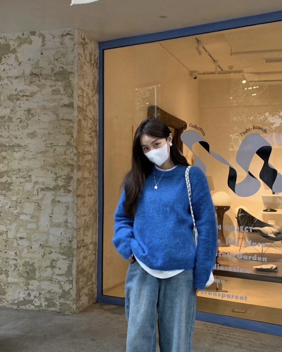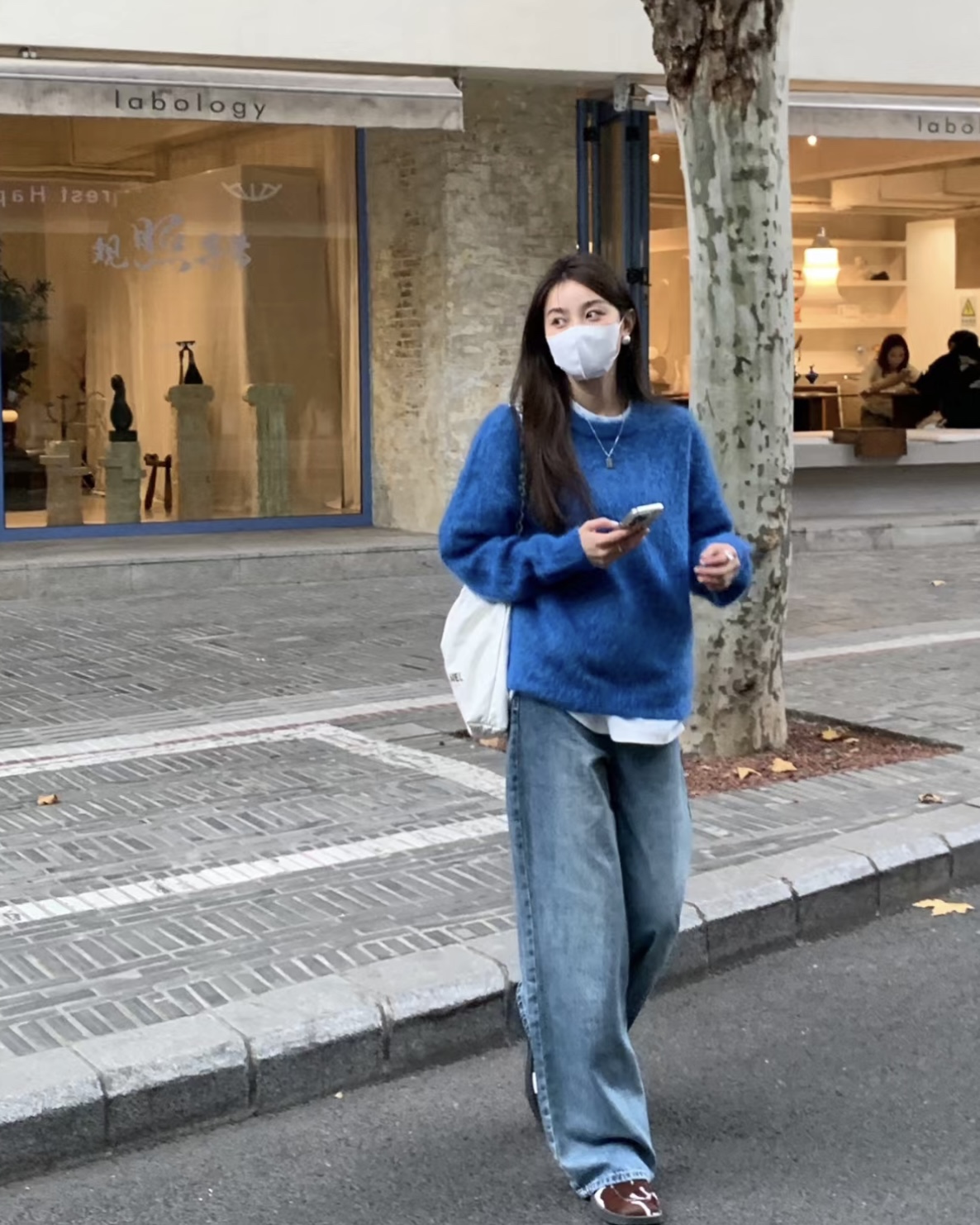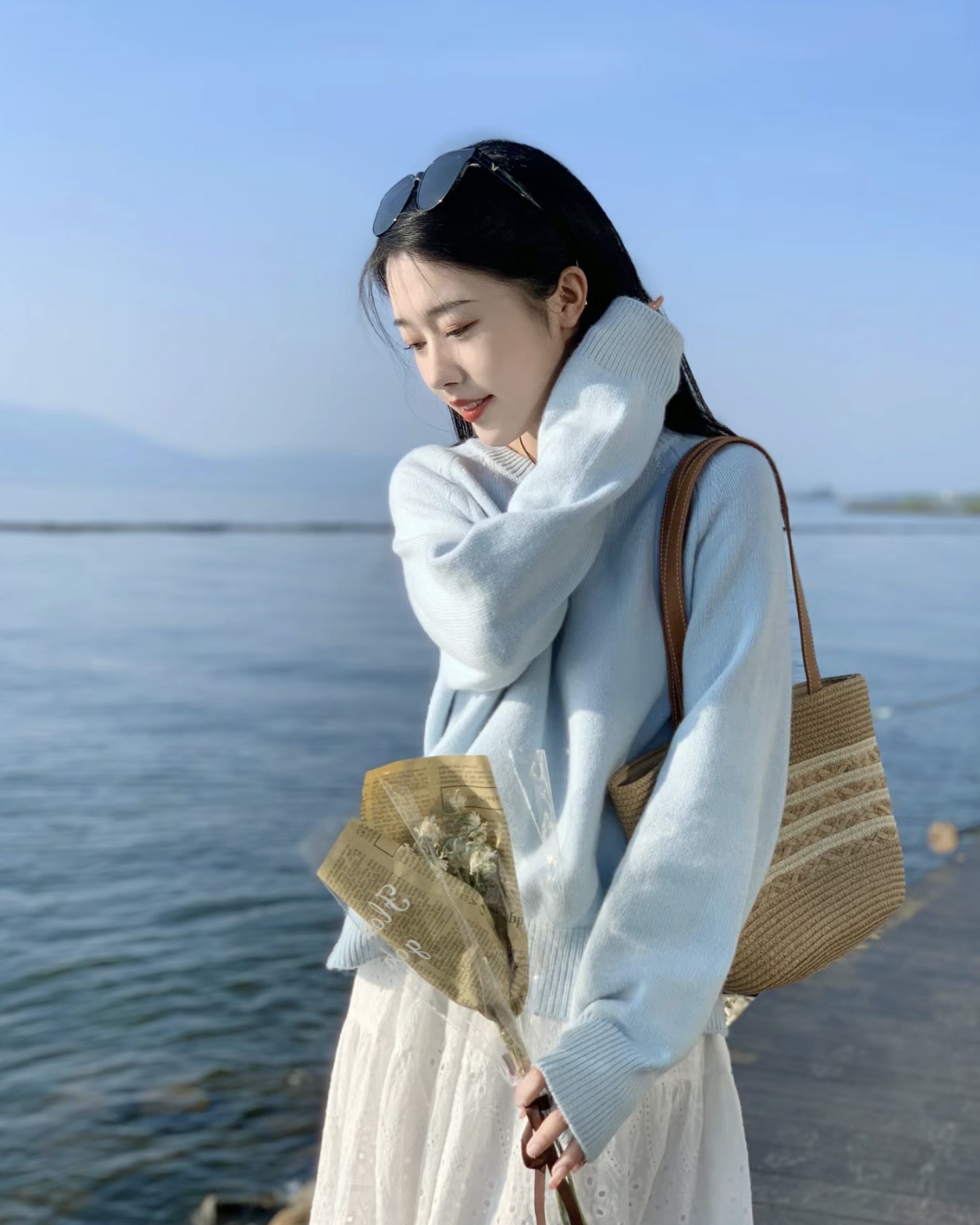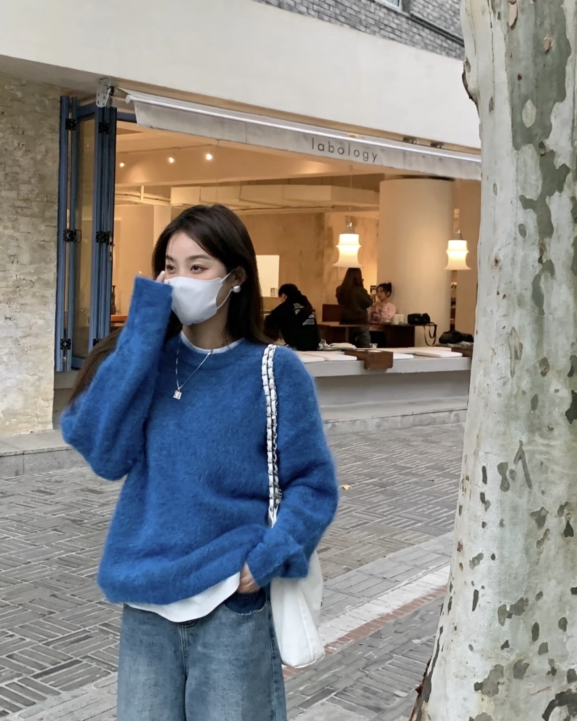 超顯白寶藍!小衆甜美套頭毛衣女冬季加厚氣質圓領復古針織衫外穿