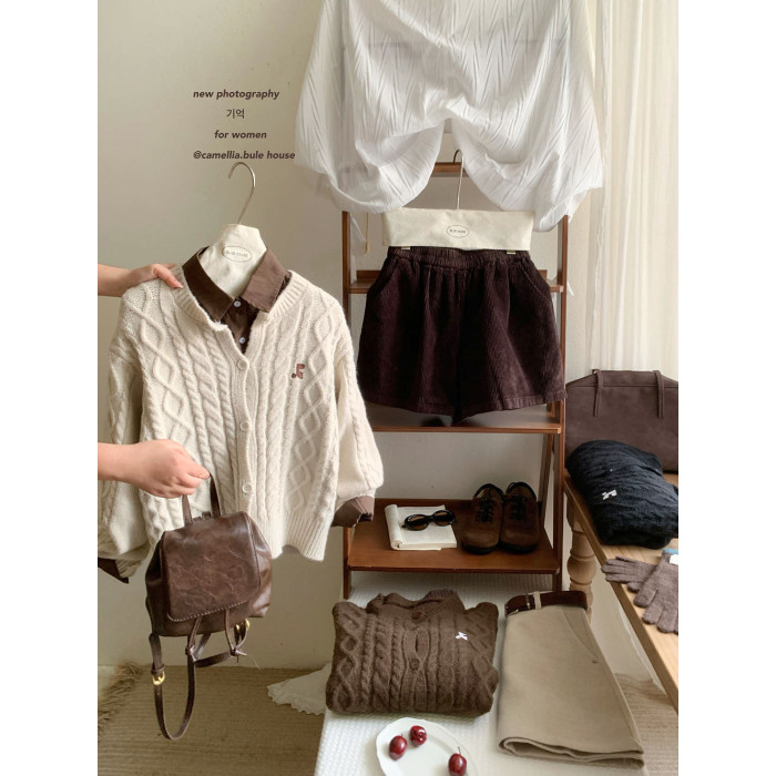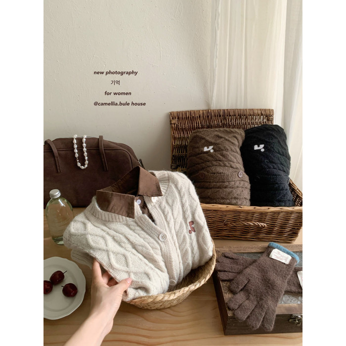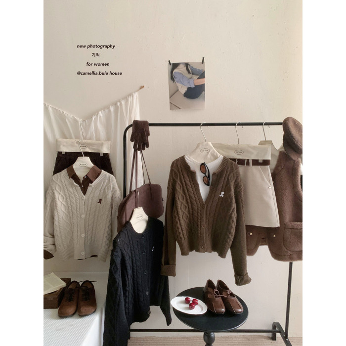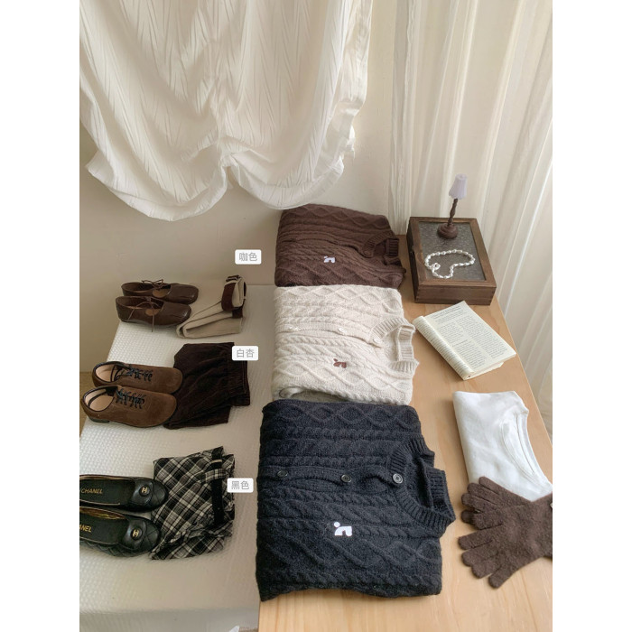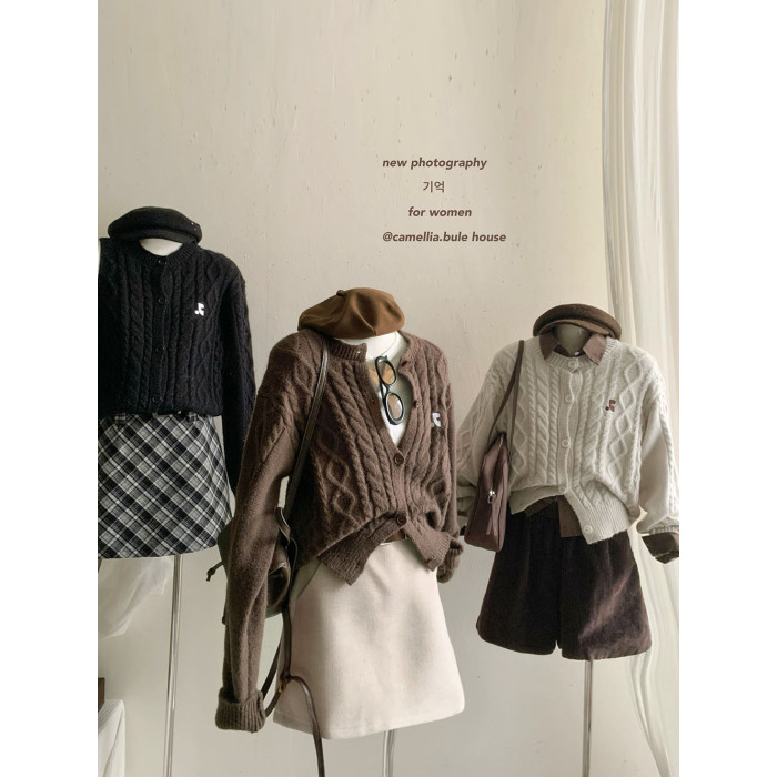 韓系麻花紋精緻刺綉針織毛衣女秋冬季溫柔設計感休閒開衫外套上衣