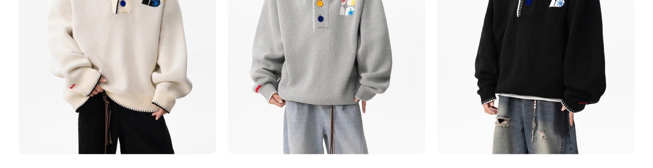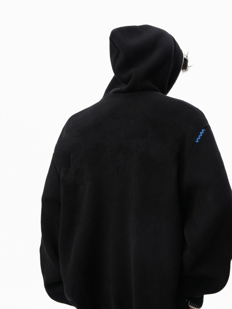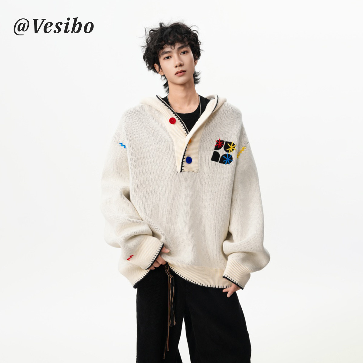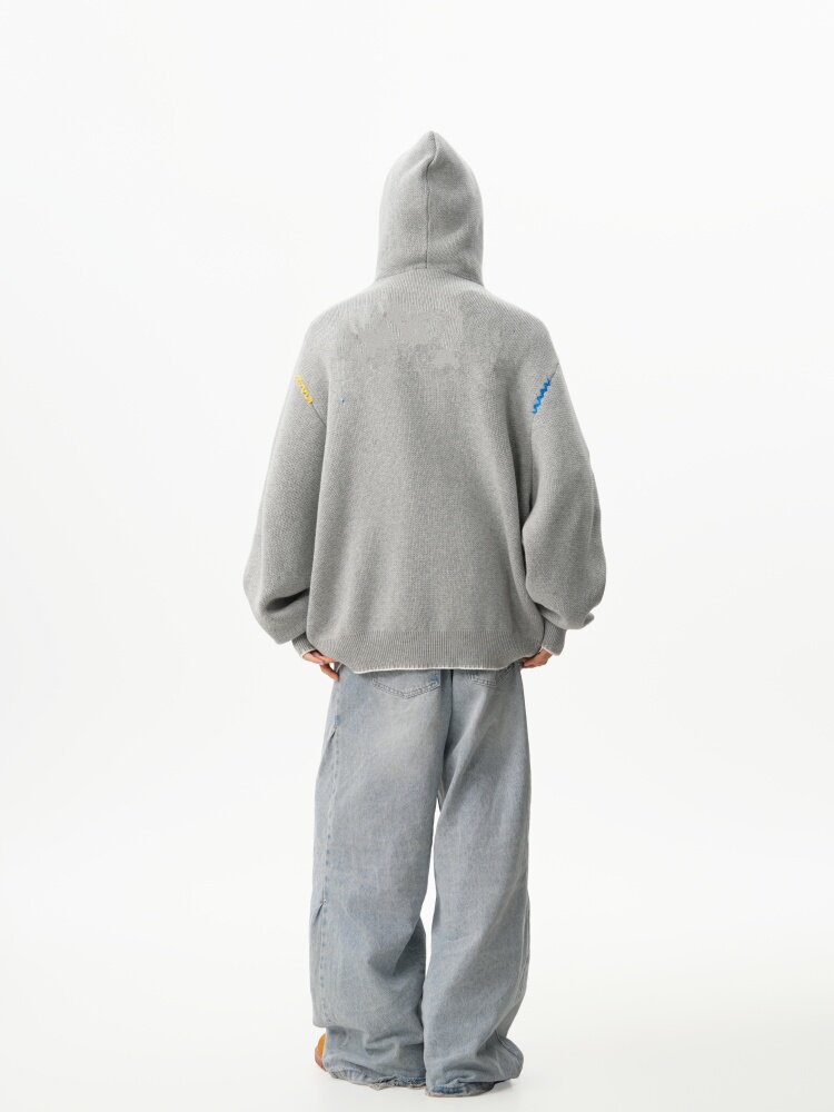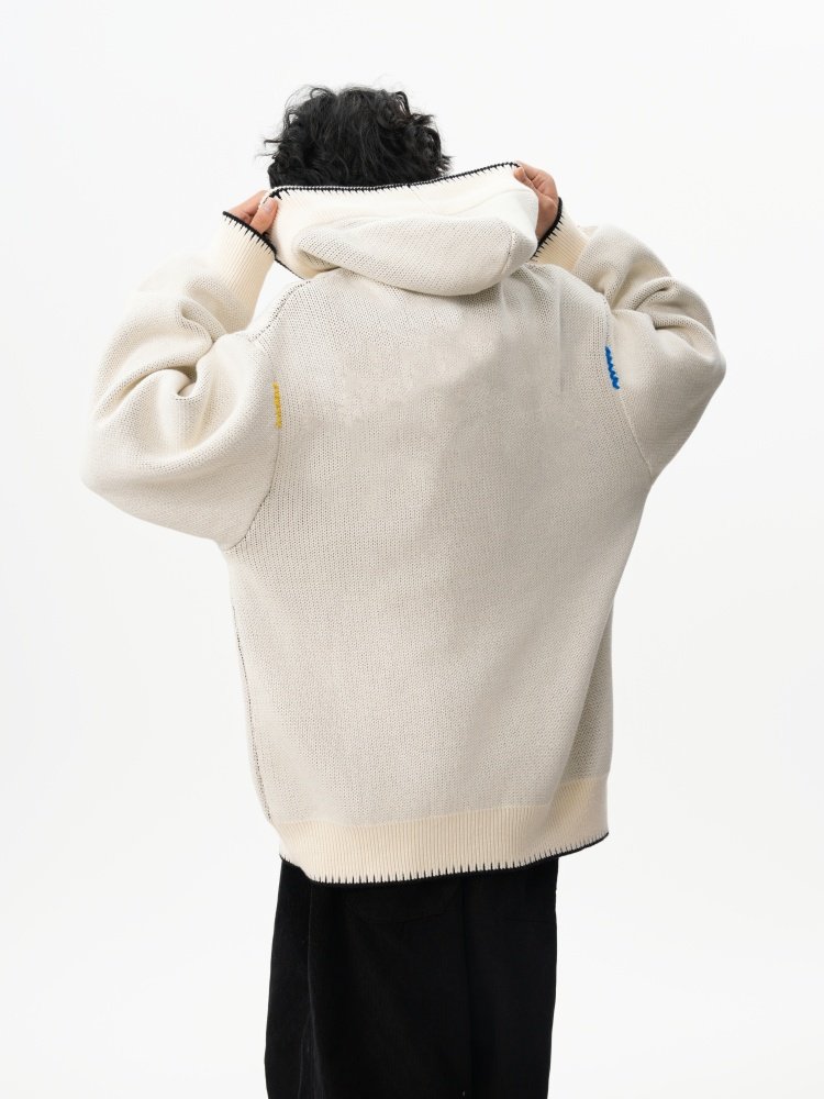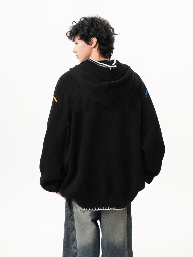 美式彩色紐釦連帽毛衣男冬季重磅刺綉針織衫外套高街百搭情侶上衣