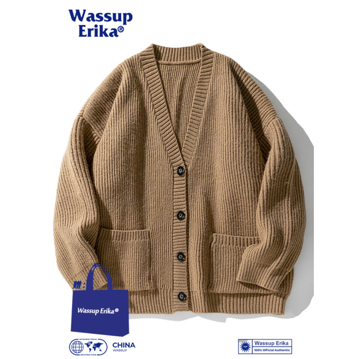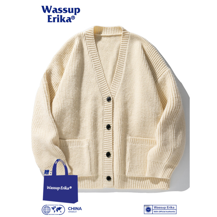 WASSUP ERIKA日系慵懶風V領針織衫毛衣男女秋冬寬松百搭開衫外套