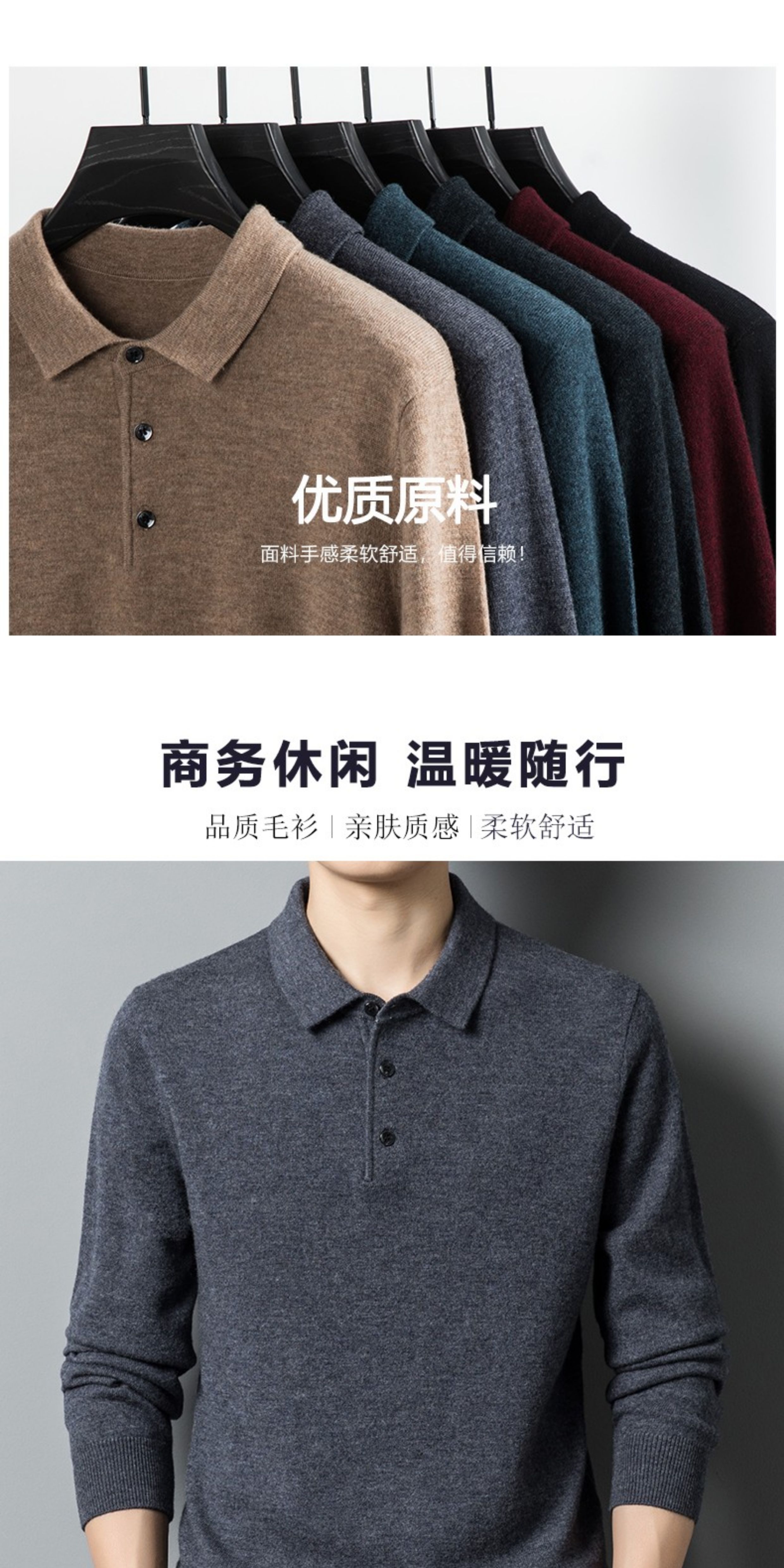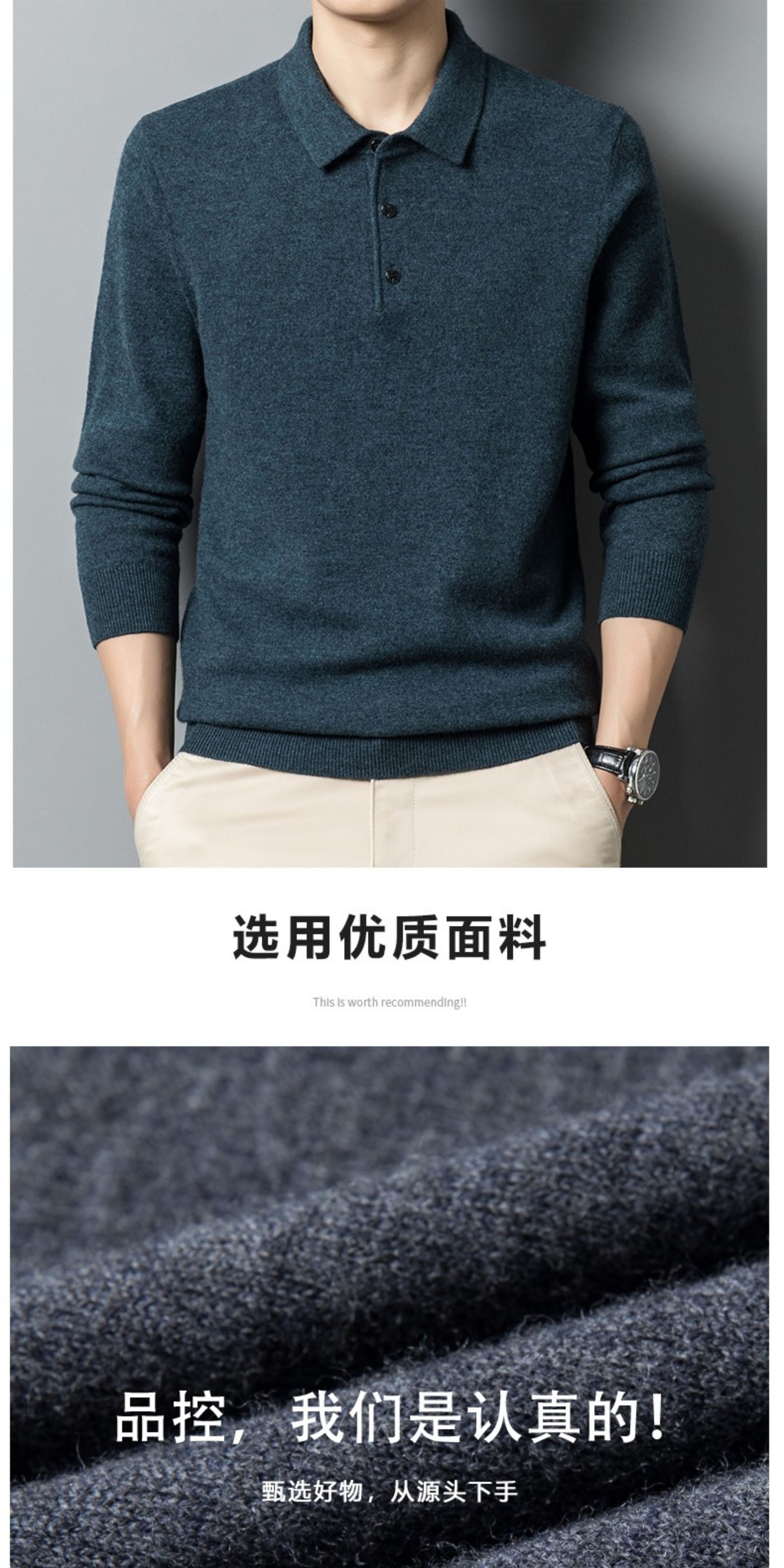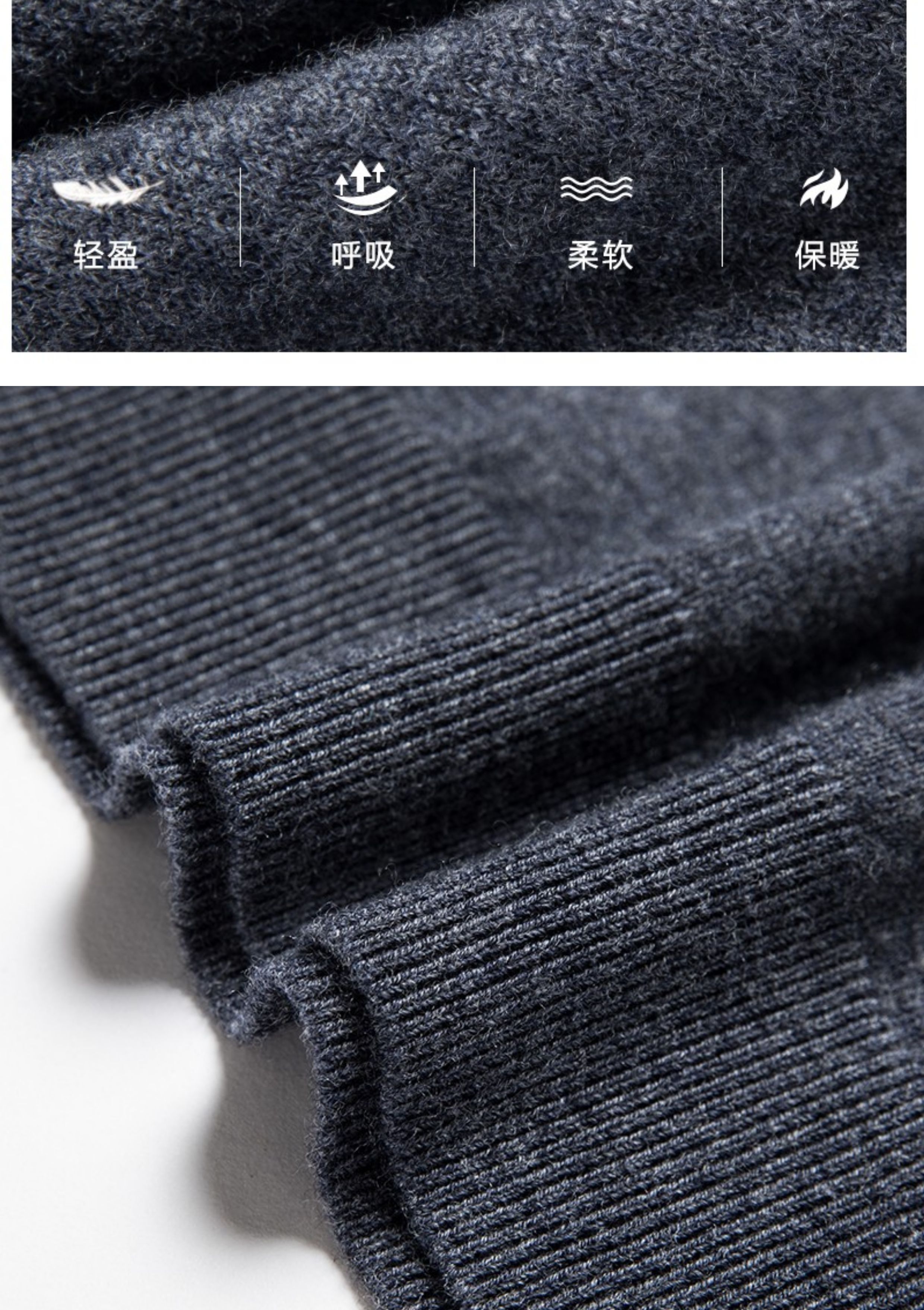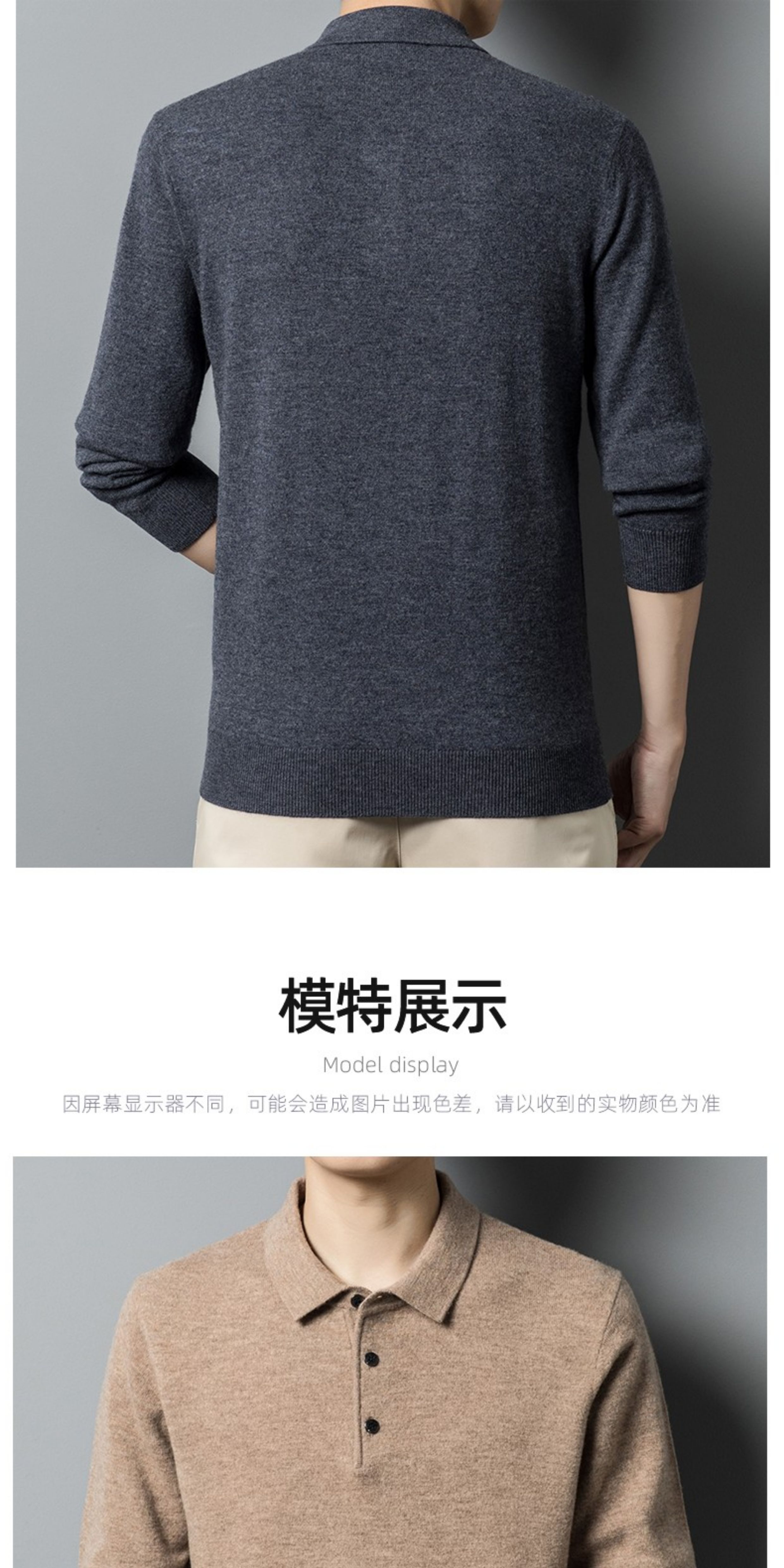 男士加厚保暖100%純色毛衫冬季新款翻領長袖寬松休閒毛衣男針織衫