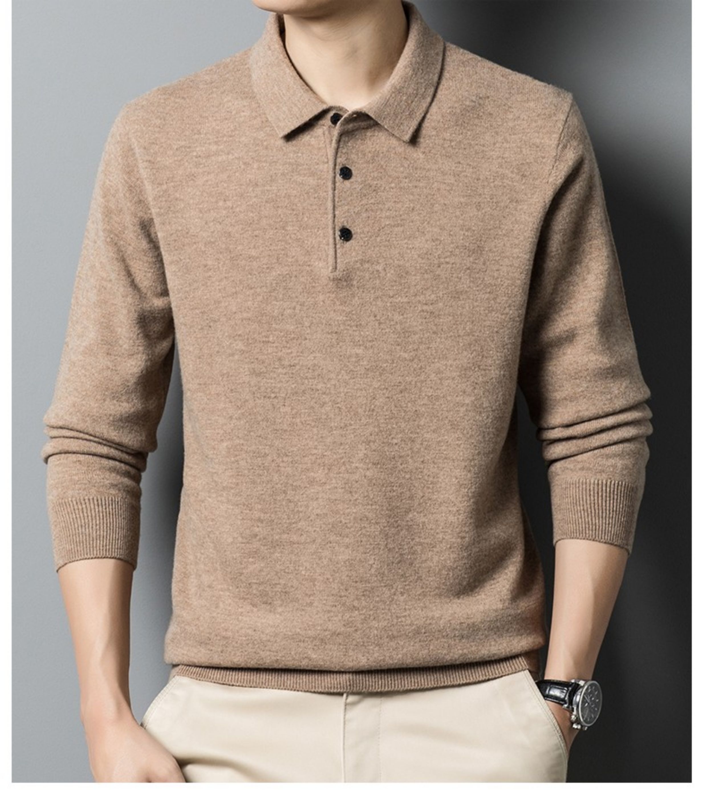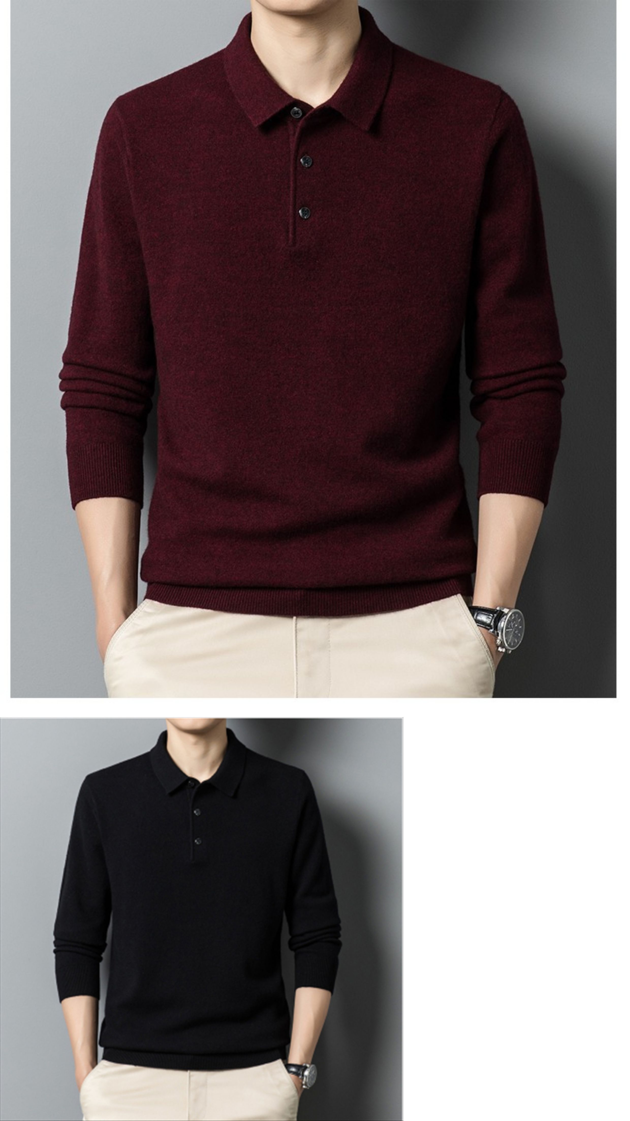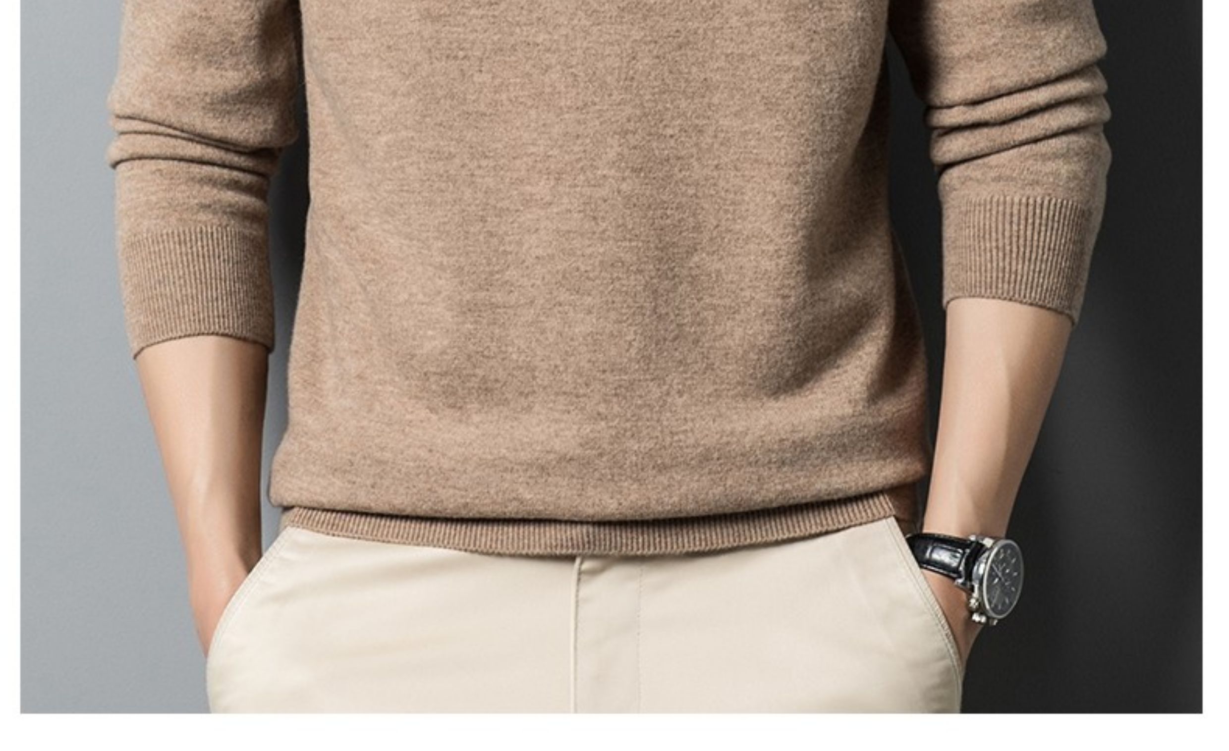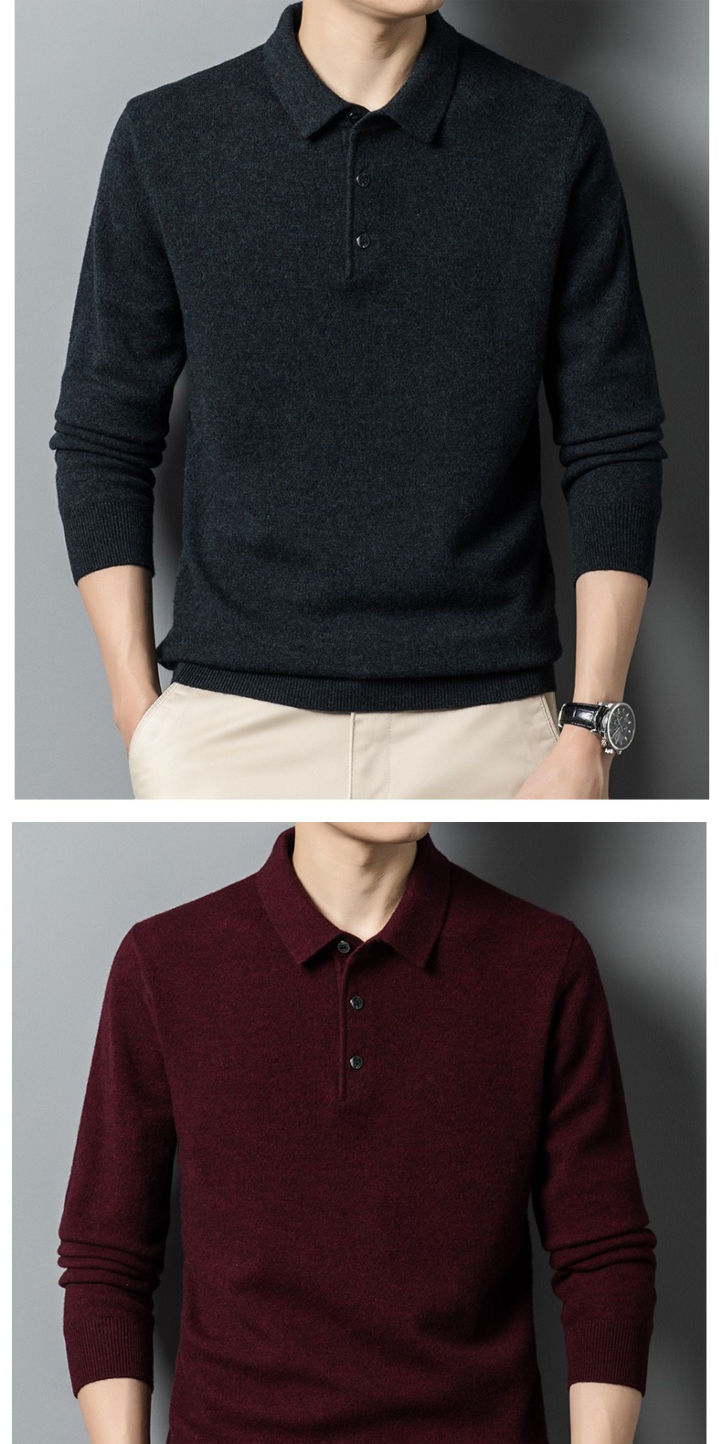 男士加厚保暖100%純色毛衫冬季新款翻領長袖寬松休閒毛衣男針織衫