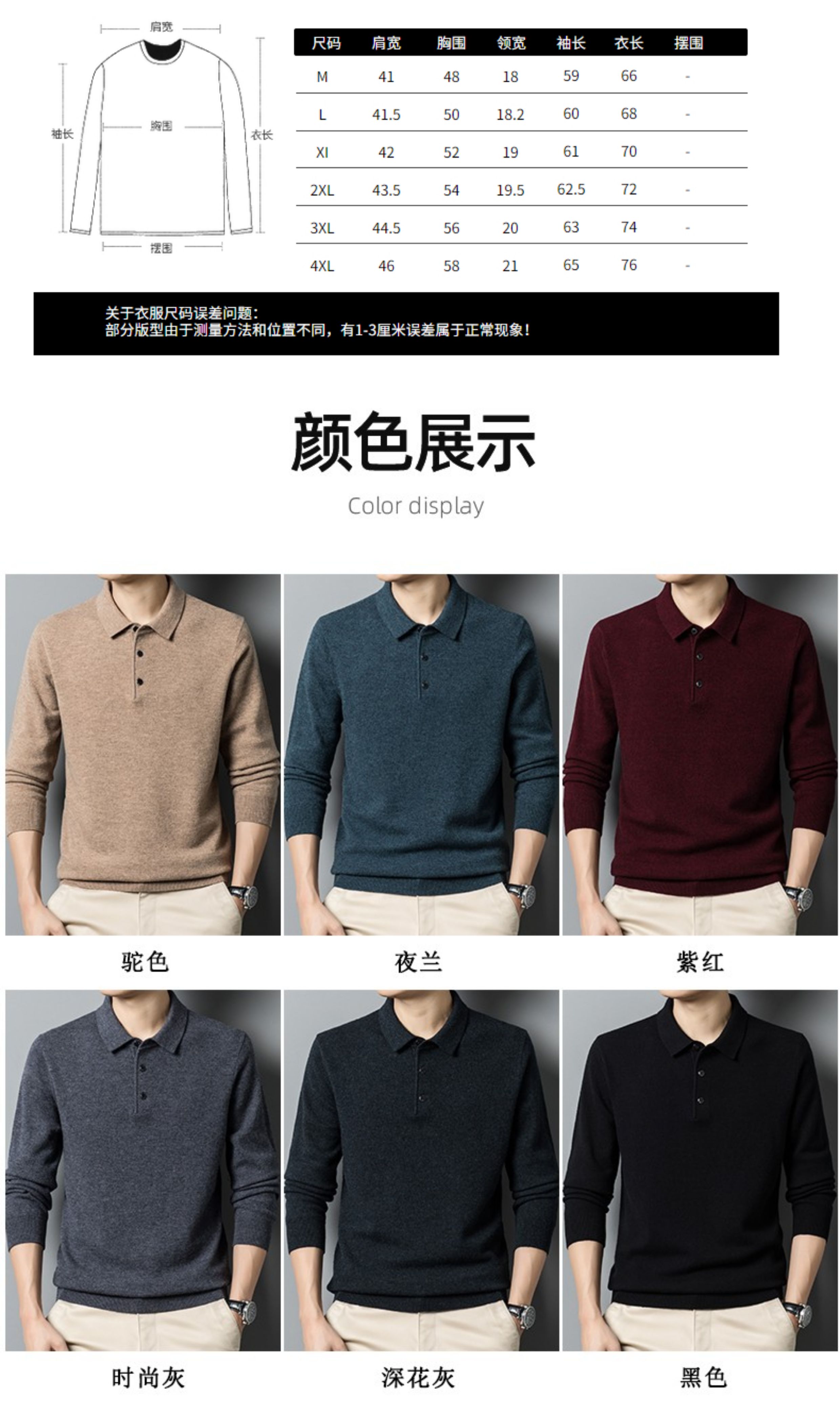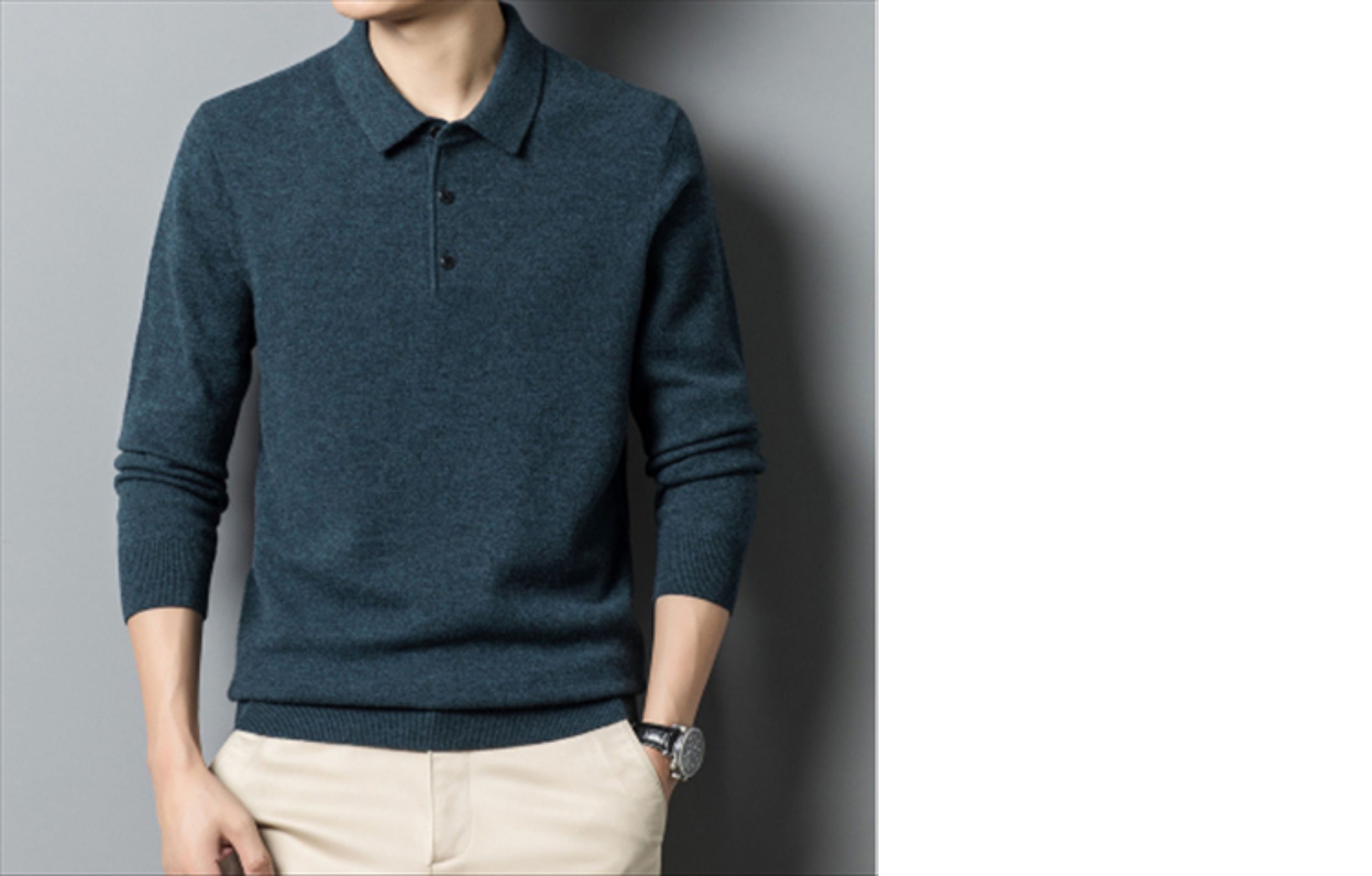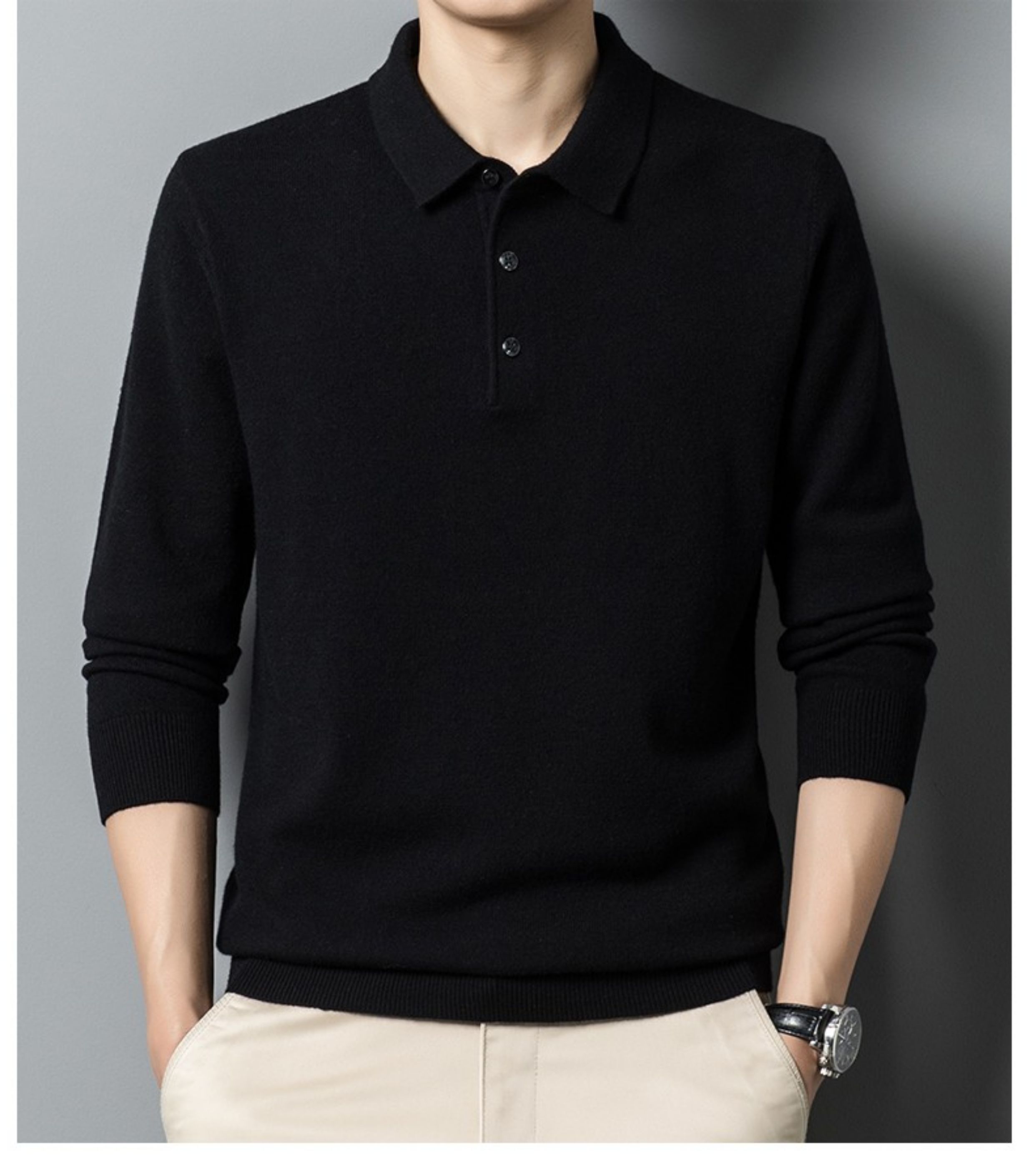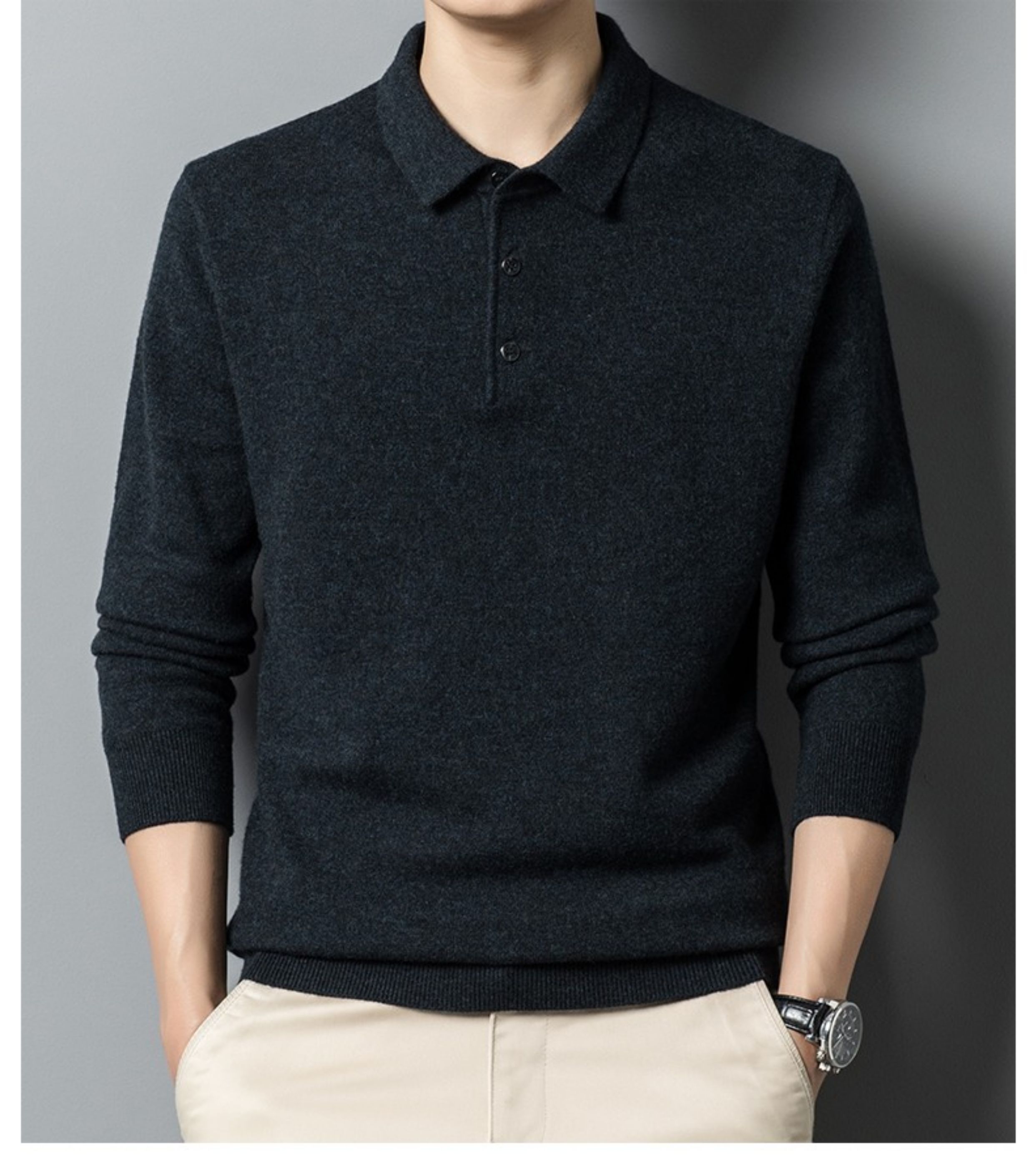 男士加厚保暖100%純色毛衫冬季新款翻領長袖寬松休閒毛衣男針織衫