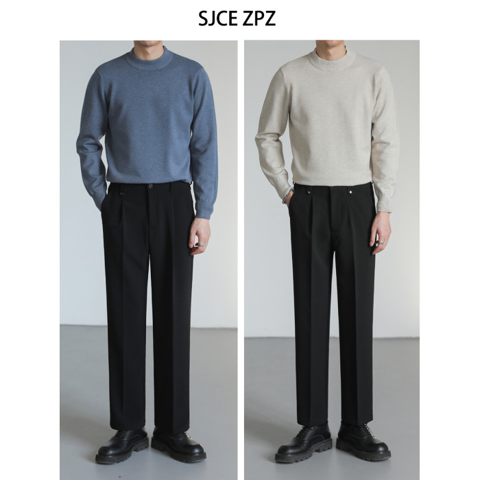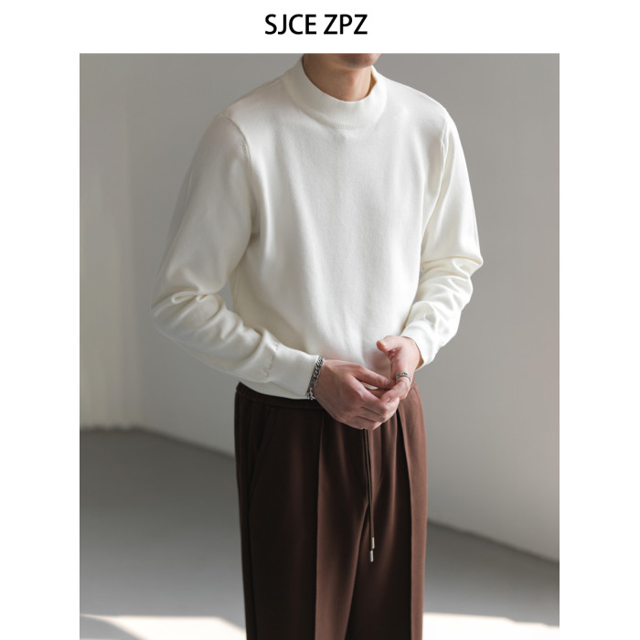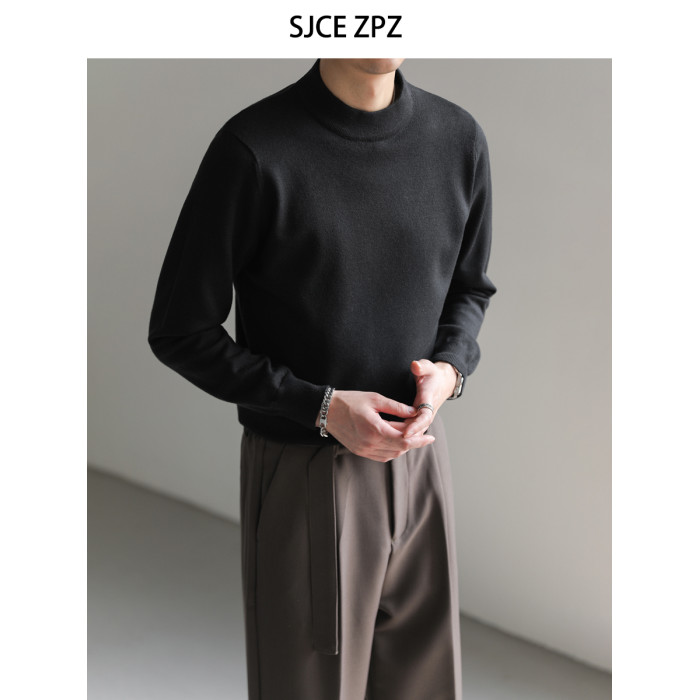 ZPZ秋冬季韓版修身套頭羊毛針織衫 男士半高領毛衣純色內搭打底衫