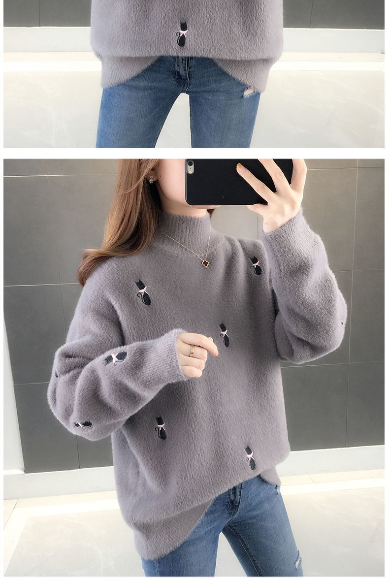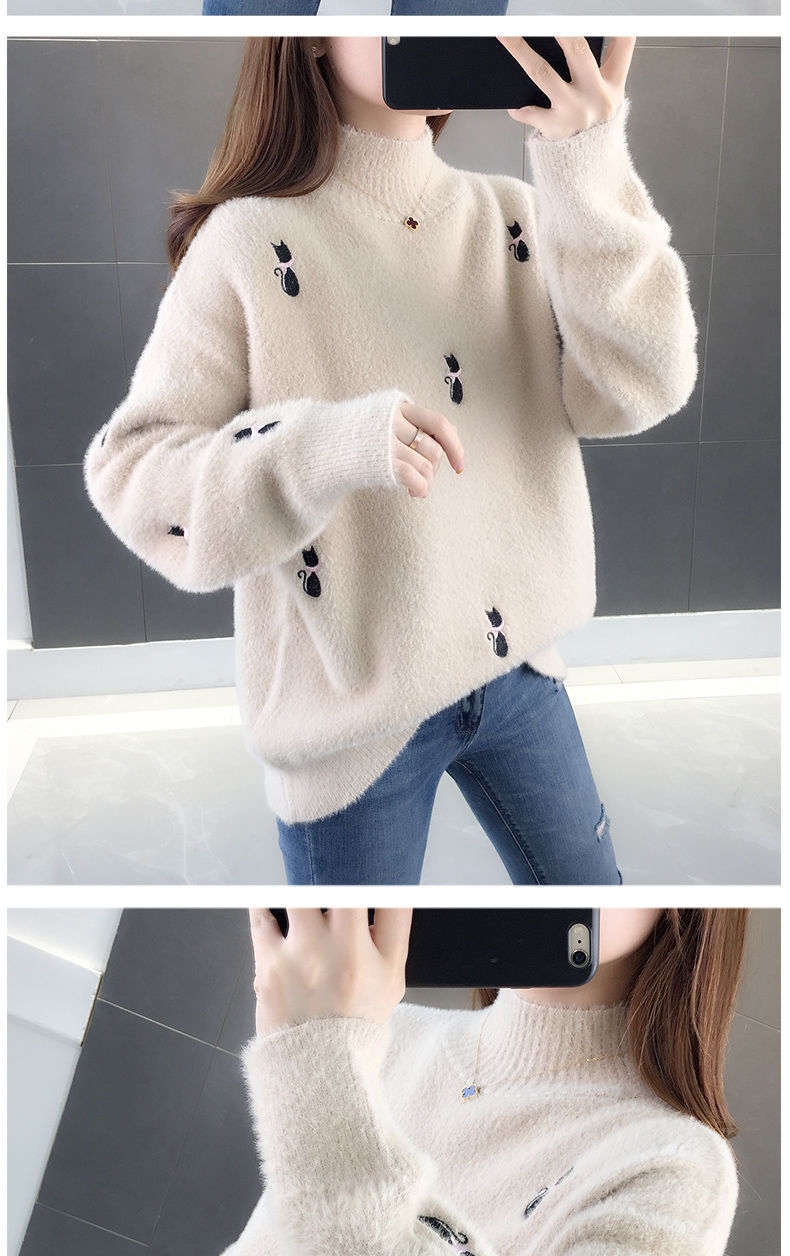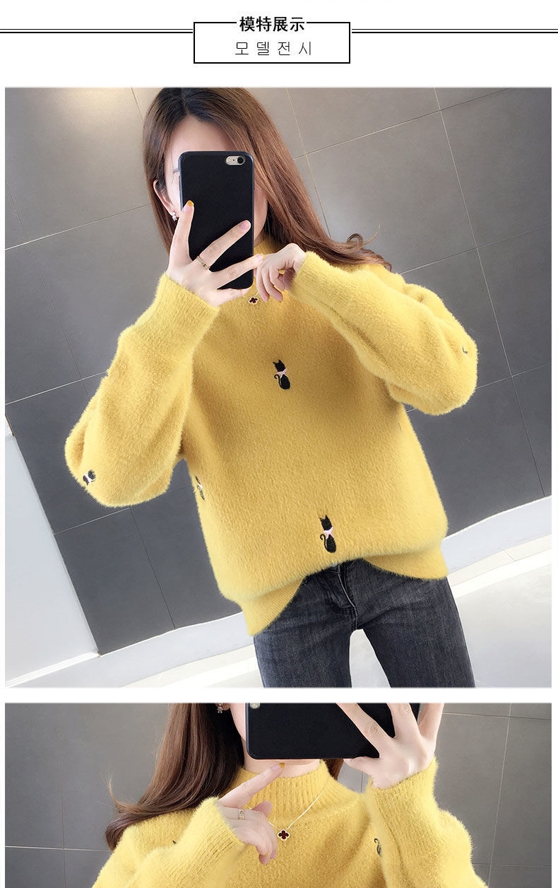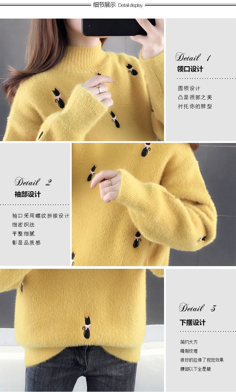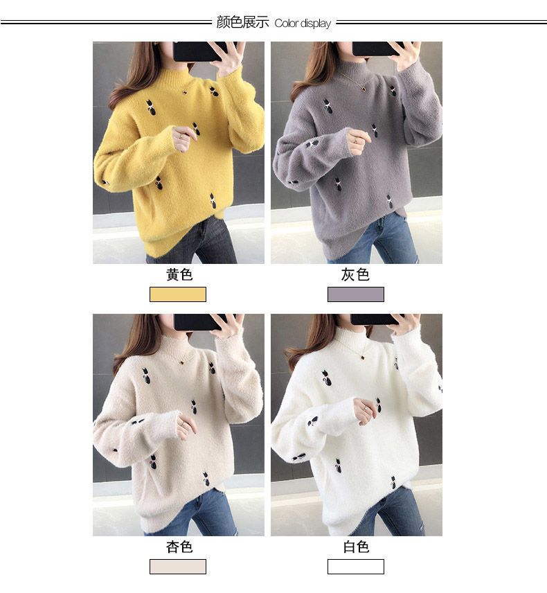 水貂絨毛衣女2025秋冬新款寬松內搭慵懶短款半高領加厚針織打底衫