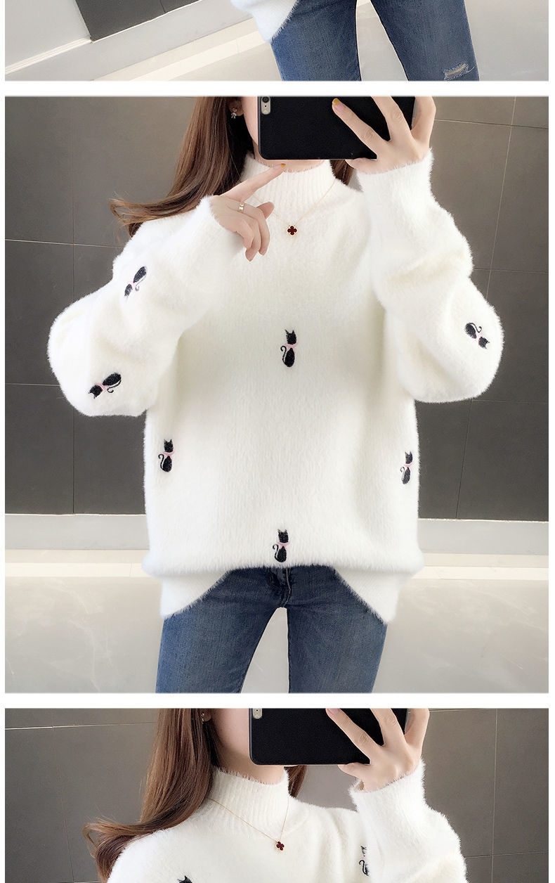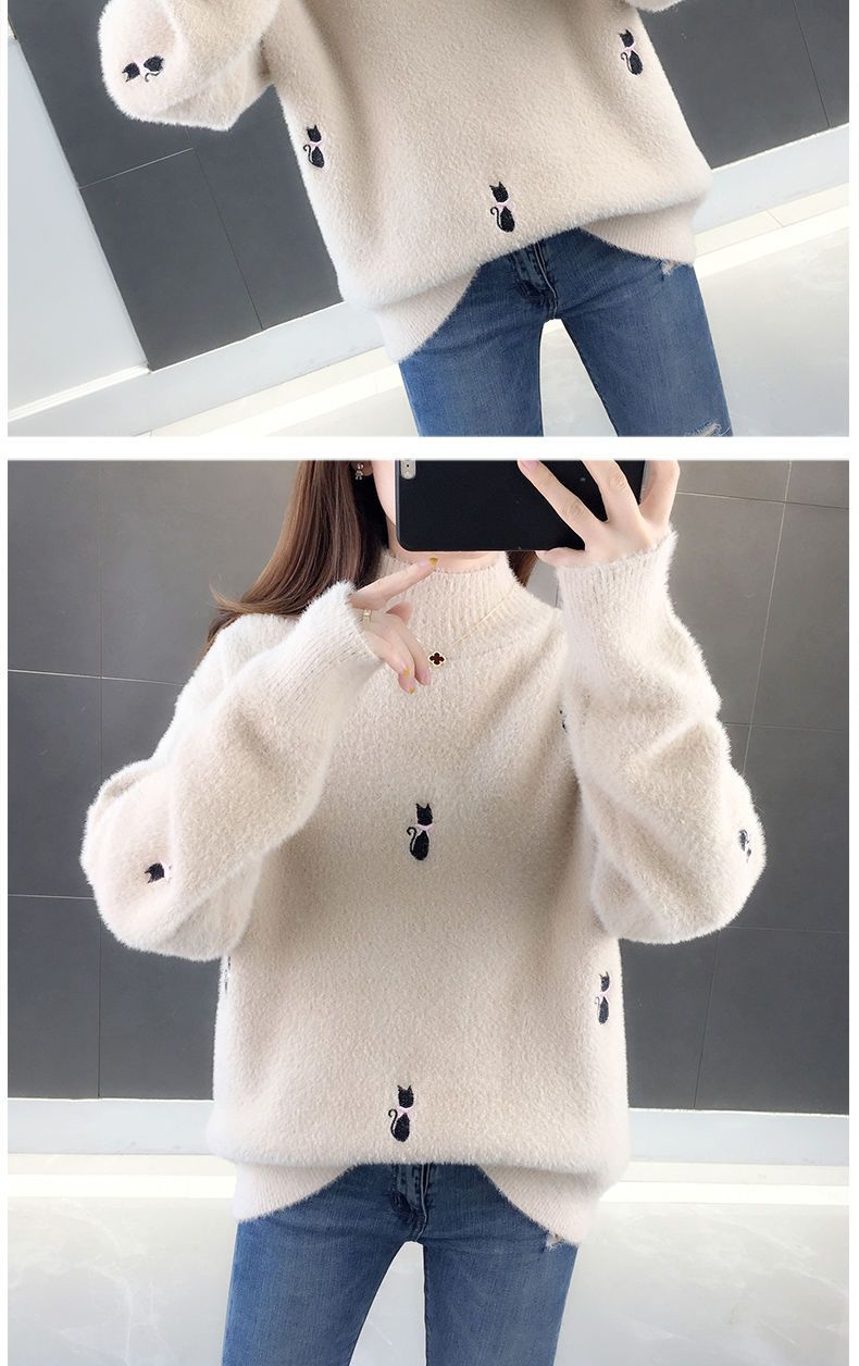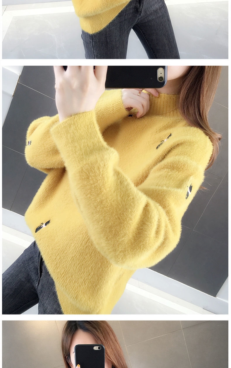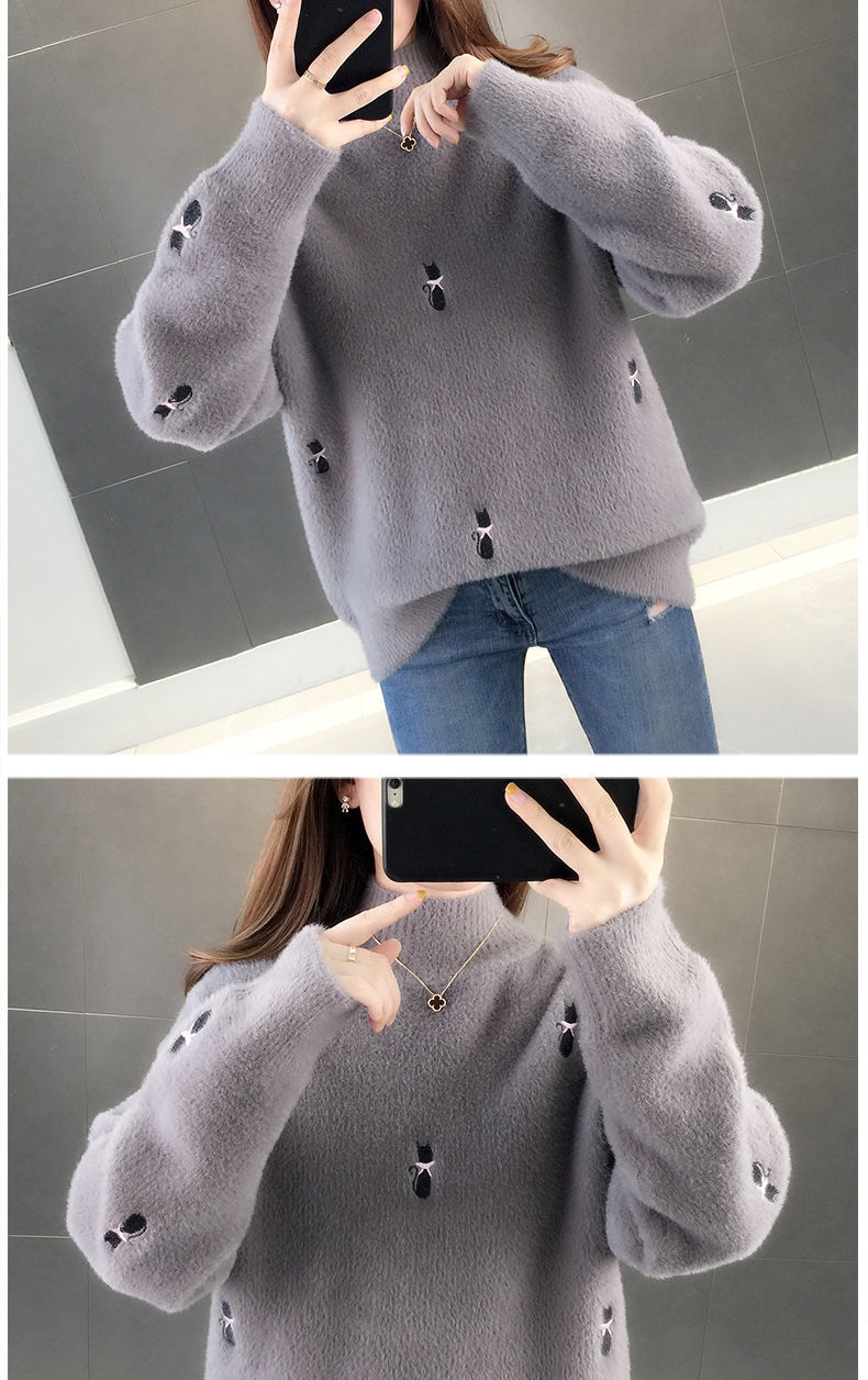 水貂絨毛衣女2025秋冬新款寬松內搭慵懶短款半高領加厚針織打底衫