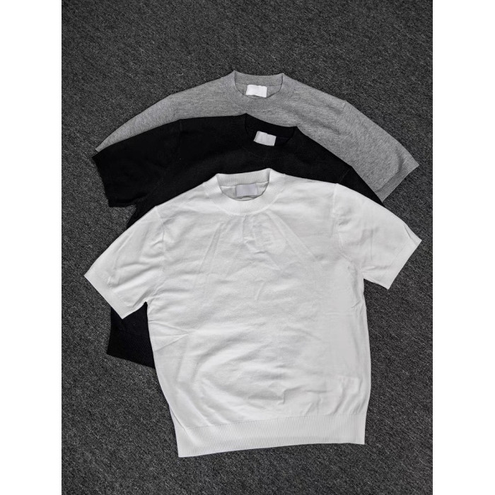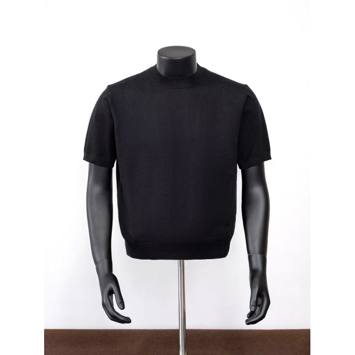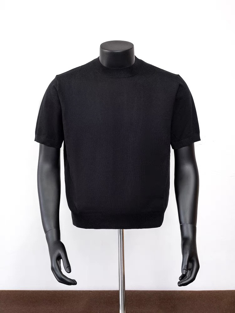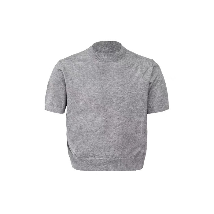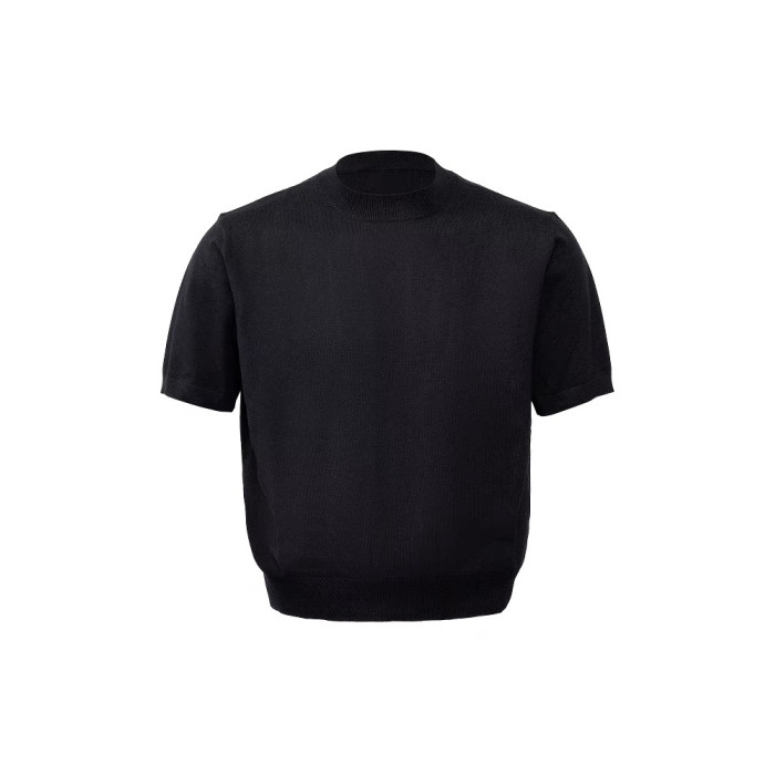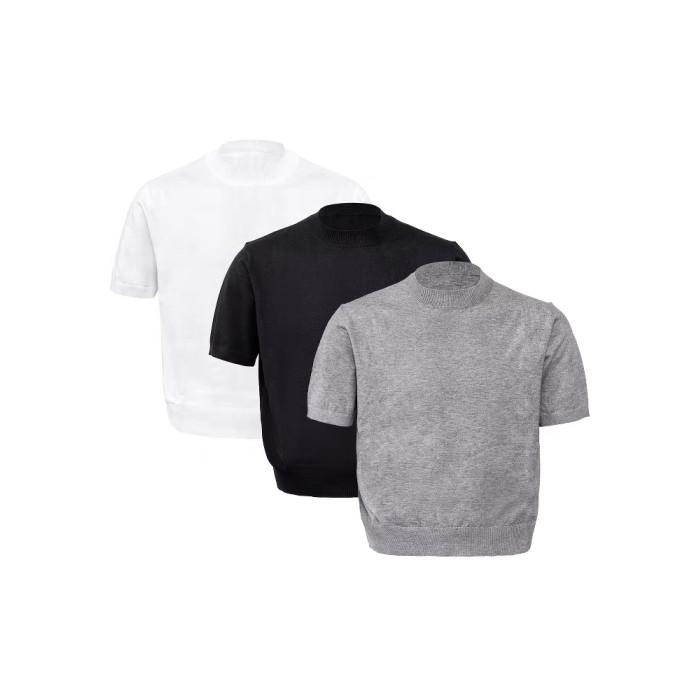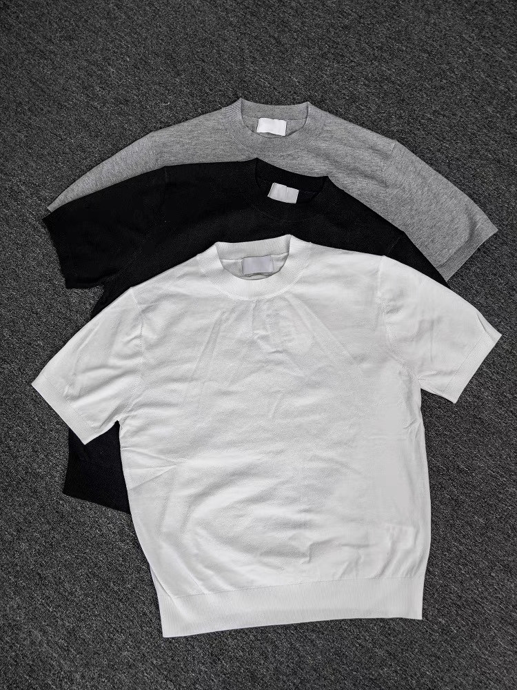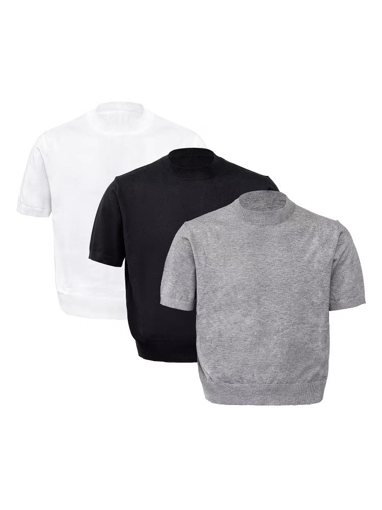 老錢風復古正肩針織小圓領短袖男休閒短款夏涼感三色修身T恤上衣