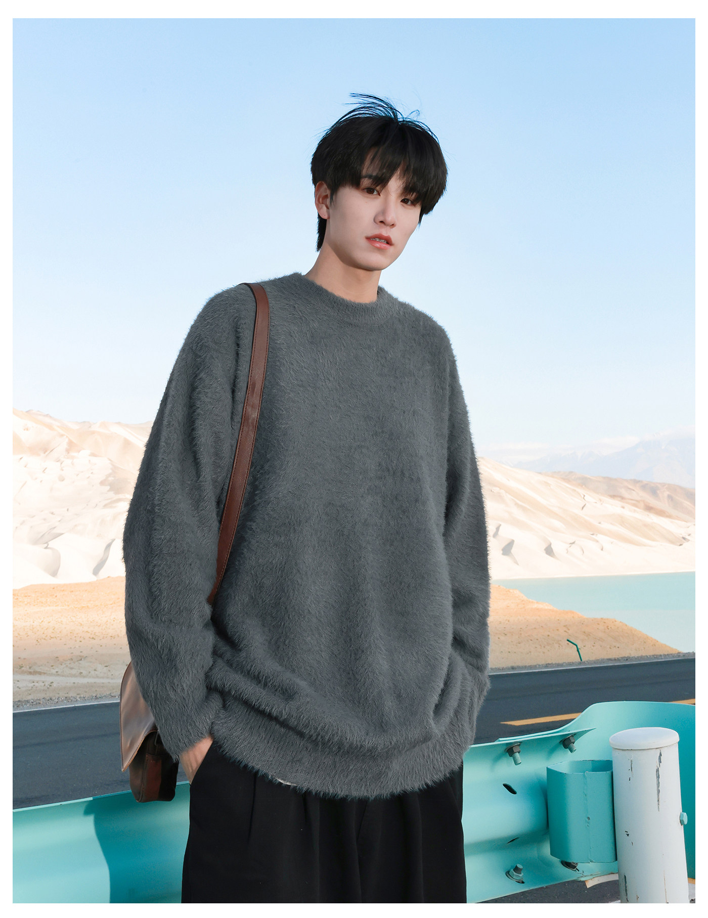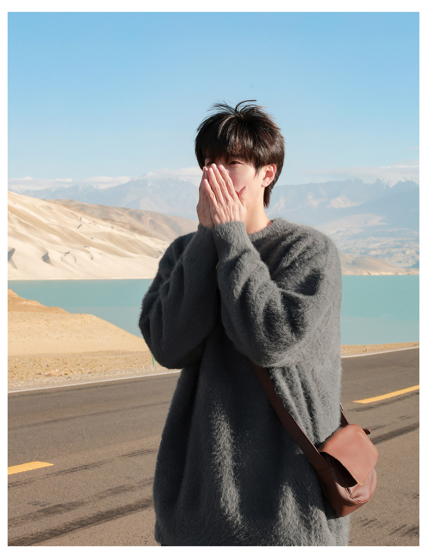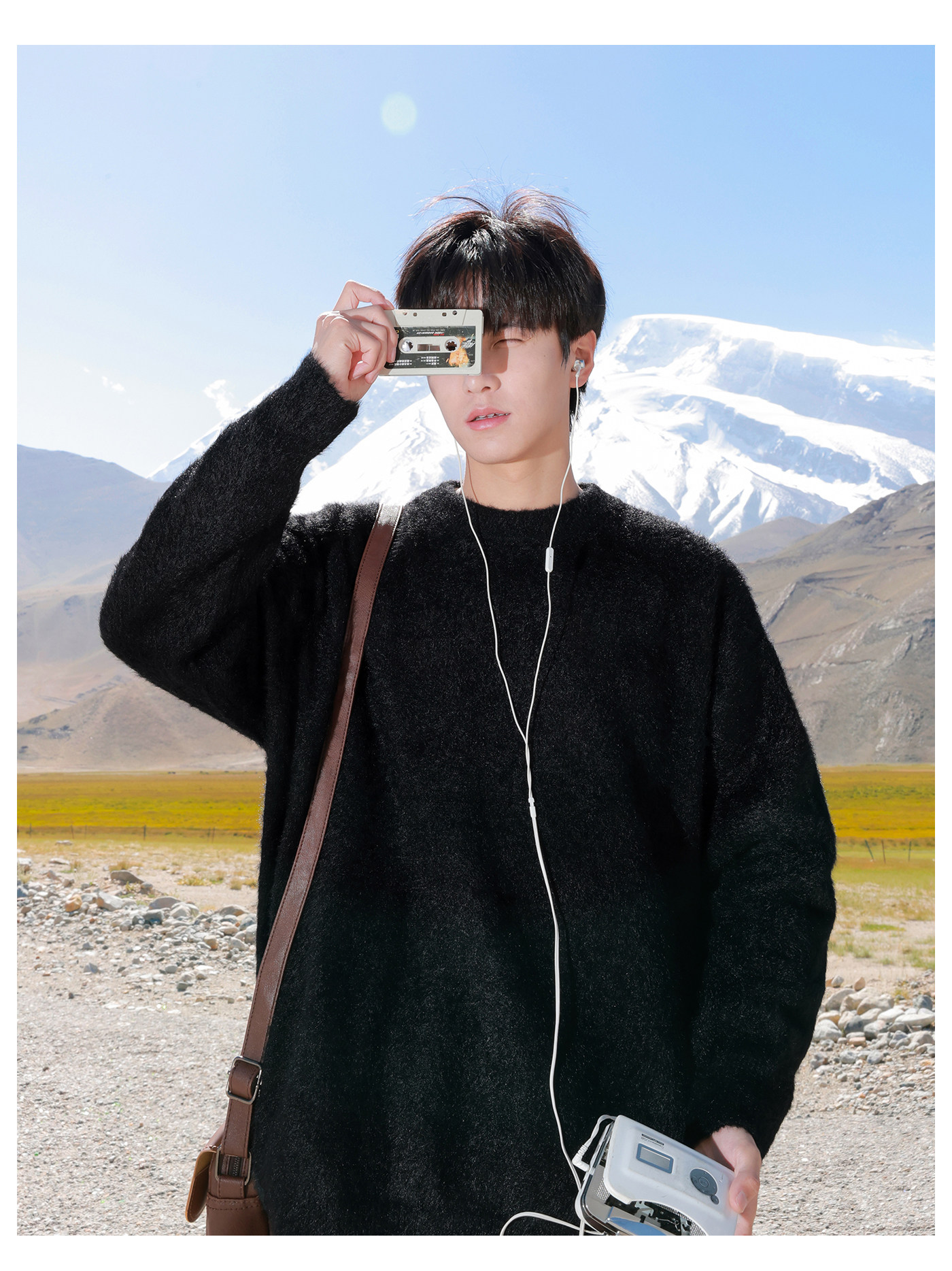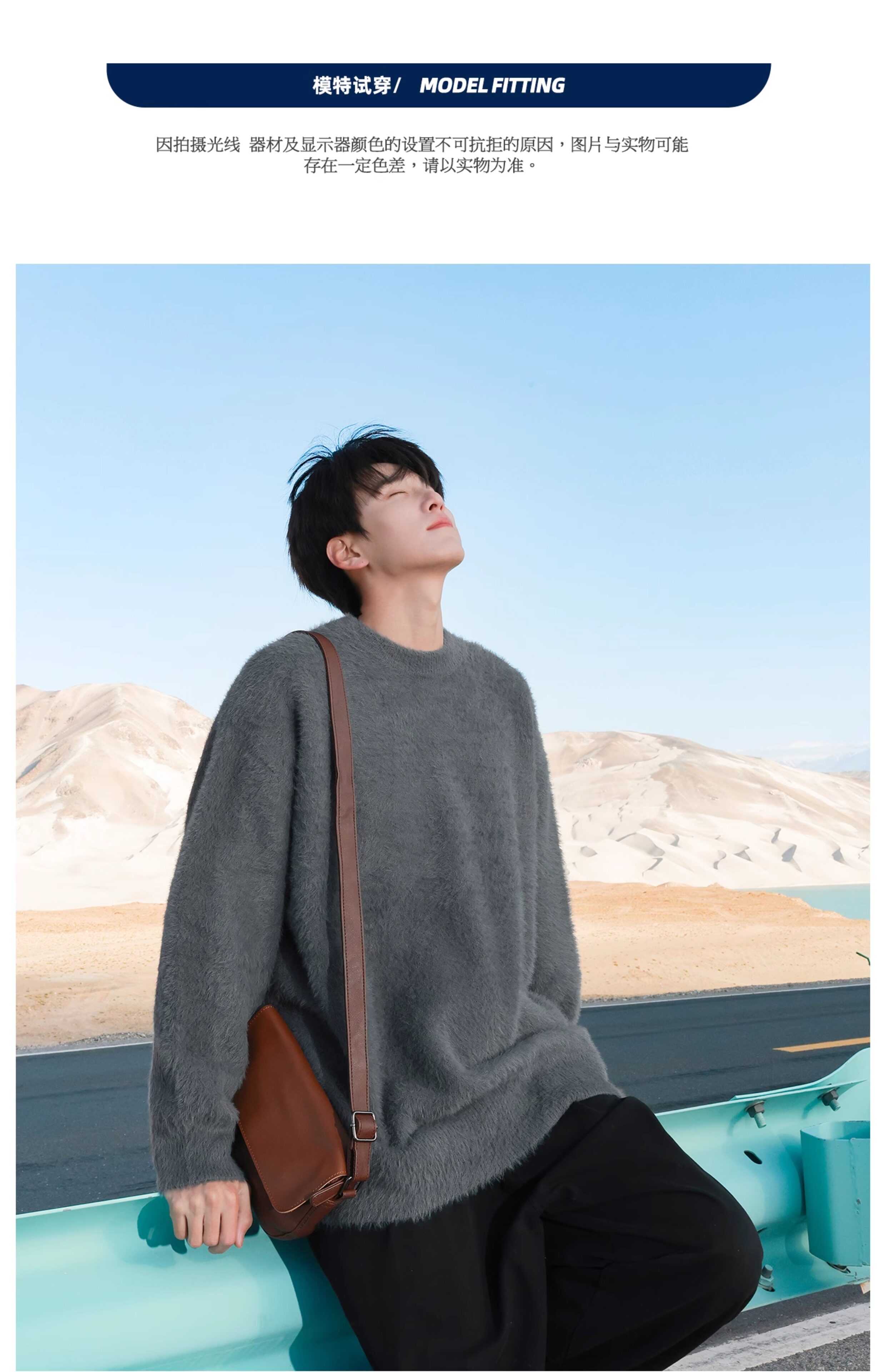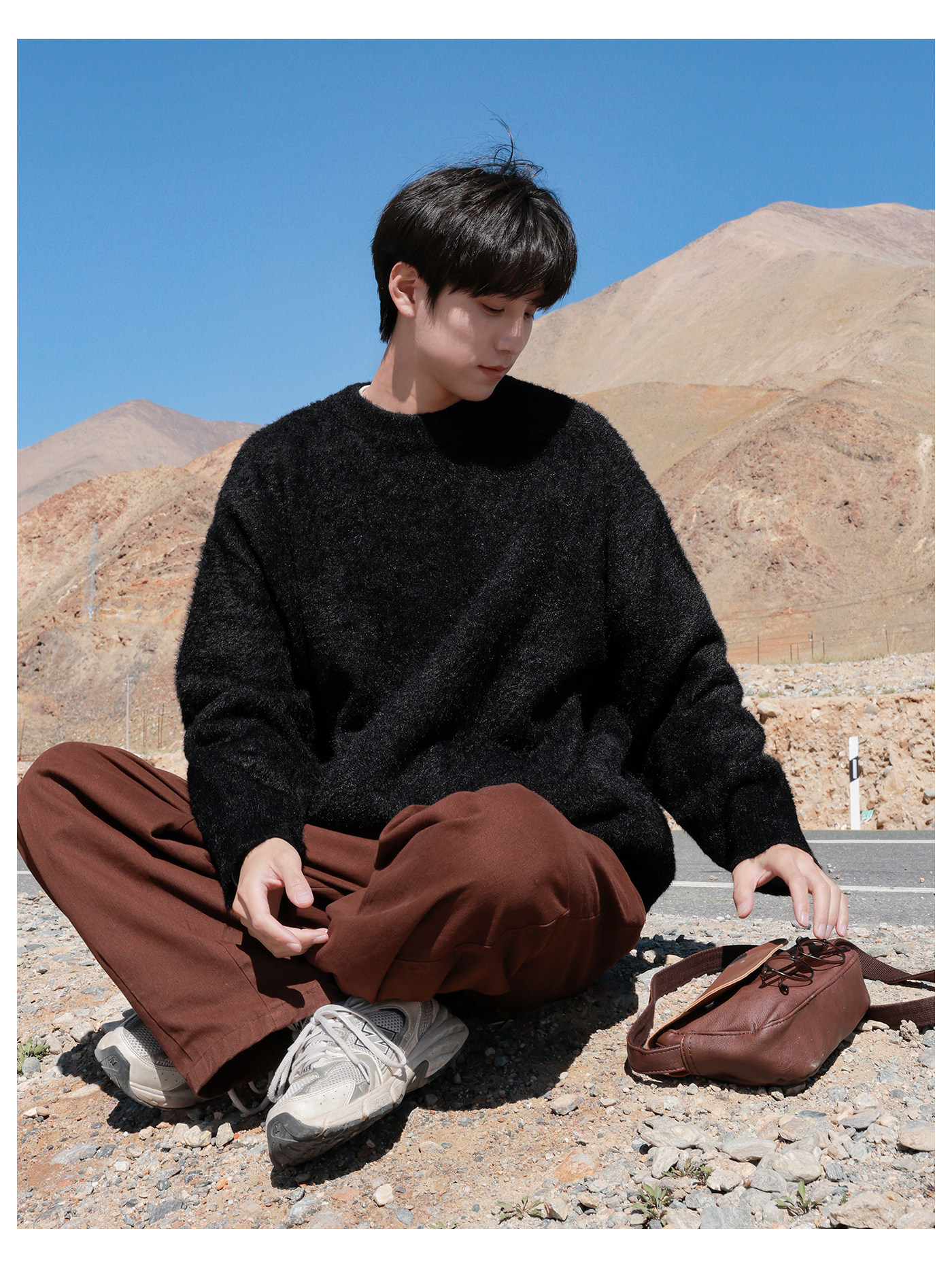 @港仔文藝男 日系仿馬海毛毛衣男秋冬新款冬季男生圓領針織衫上衣