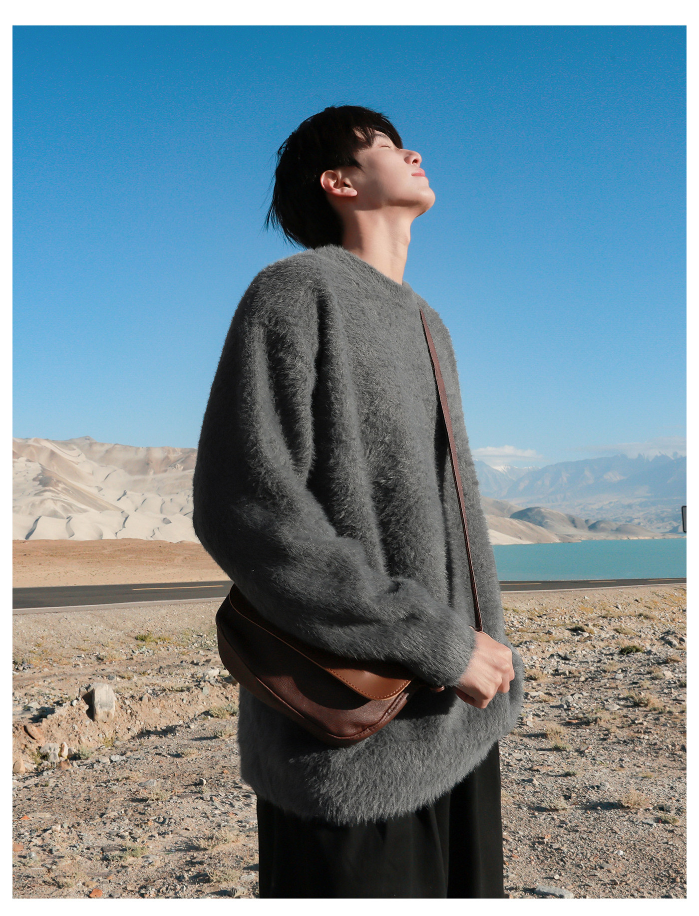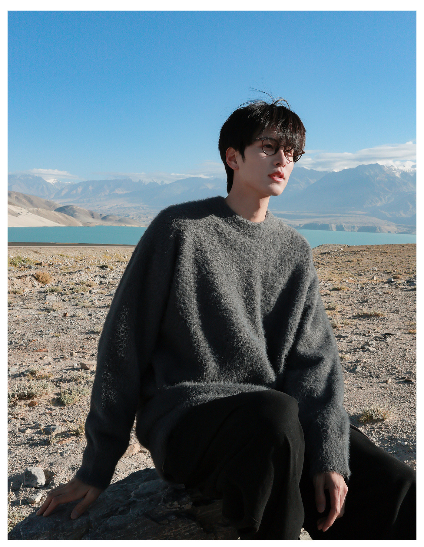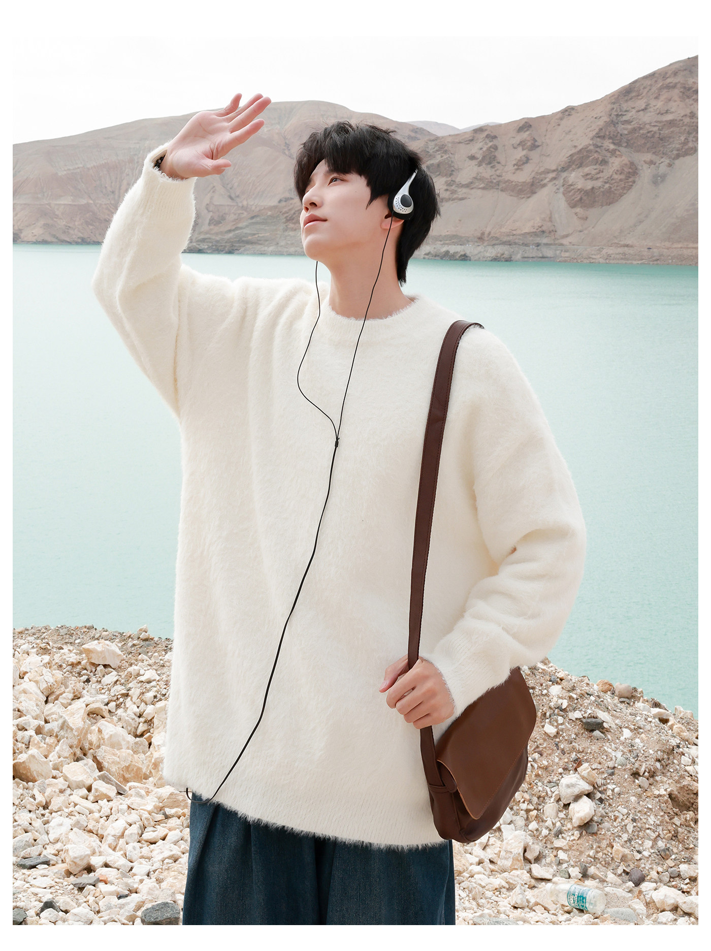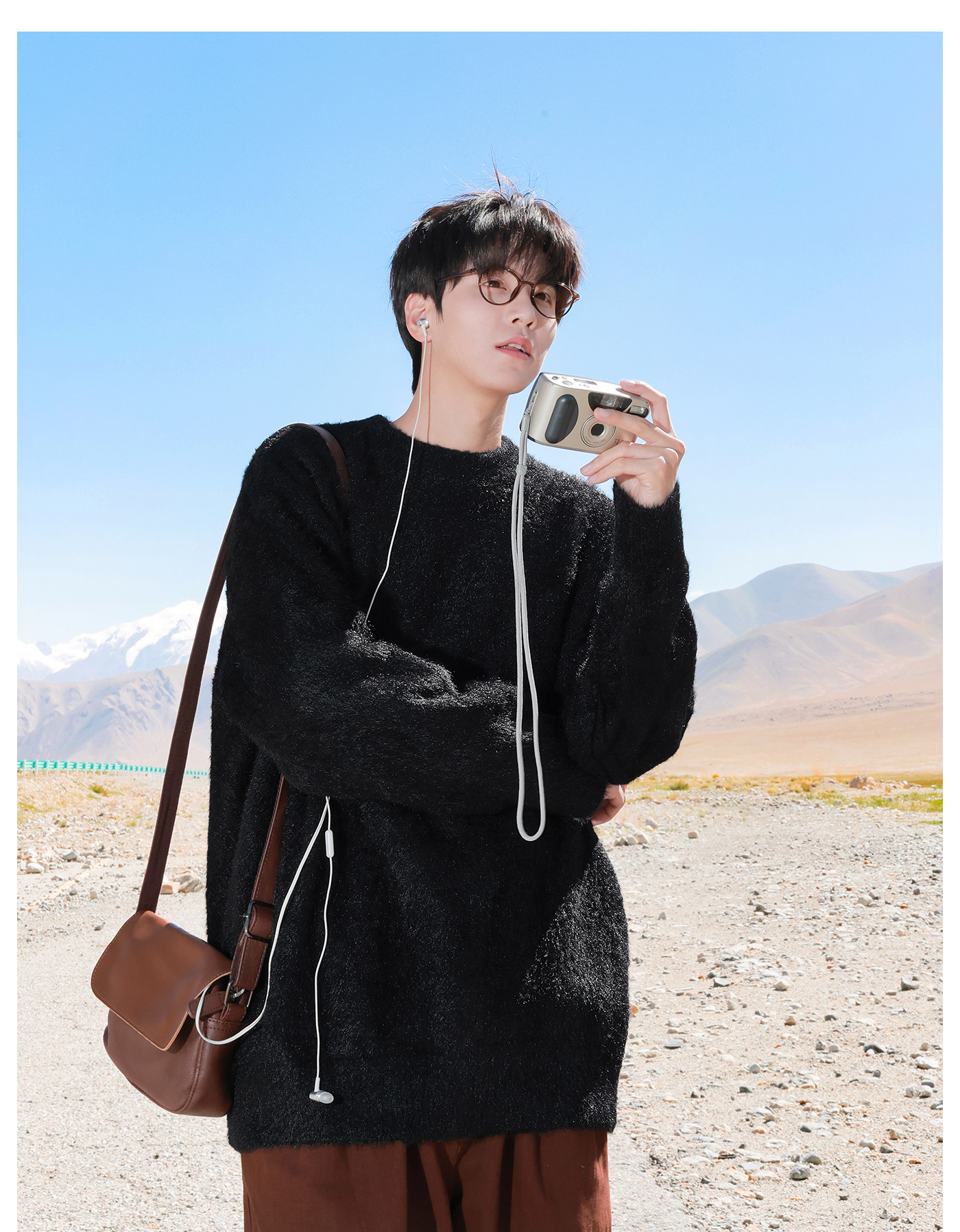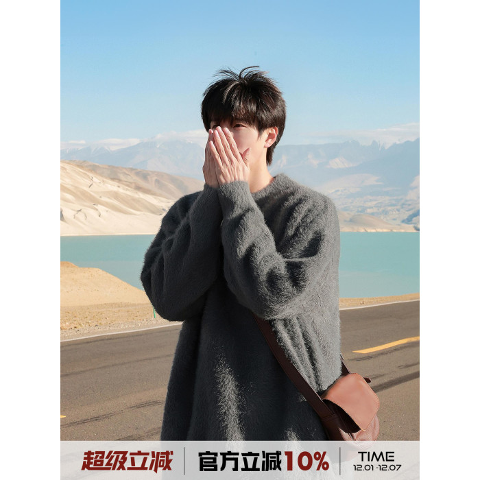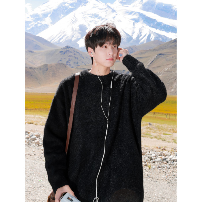 @港仔文藝男 日系仿馬海毛毛衣男秋冬新款冬季男生圓領針織衫上衣