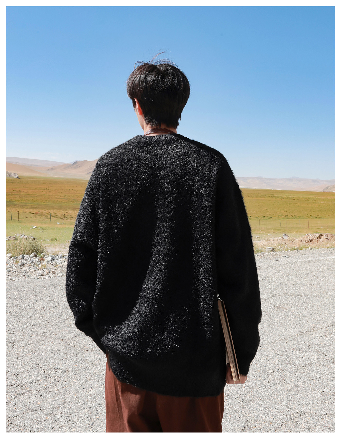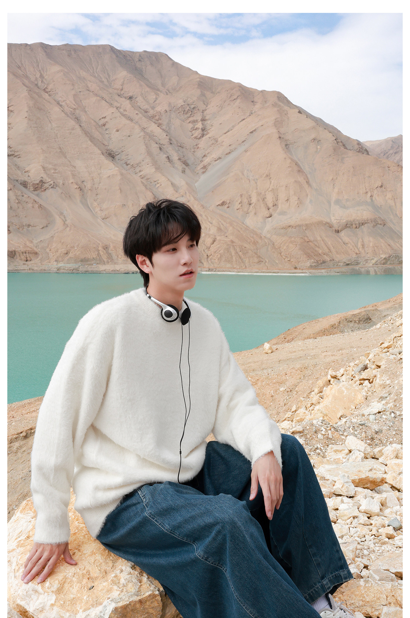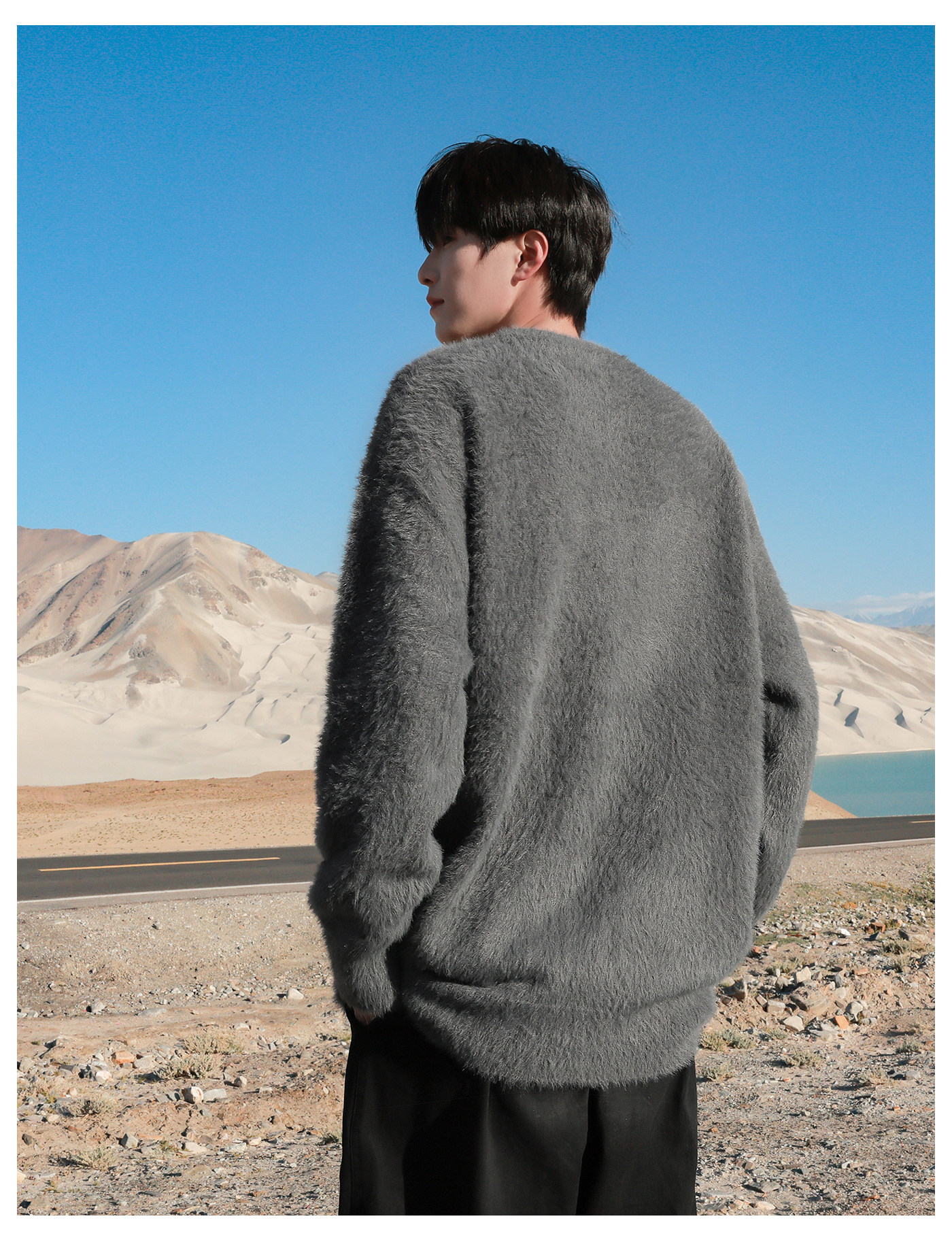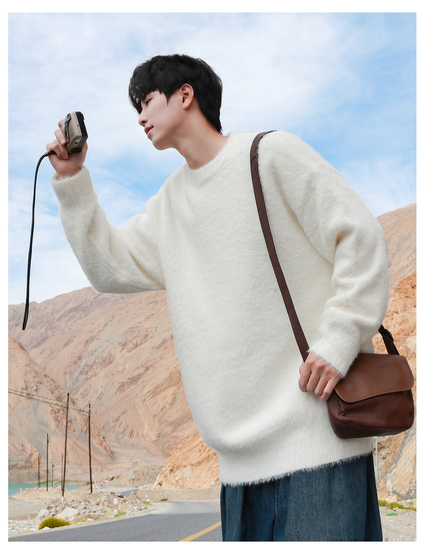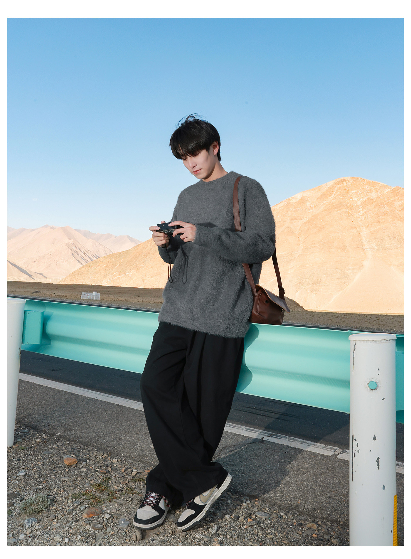 @港仔文藝男 日系仿馬海毛毛衣男秋冬新款冬季男生圓領針織衫上衣