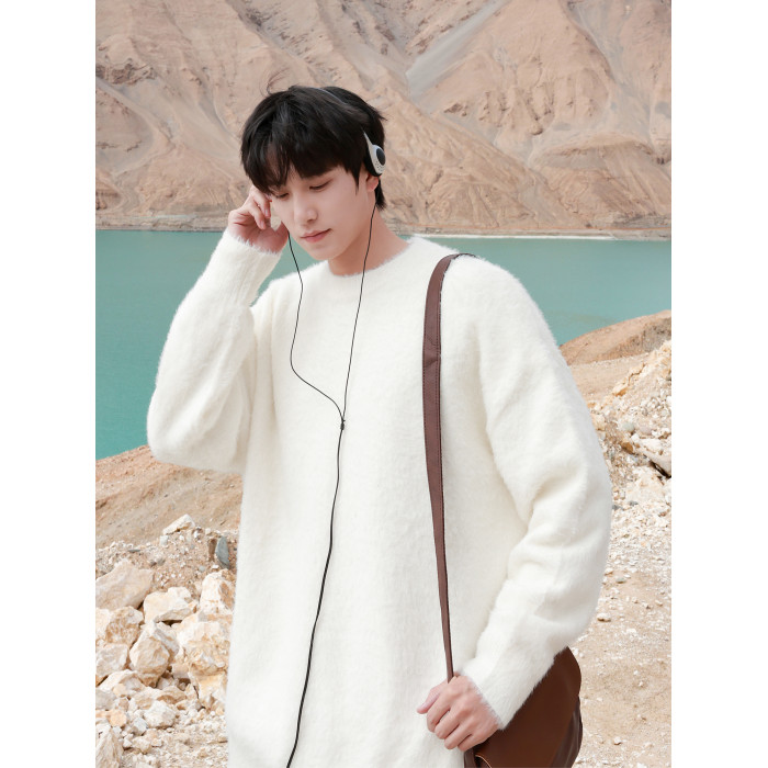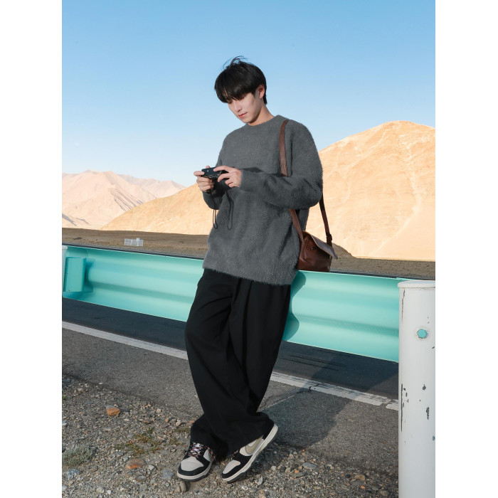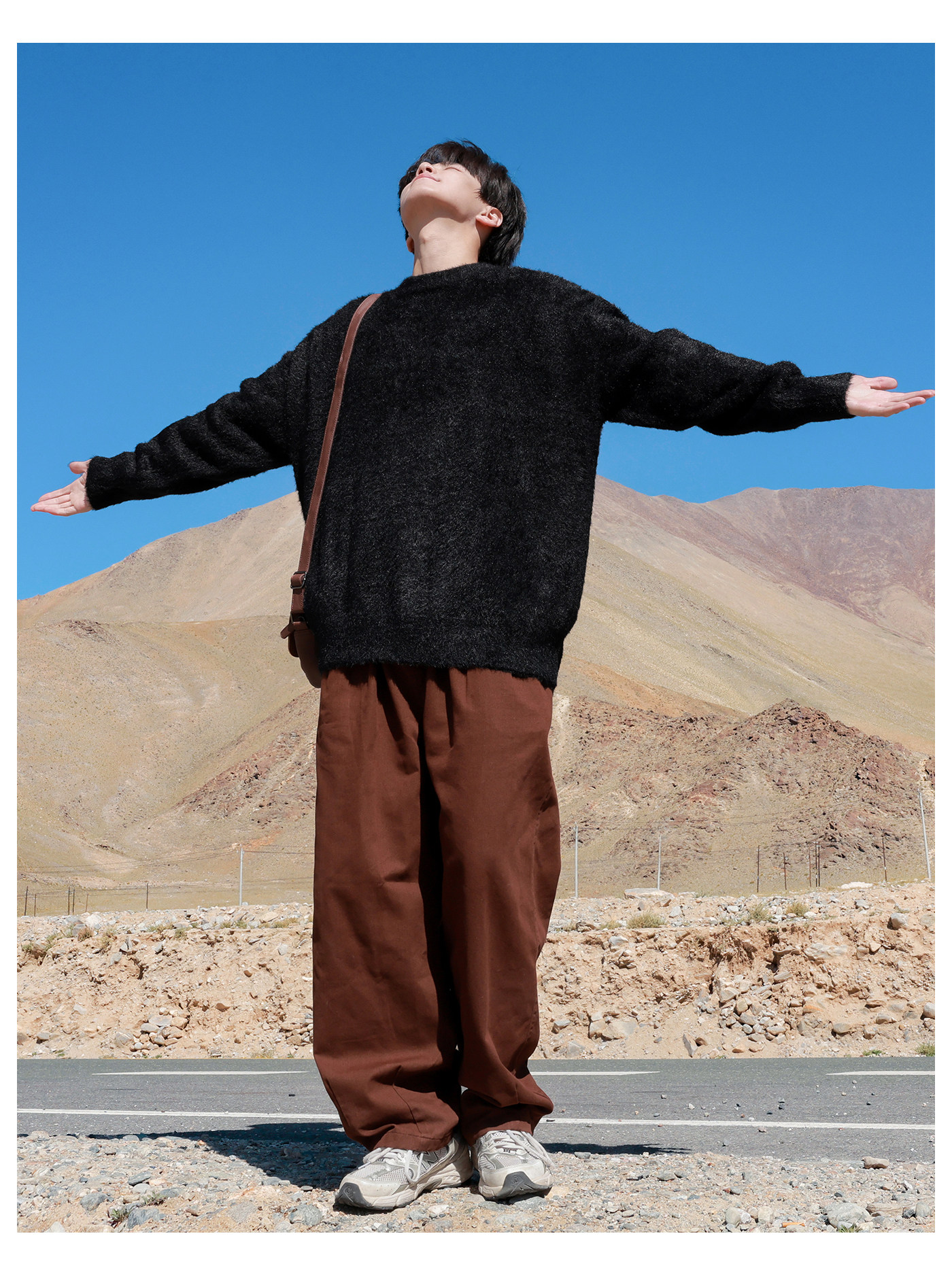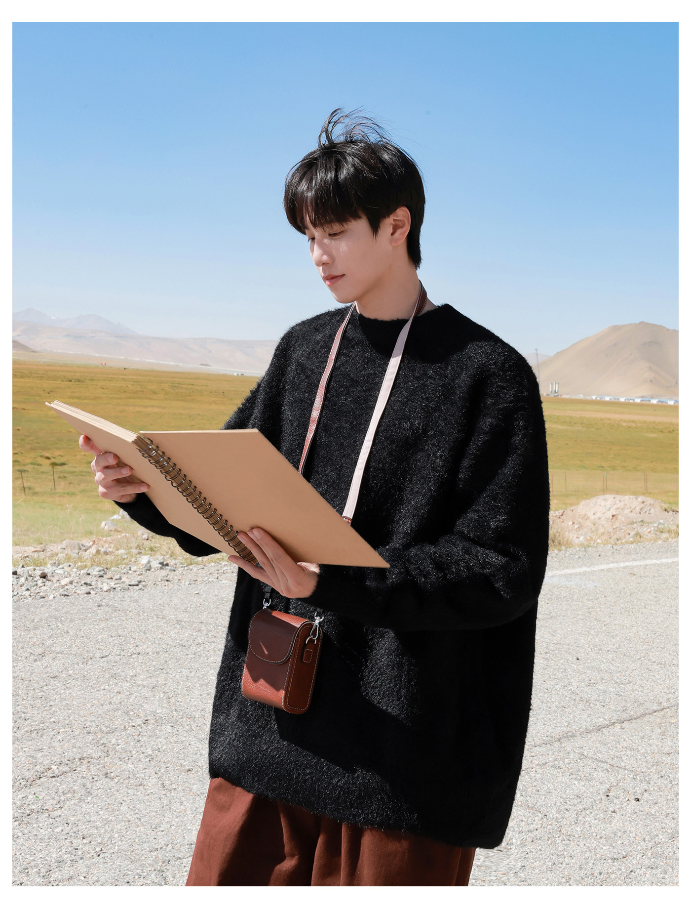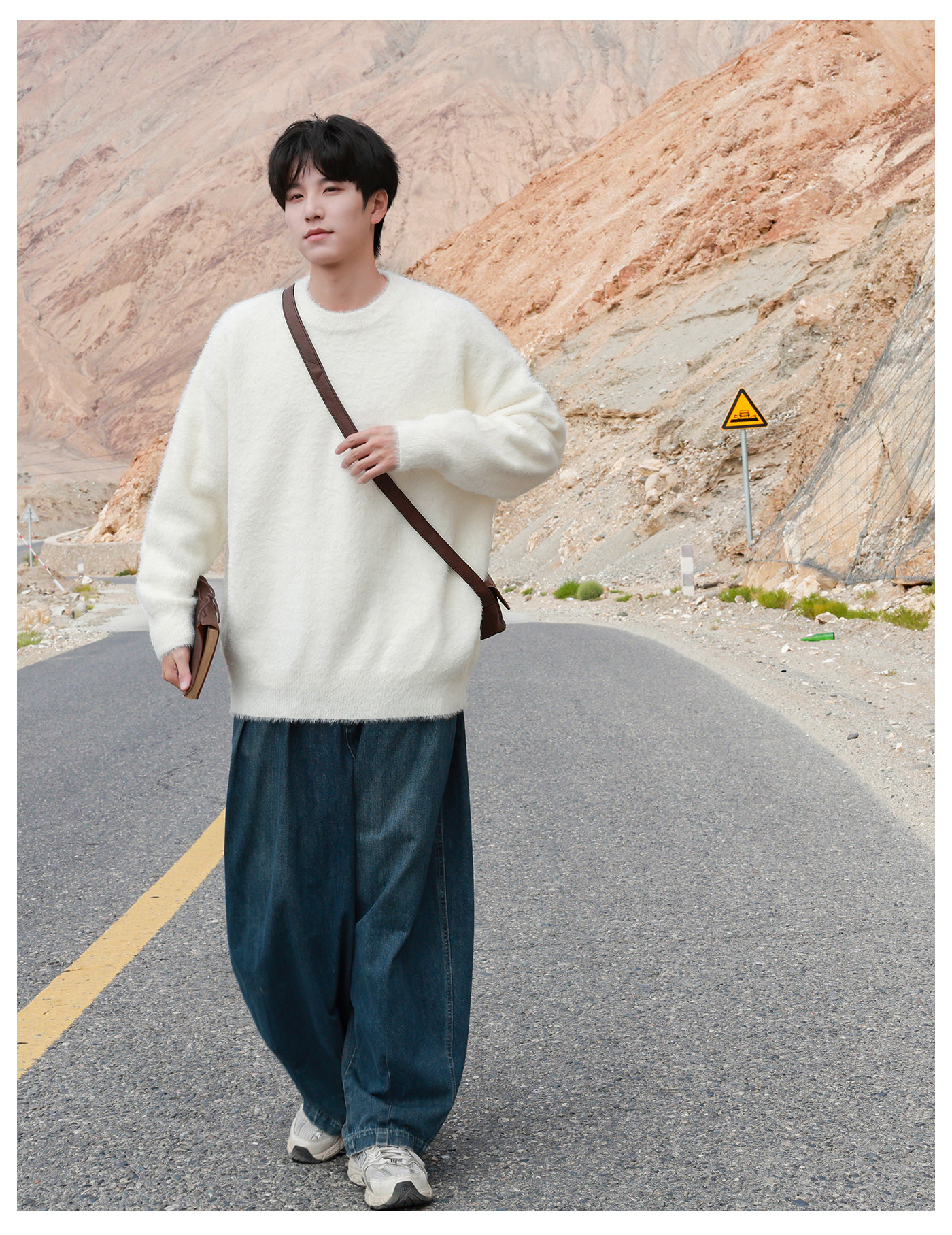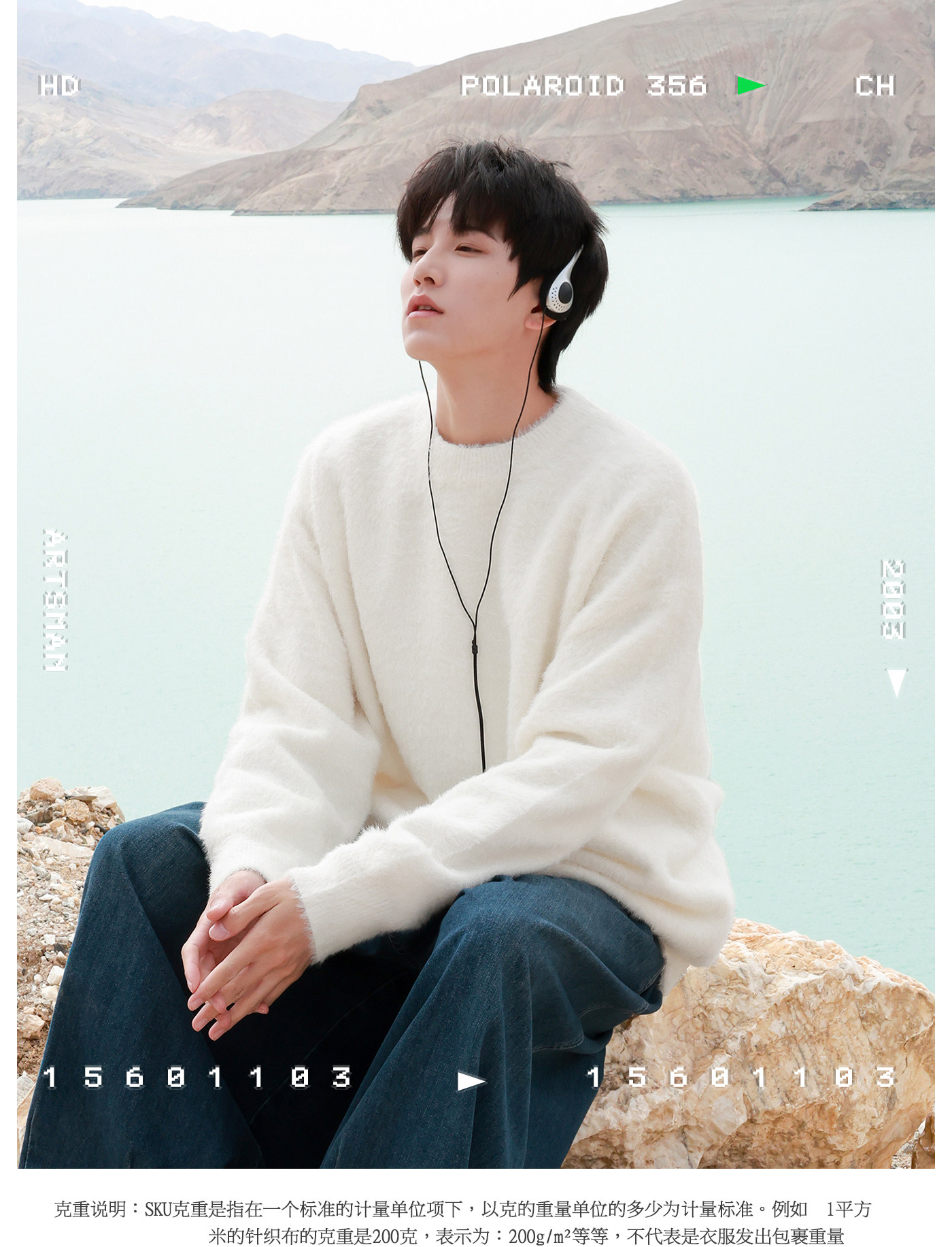 @港仔文藝男 日系仿馬海毛毛衣男秋冬新款冬季男生圓領針織衫上衣