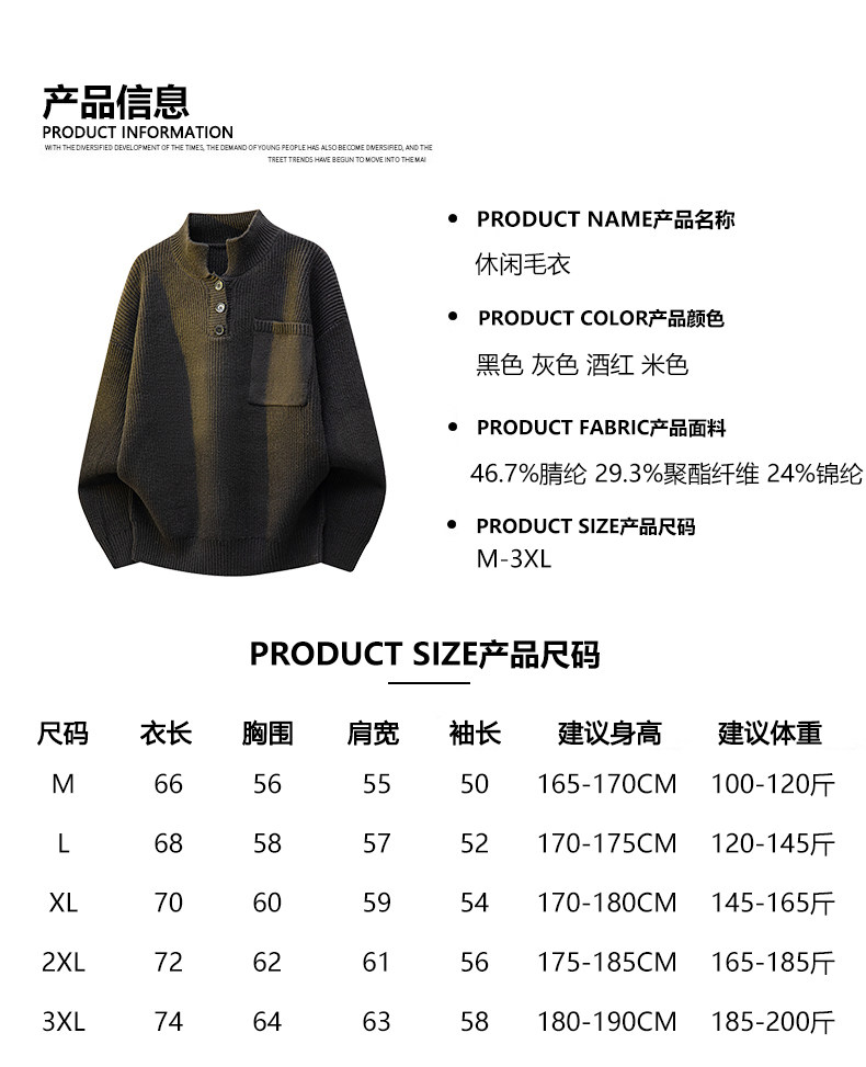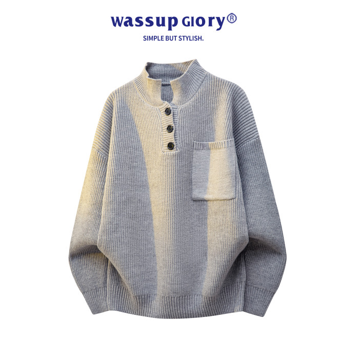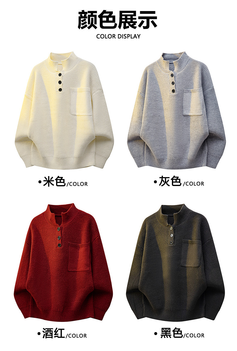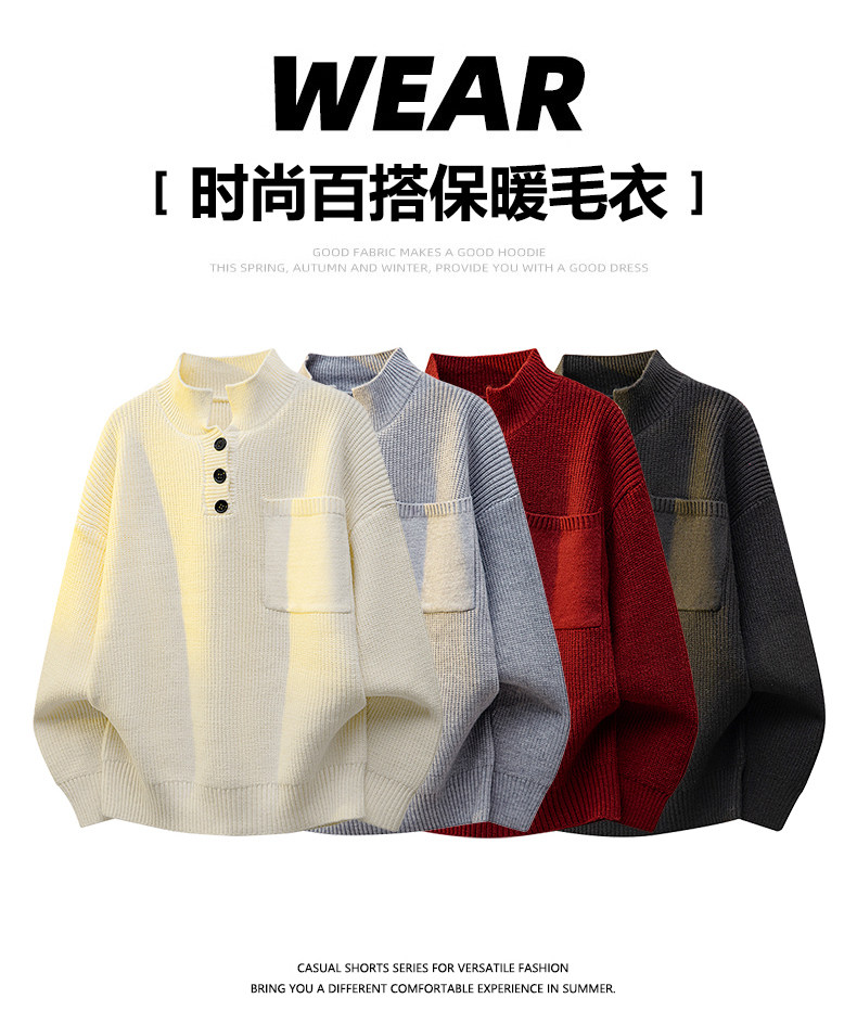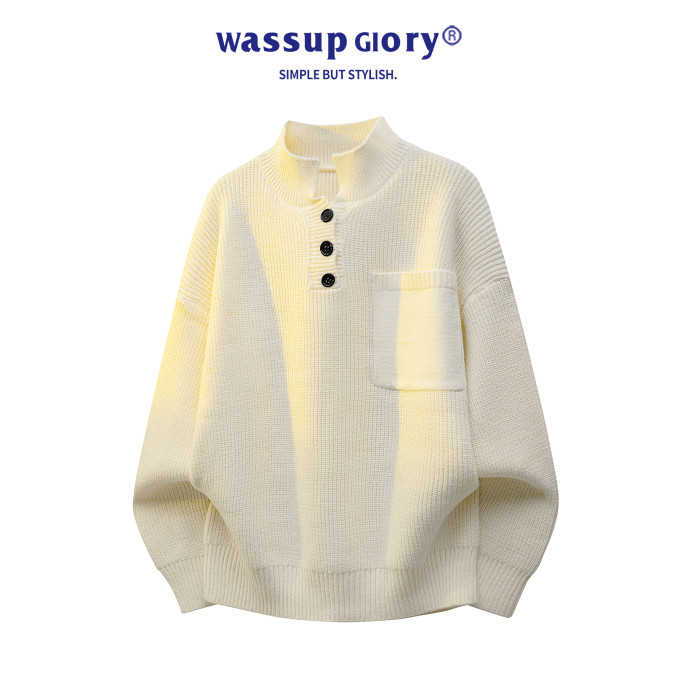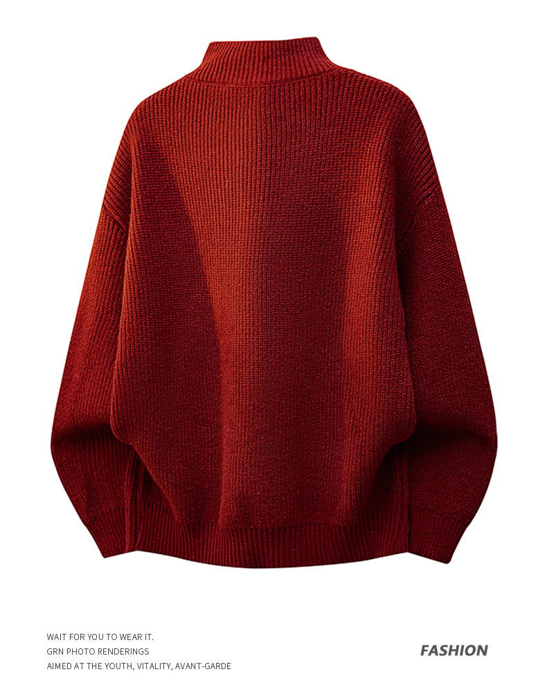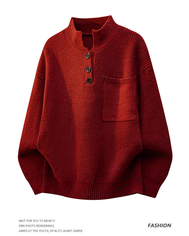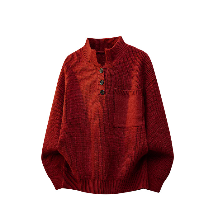 WASSUP GLORY本命年紅色毛衣男高級感痞帥聖誕亨利領打底針織衫潮