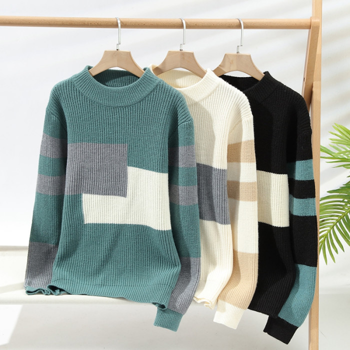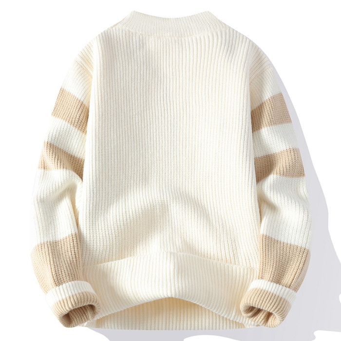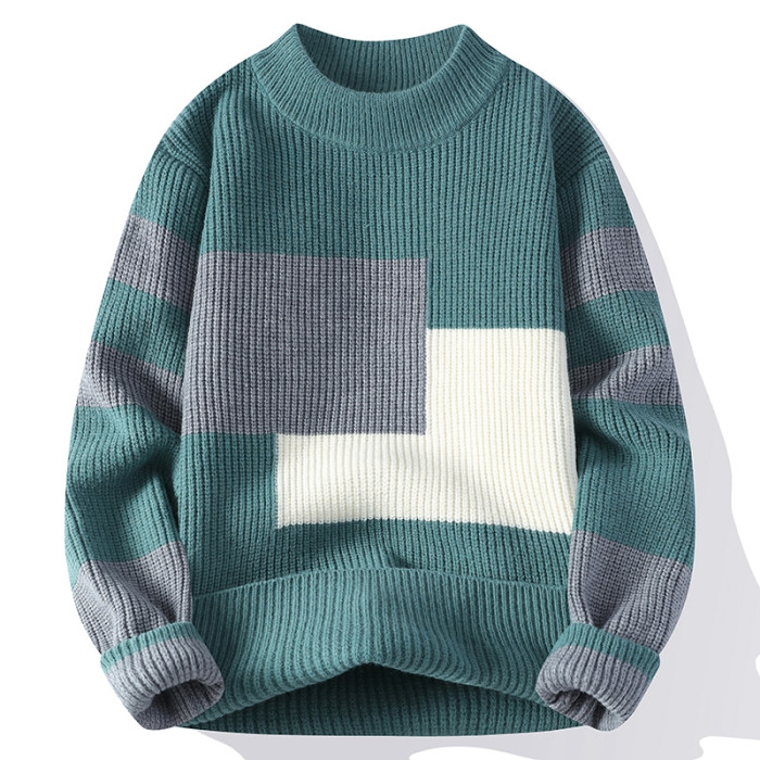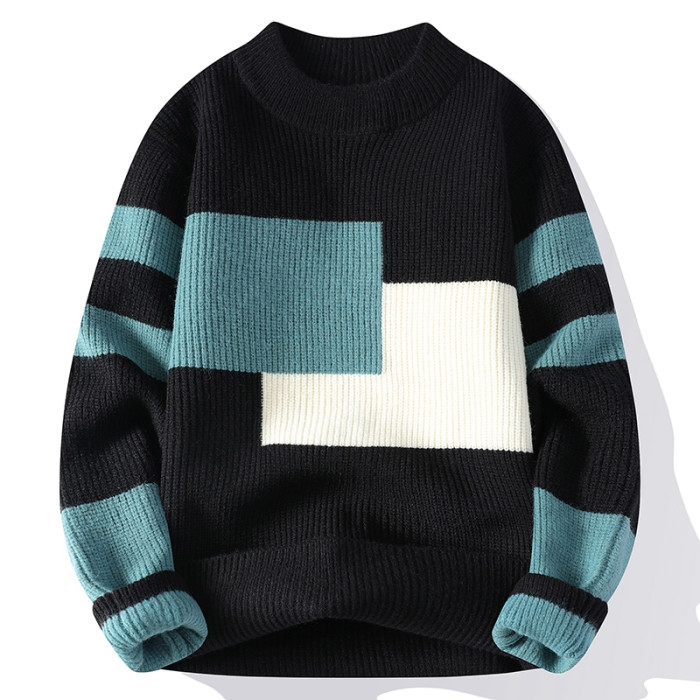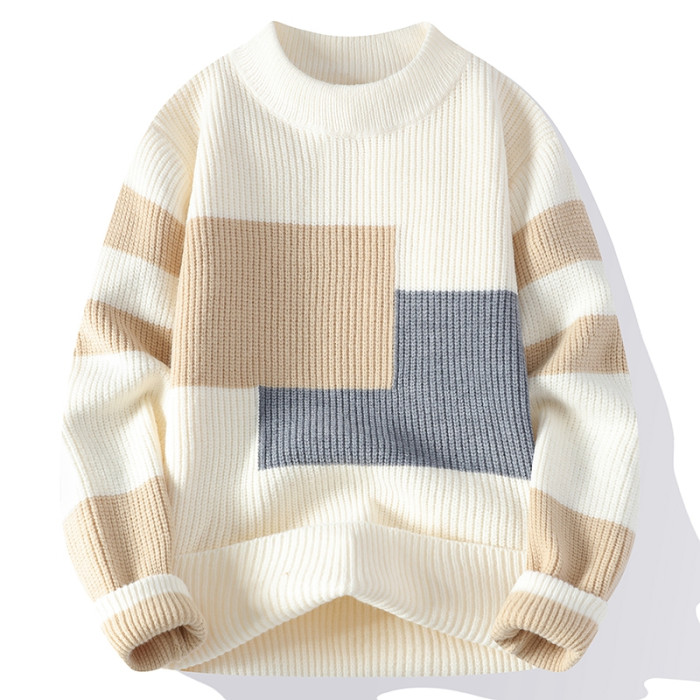 撞色毛衣男士冬季加厚潮牌針織衫寬松高級感慵懶時尚百搭保暖線衣