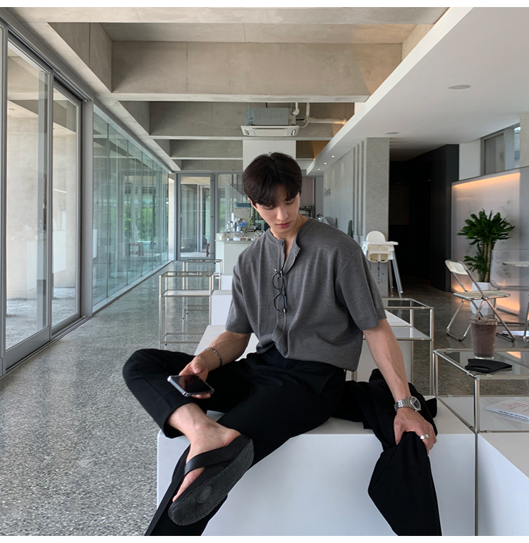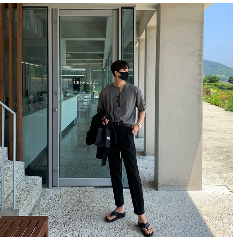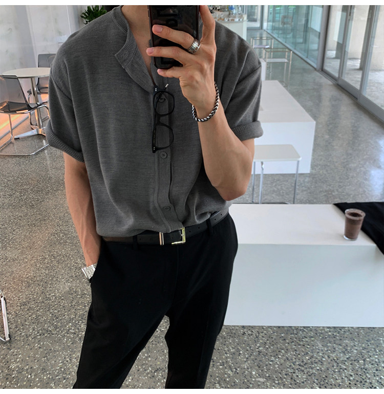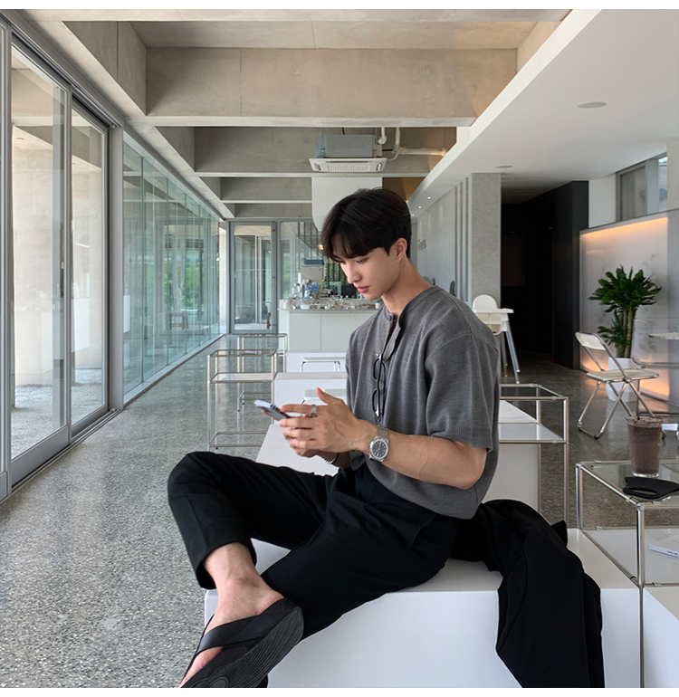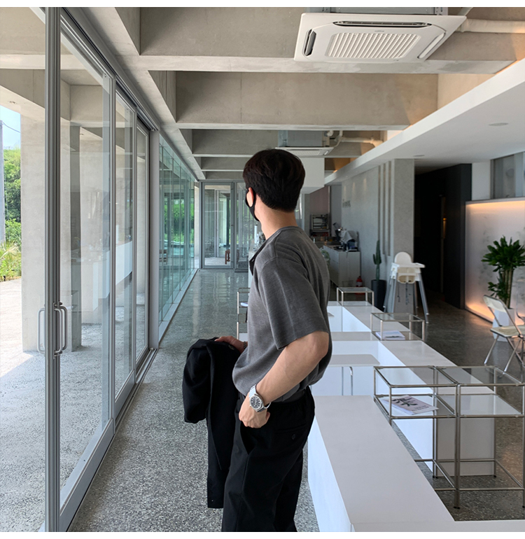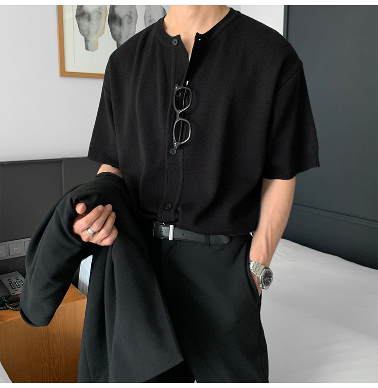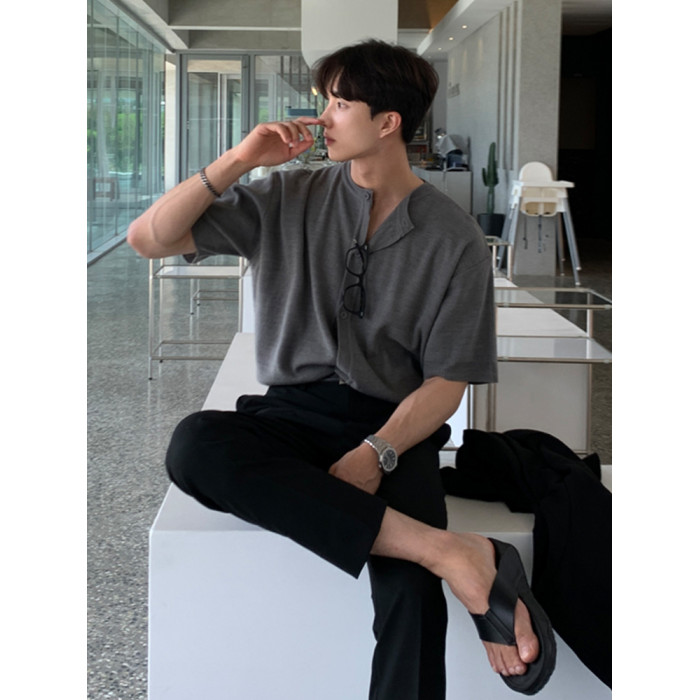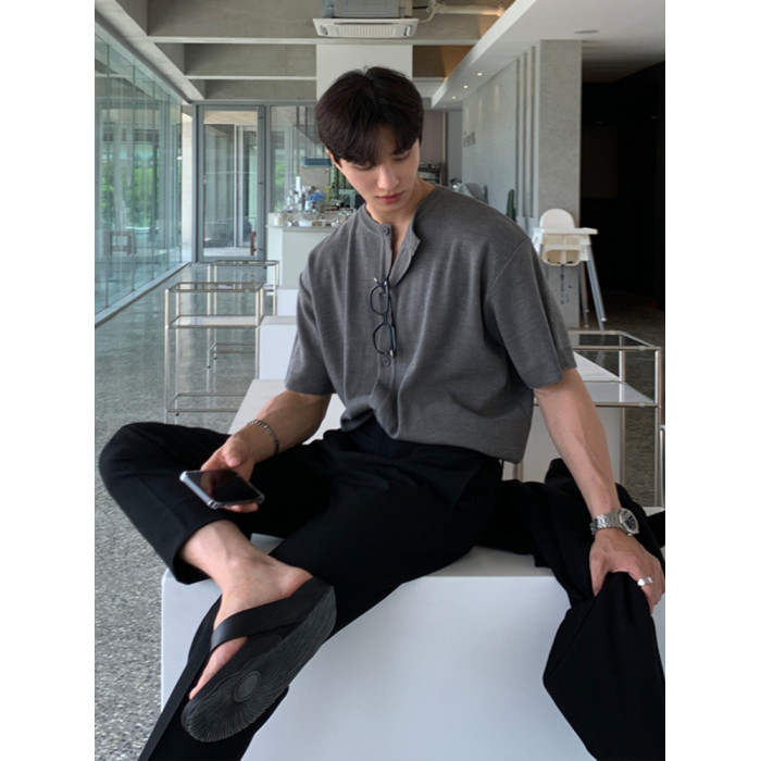 夏季短袖針織衫男輕熟風韓版休閒寬松純色圓領半袖開衫T恤上衣潮