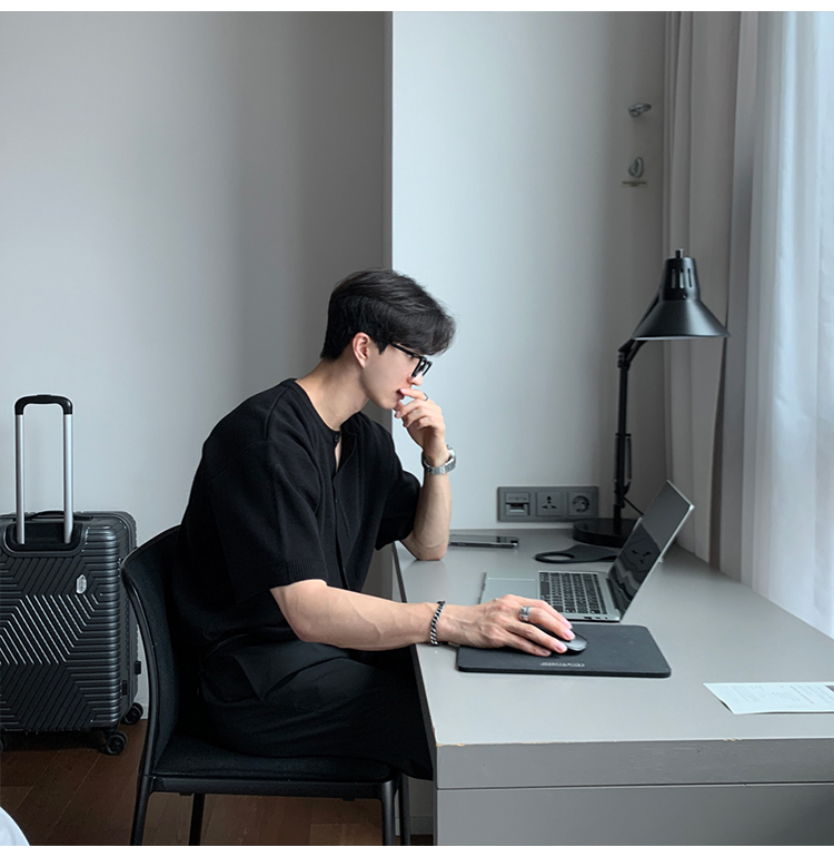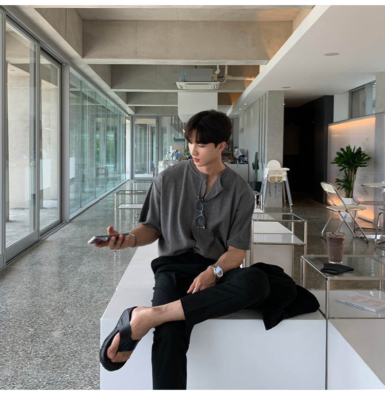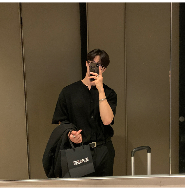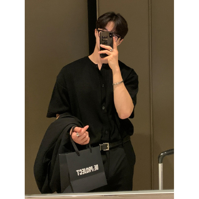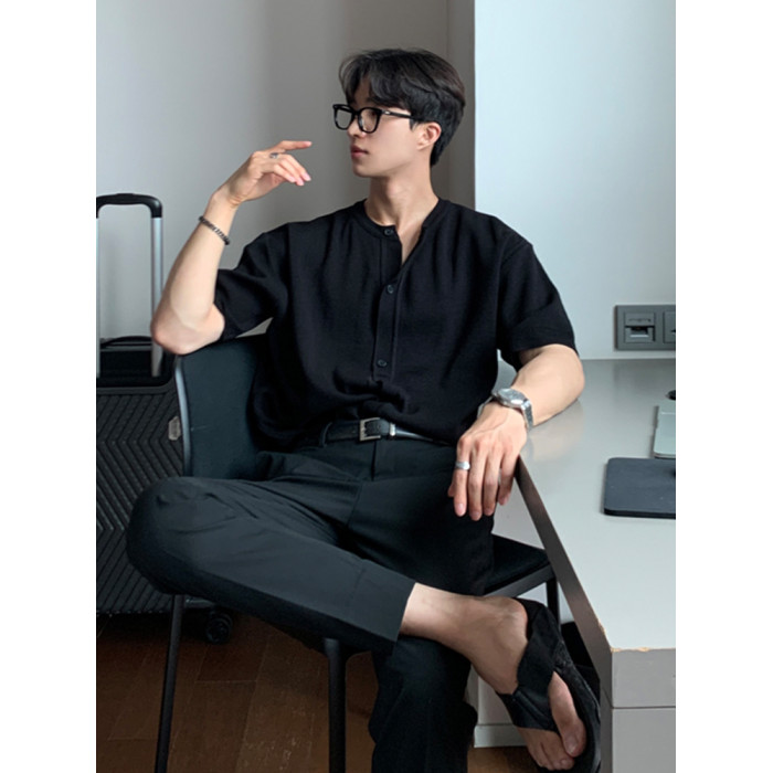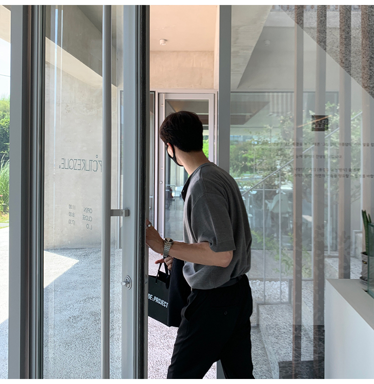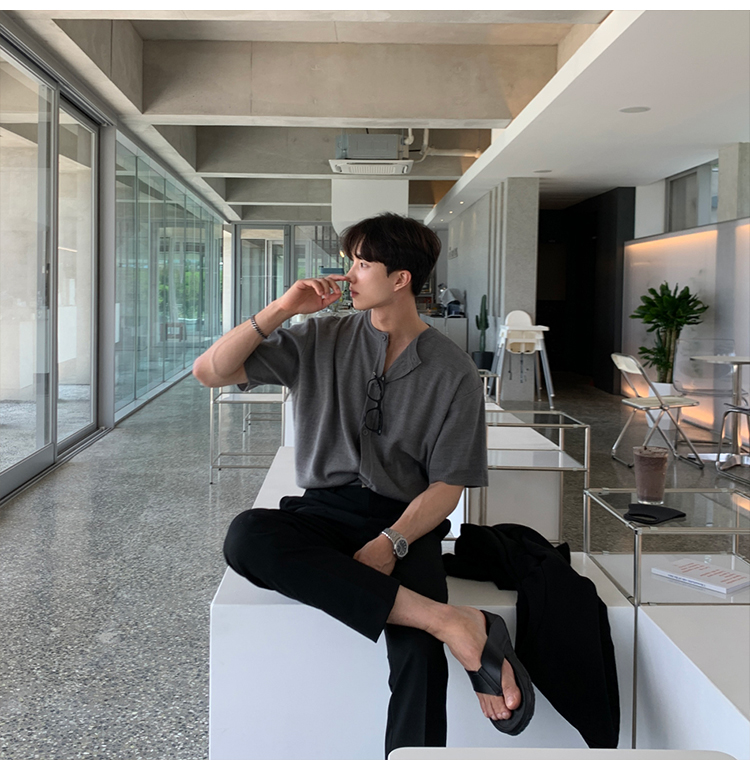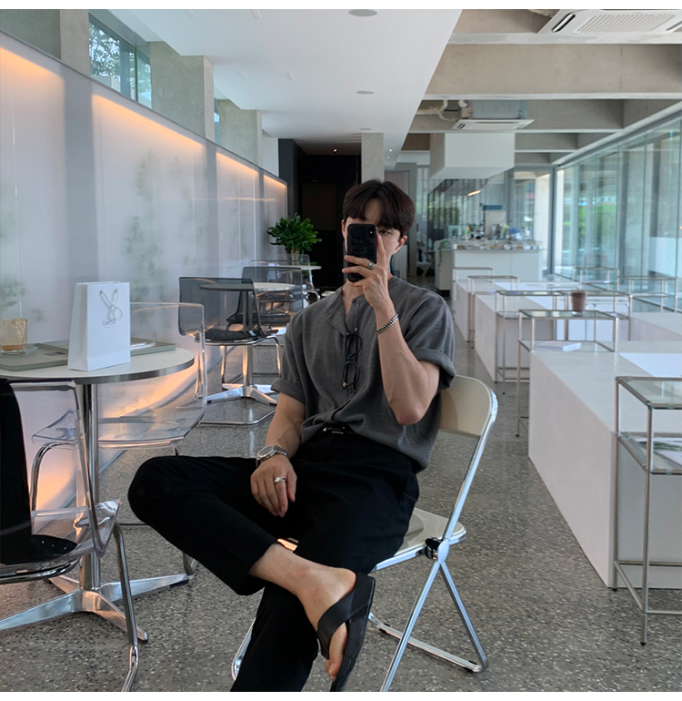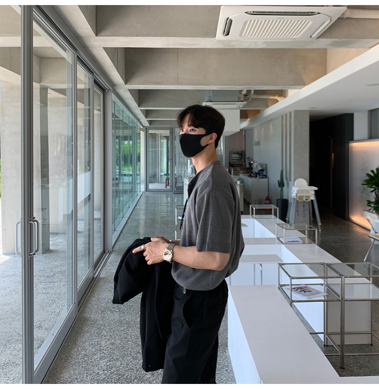 夏季短袖針織衫男輕熟風韓版休閒寬松純色圓領半袖開衫T恤上衣潮