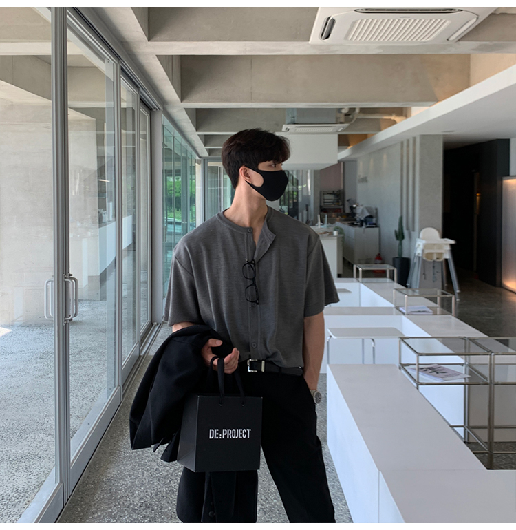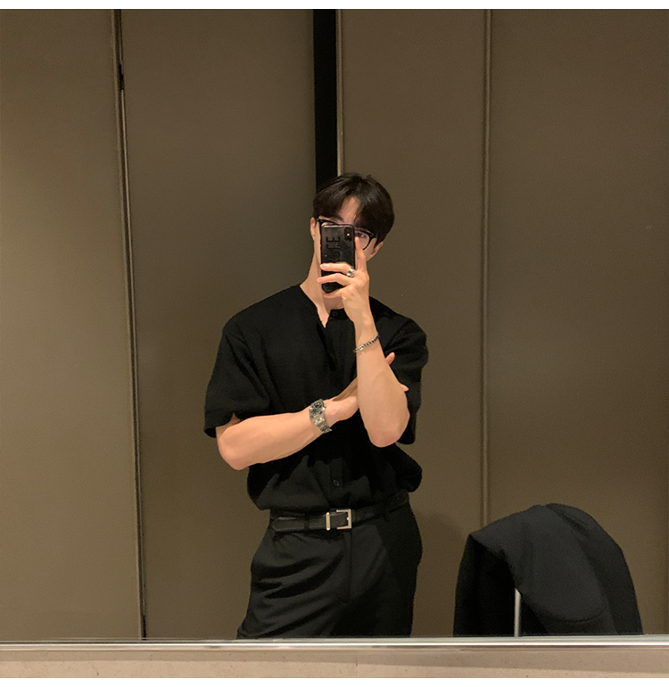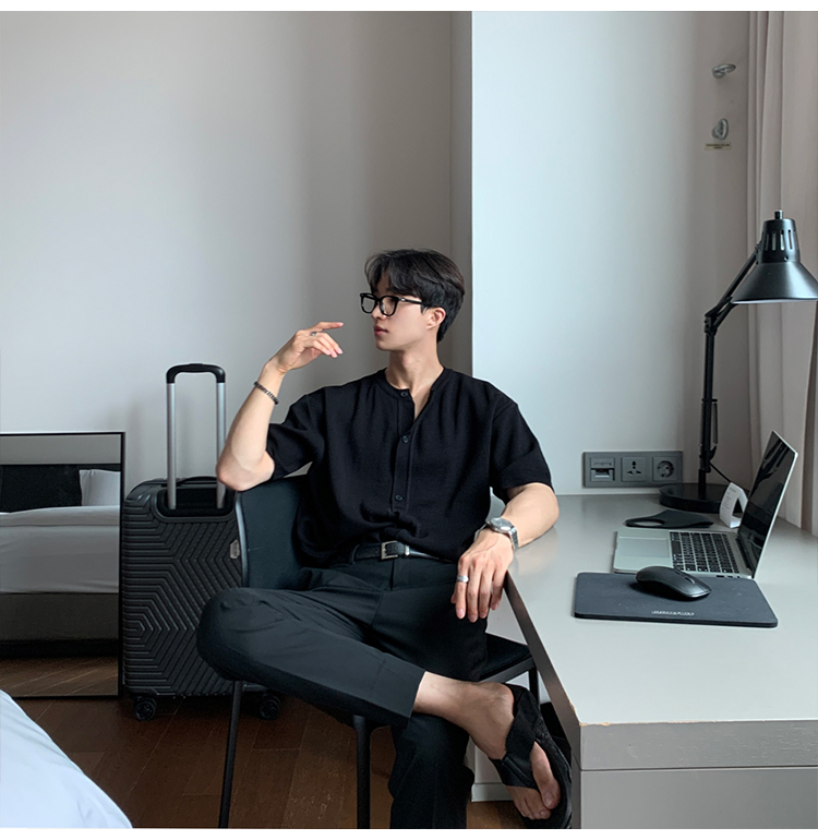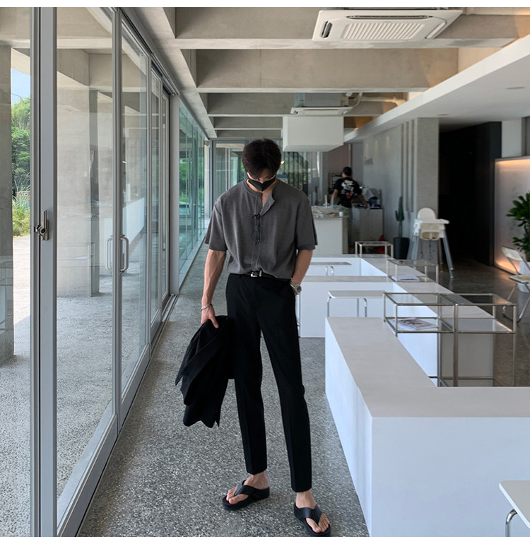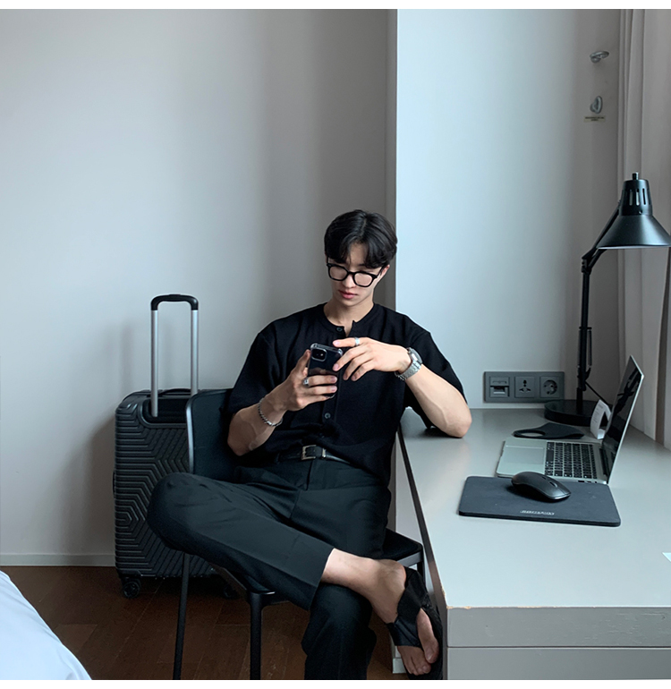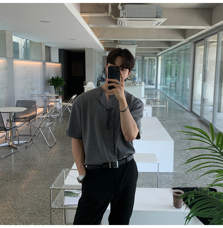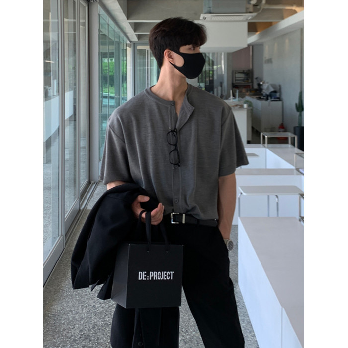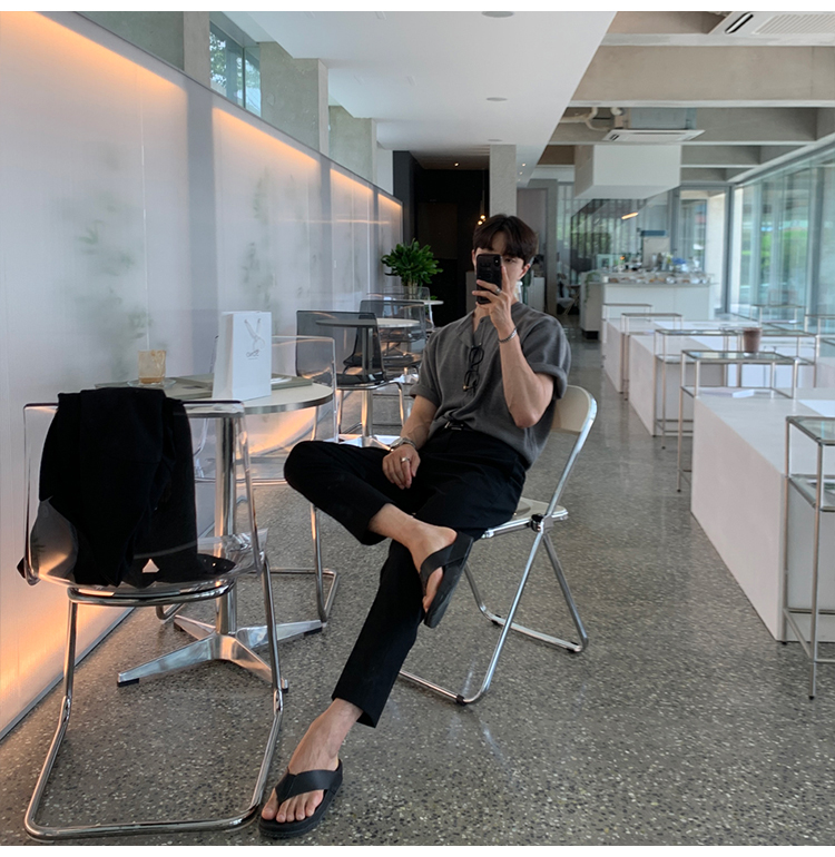 夏季短袖針織衫男輕熟風韓版休閒寬松純色圓領半袖開衫T恤上衣潮
