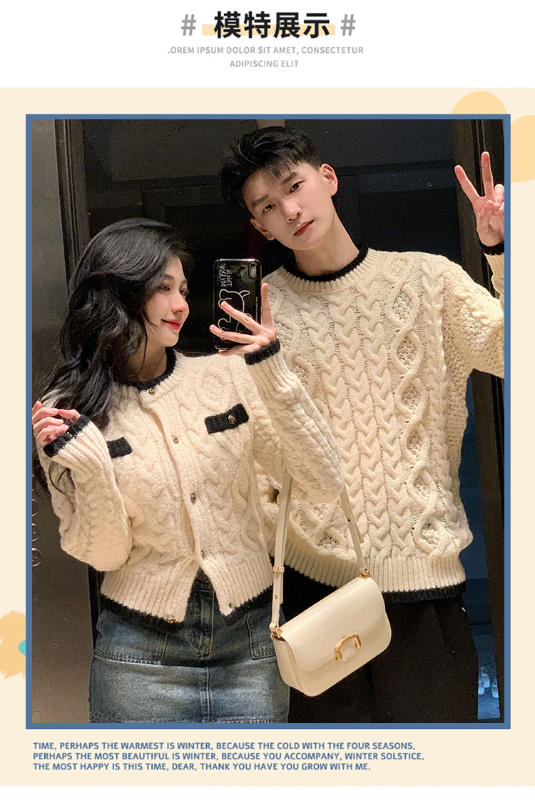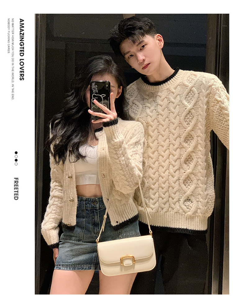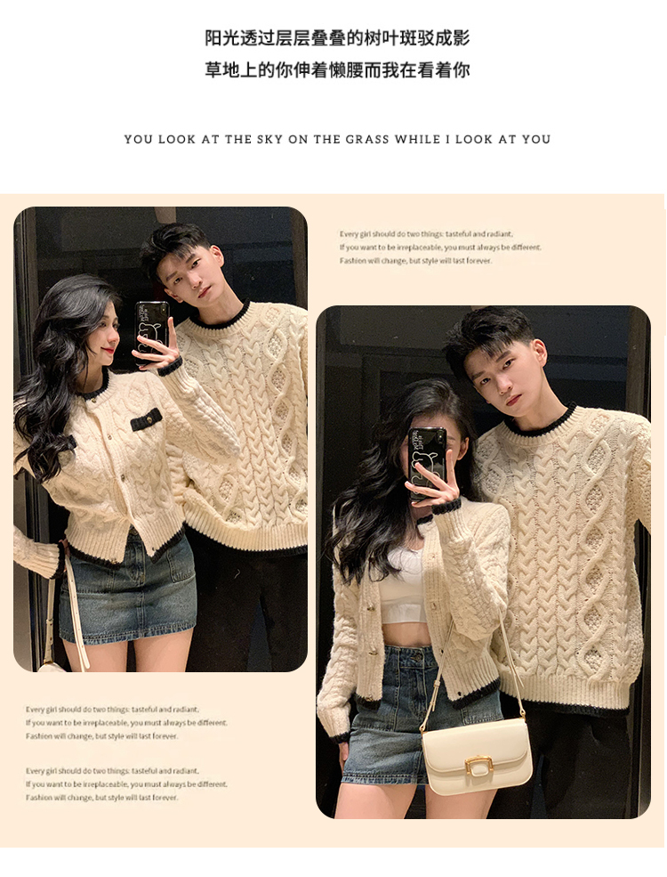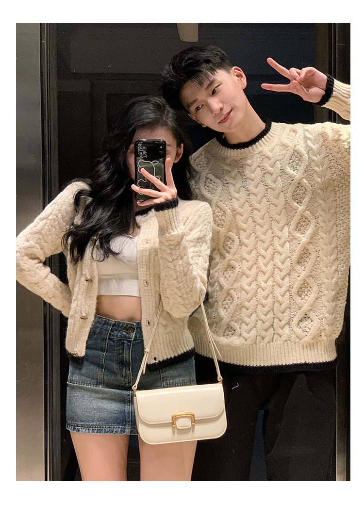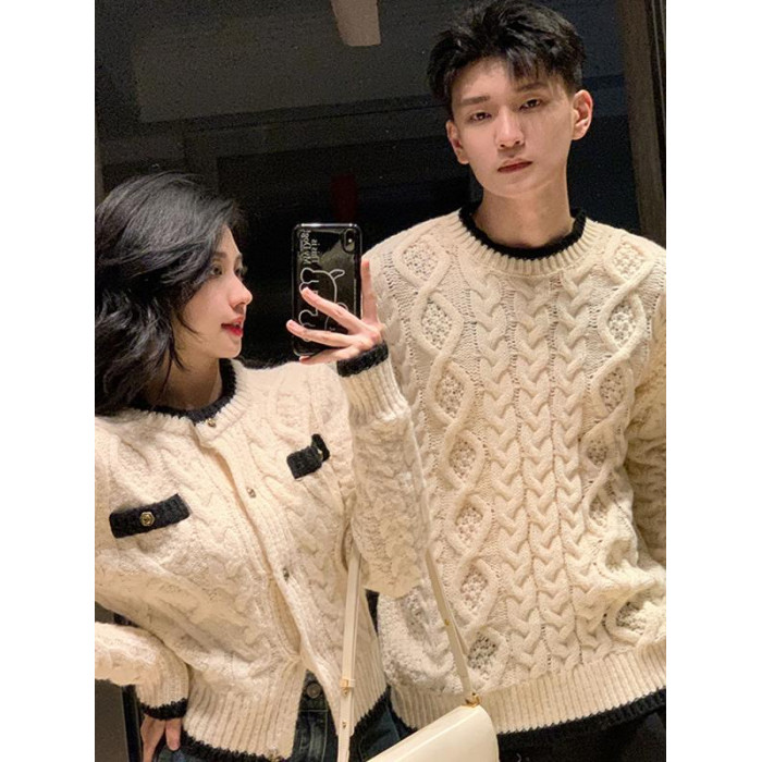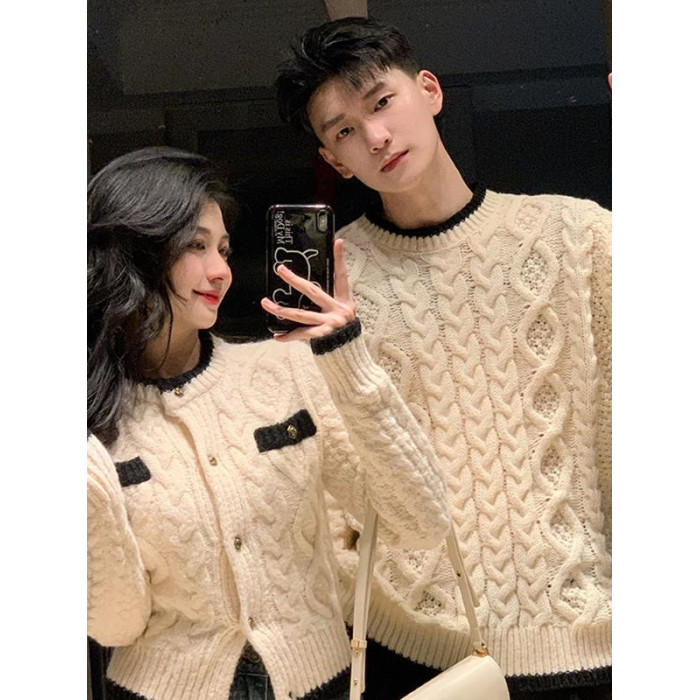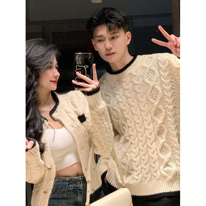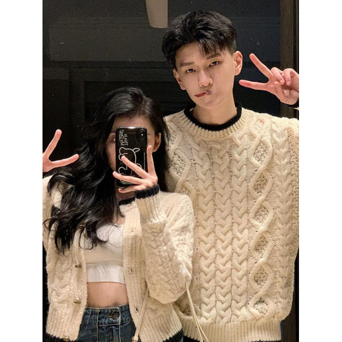 情侶裝秋冬2025新款ins超火慵懶風毛衣女寬松法式針織衫外套潮牌