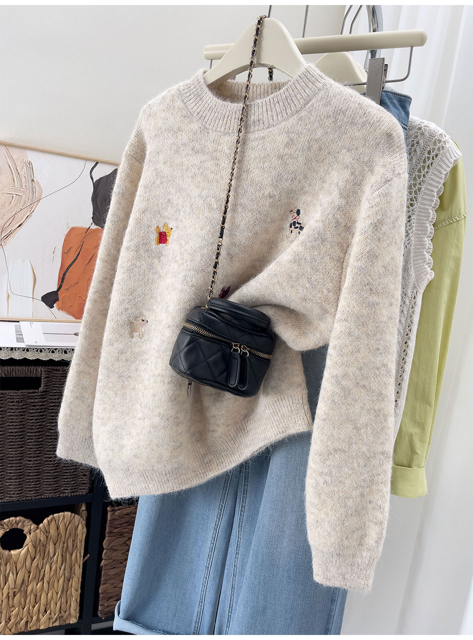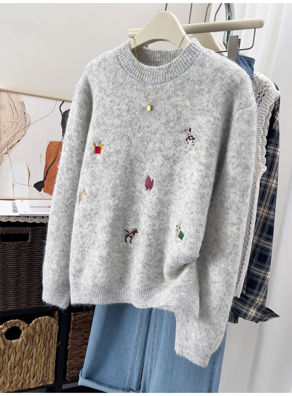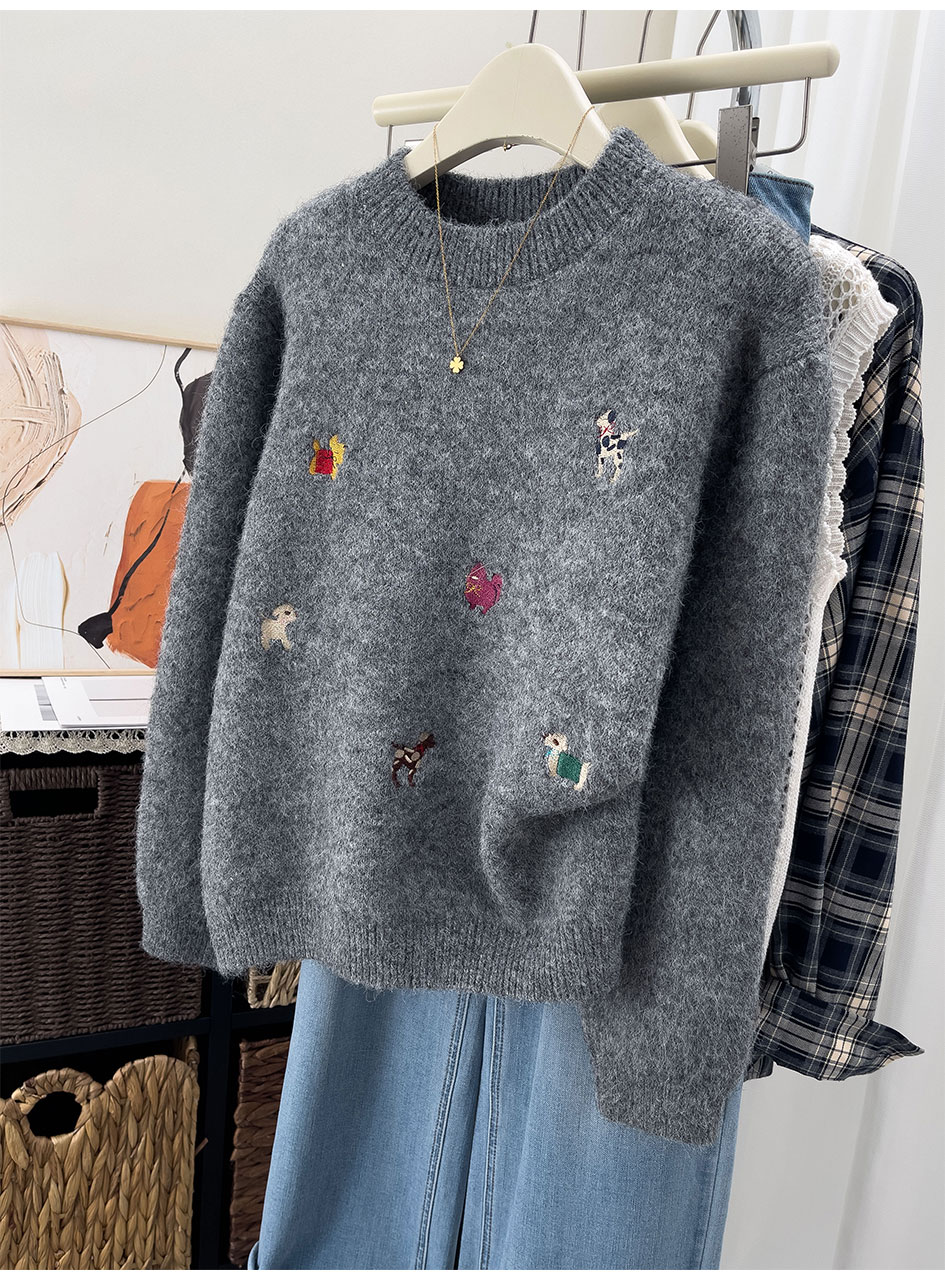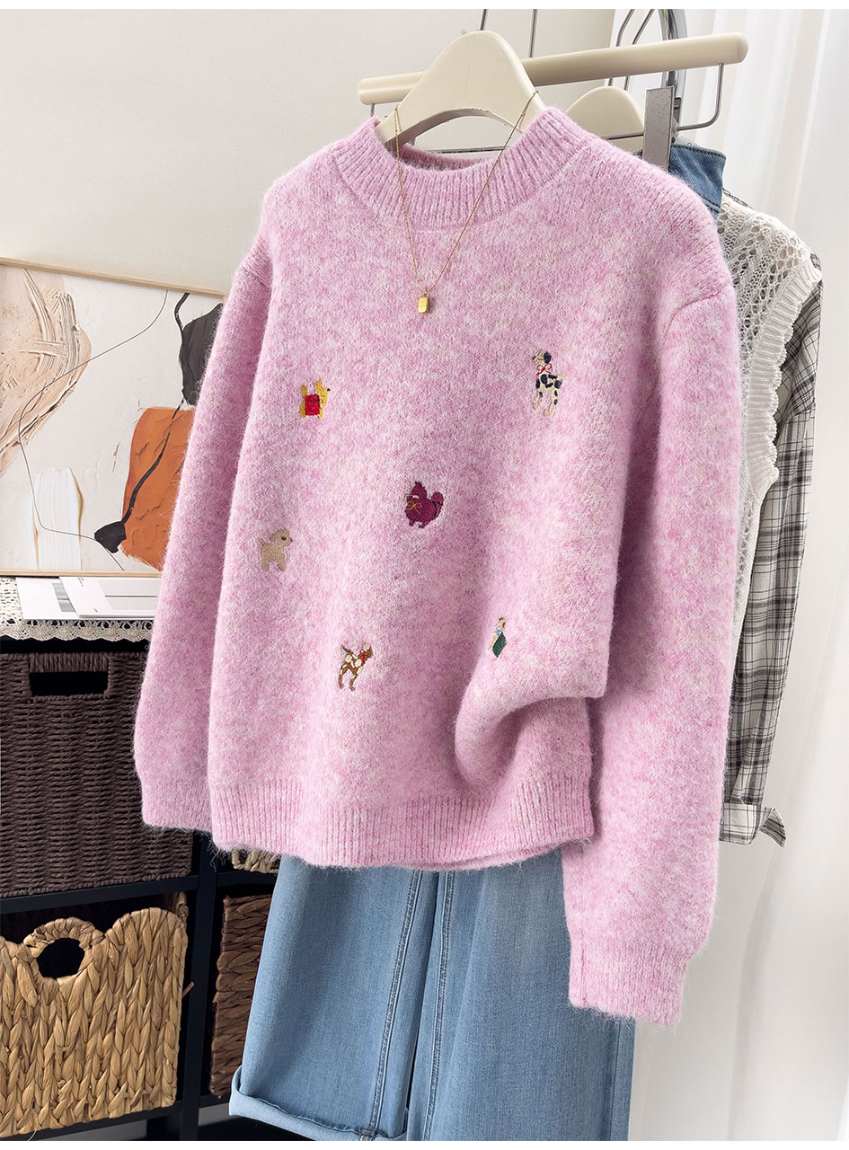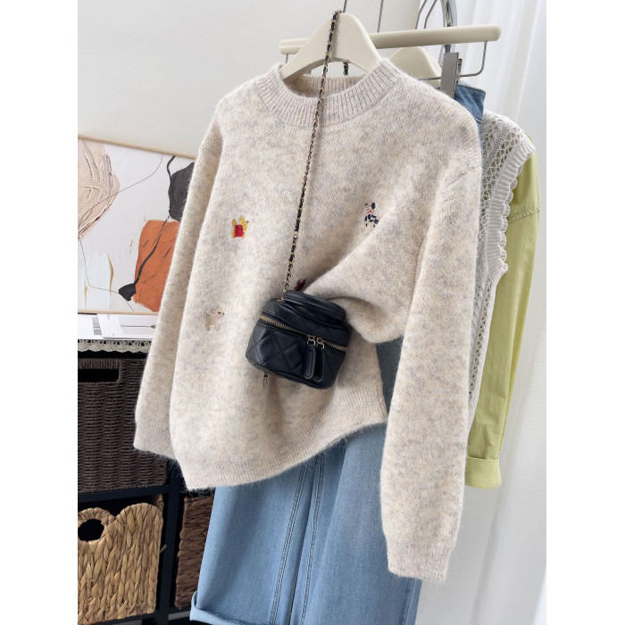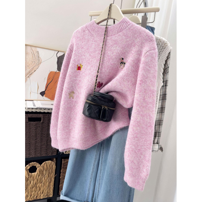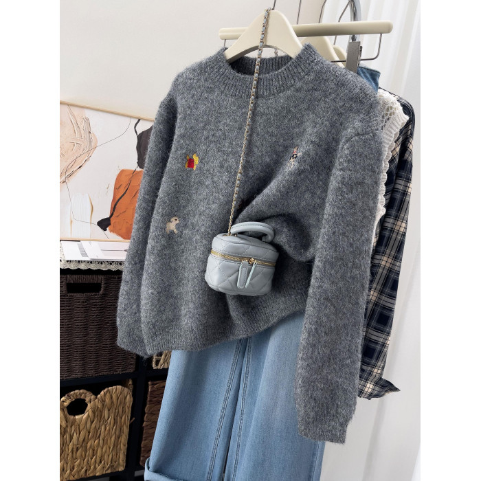 刺綉套頭毛衣韓系慵懶風女秋冬季巨好看的加厚寬松顯瘦針織衫上衣