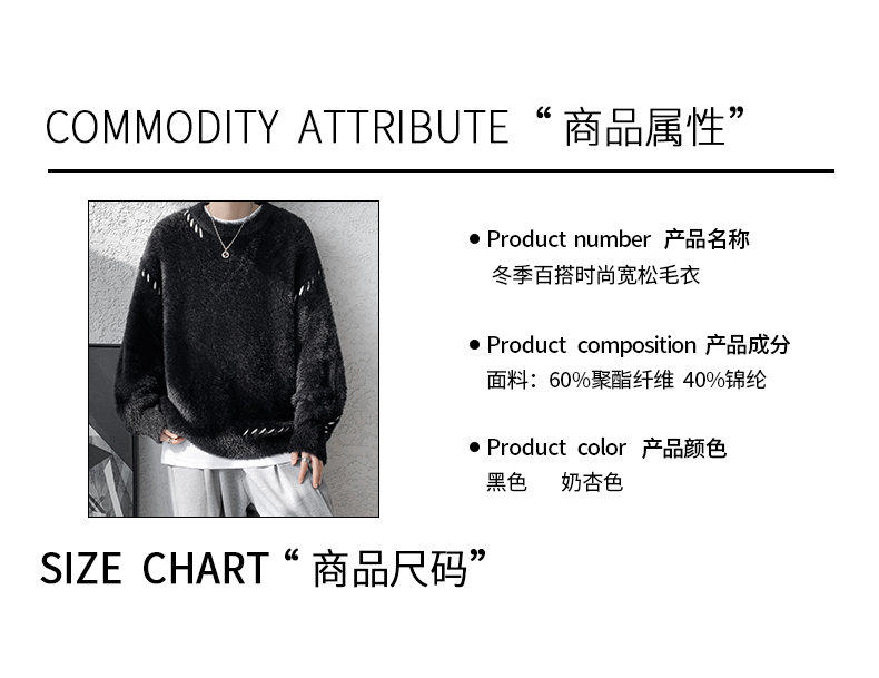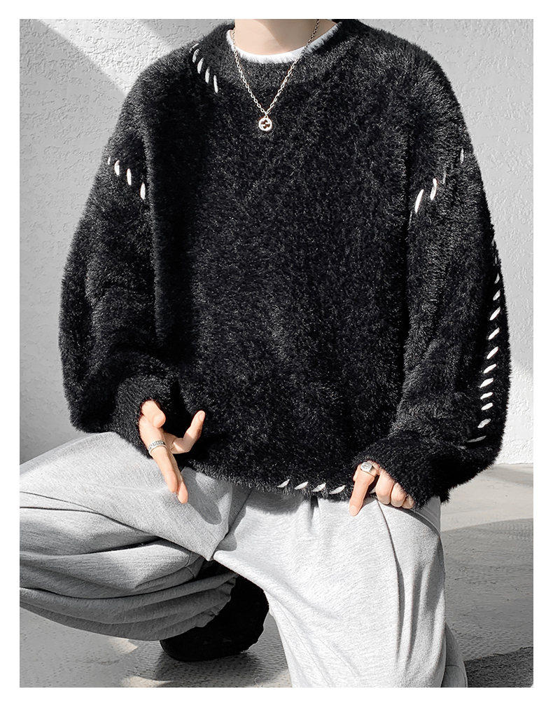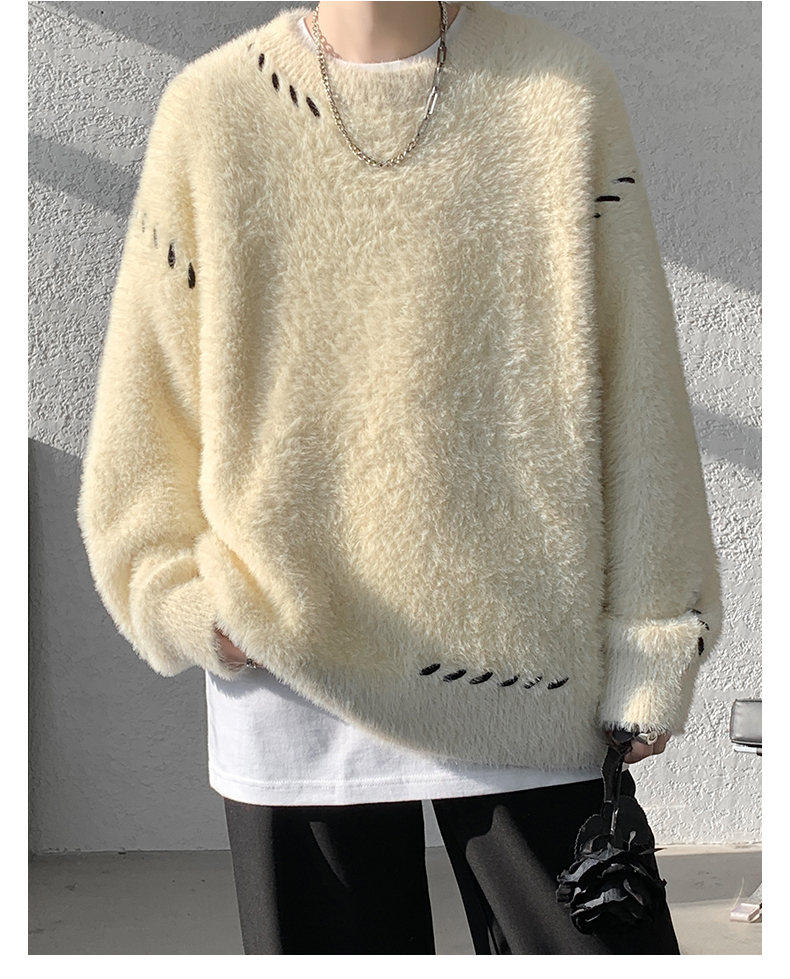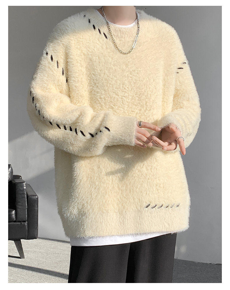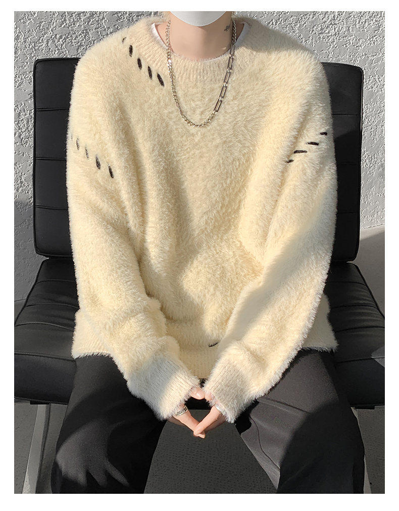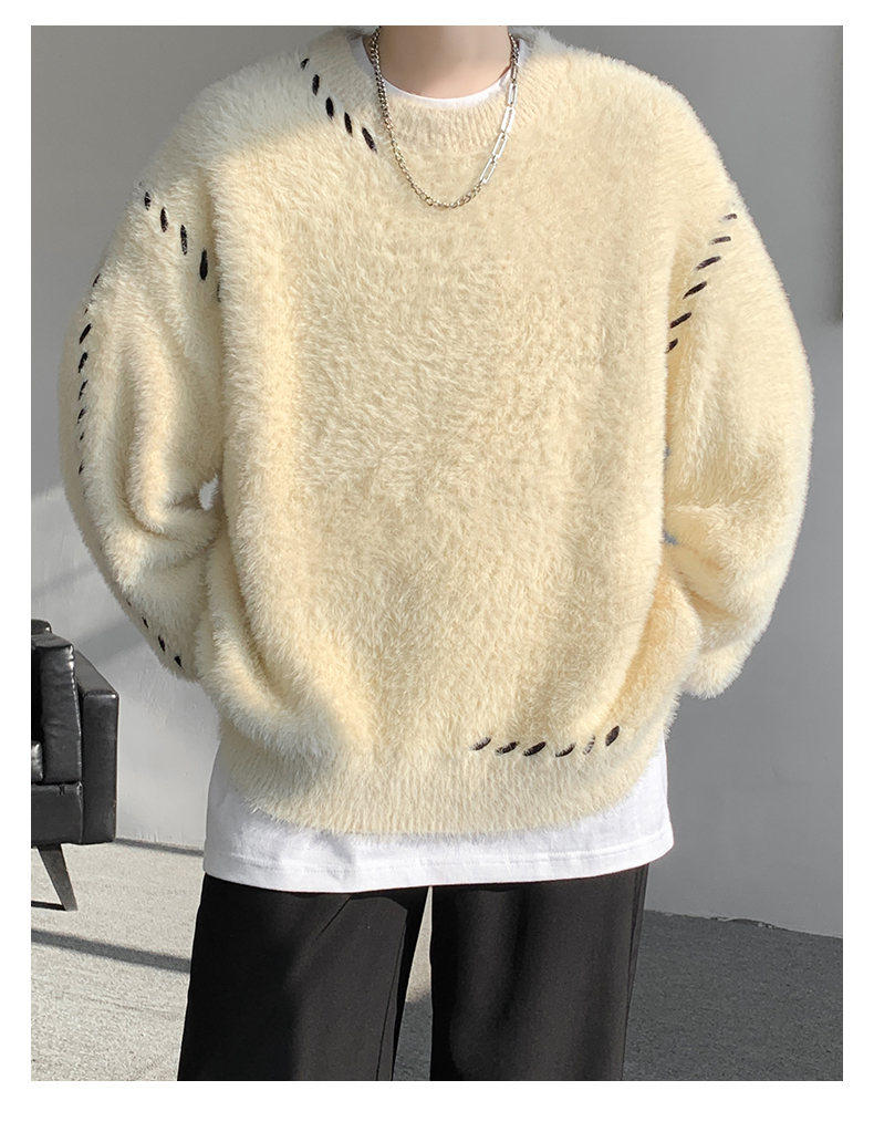 啄木鳥貂絨毛衣男秋冬季青少年慵嬾風潮流寬鬆百搭休閒純色針織衫