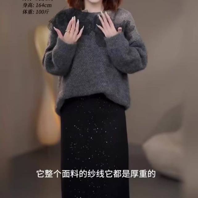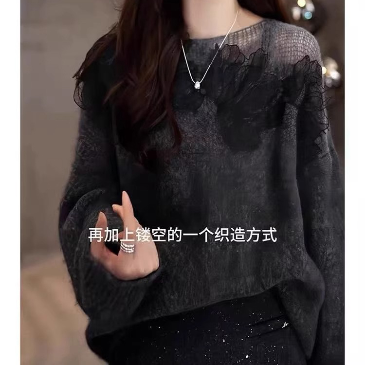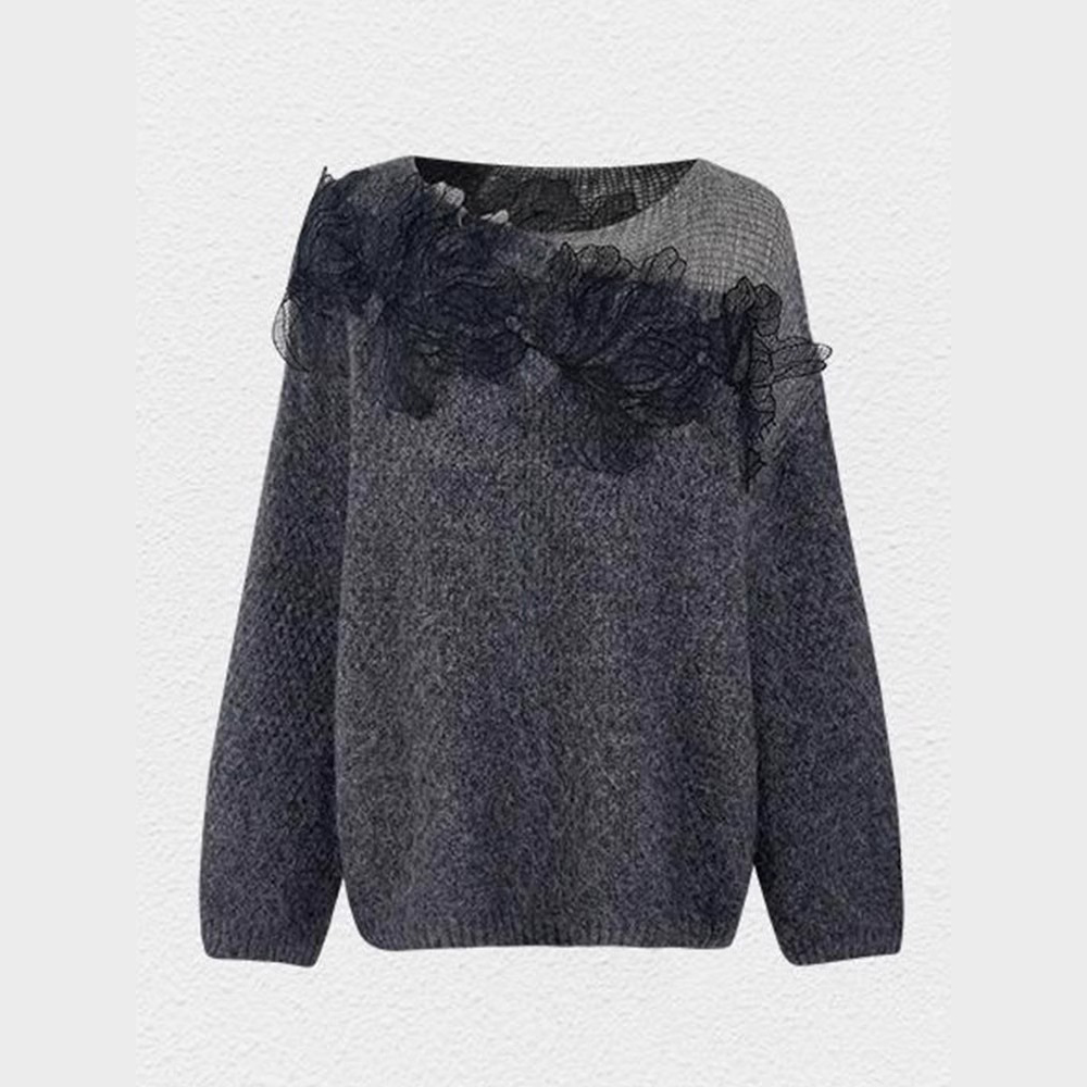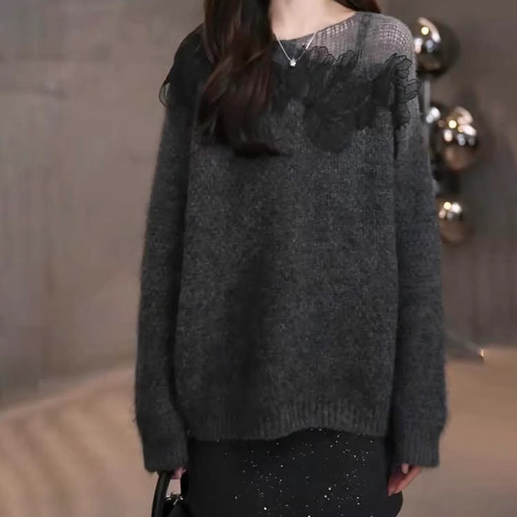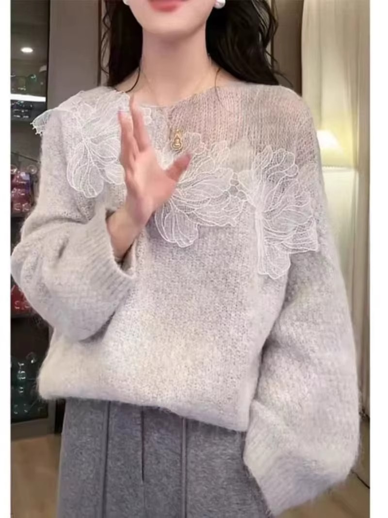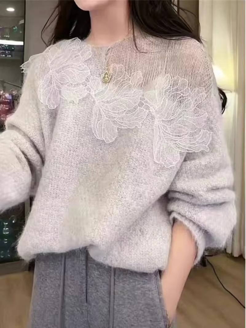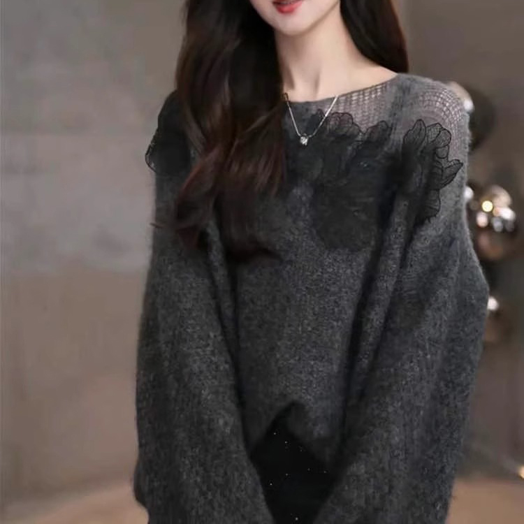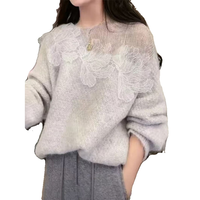 歐貨超好看立體花朵毛衣女秋冬大碼胖mm高級感寬松慵懶針織衫上衣