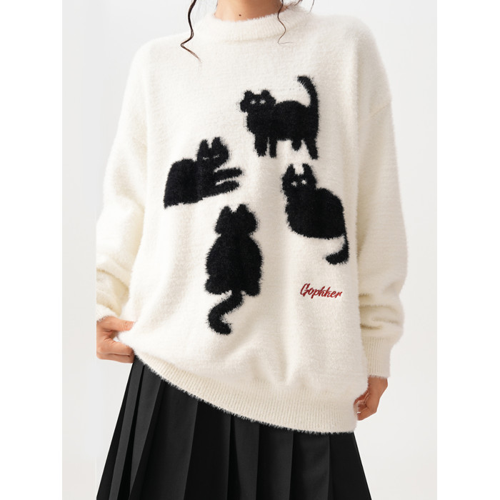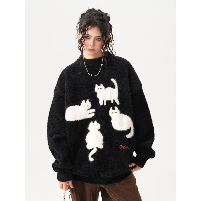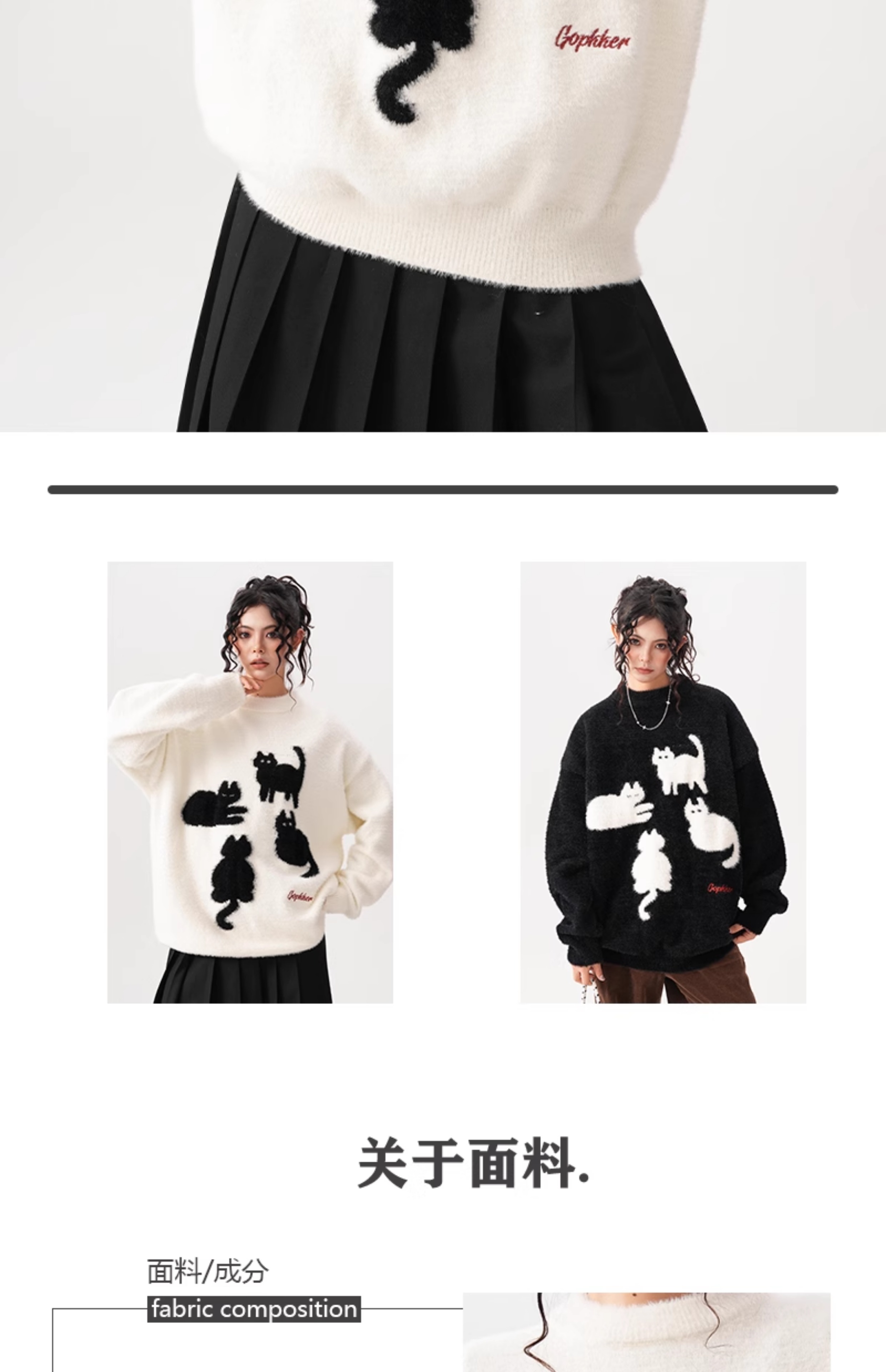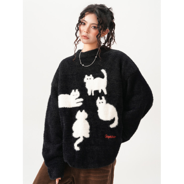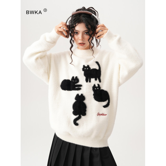 BWKA重磅馬海毛毛衣女男秋冬季潮牌寬松加厚針織衫慵懶風情侶上衣