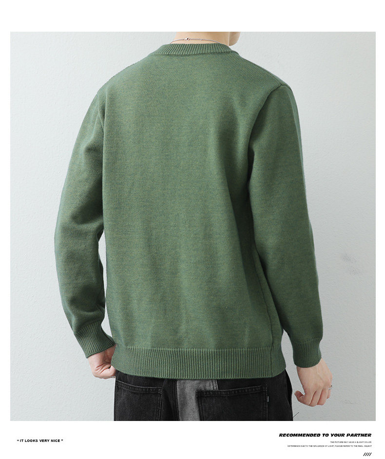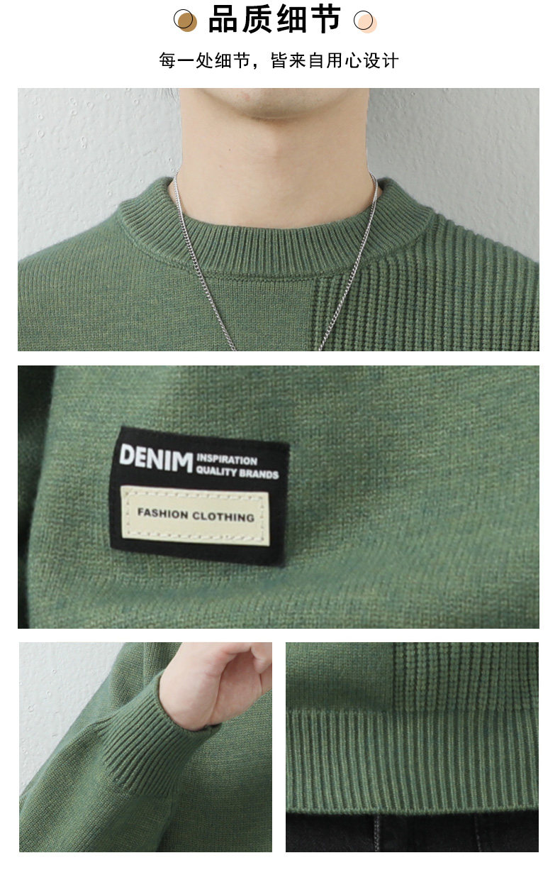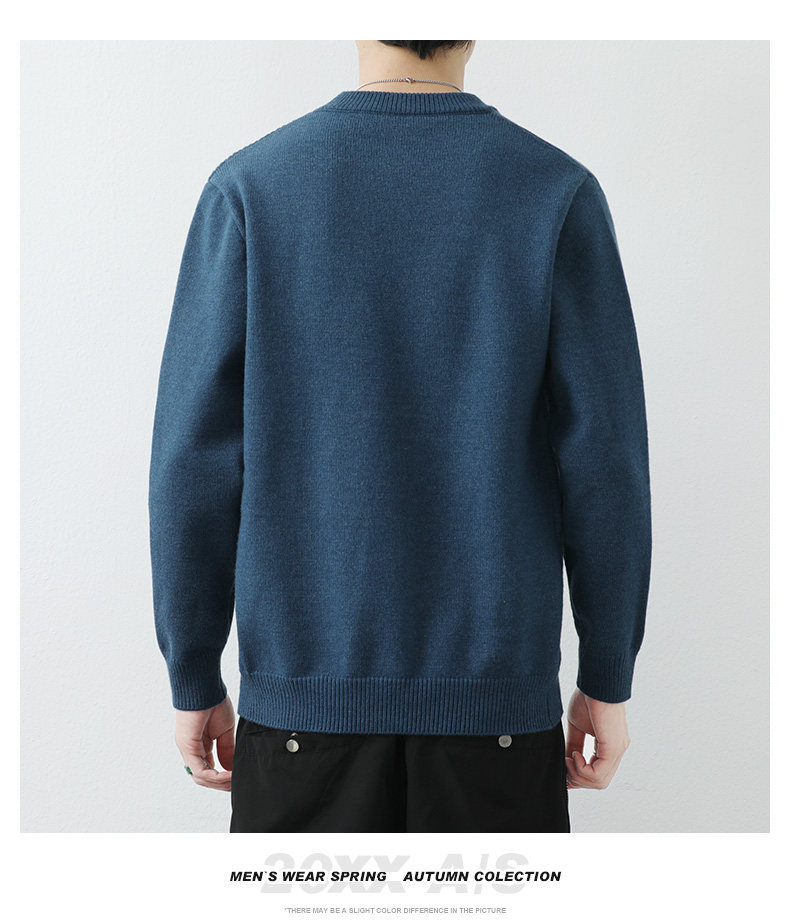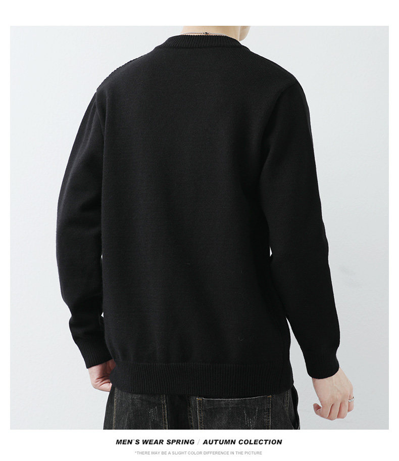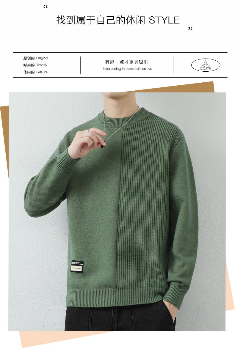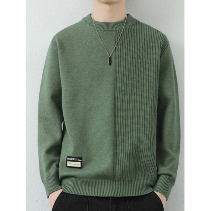高級感拼接圓領毛衣男士打底衫秋冬季寬鬆日系簡約針織衫休閒線衣