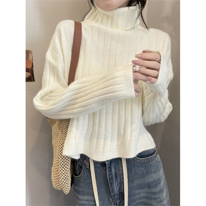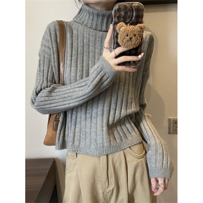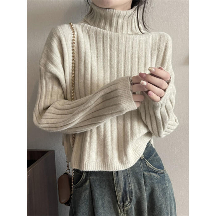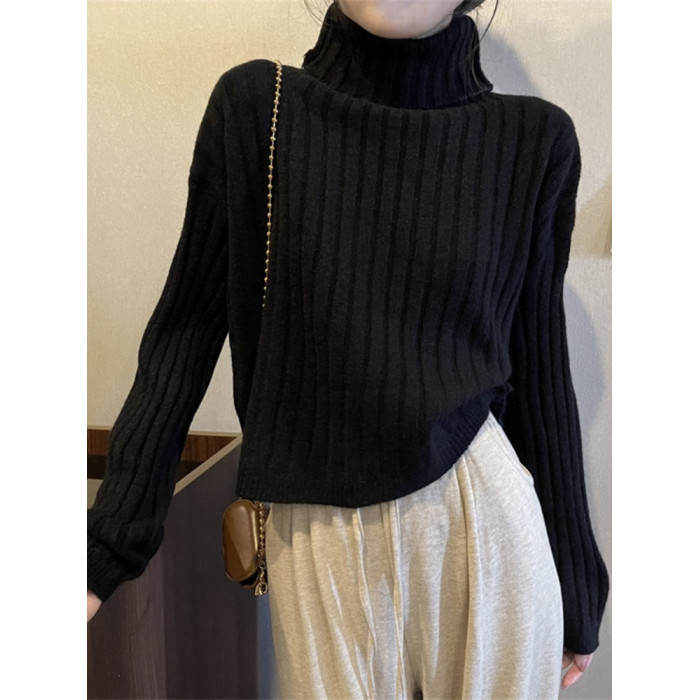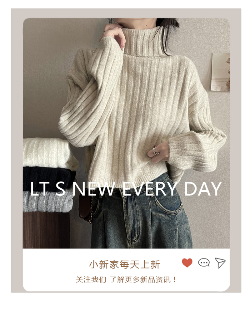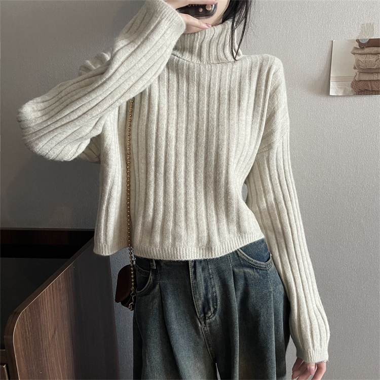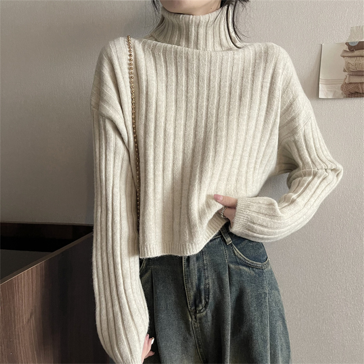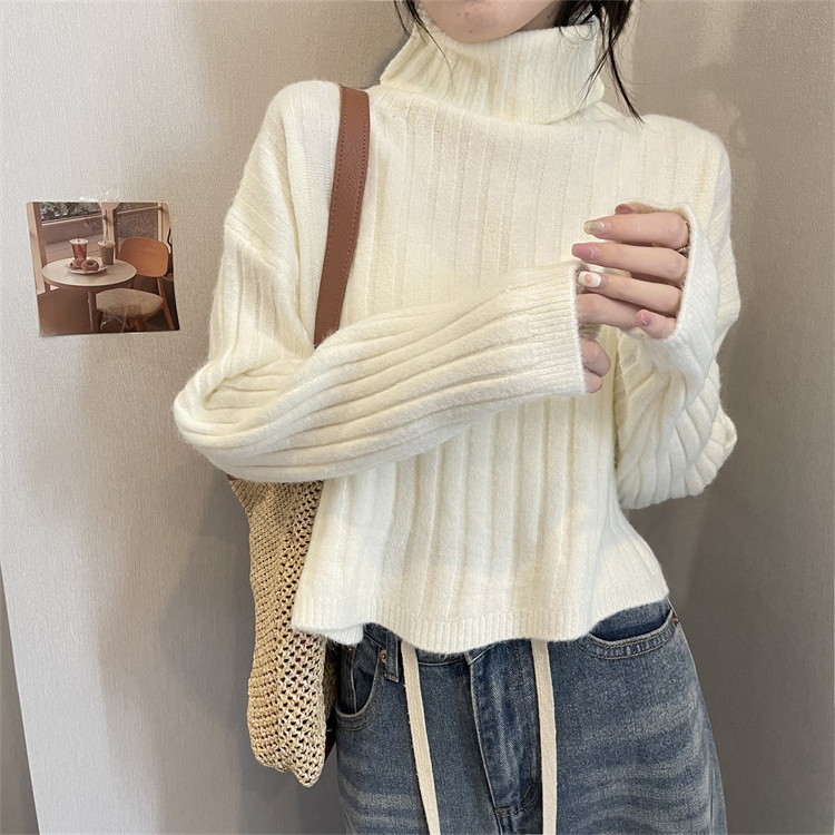 半高領內搭打底毛衣女秋冬新款坑條設計感寬松加厚短款針織衫上衣