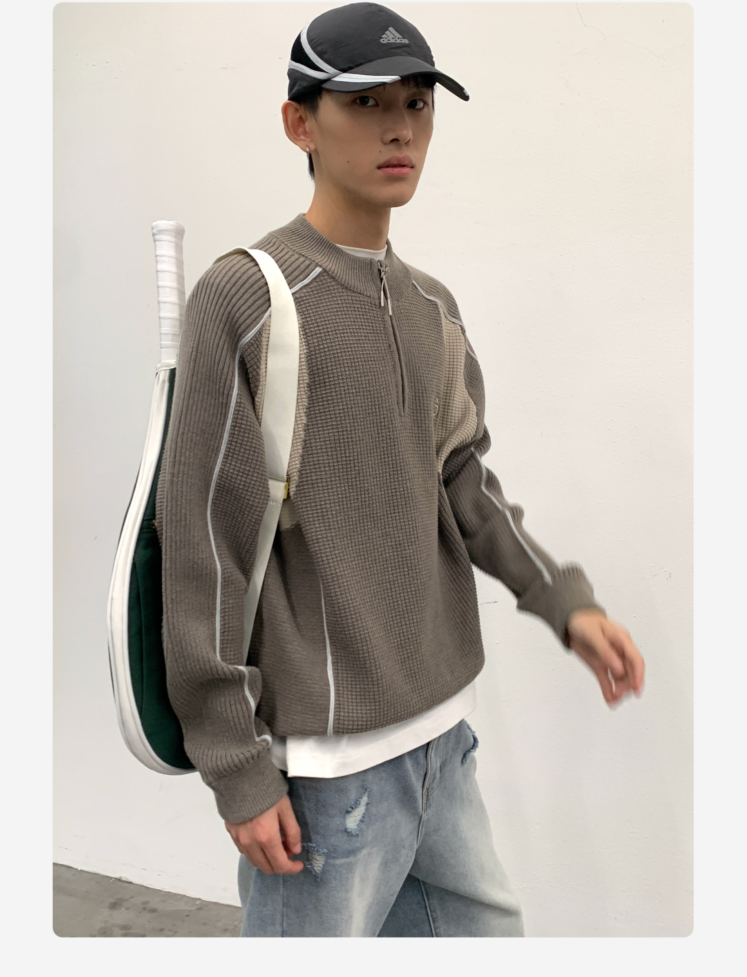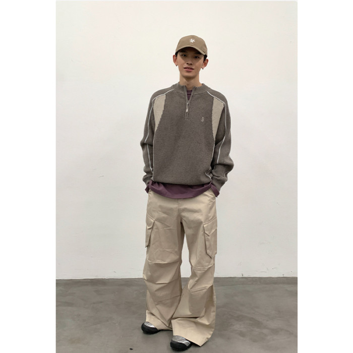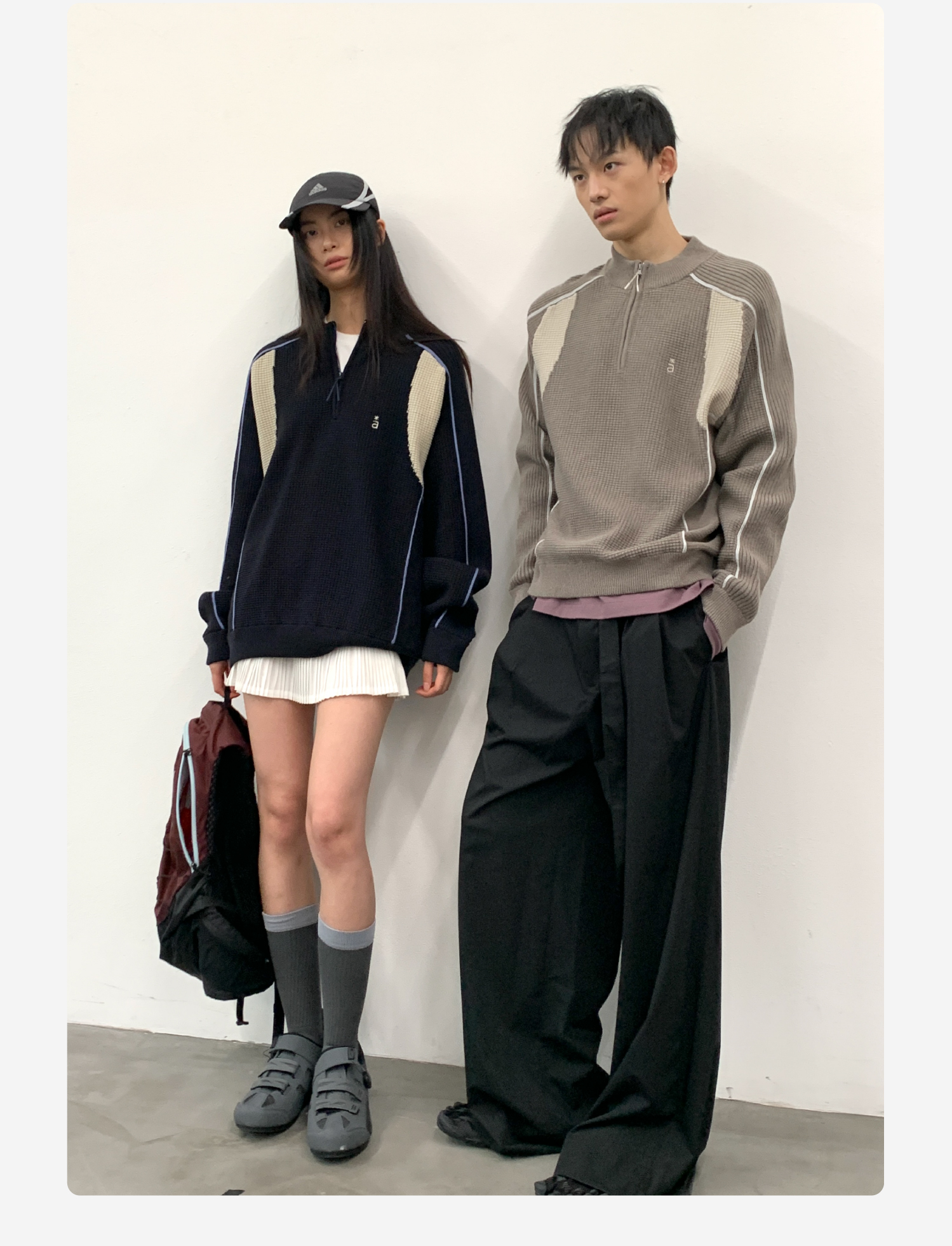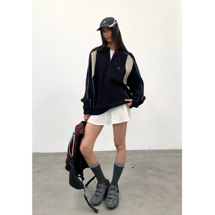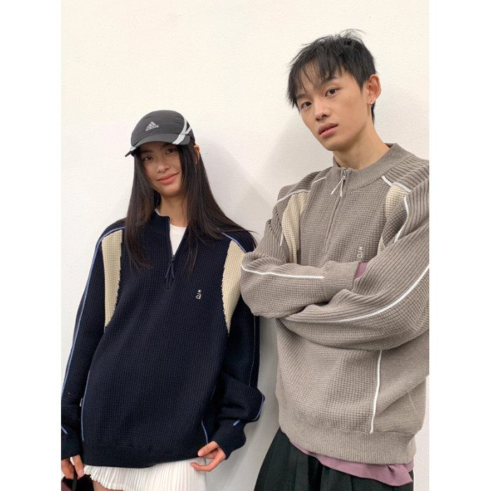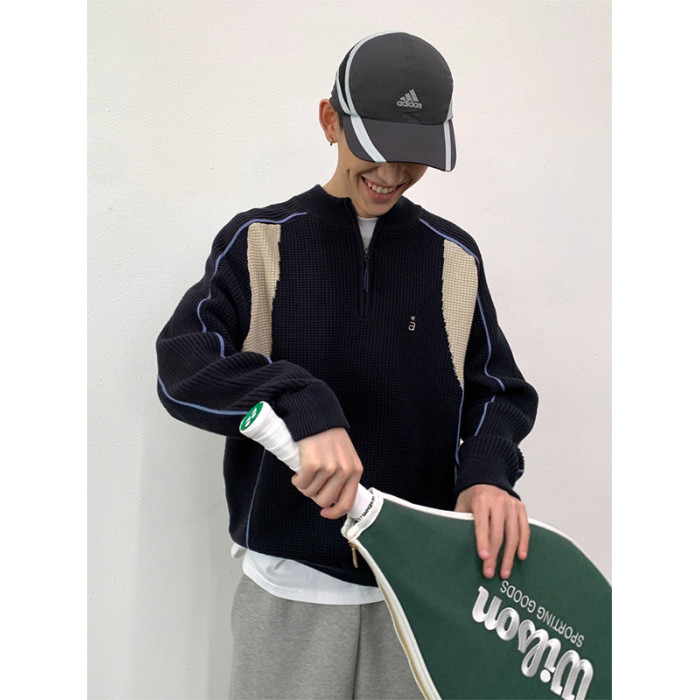 撞色拼接保暖針織衫情侶毛衣外套男秋冬季慵懶寬松休閒百搭上衣潮