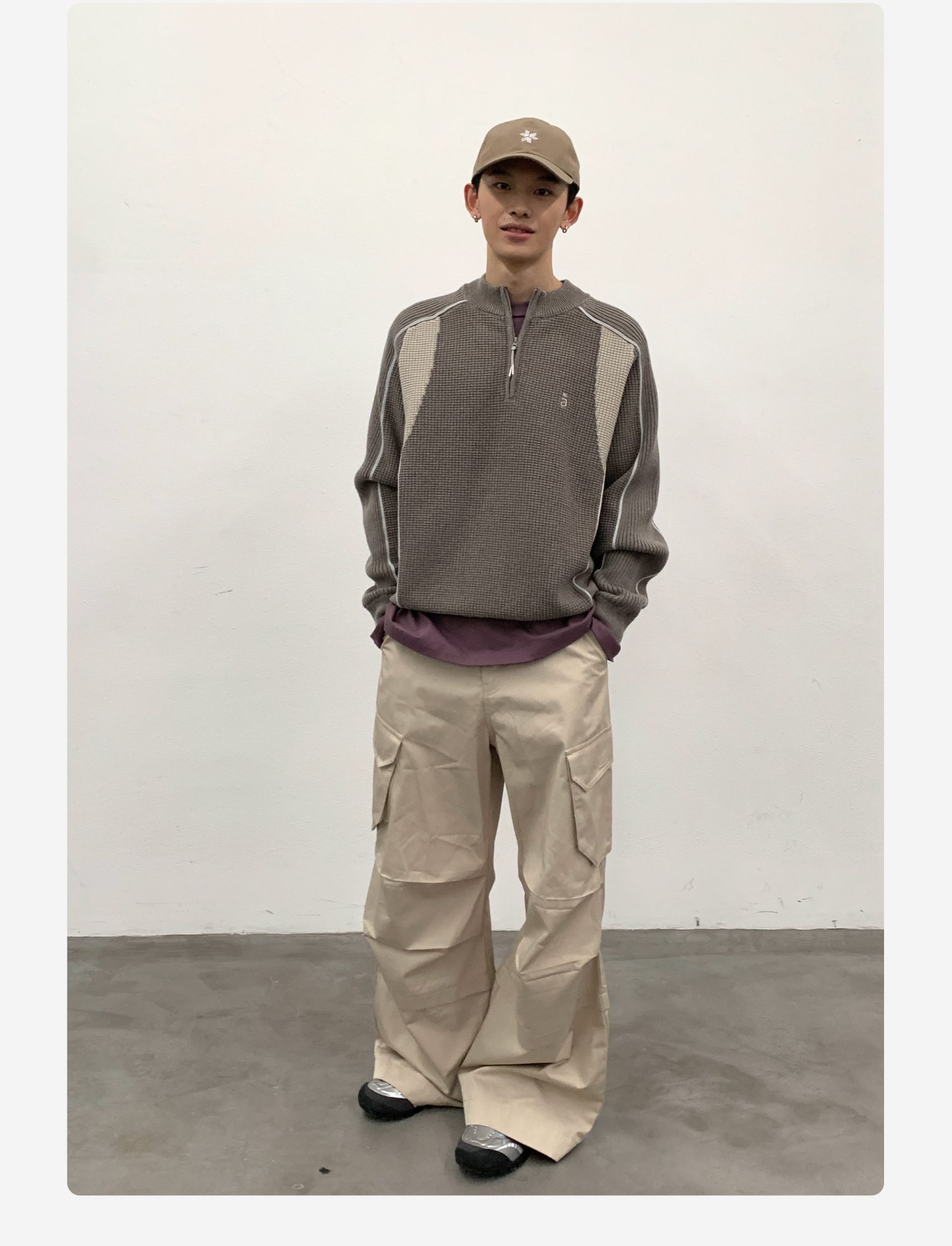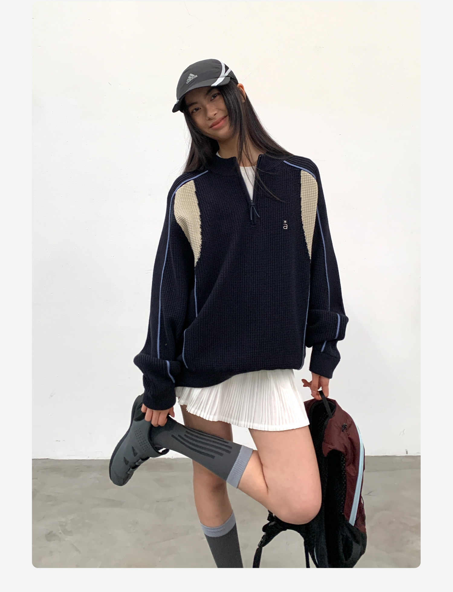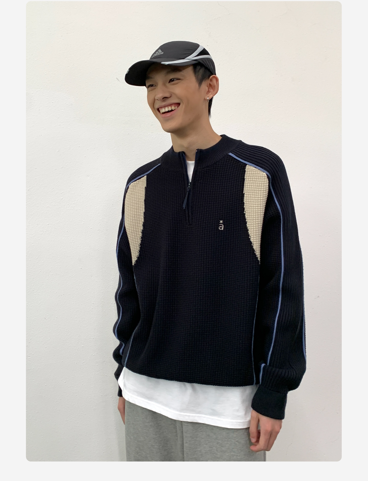 撞色拼接保暖針織衫情侶毛衣外套男秋冬季慵懶寬松休閒百搭上衣潮
