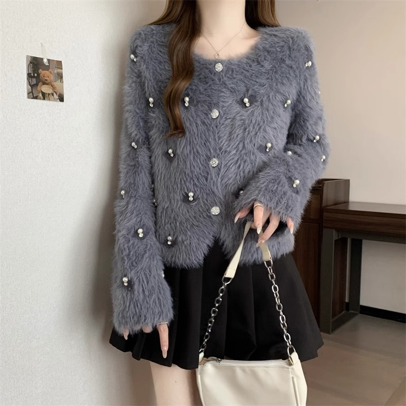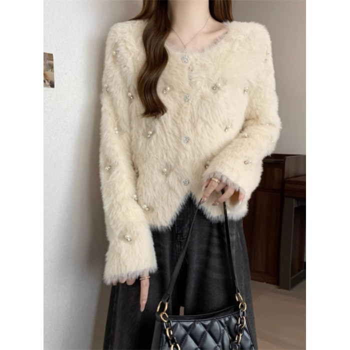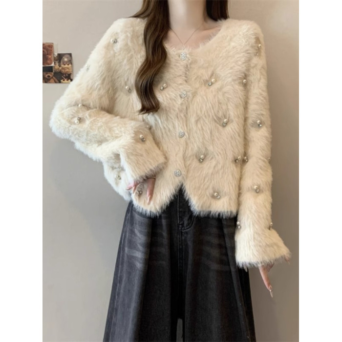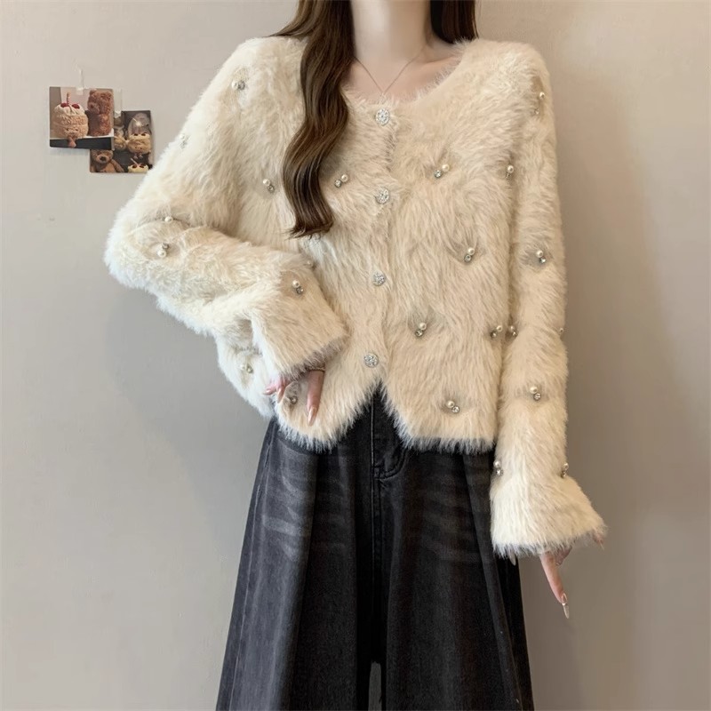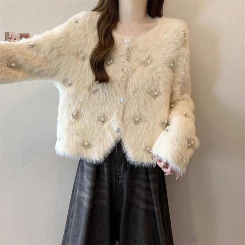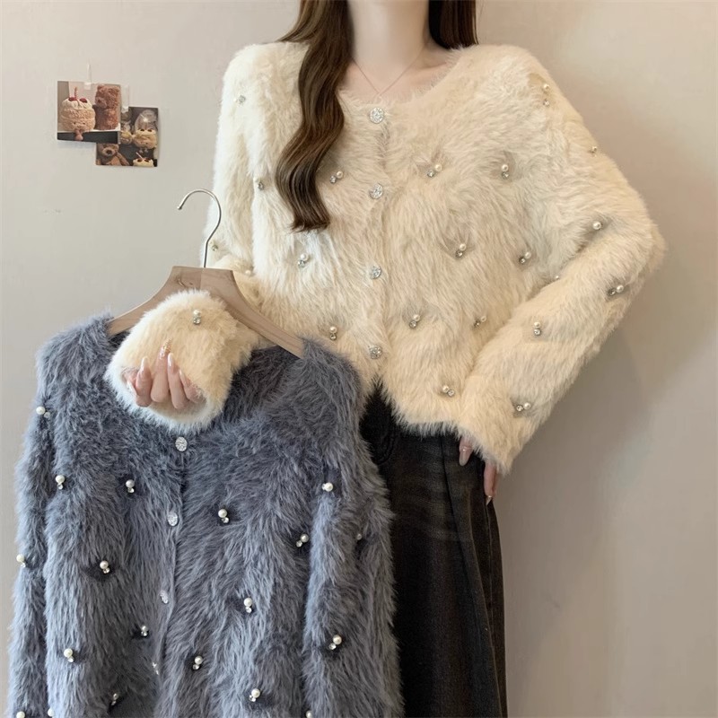 大碼小香風水貂絨毛衣外套女冬2024新款胖mm遮肉顯瘦針織開衫上衣