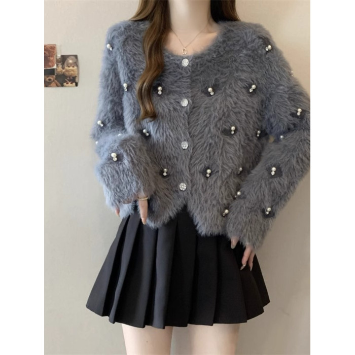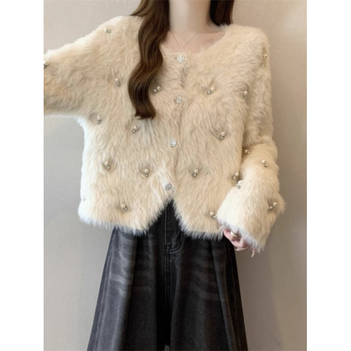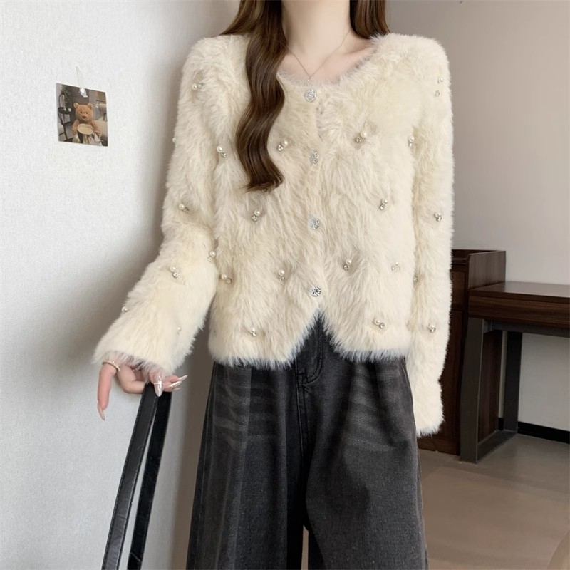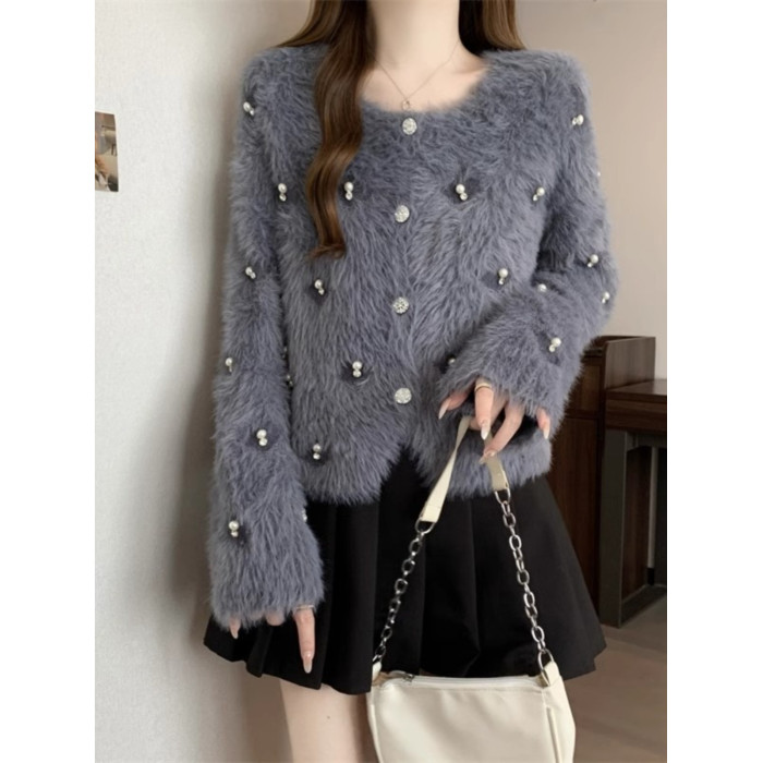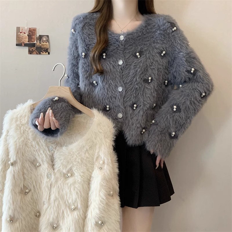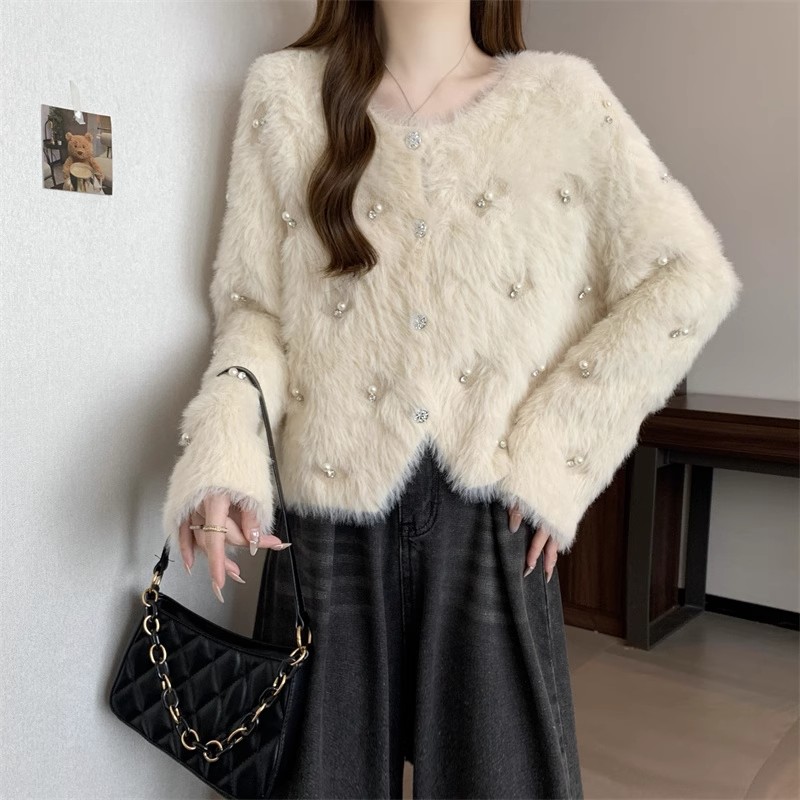 大碼小香風水貂絨毛衣外套女冬2024新款胖mm遮肉顯瘦針織開衫上衣