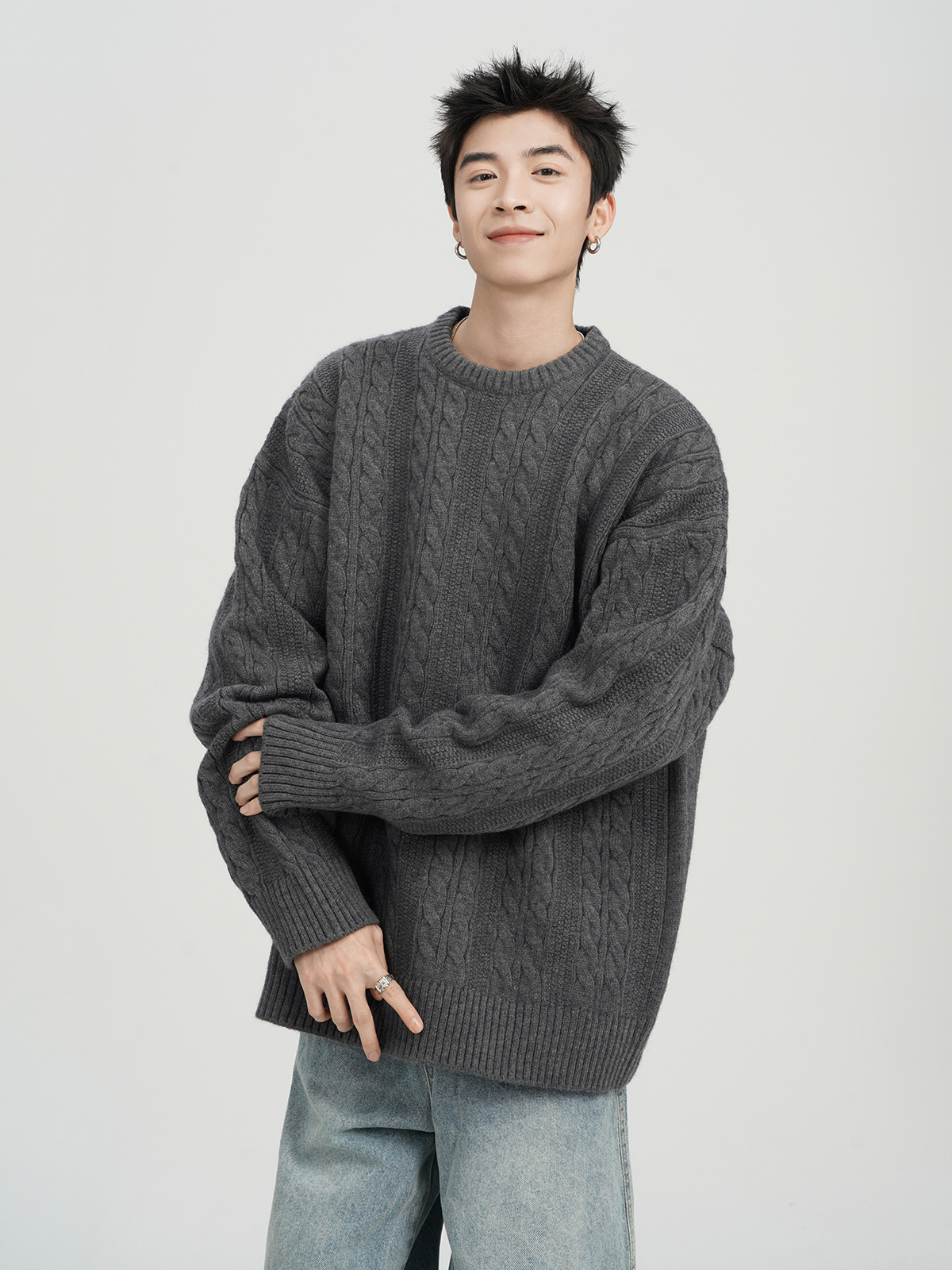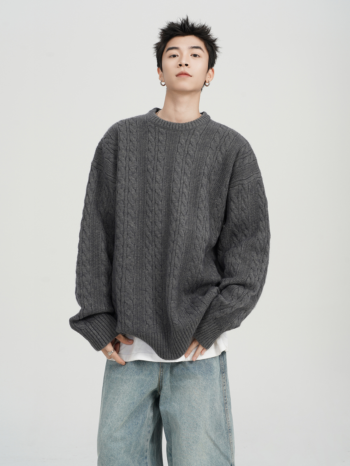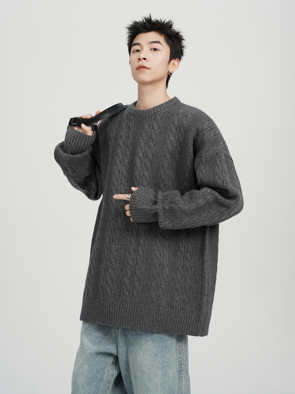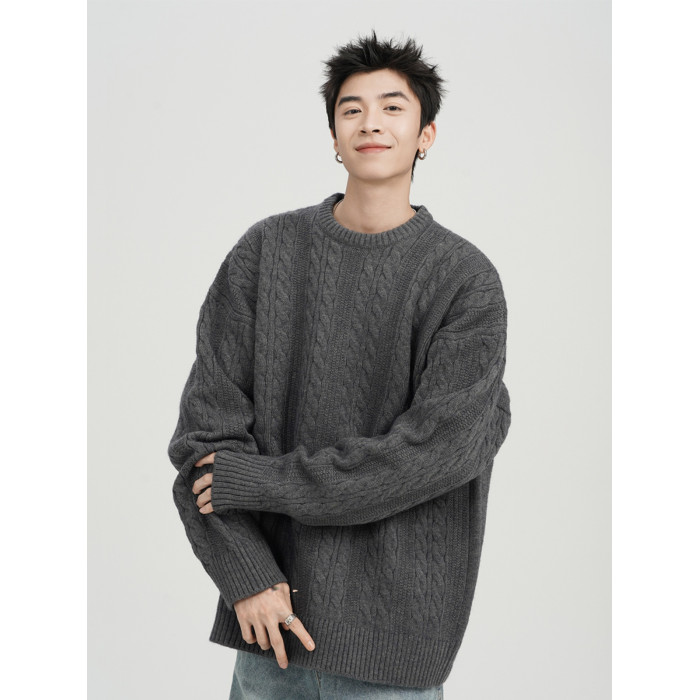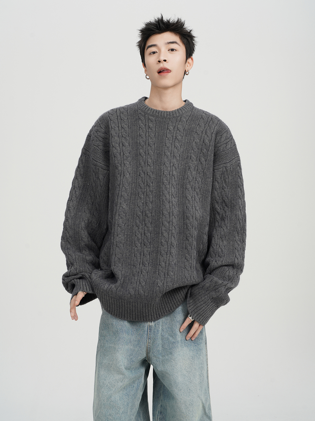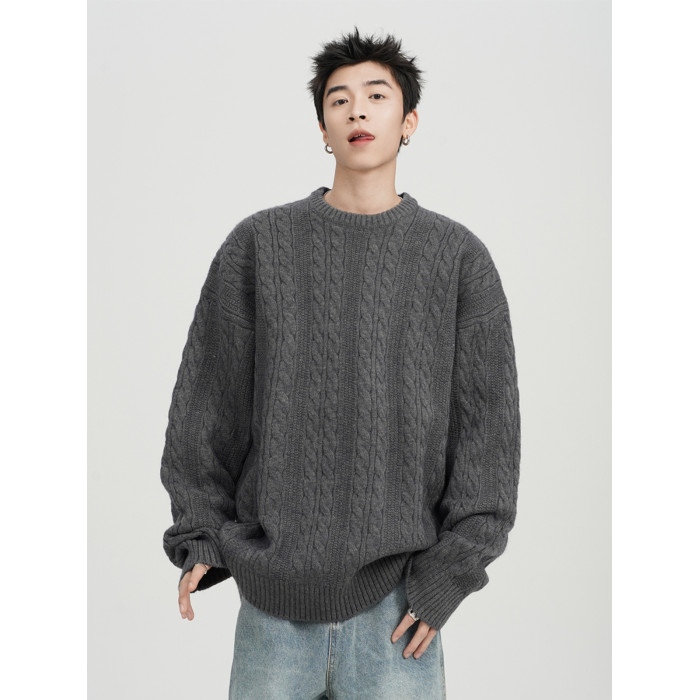 深灰色麻花毛衣男冬季潮牌oversize情侶針織衫美式慵懶風毛線衣