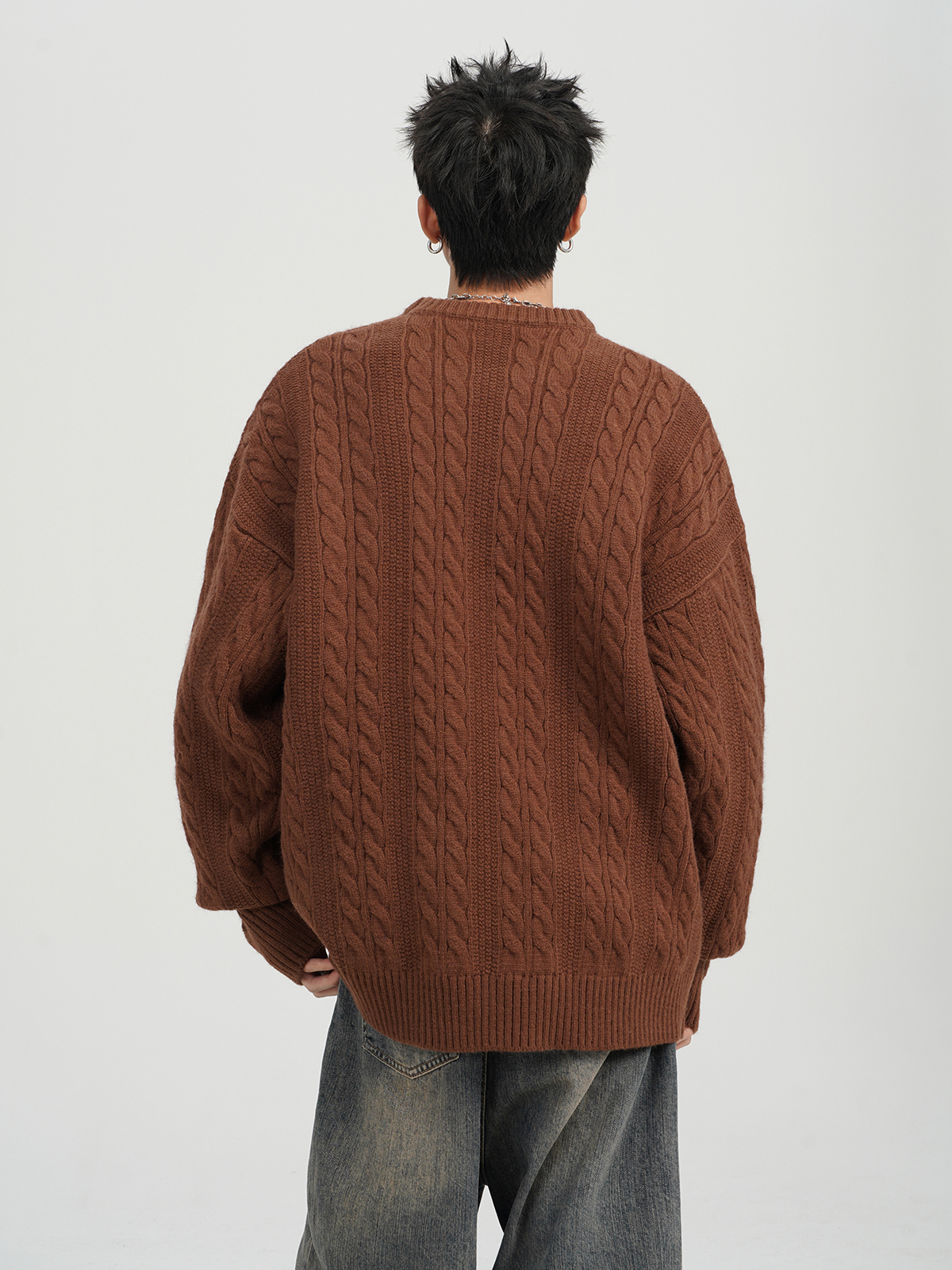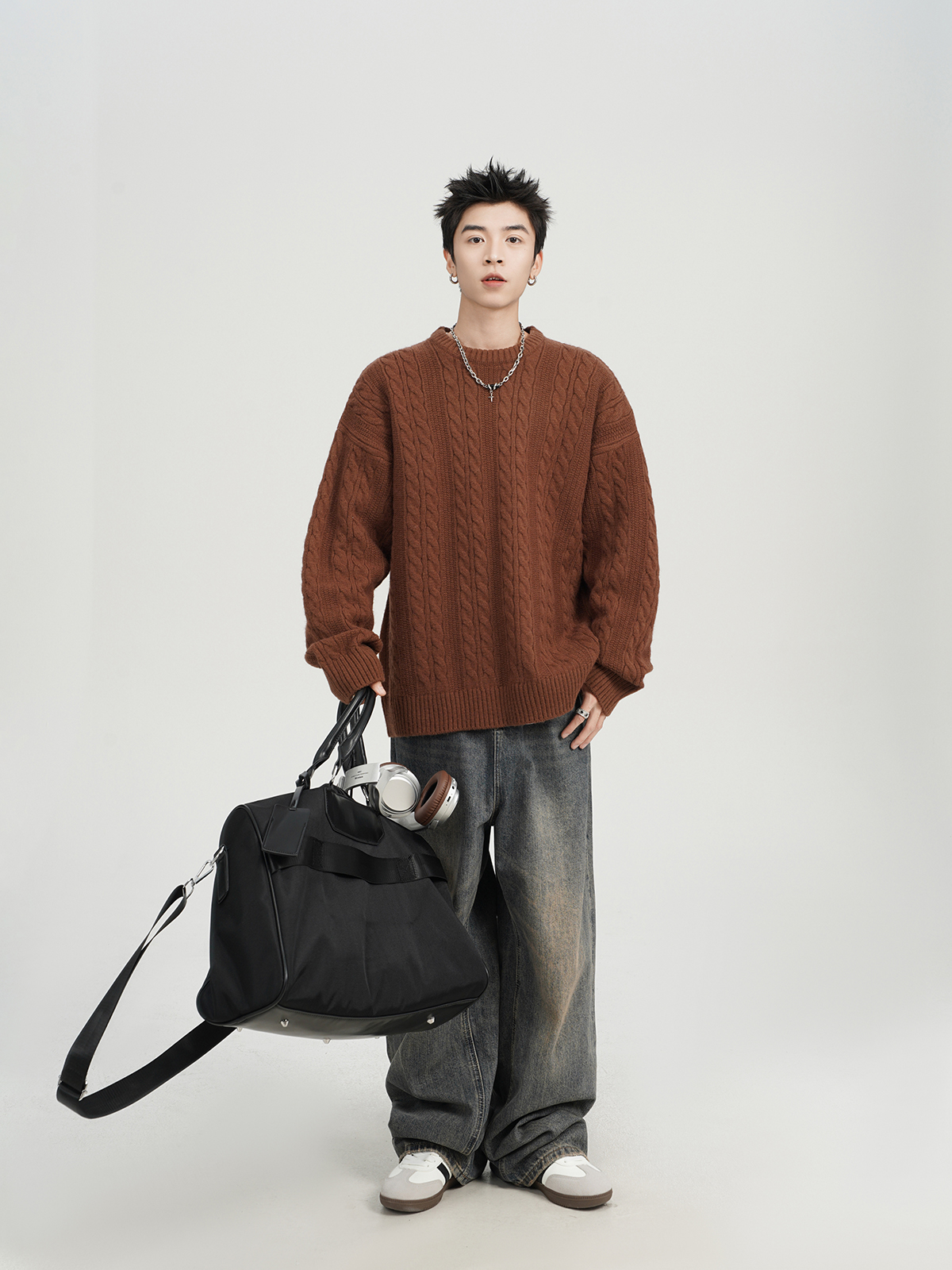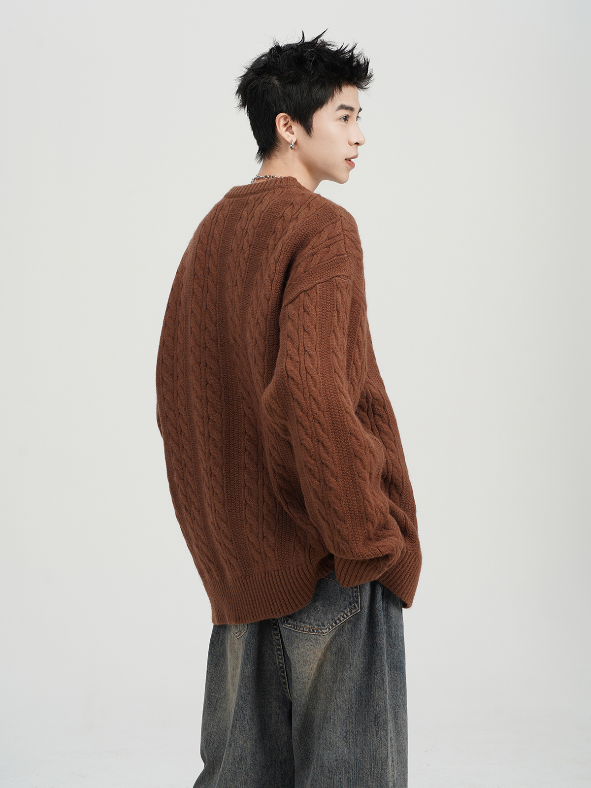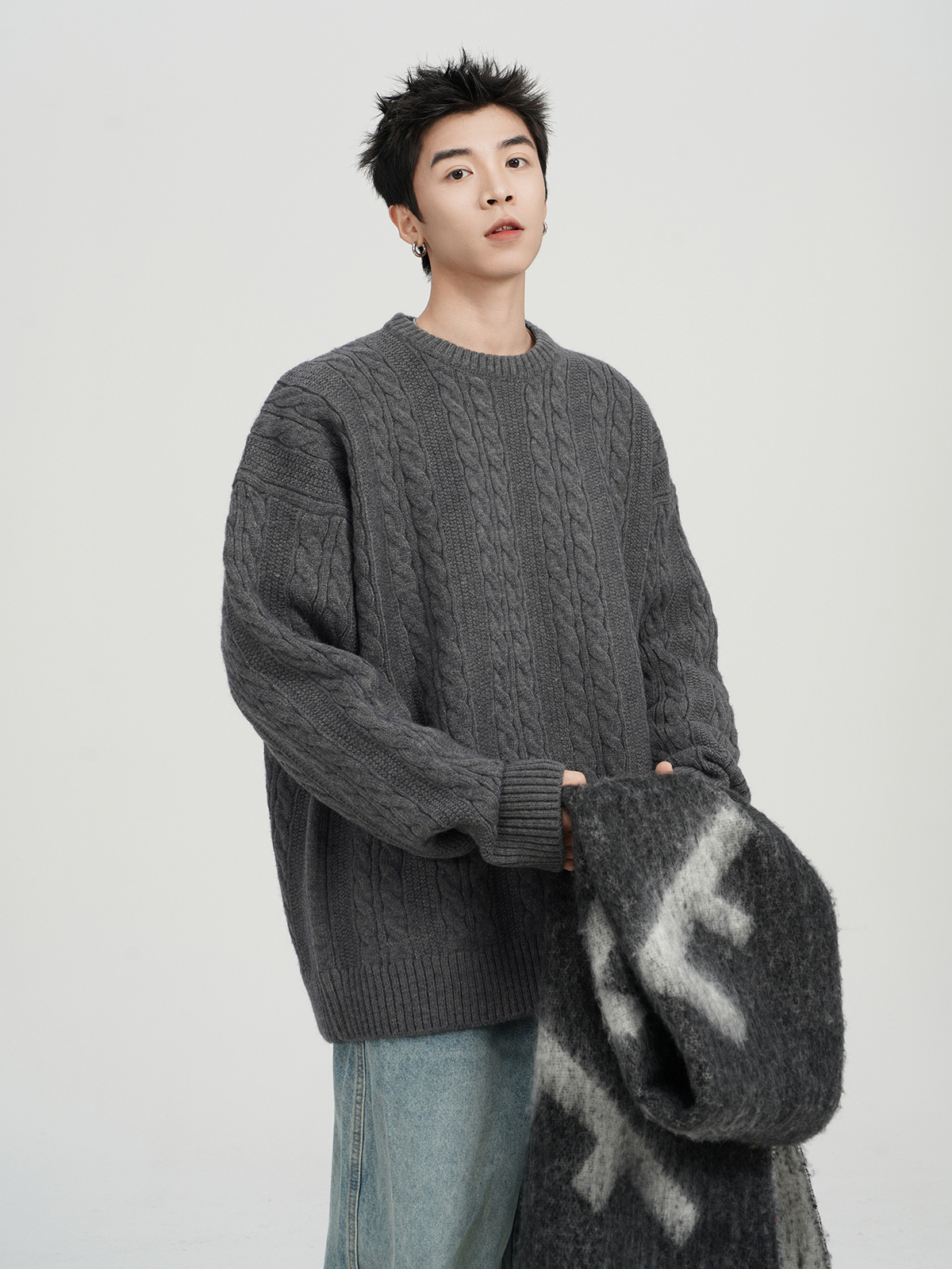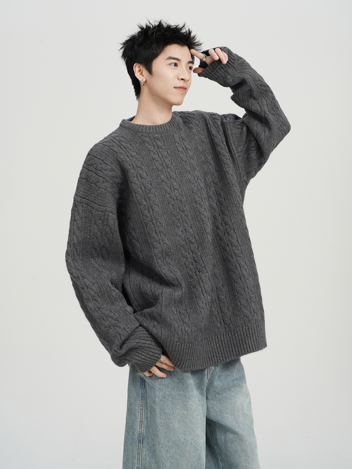 深灰色麻花毛衣男冬季潮牌oversize情侶針織衫美式慵懶風毛線衣