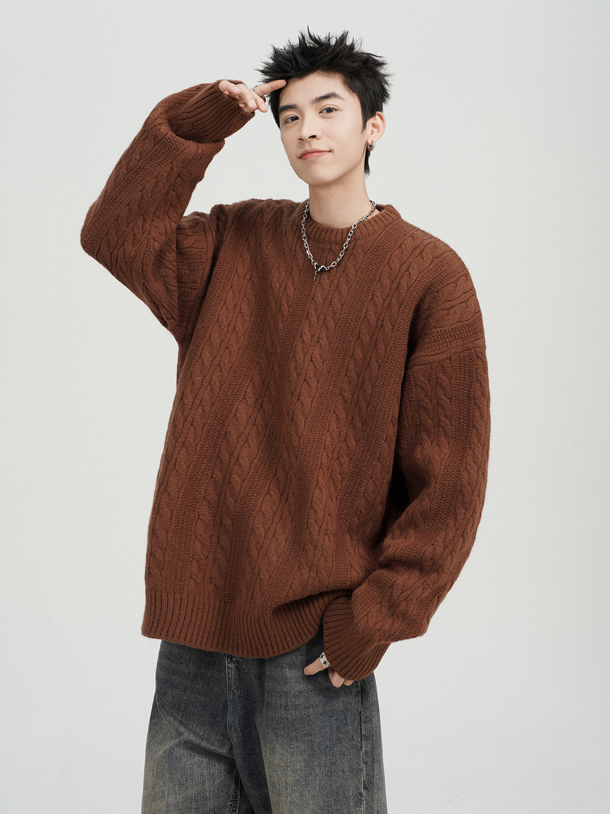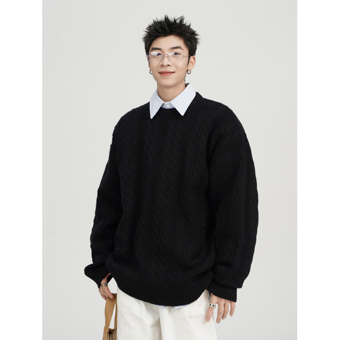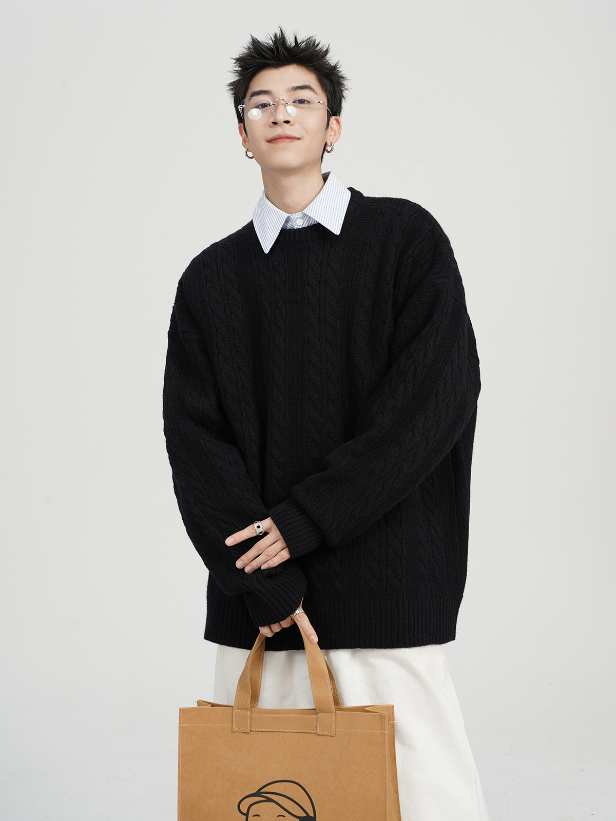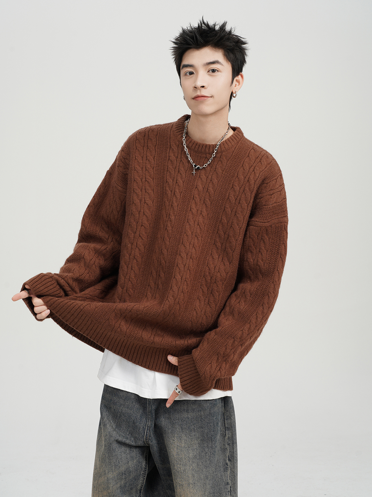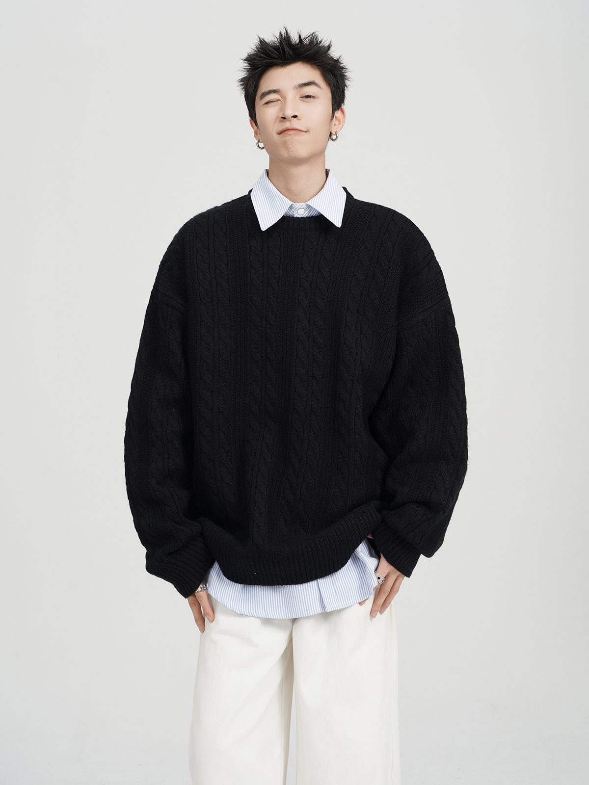 深灰色麻花毛衣男冬季潮牌oversize情侶針織衫美式慵懶風毛線衣