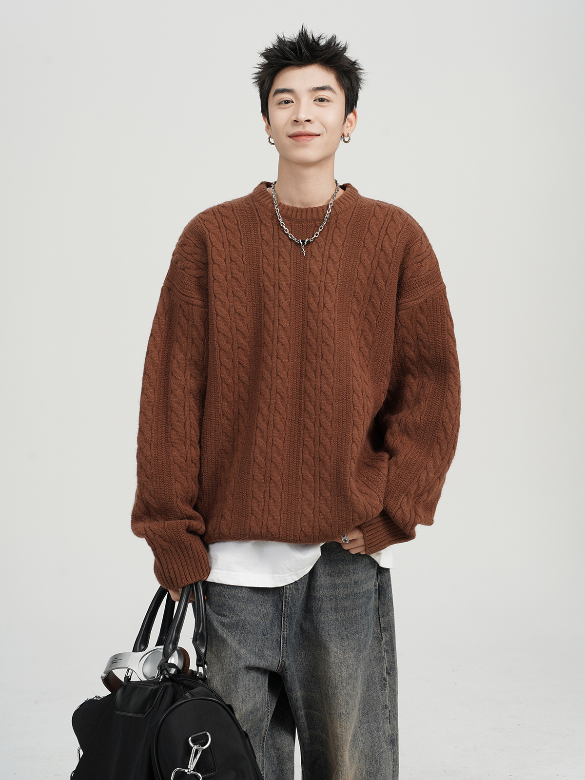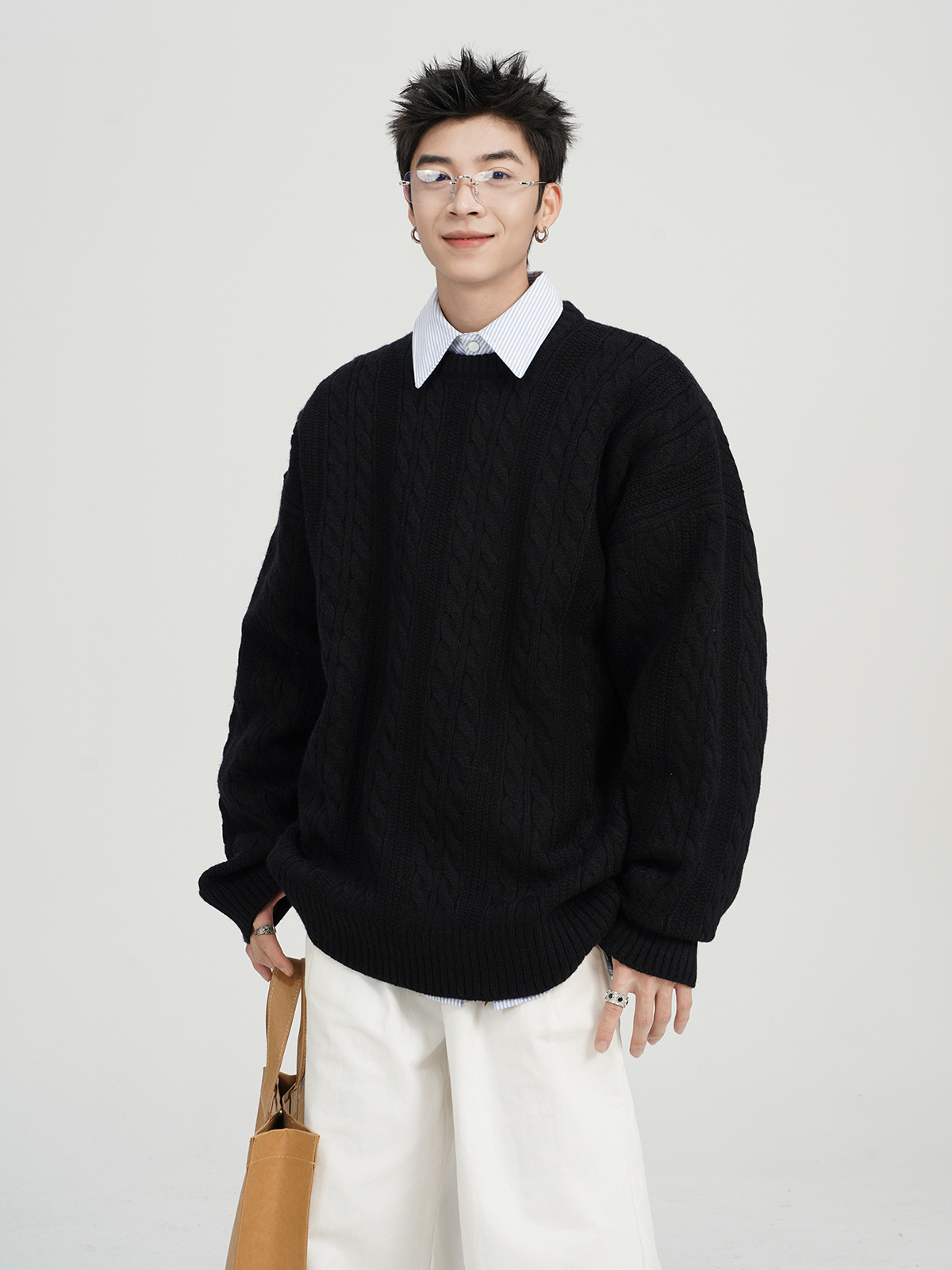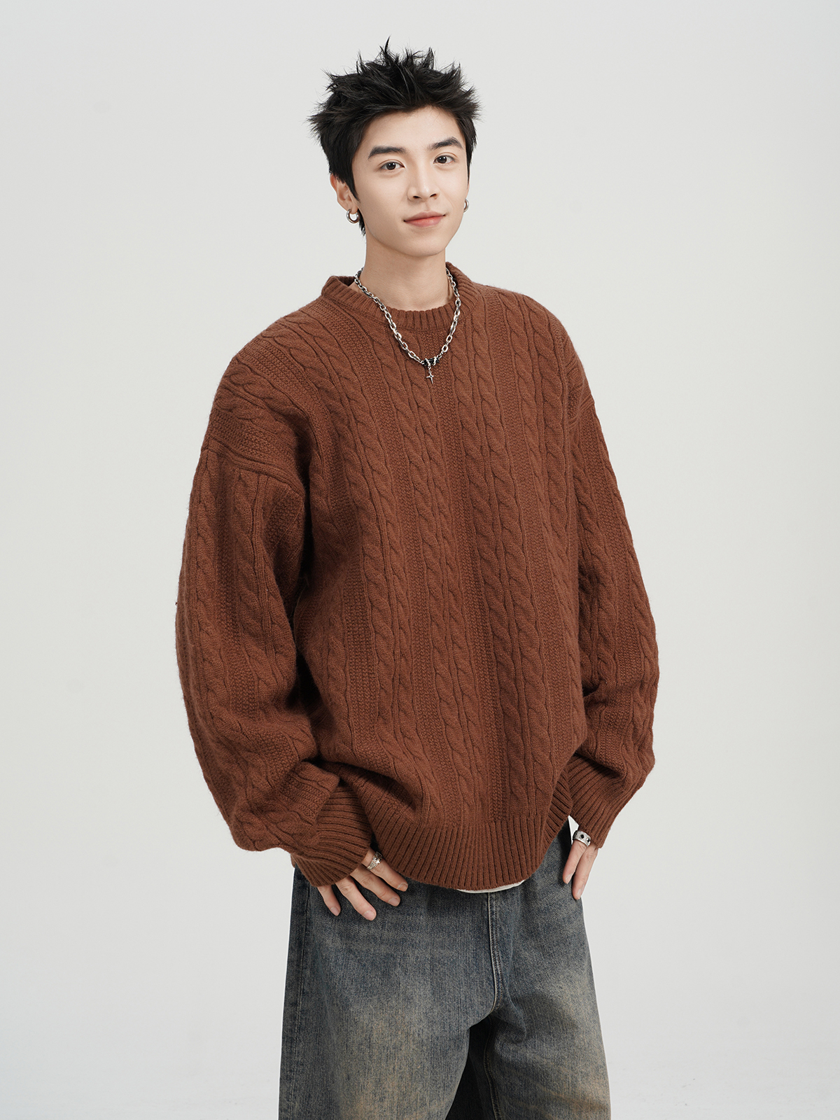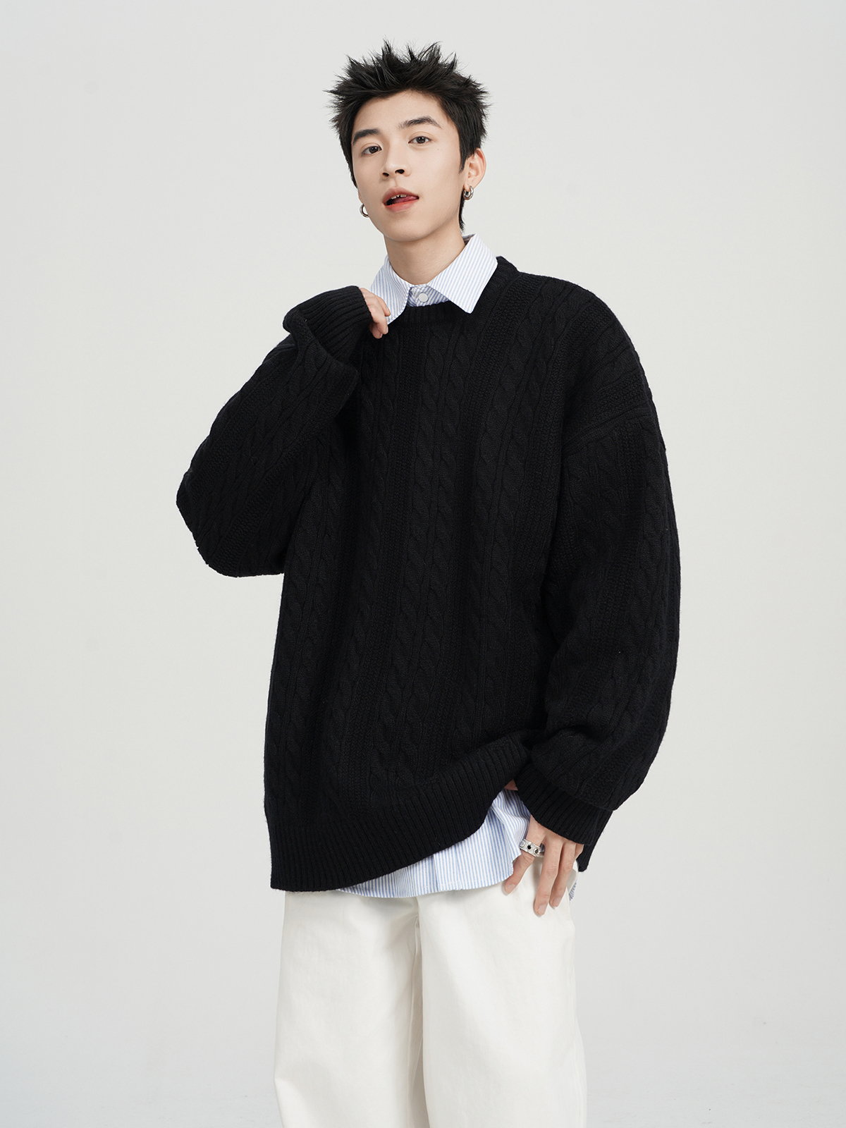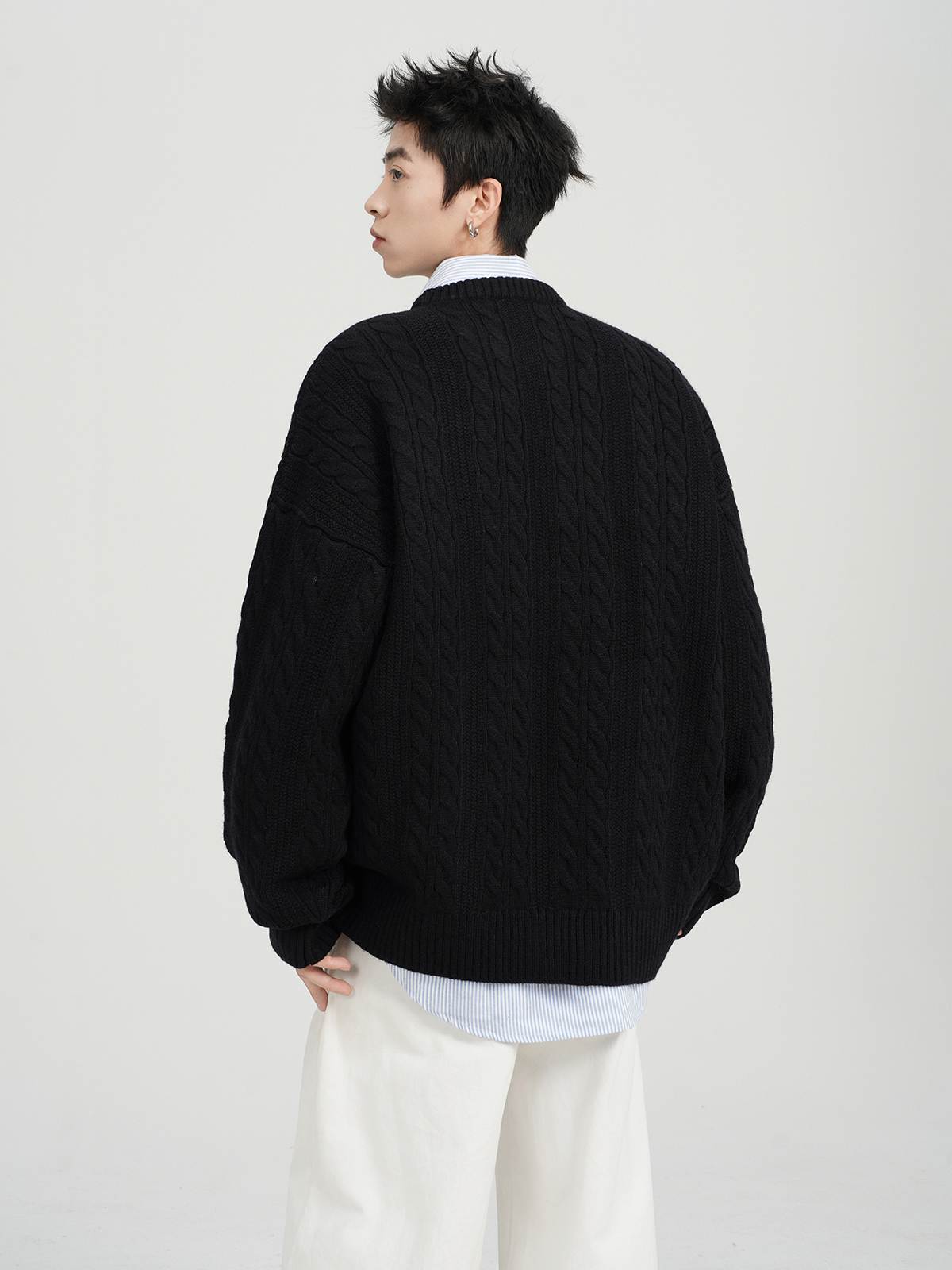 深灰色麻花毛衣男冬季潮牌oversize情侶針織衫美式慵懶風毛線衣