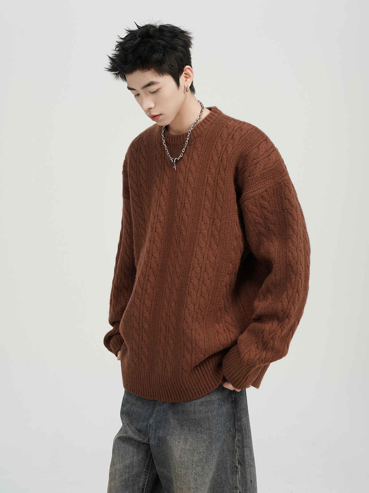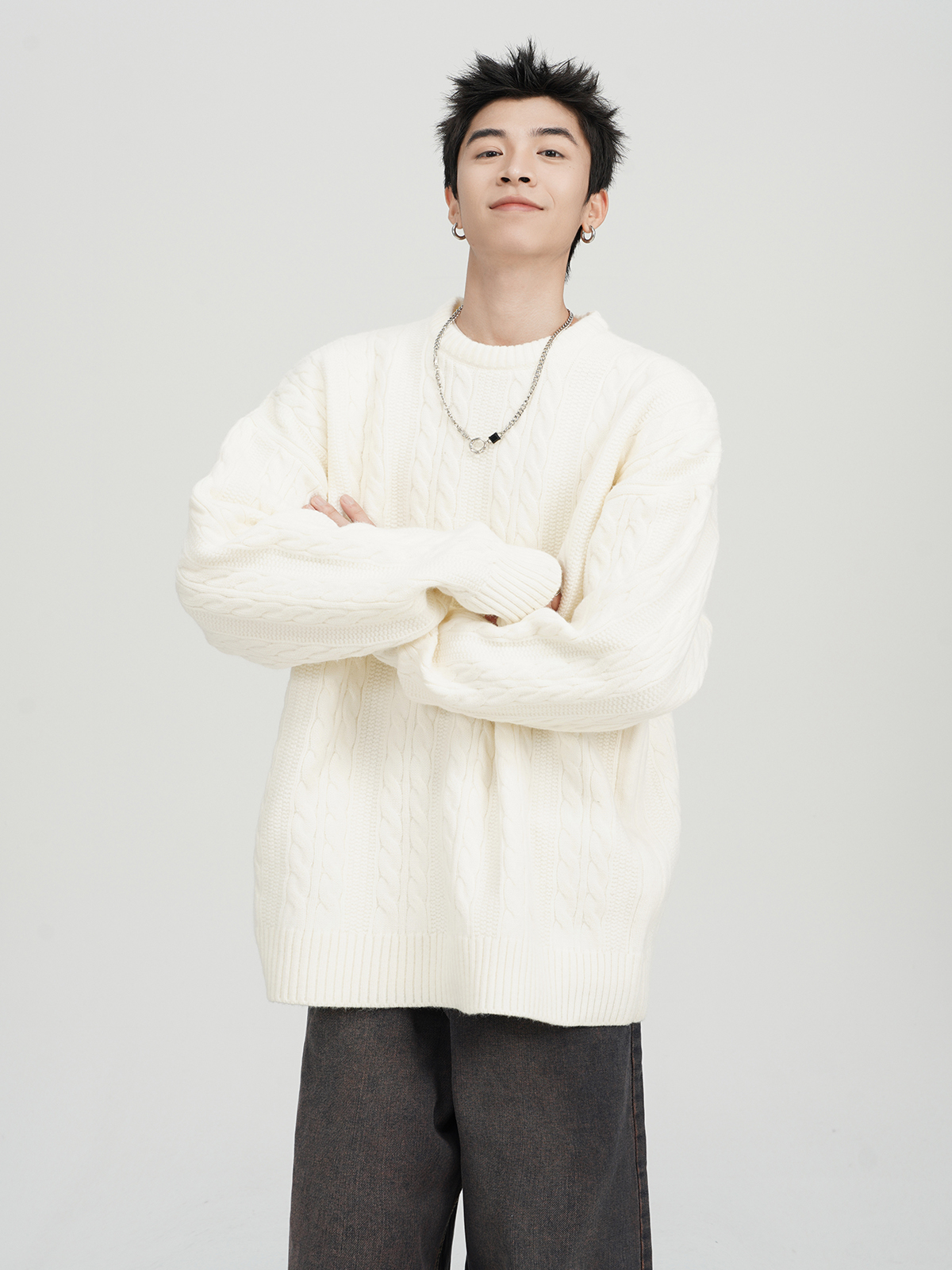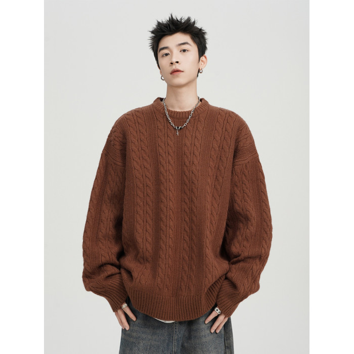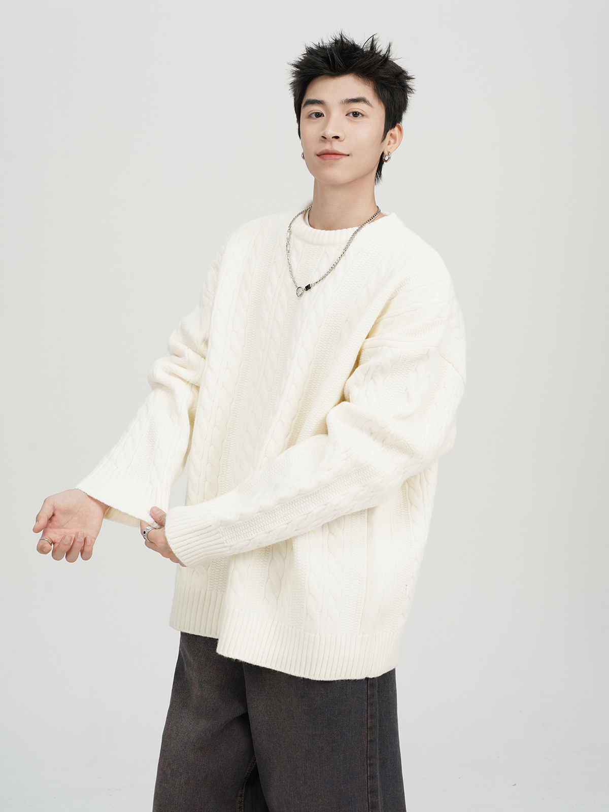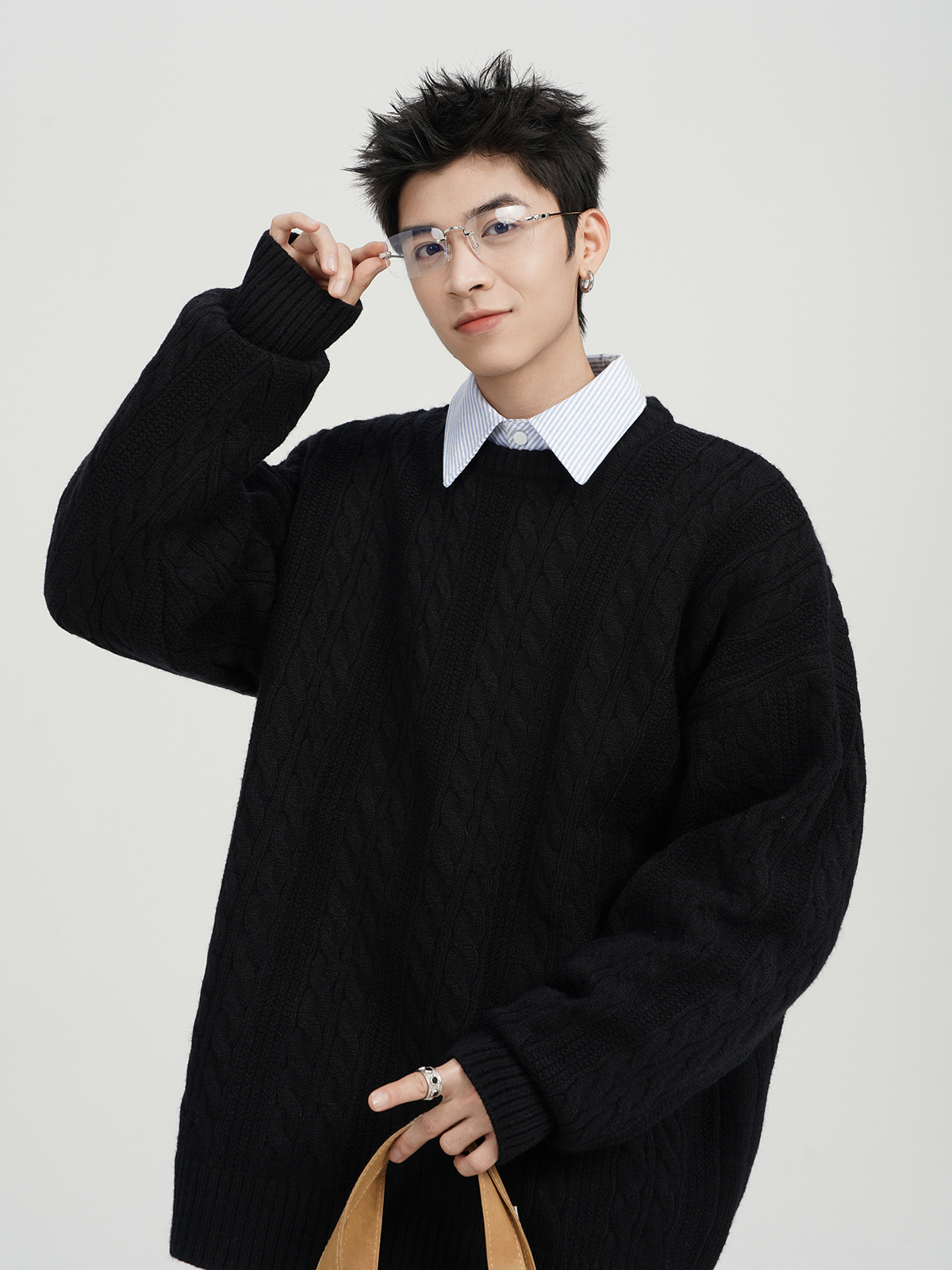 深灰色麻花毛衣男冬季潮牌oversize情侶針織衫美式慵懶風毛線衣