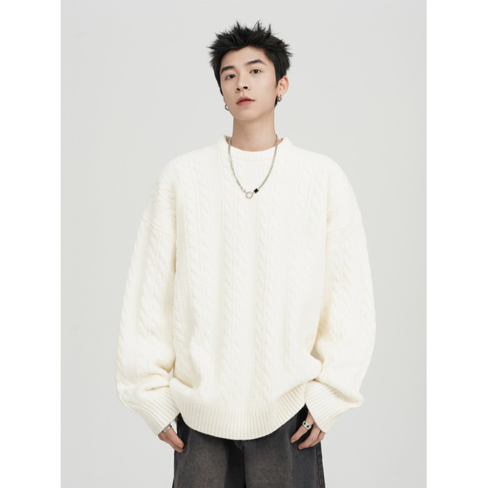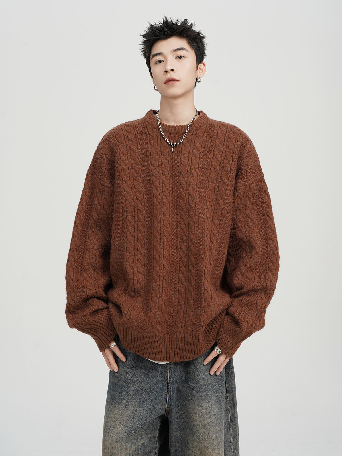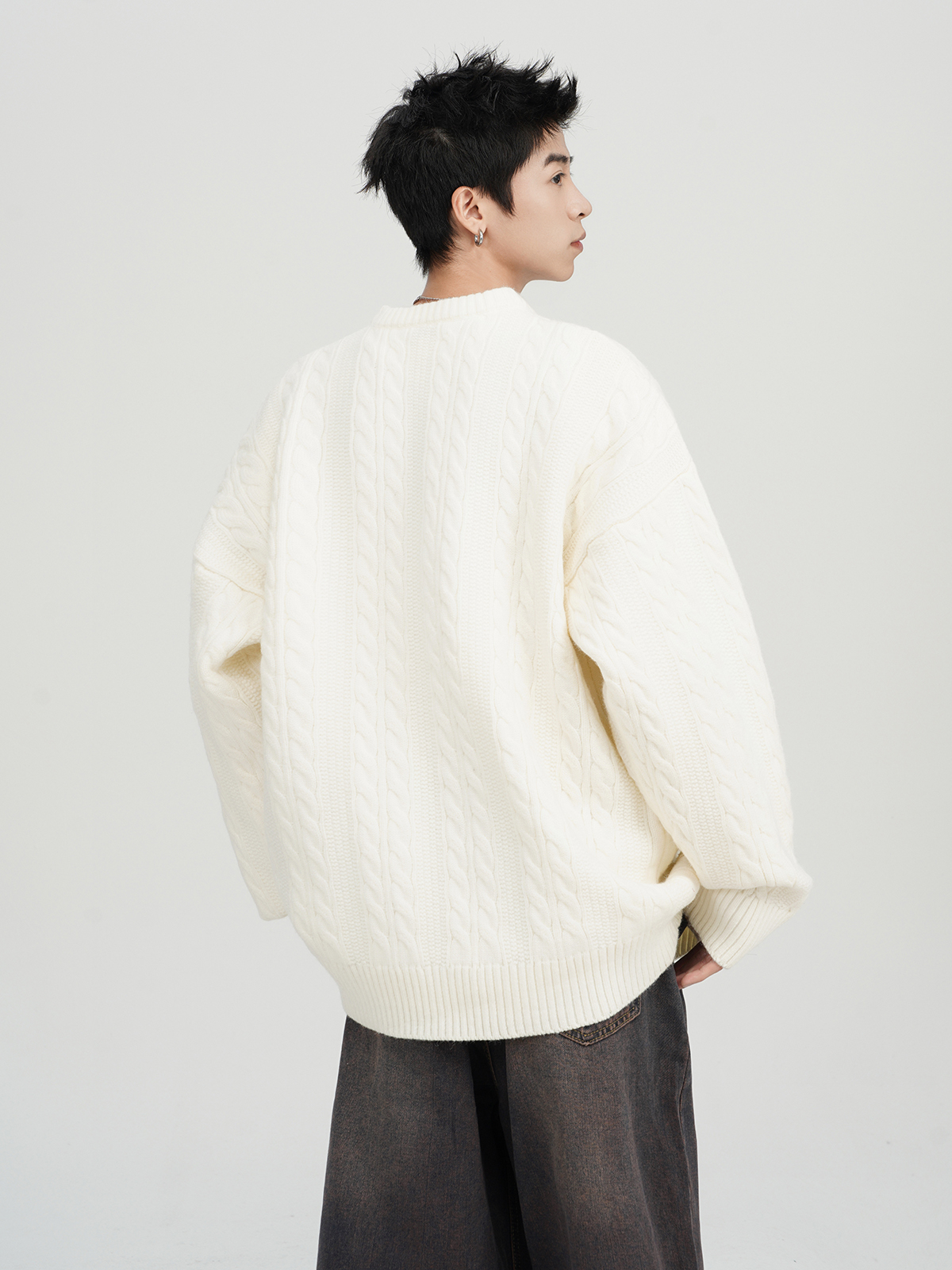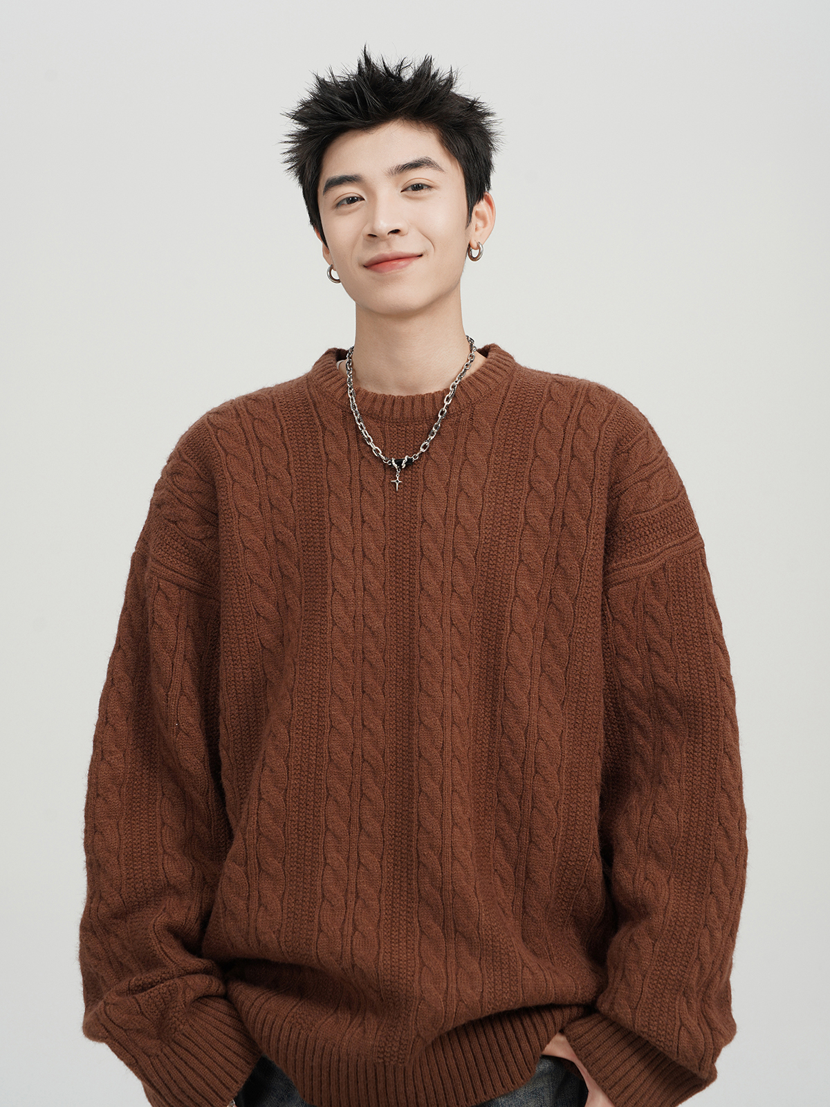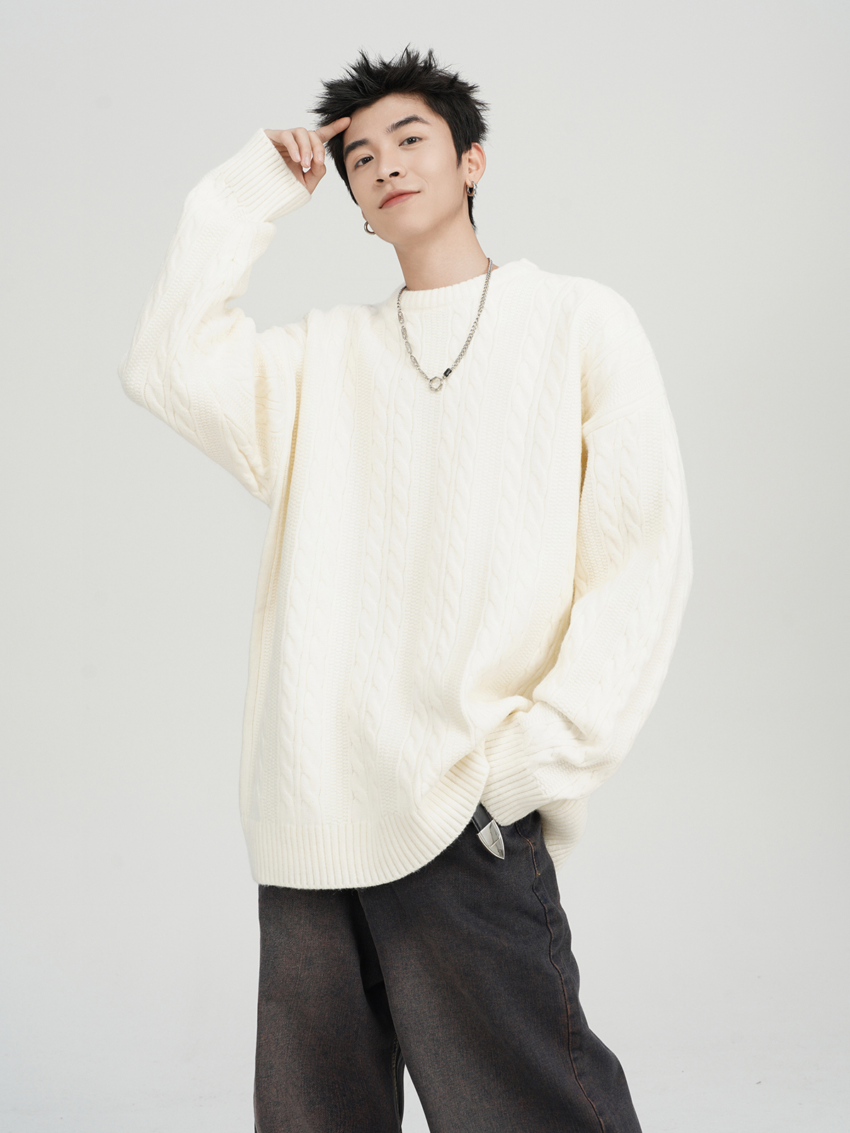 深灰色麻花毛衣男冬季潮牌oversize情侶針織衫美式慵懶風毛線衣