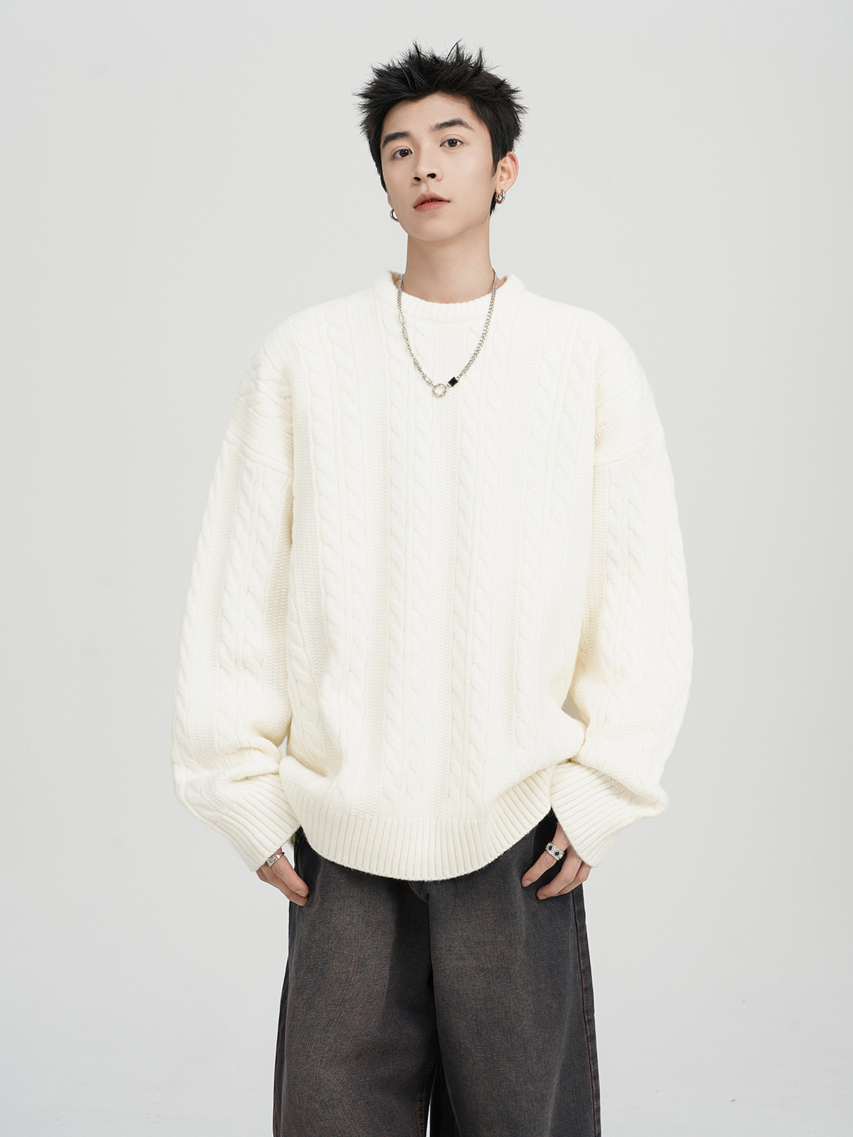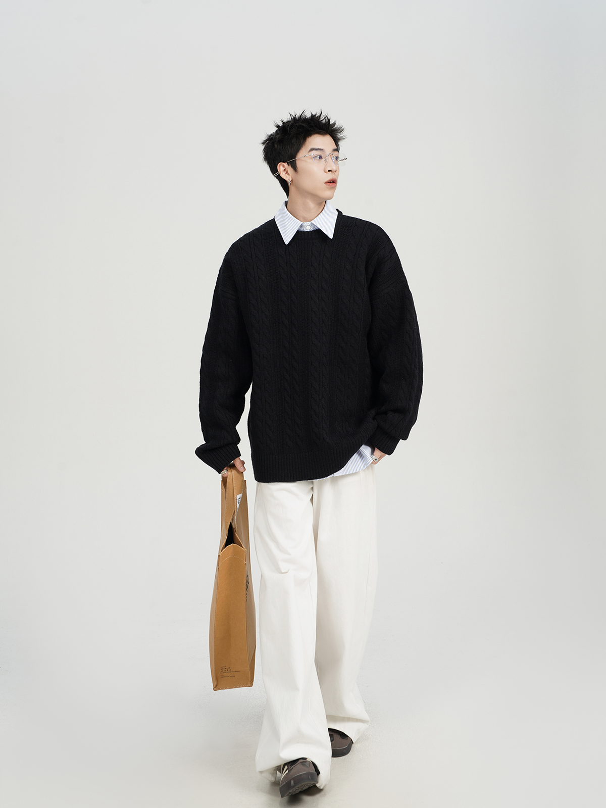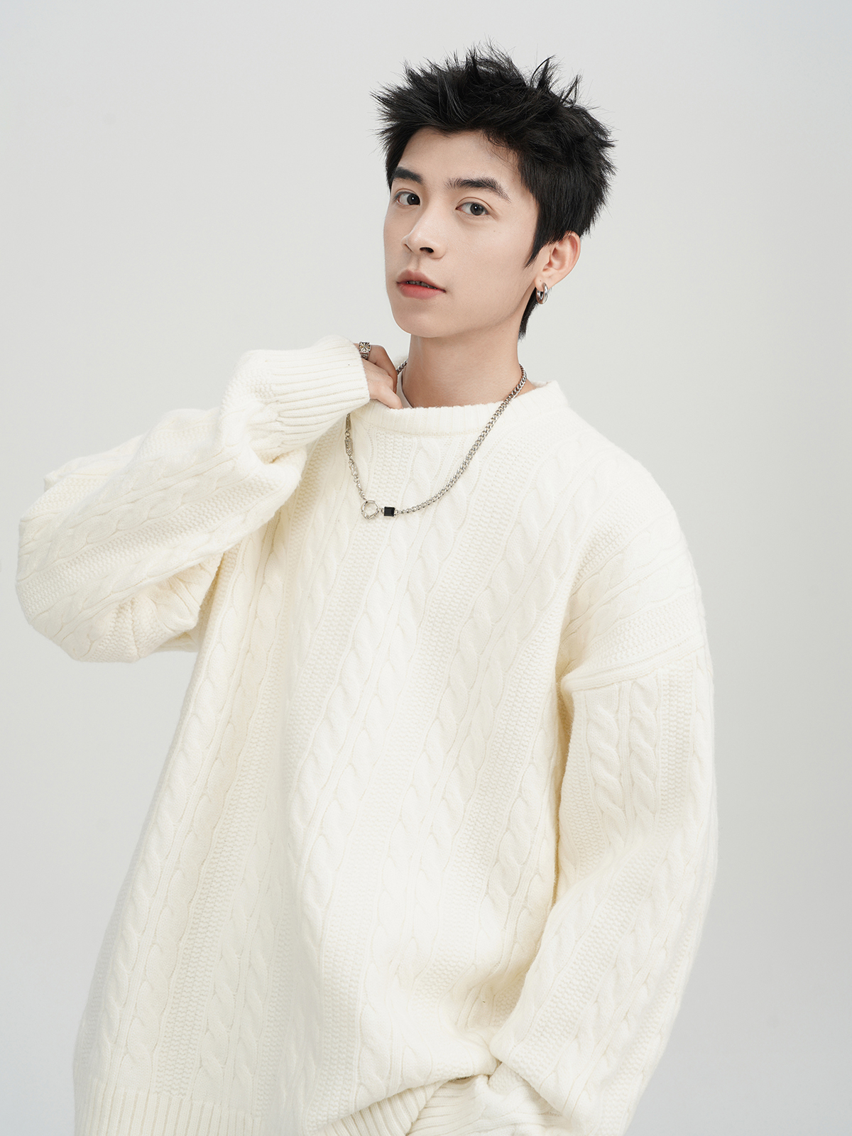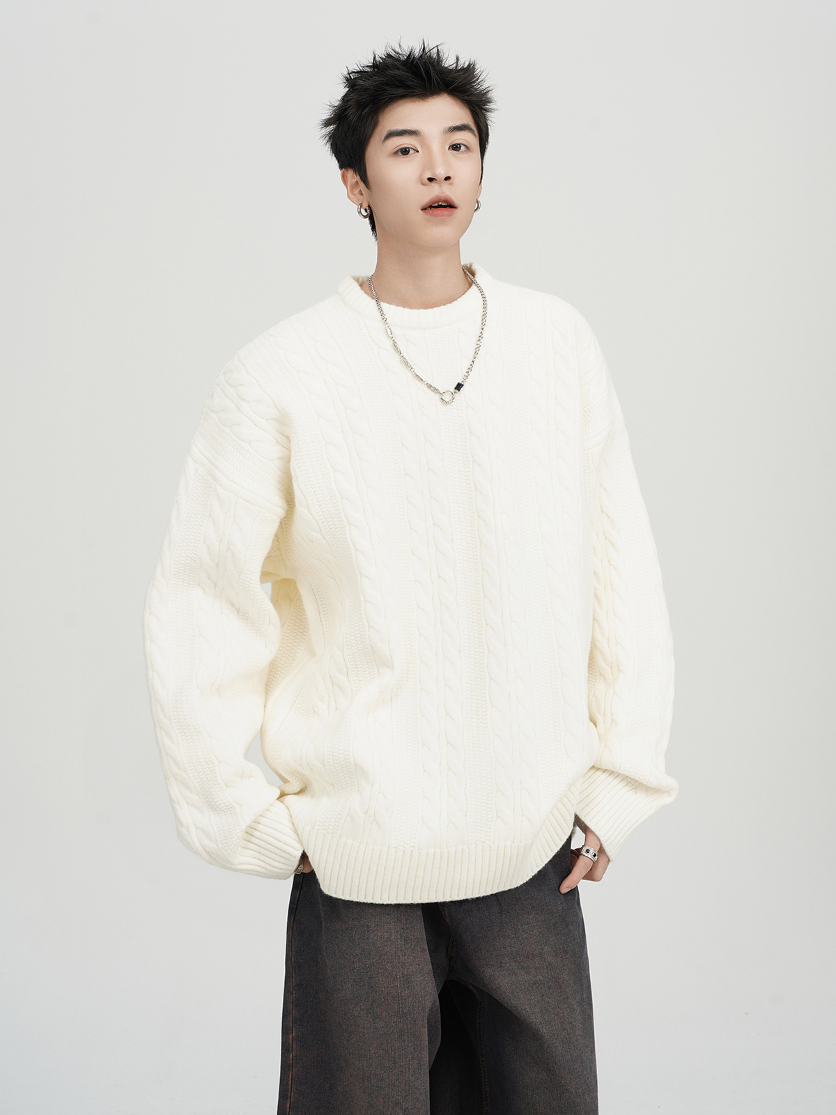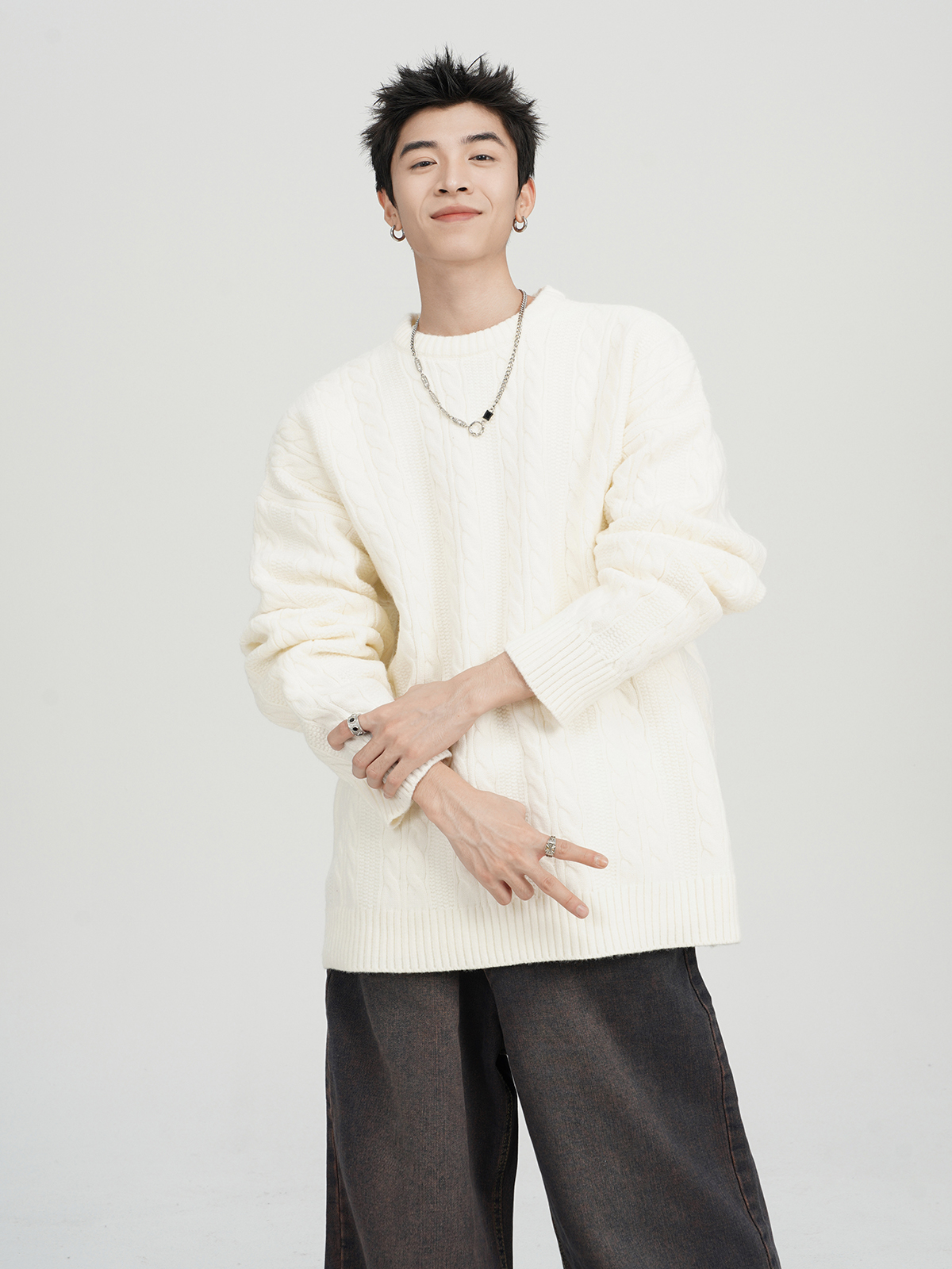 深灰色麻花毛衣男冬季潮牌oversize情侶針織衫美式慵懶風毛線衣