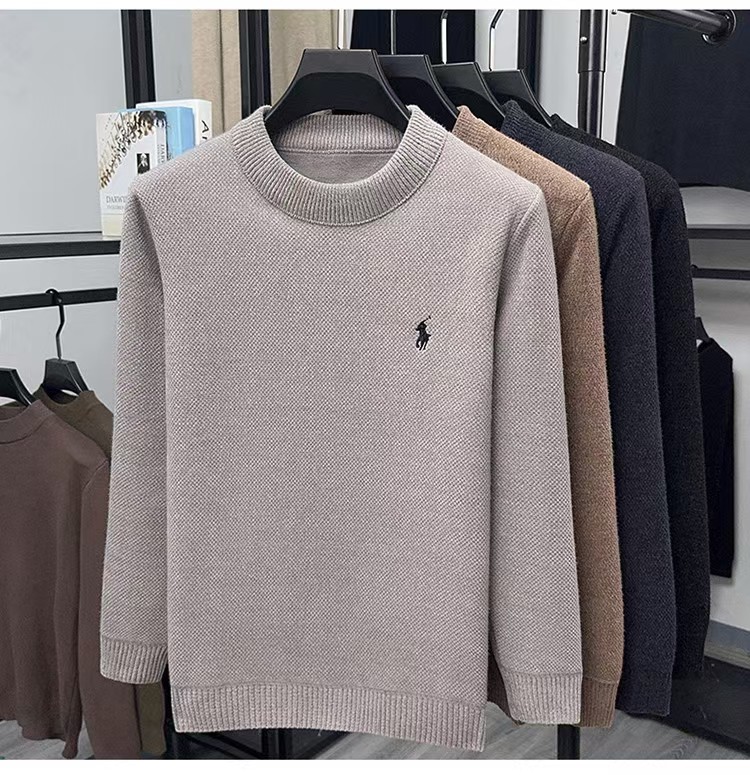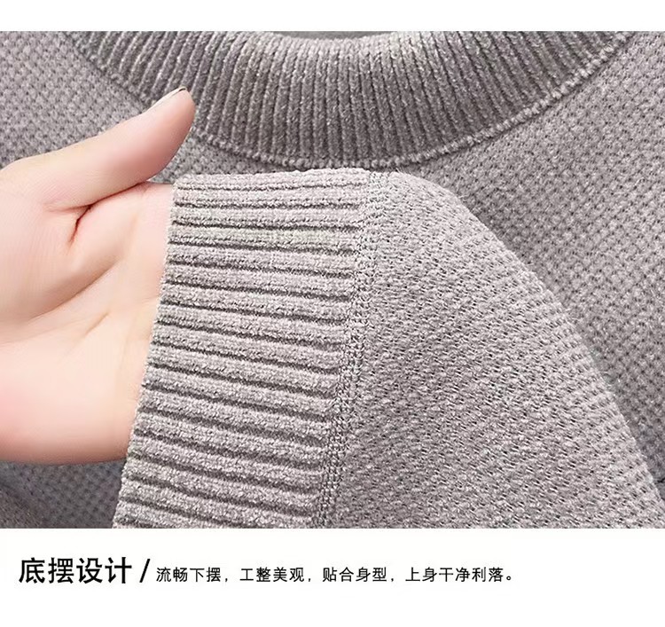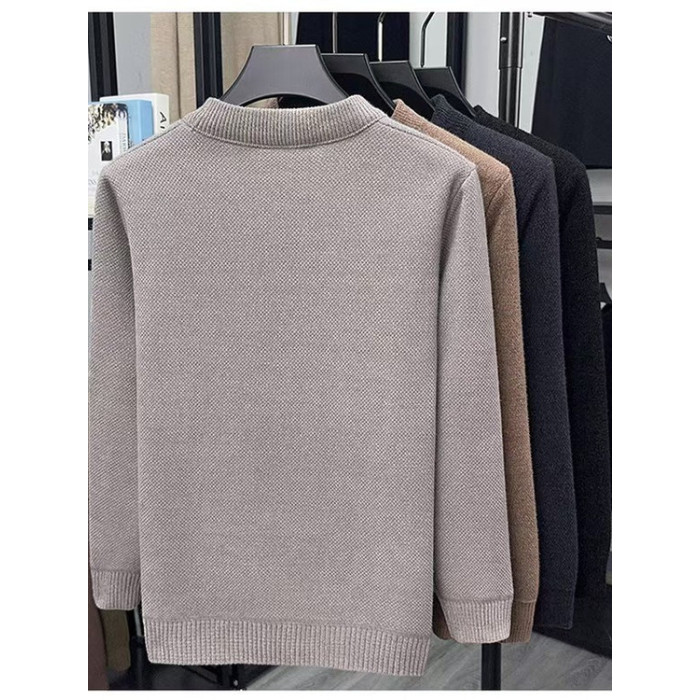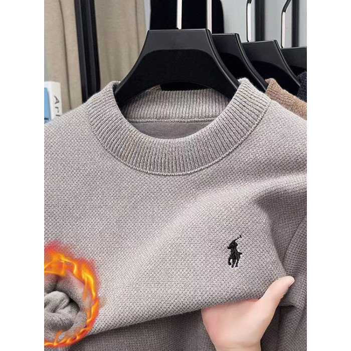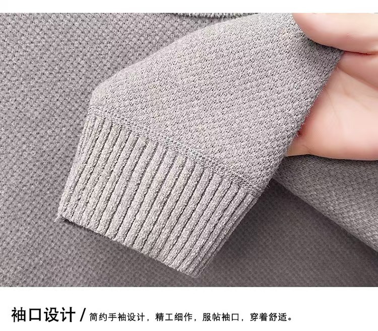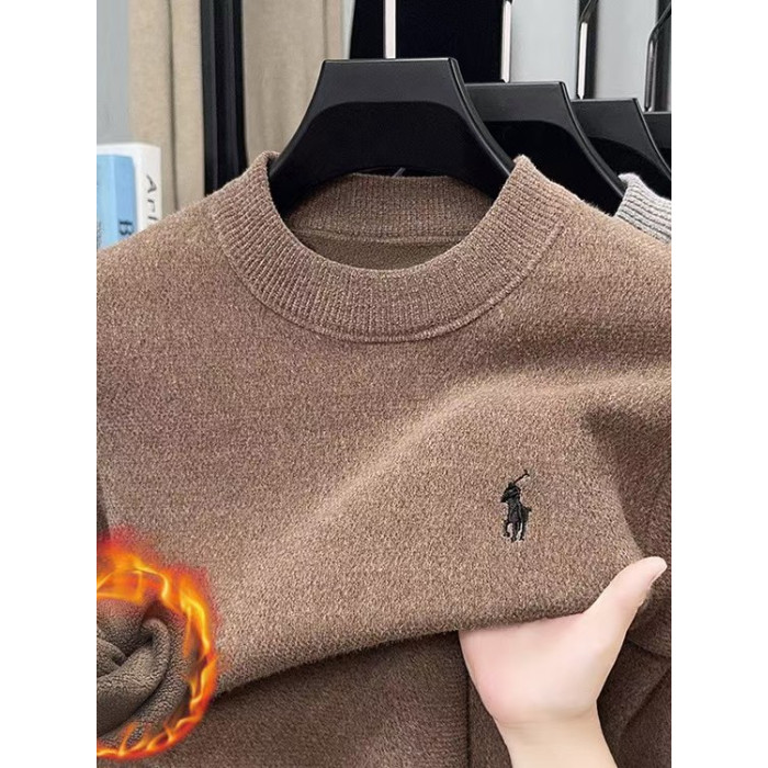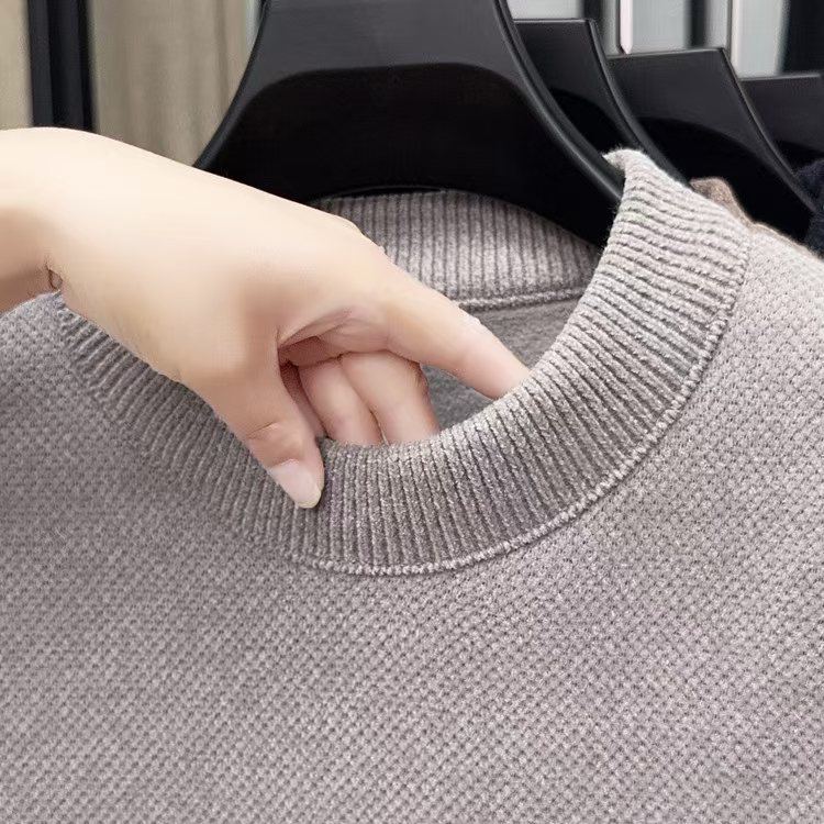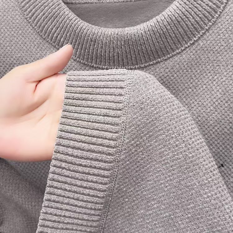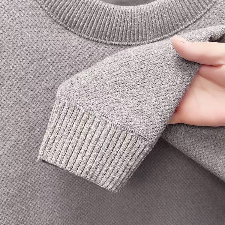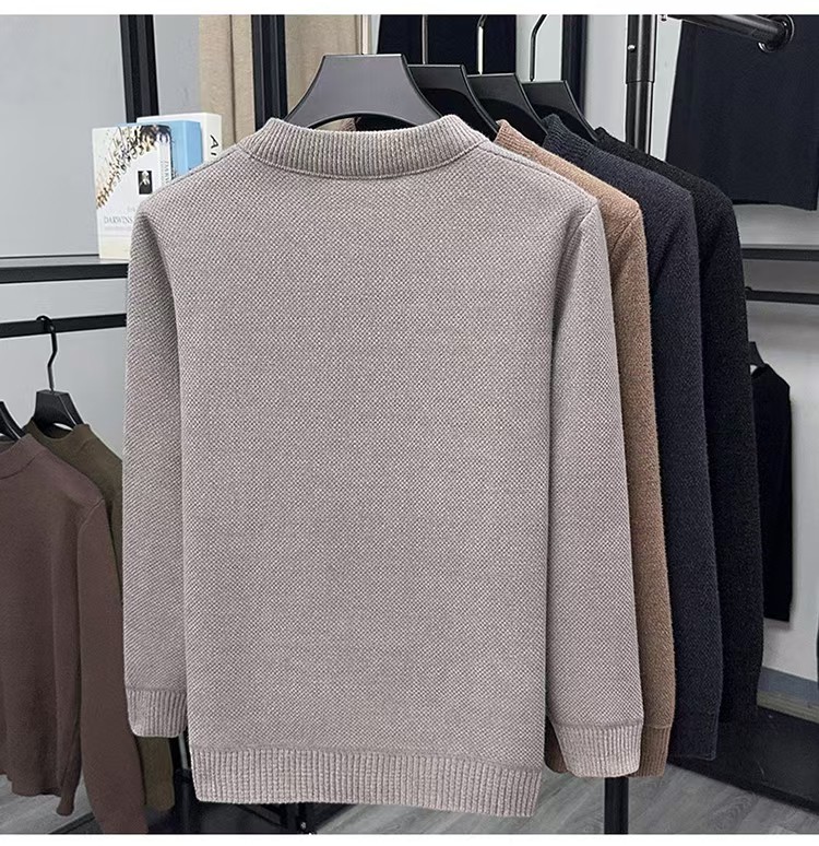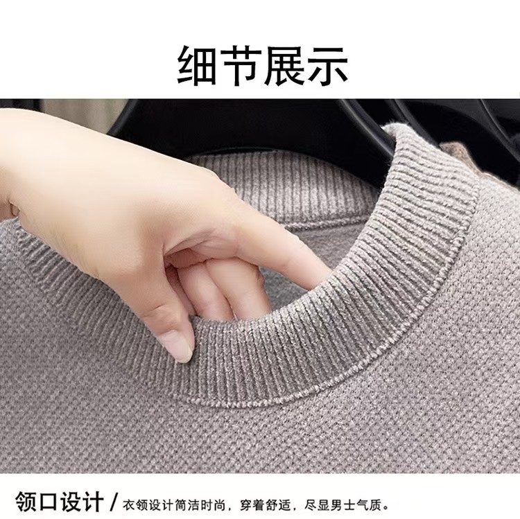 冬季新款男士加絨加厚雪尼爾毛衣男圓領針織衫保暖上衣套頭打底衫