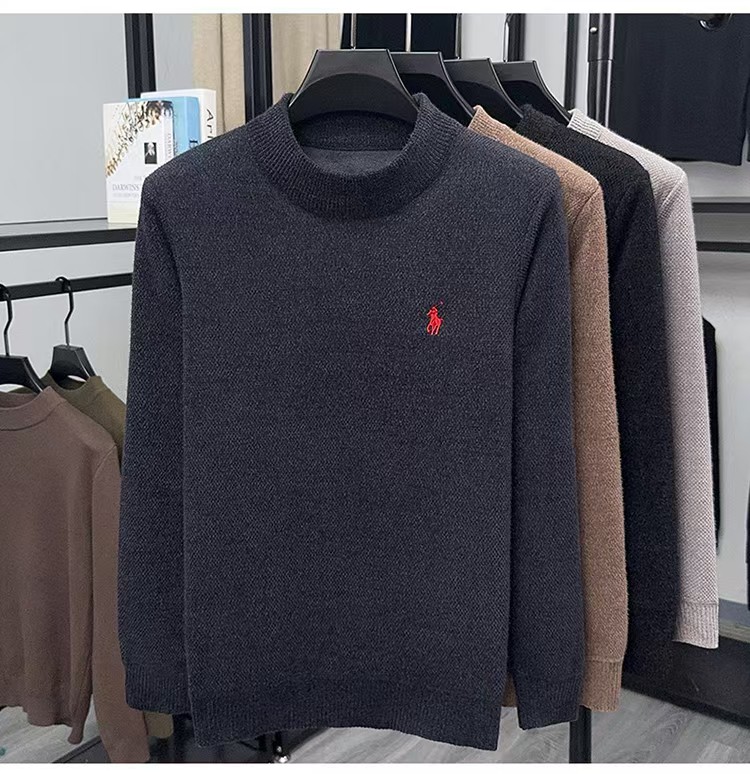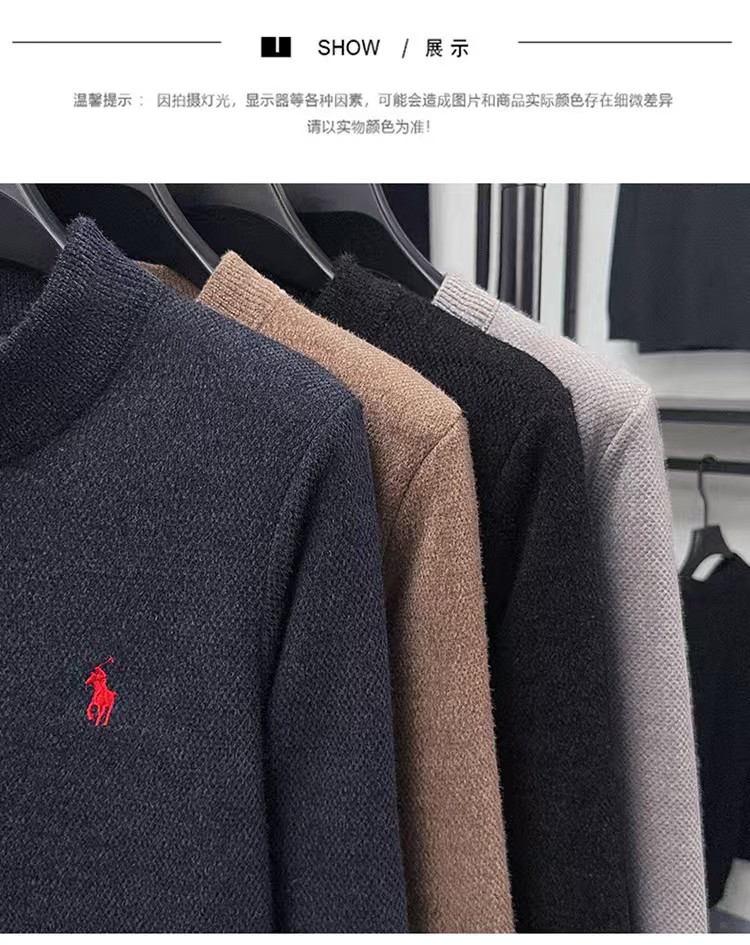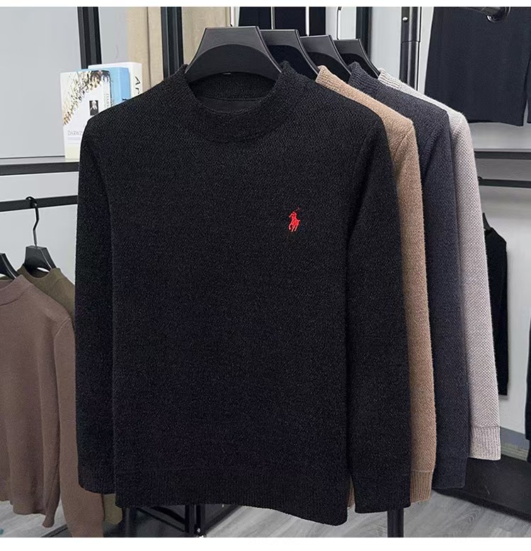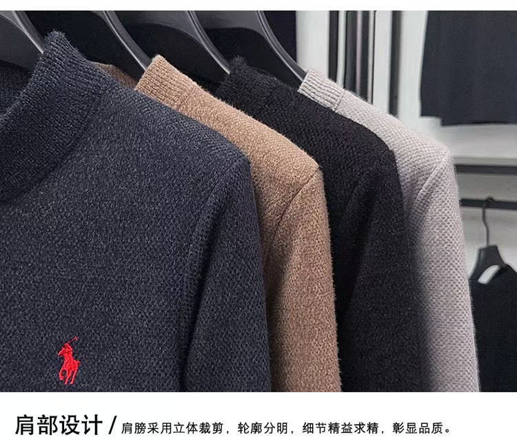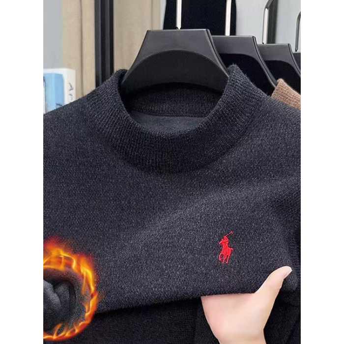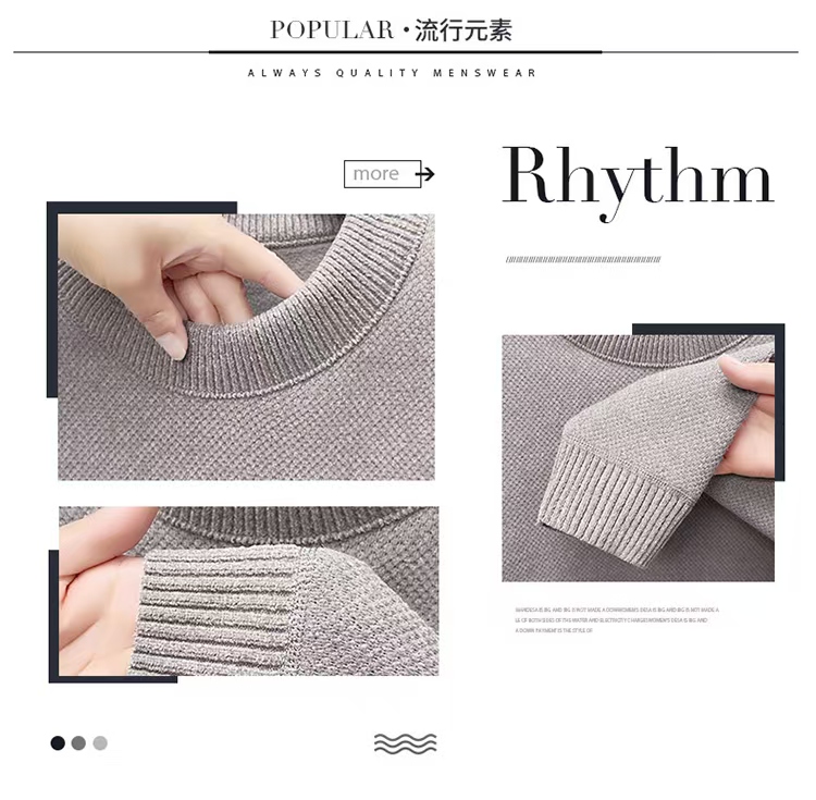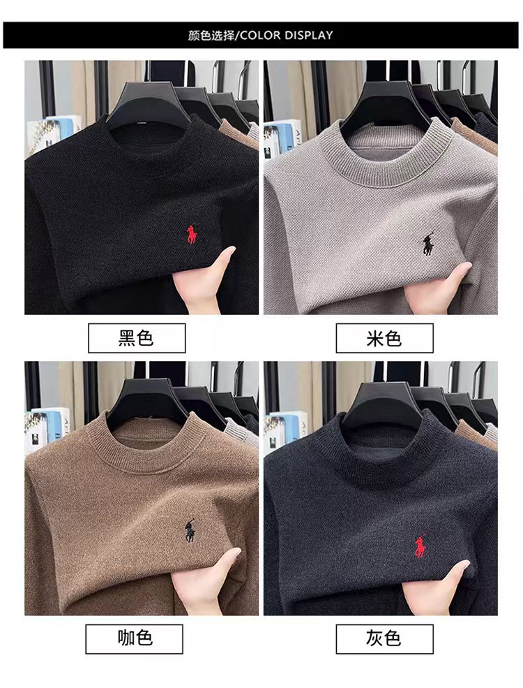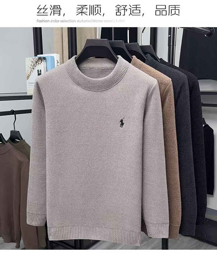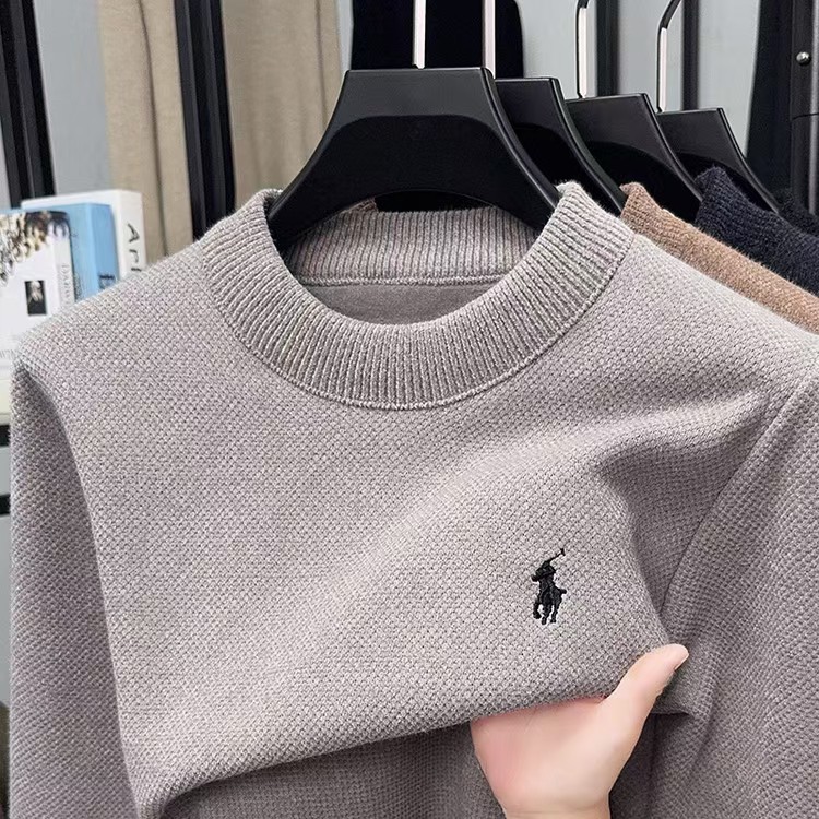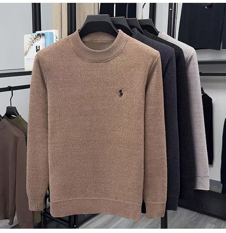 冬季新款男士加絨加厚雪尼爾毛衣男圓領針織衫保暖上衣套頭打底衫