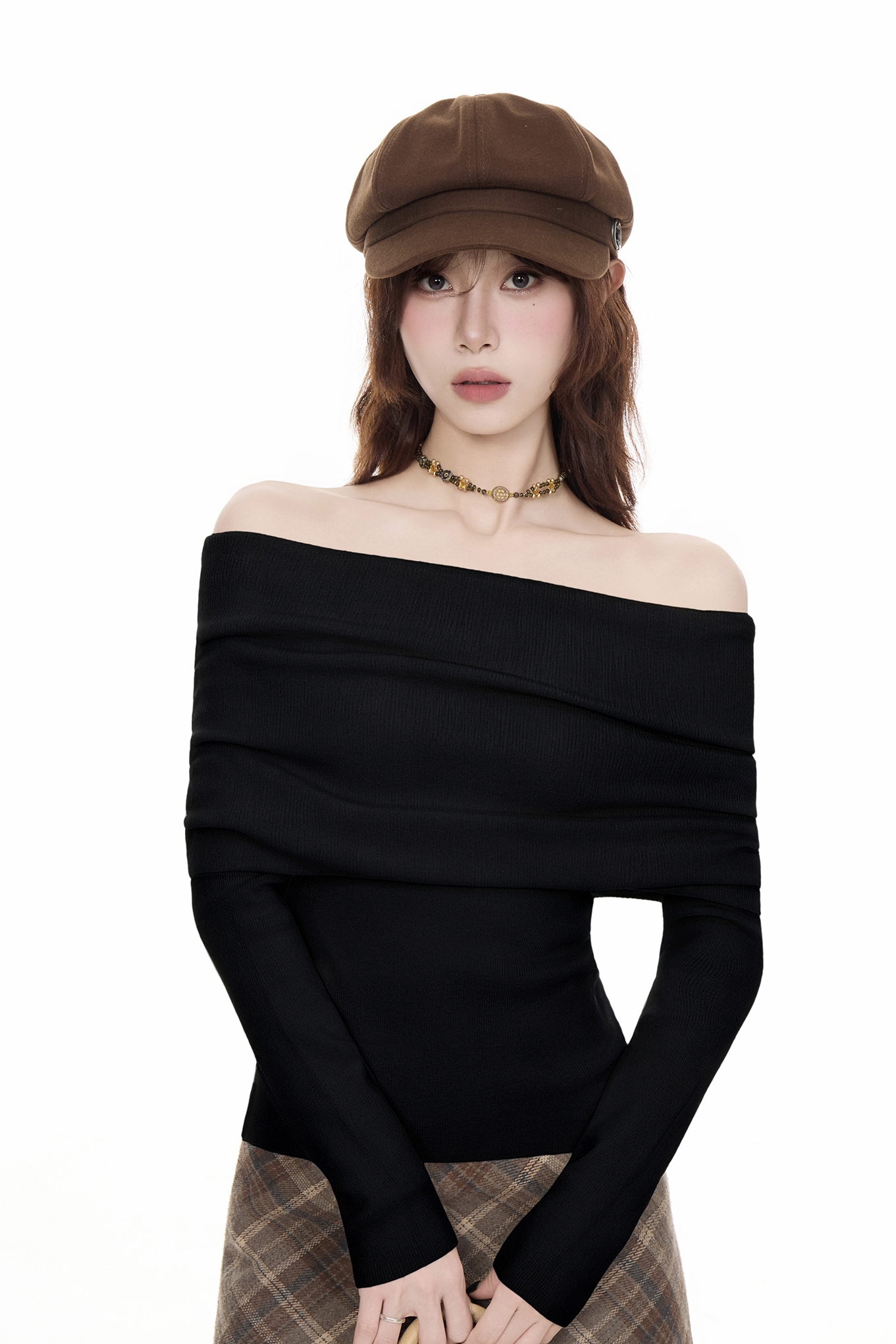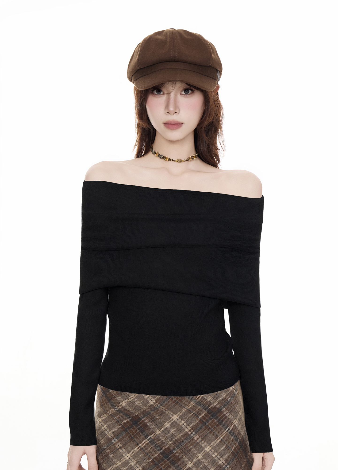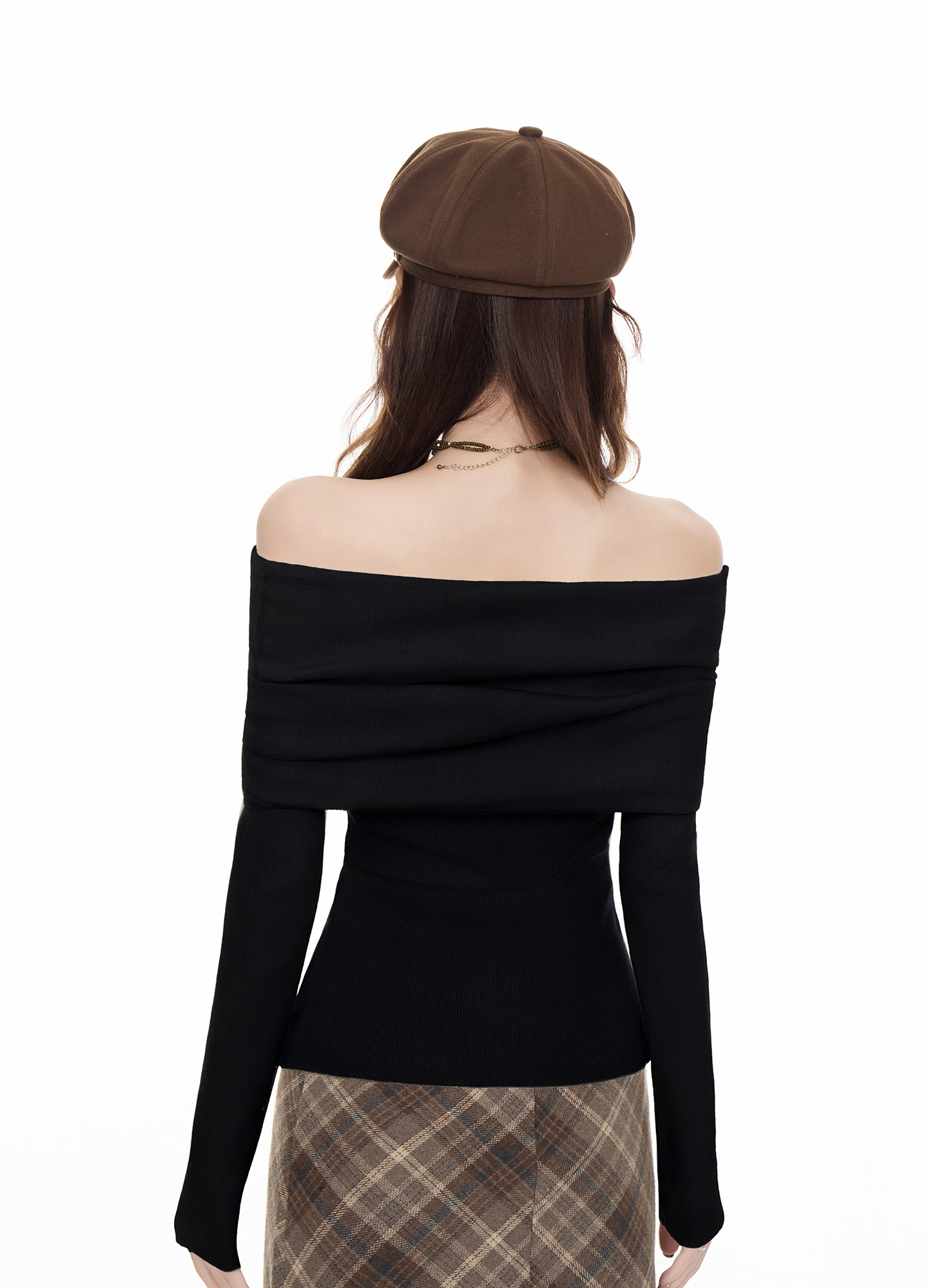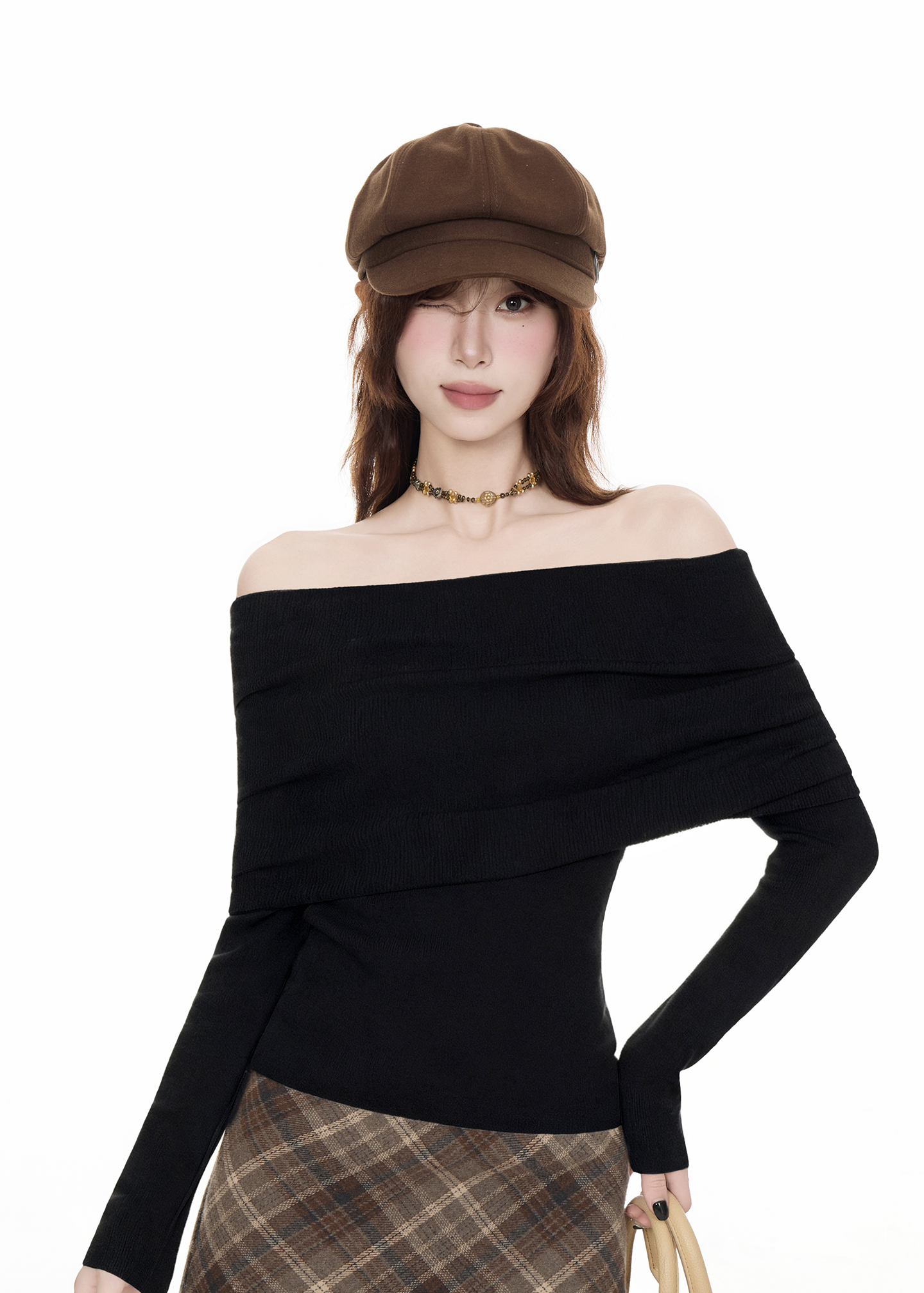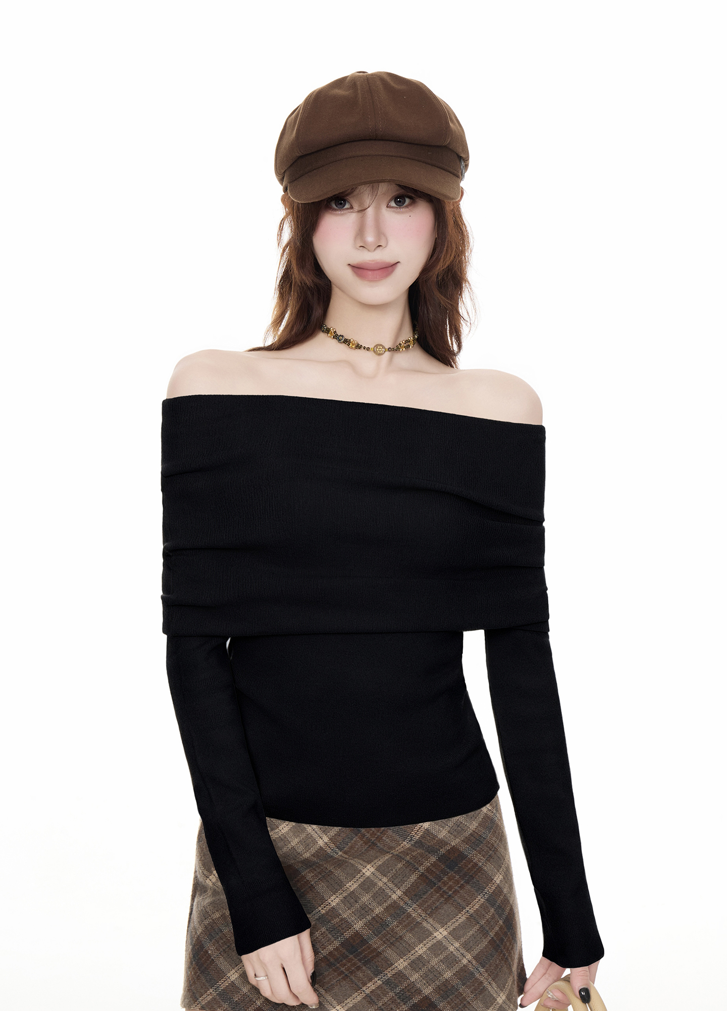 法式黑色一字肩毛衣女2025秋冬設計感慵懶風收腰顯瘦長袖t恤上衣