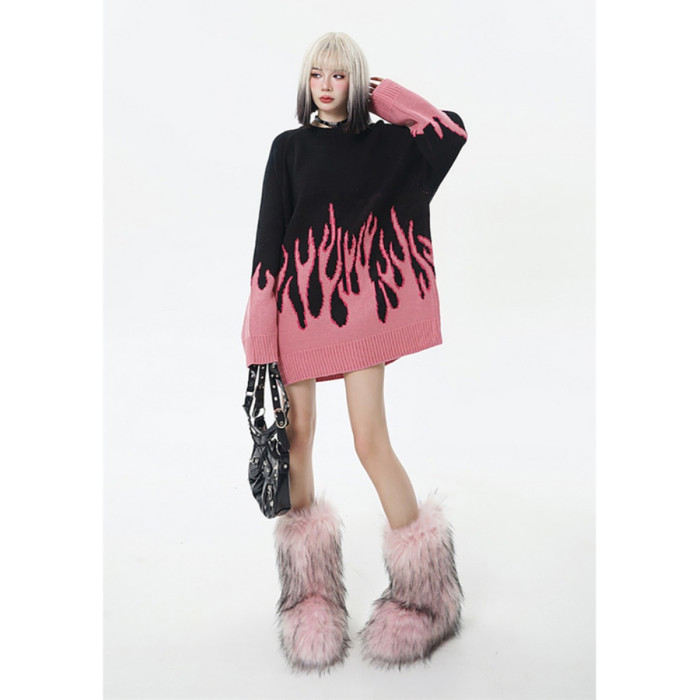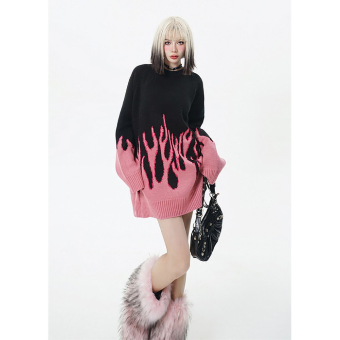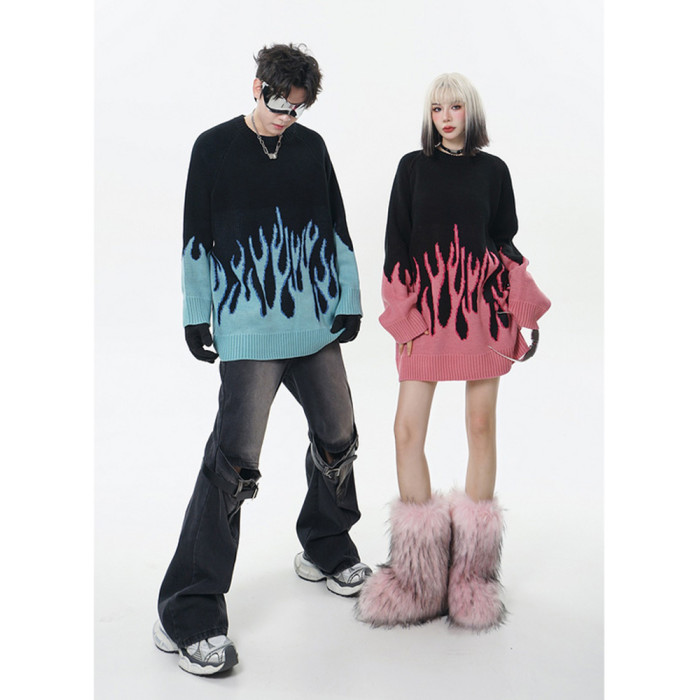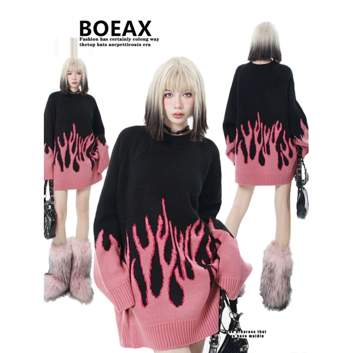 BOEAX潮牌高街設計感撞色針織毛衣男女ins漸變歐美街頭風oversize