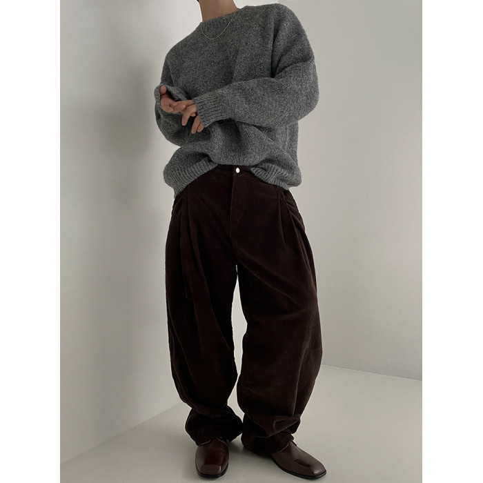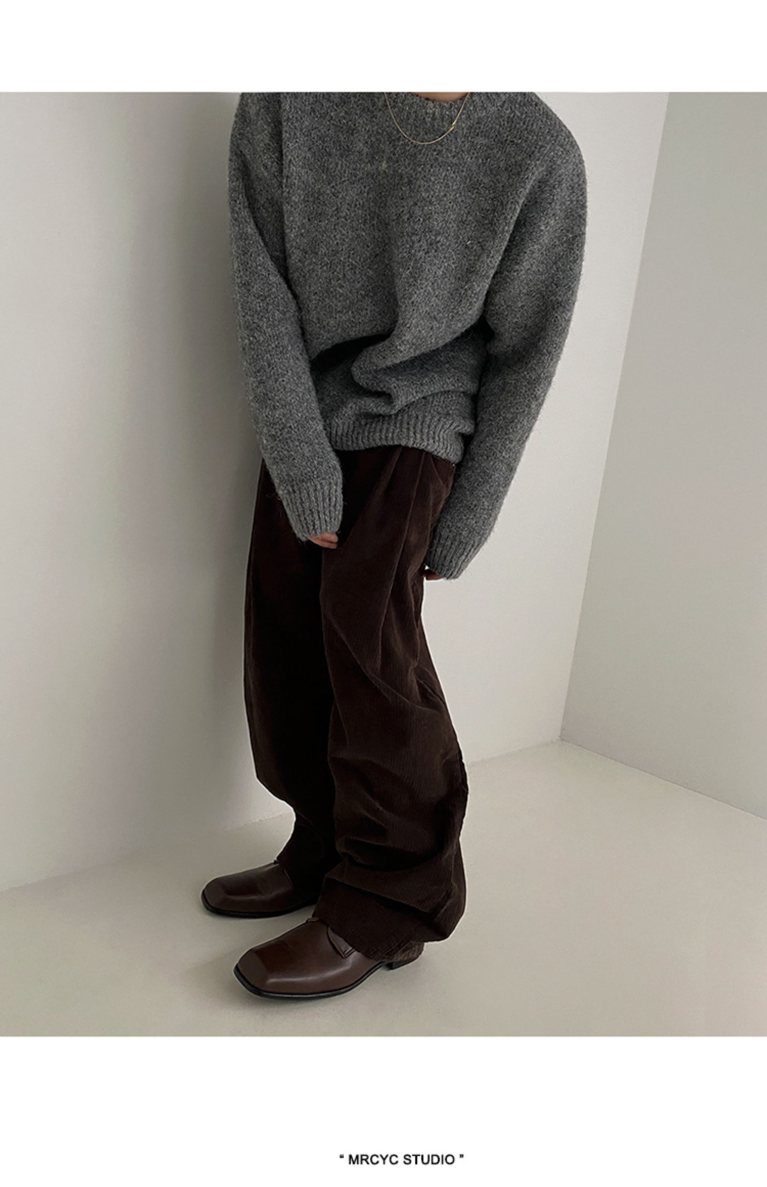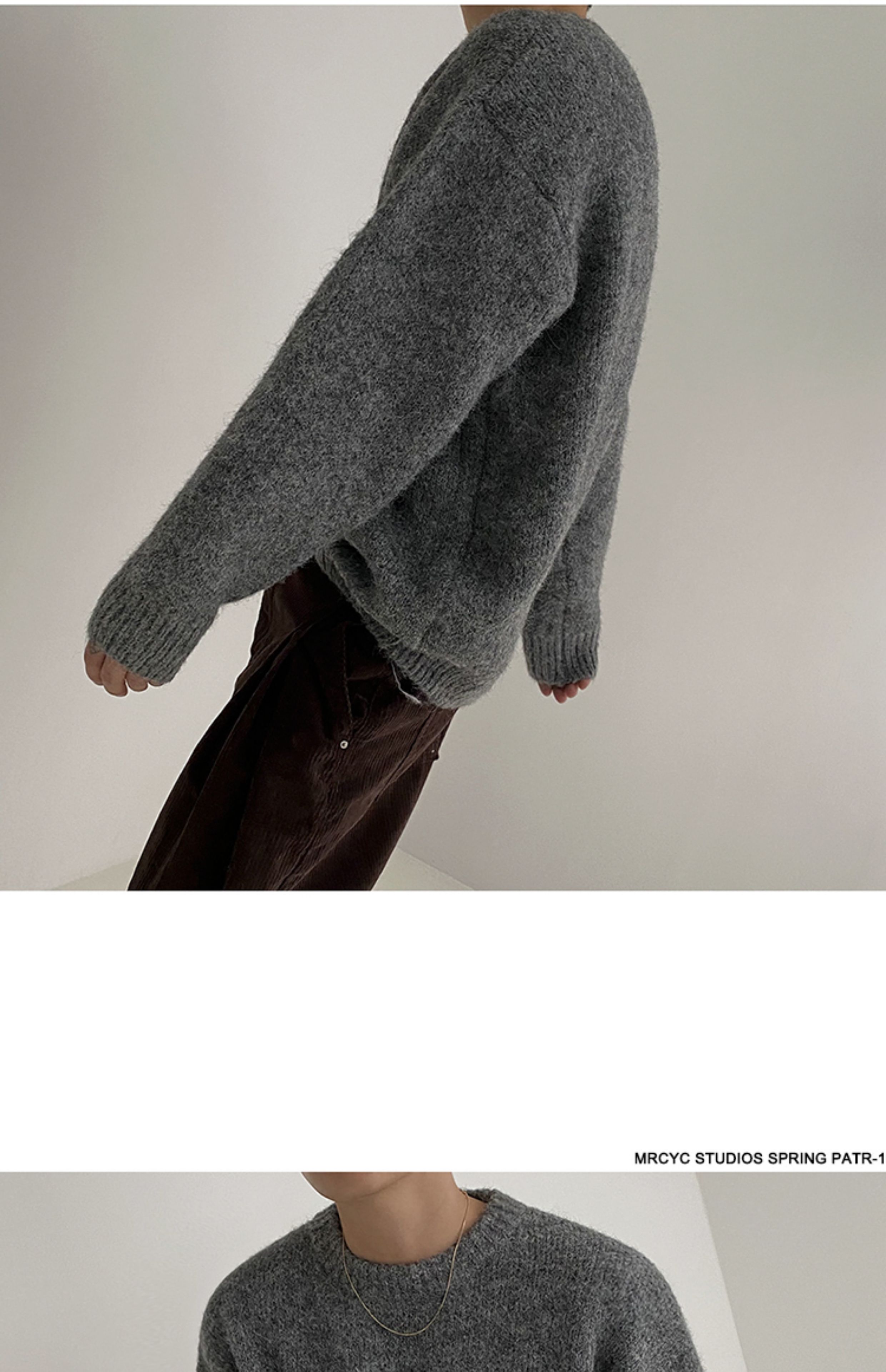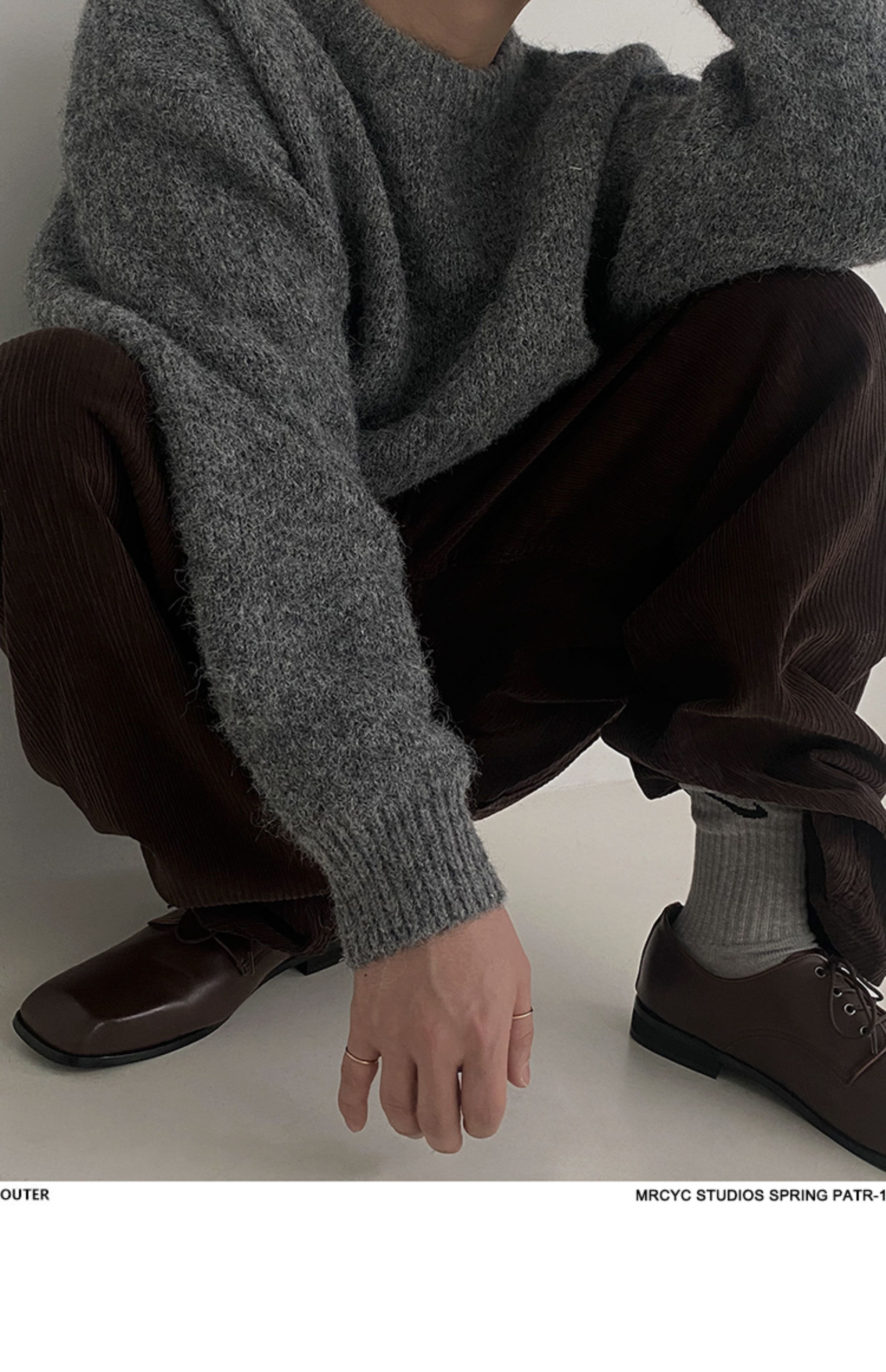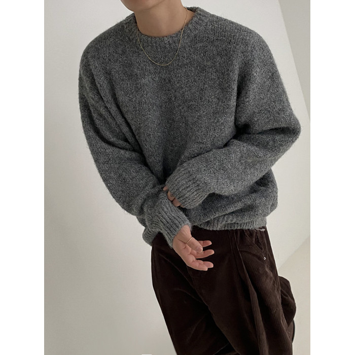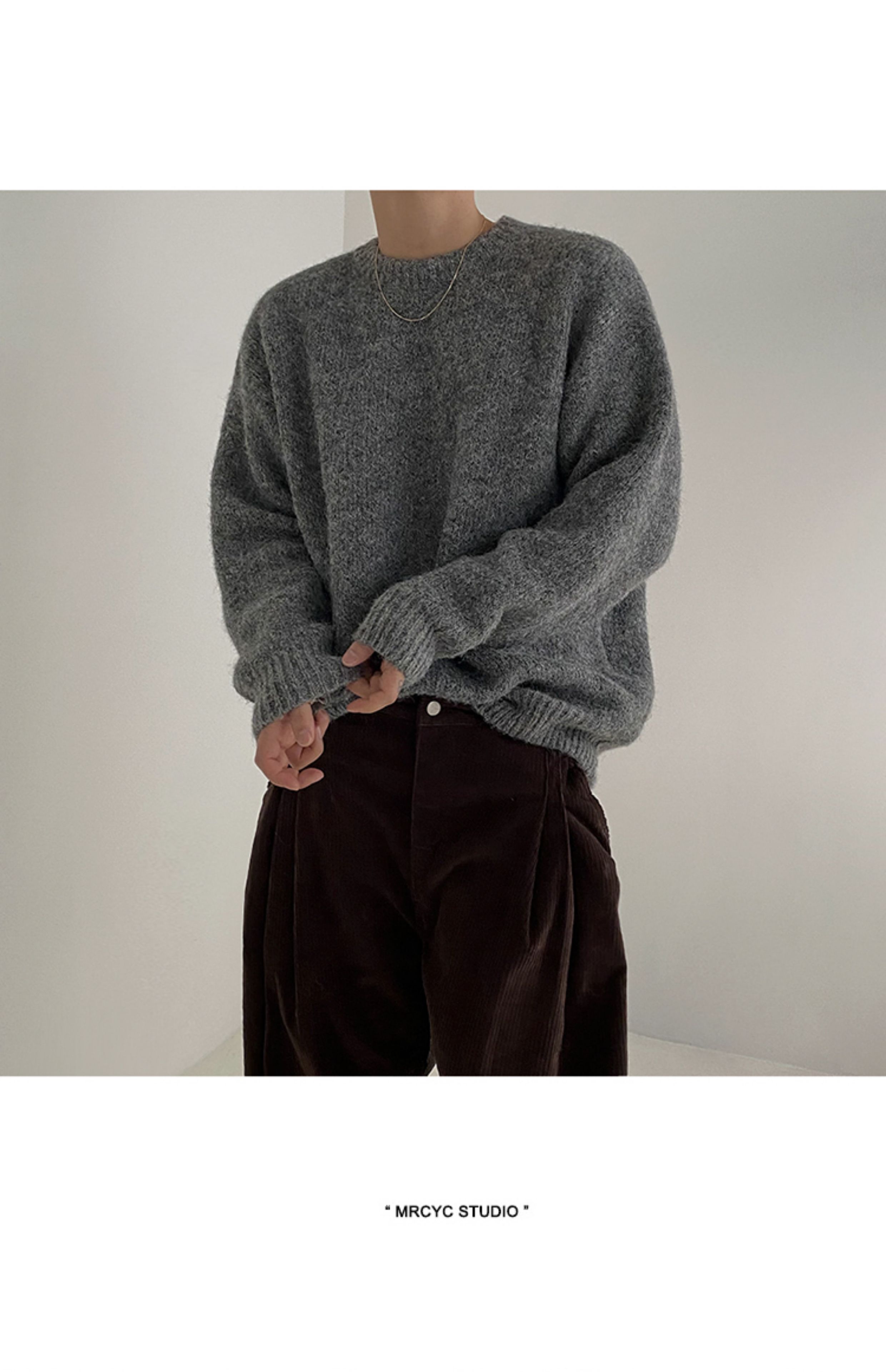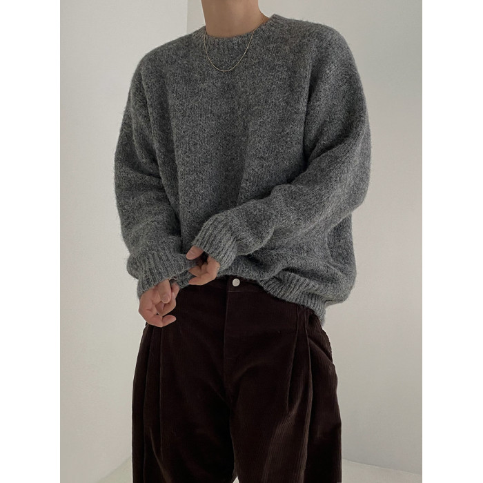 MRCYC馬海毛針織衫男士秋季韓系潮流慵懶風套頭毛衣寬松圓領上衣