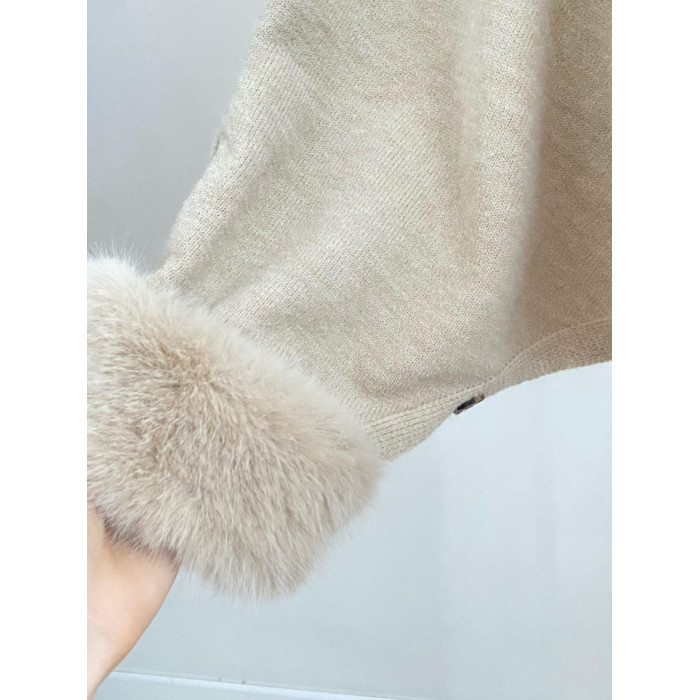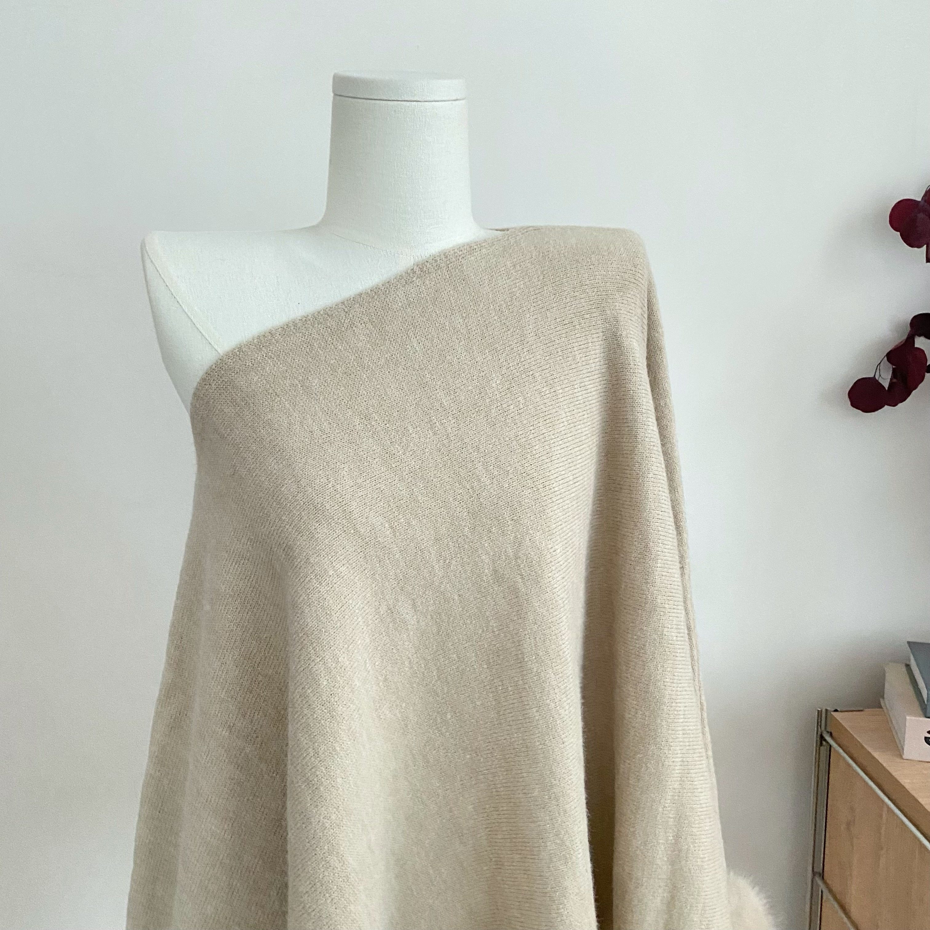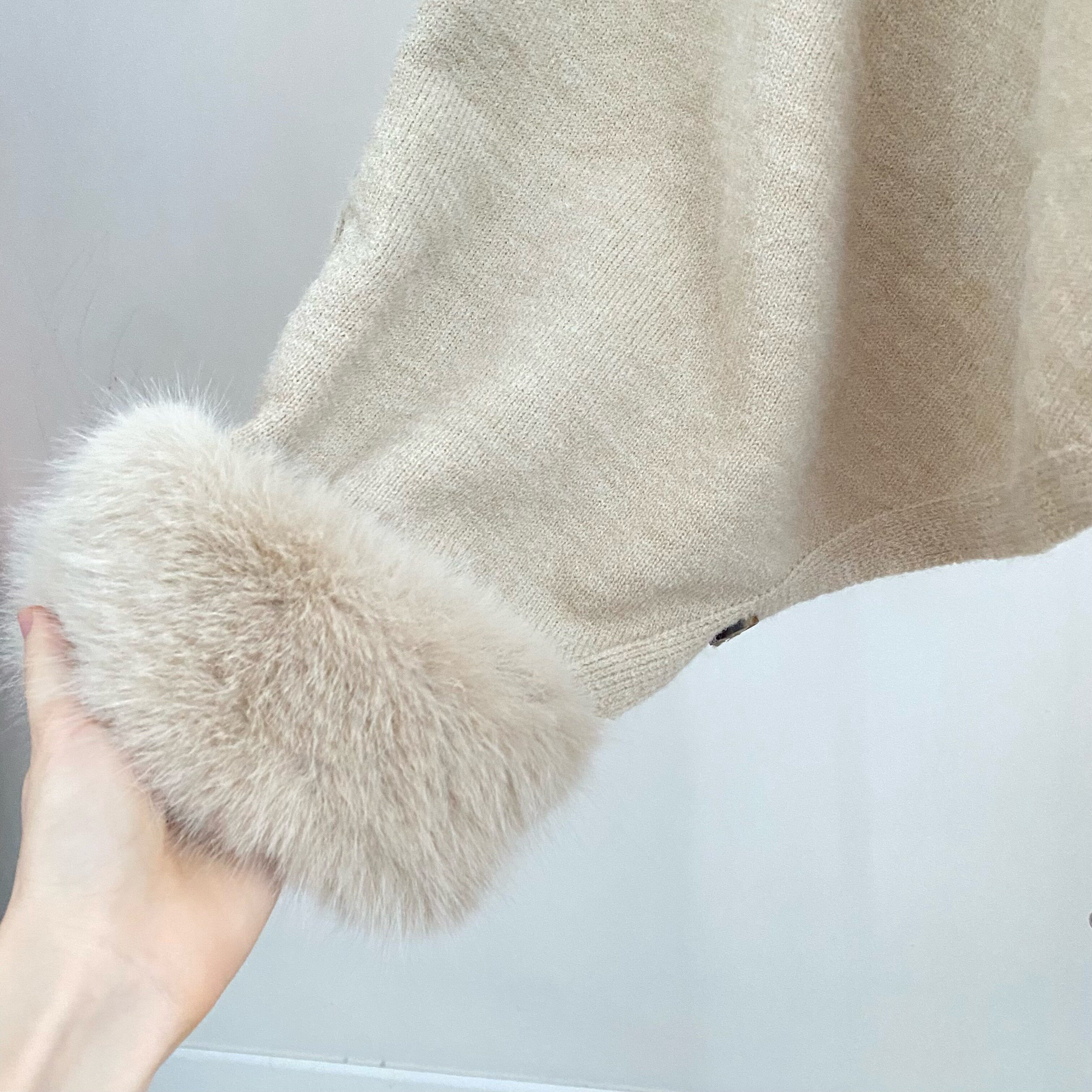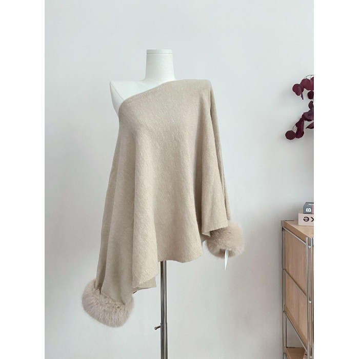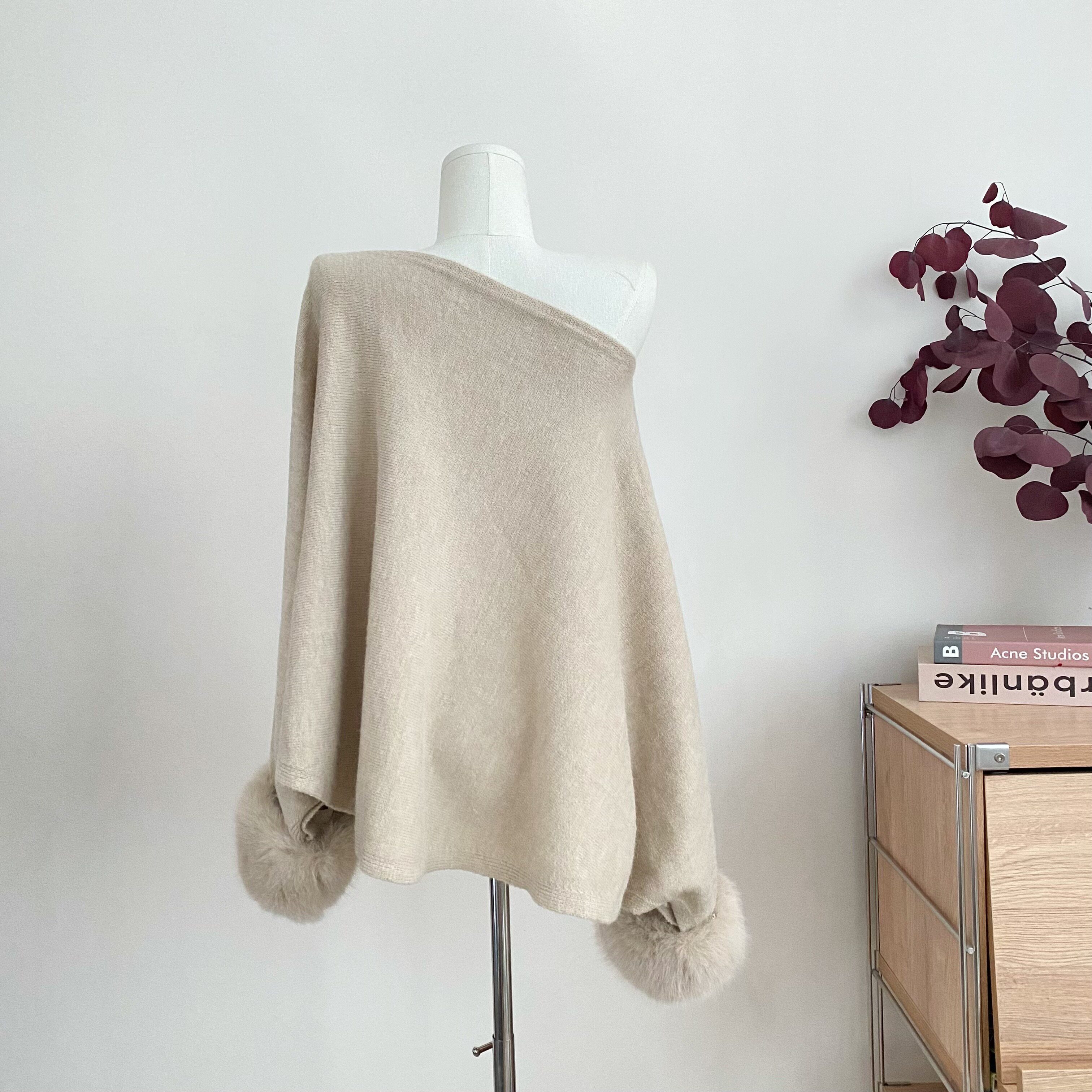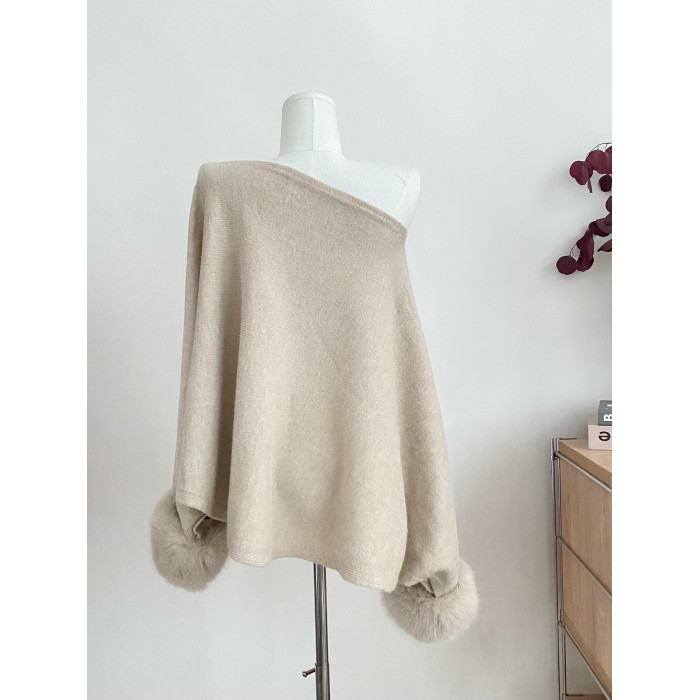 POPW 一字肩上衣高級感穿搭秋冬毛毛拼接露肩針織衫女氣質鬭篷