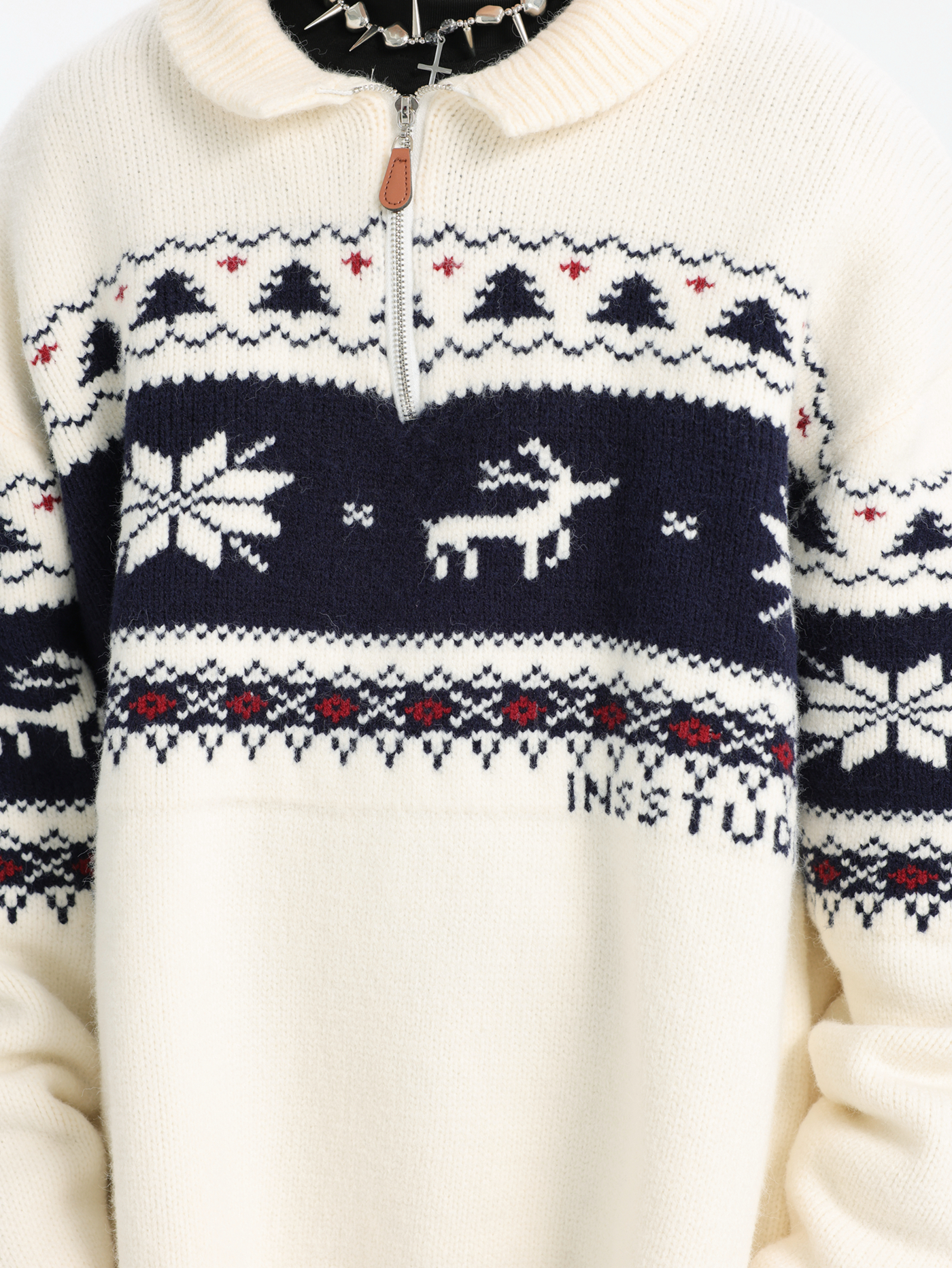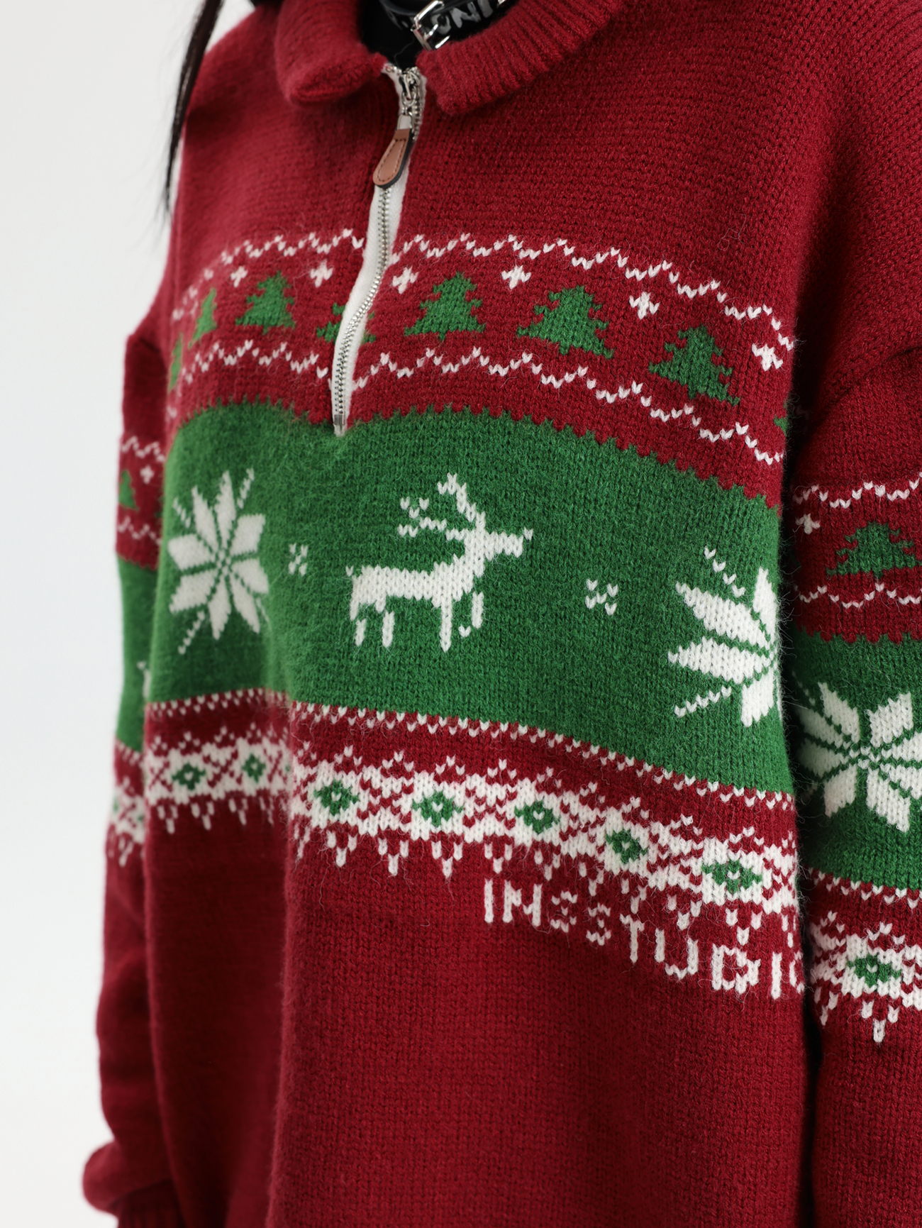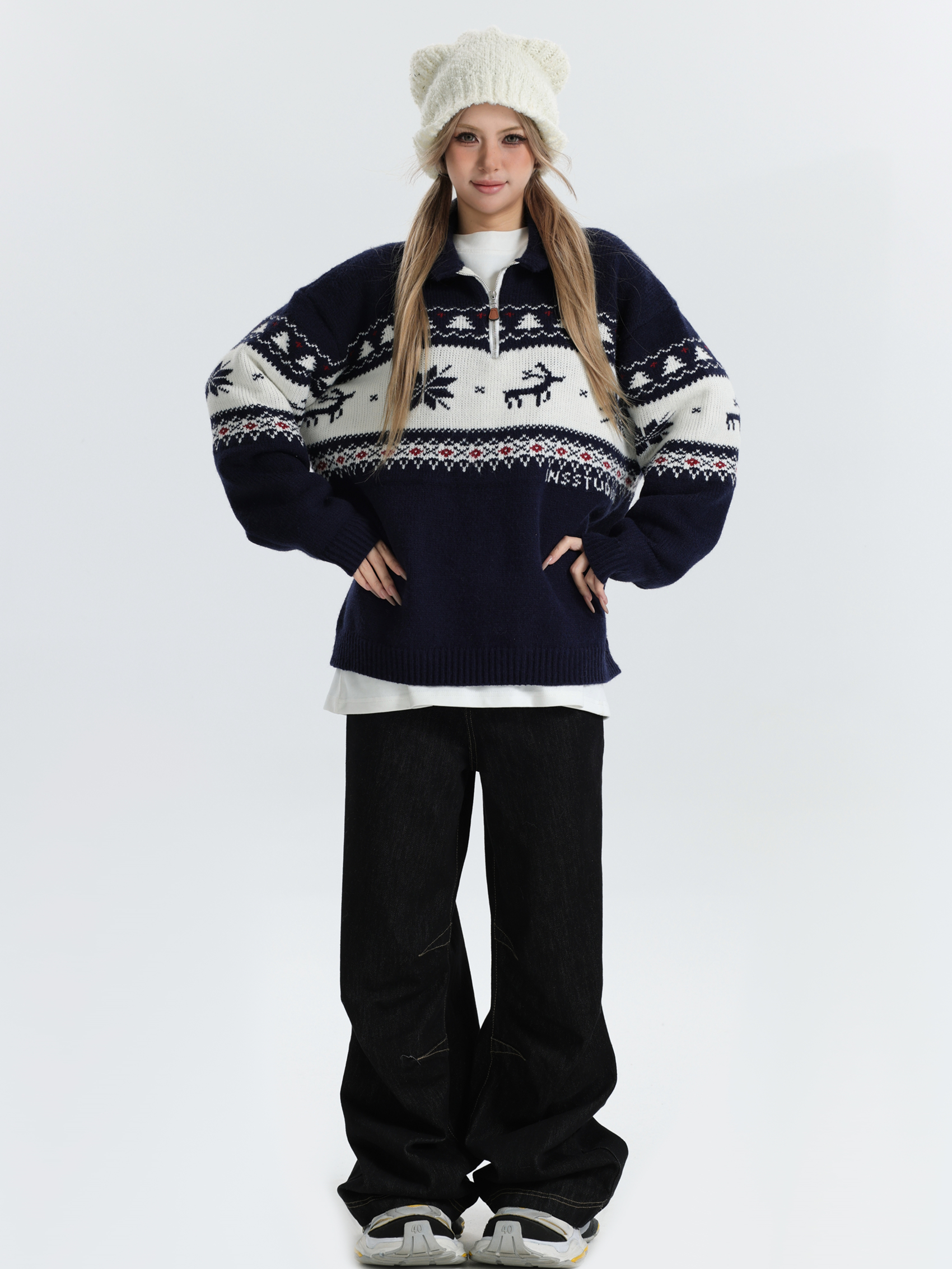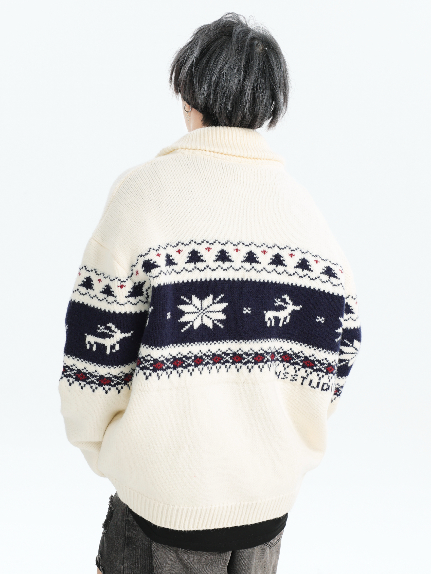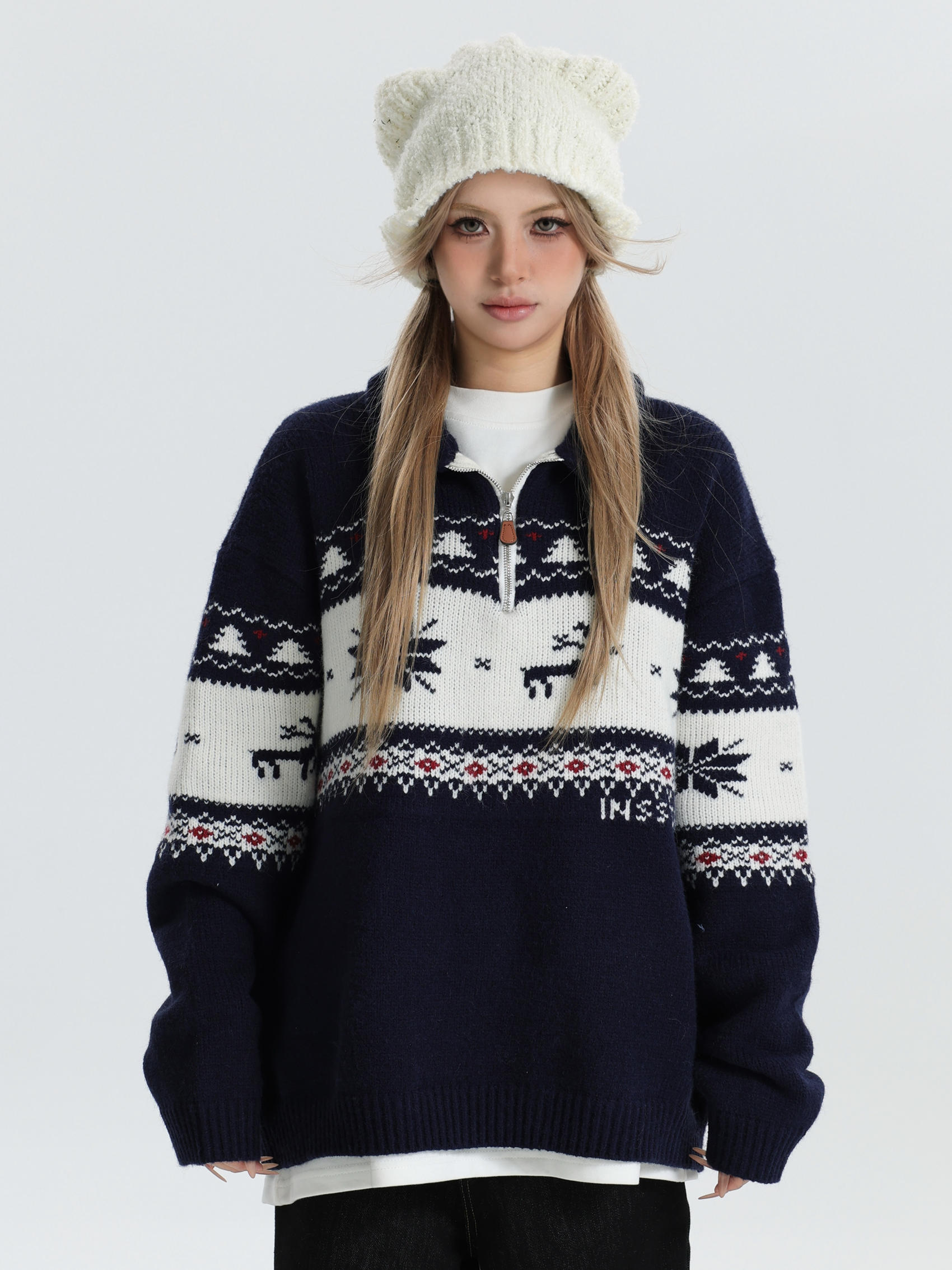 INSstudios 國潮牌情侶美式元寶領聖誕費爾島提花毛衣秋冬針織衫