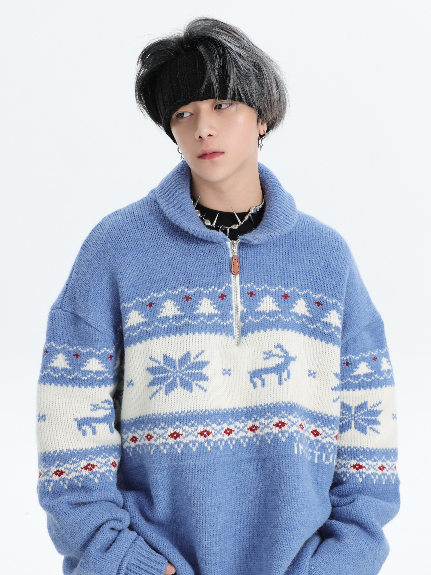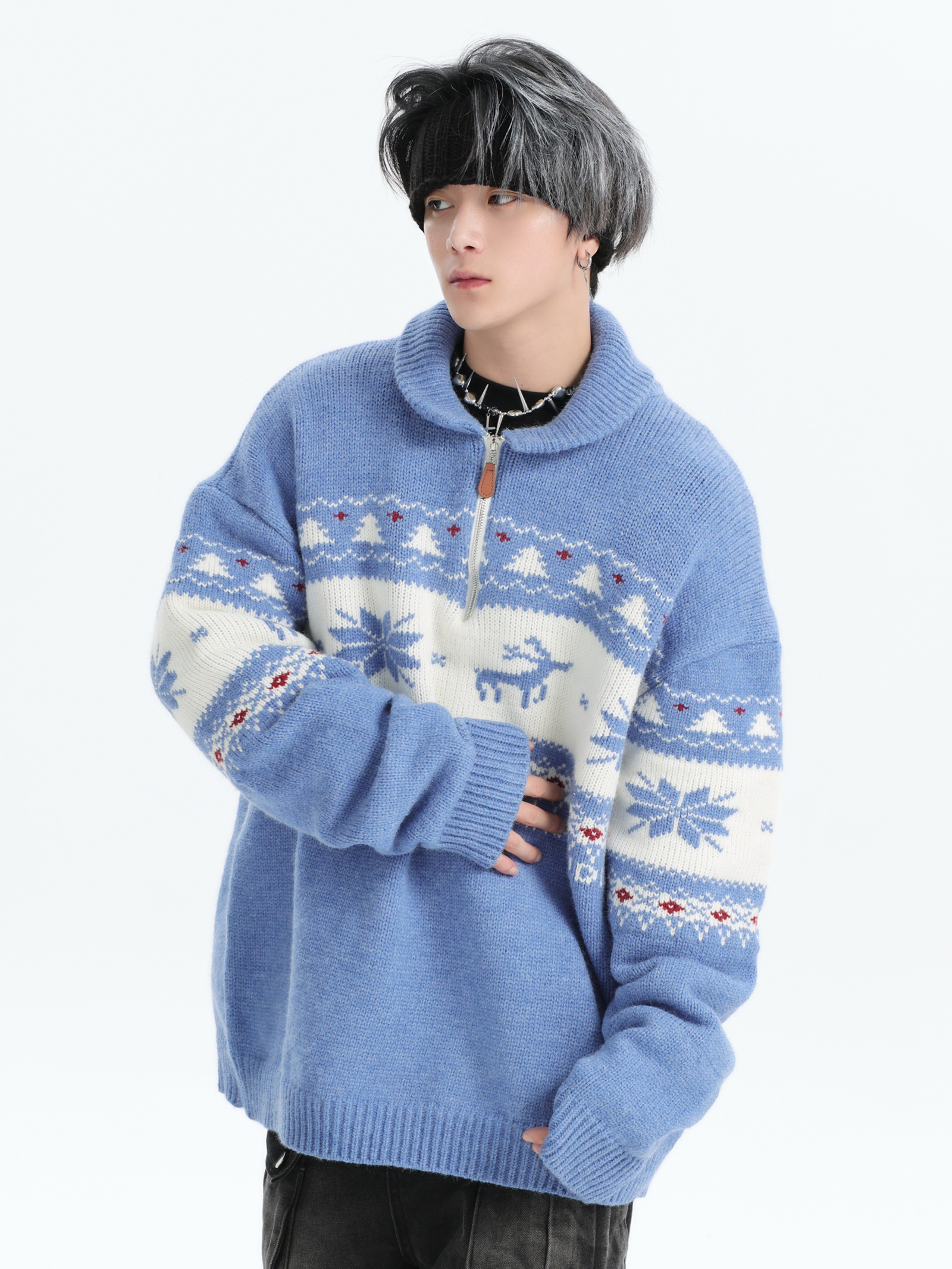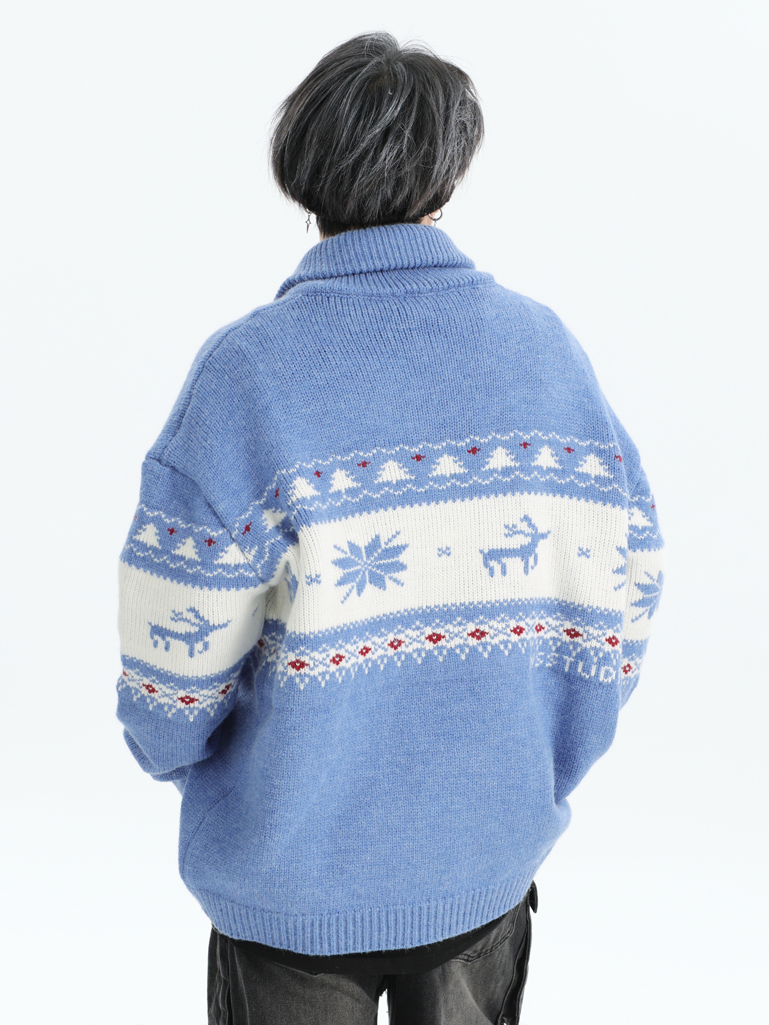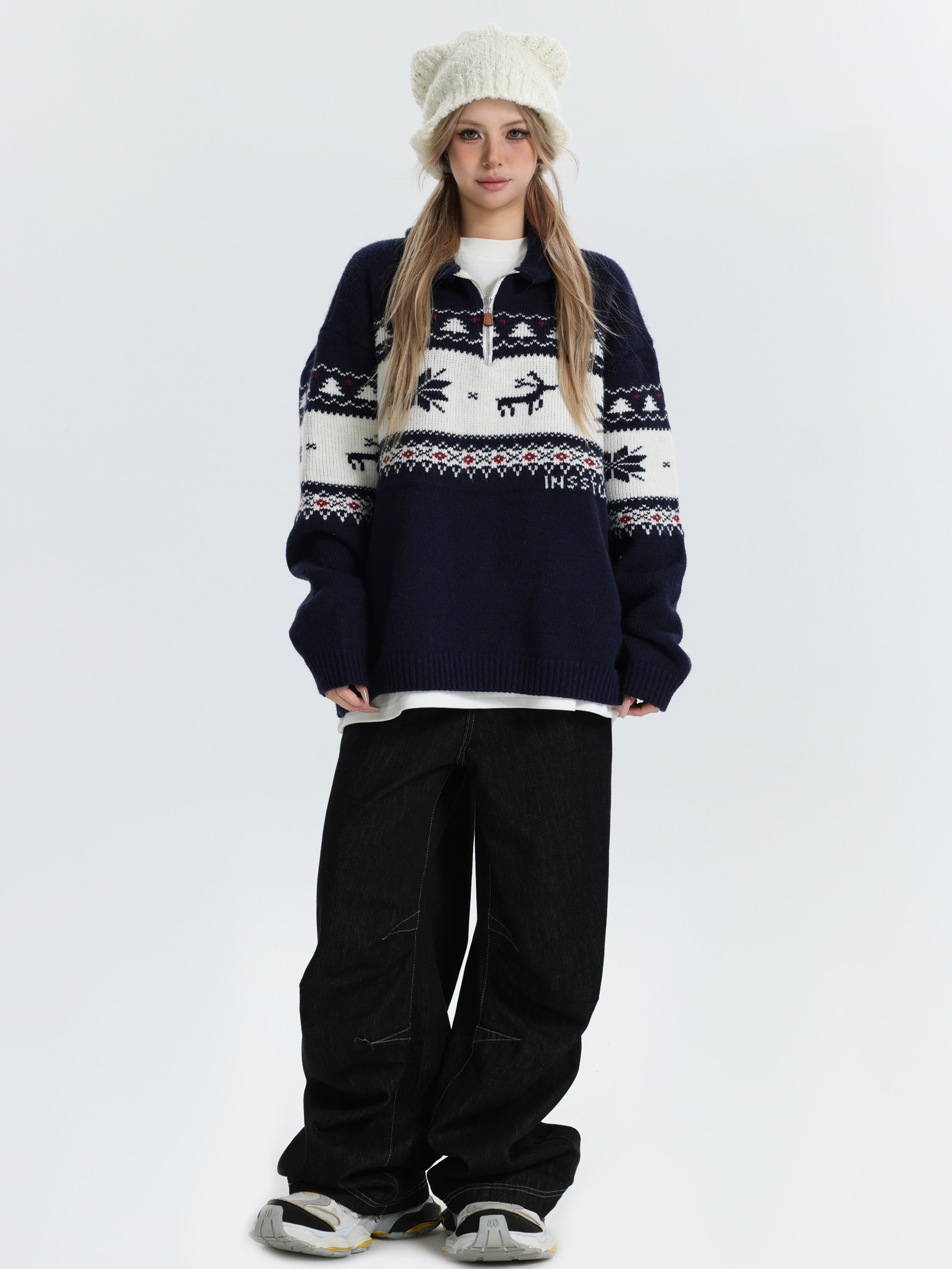 INSstudios 國潮牌情侶美式元寶領聖誕費爾島提花毛衣秋冬針織衫